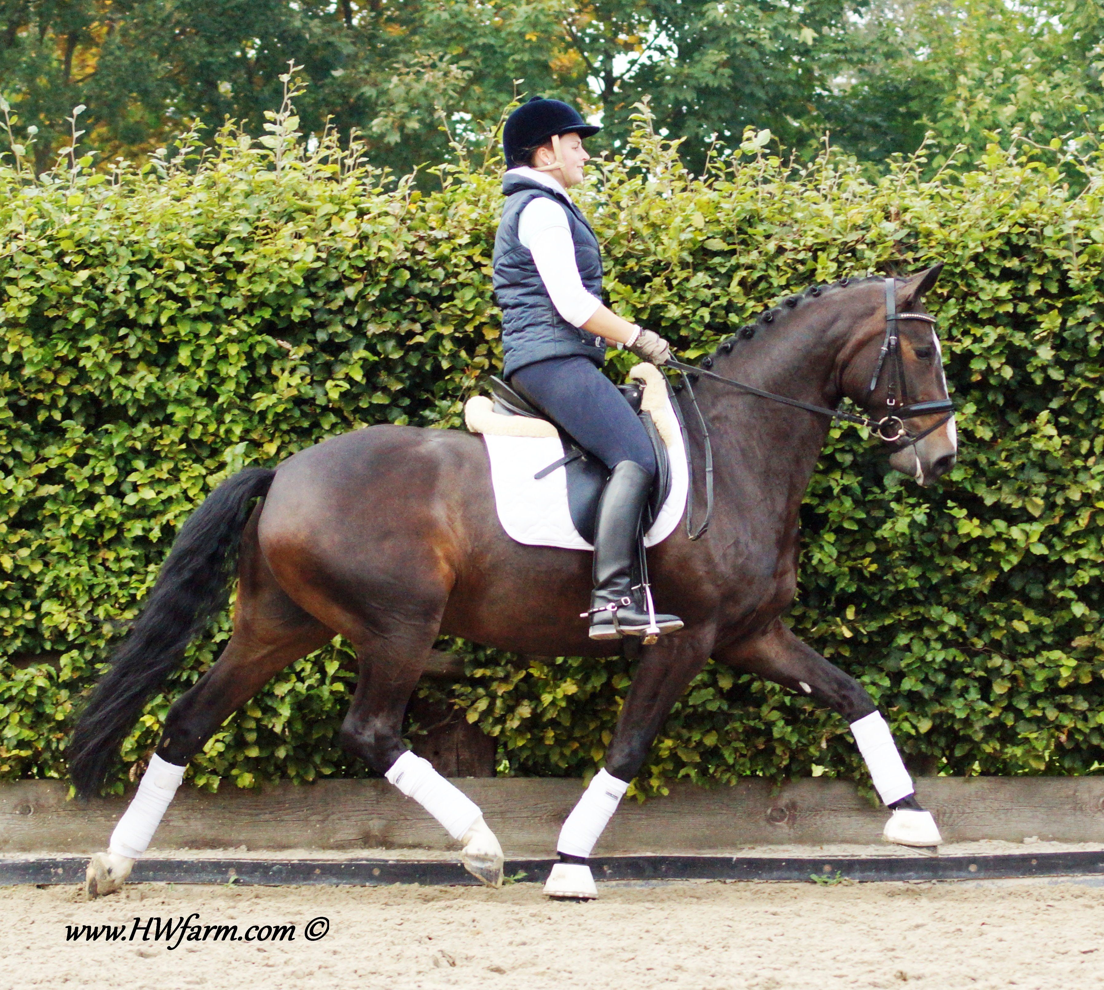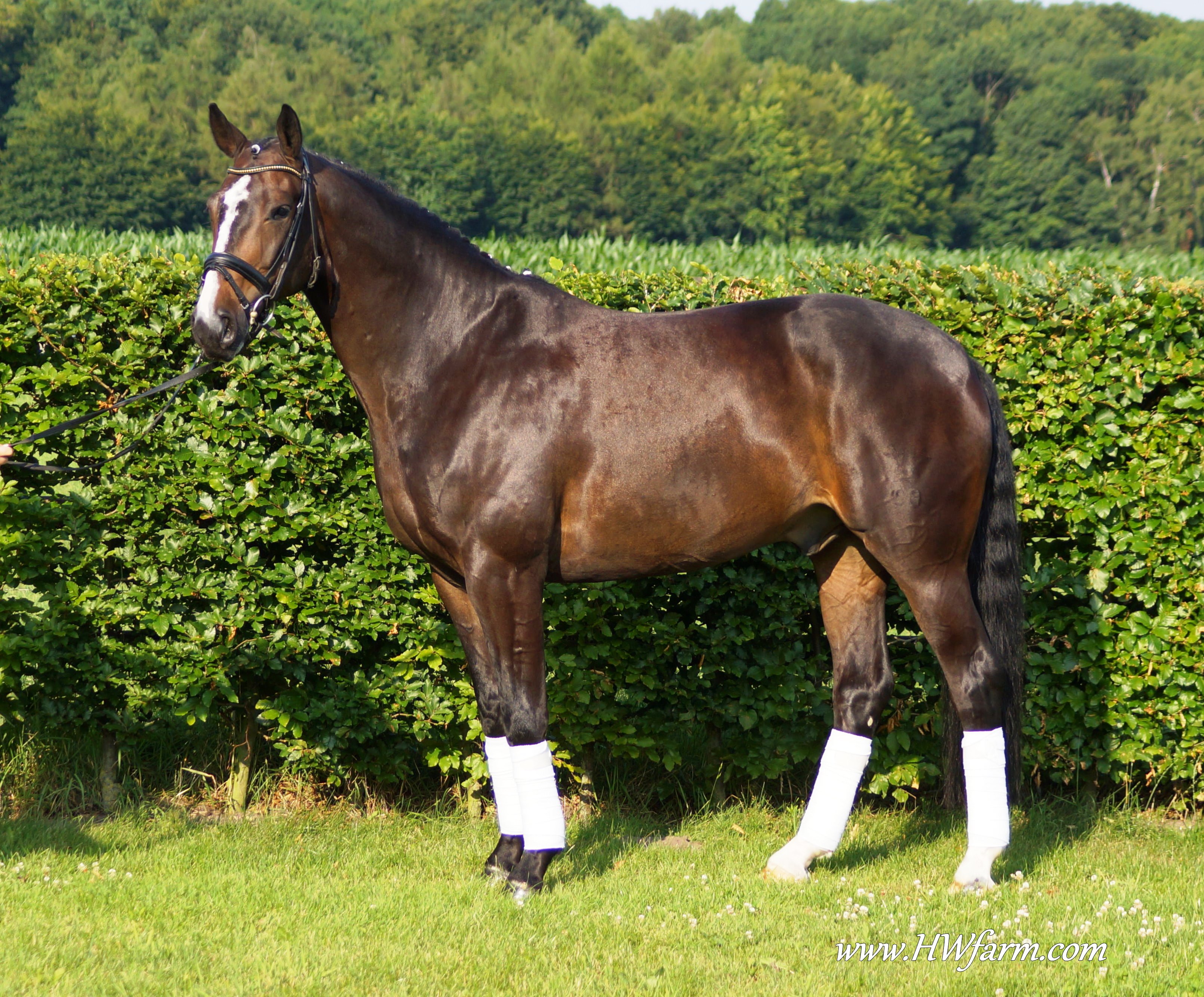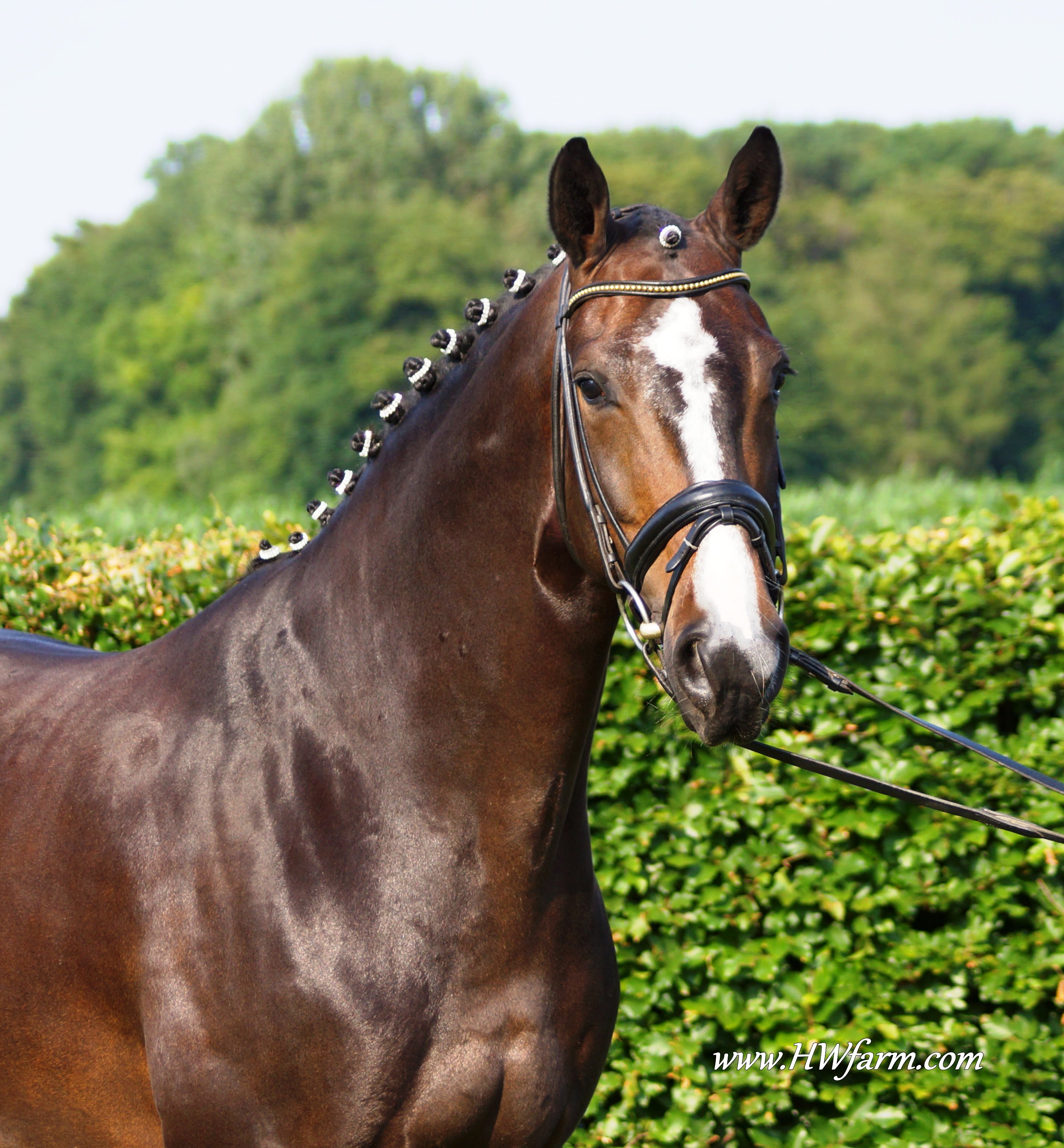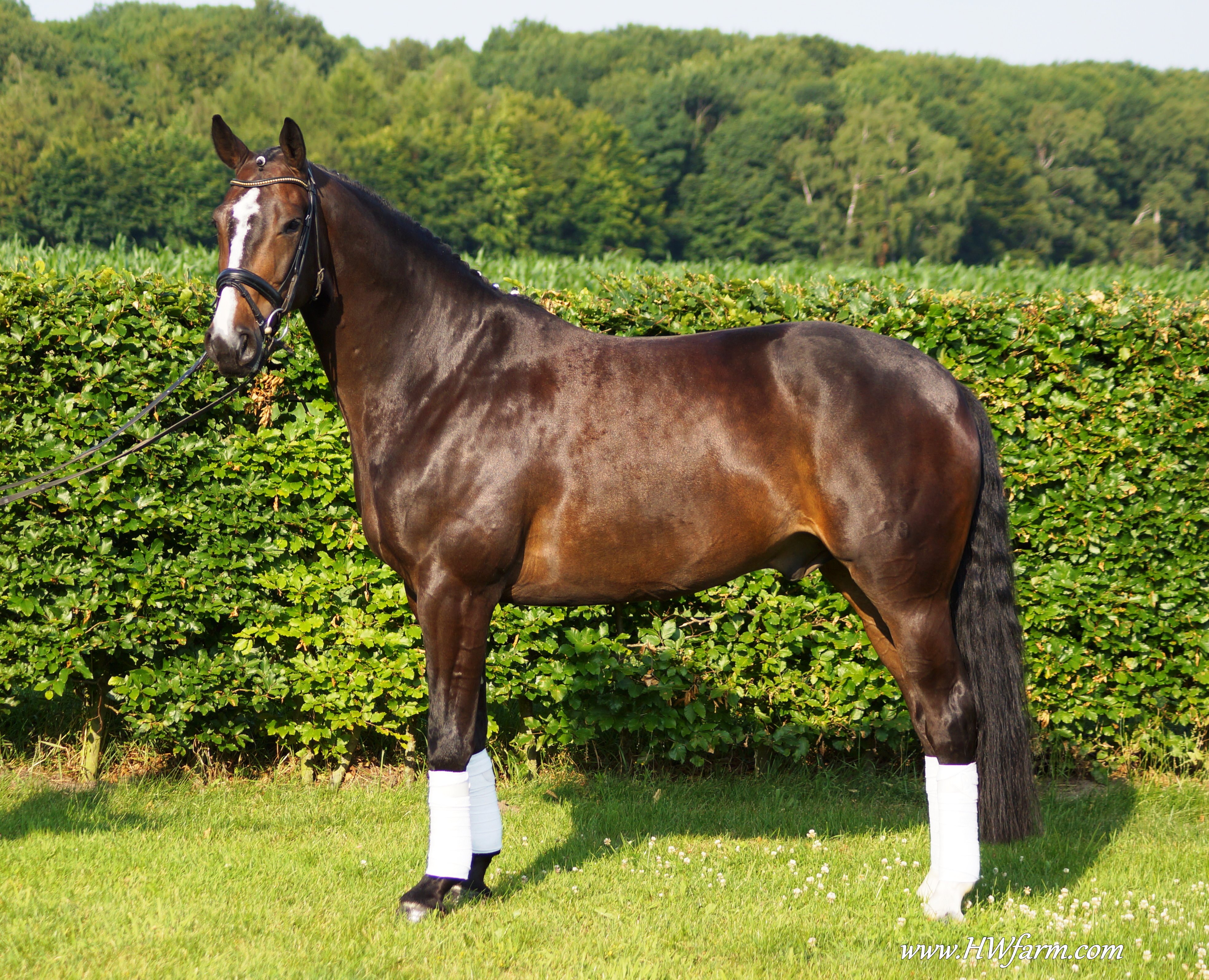 Festival HW, bay Rhineland gelding by Flatley/Grosso Z, born 2008, standing approximately 164 cm or 16.1 hands. Festival HW is a young star who knows how to impress due to his type, movement and character. His sire Flatley is owned by Isabell Werth, she had discovered him as a foal. This fascinating stallion was, with Isabell Werth was in the saddle, highly successful at the International Dressage Show. In previous years, Flatley had put his exceptional skills to the test already: In 2008 he was nominated for the VTV Championships at the NRW main in Munster. In 2009, he qualified for the National Championships. "He has good approaches to serious lessons, is willing to work and has a great character," says Isabell Werth. His first foal crop brought the former state champion and one approved son. His foals have been decorated several times with gold and achieved top prices at auctions. The first offspring under saddle are already victorious in young horse tests. The competition genes are in the blood, Flatley is by the famous Fürst Piccolo, a 100 Day Performance Test Winner! Fürst Piccolo's sire Fidermark was the vice champion of the NRW approvals in 1994 and won the Warendorf state stallion performance test with a big margin in 1995. Further successes followed in 1996. He dominated the "Optimum of Westphalian Riding Horses" sovereignty in Munster . He also became the Buneschampion in his home town of Warendorf . He then went on to win the LVM stallion championship in Munster Handorf. He has had many wins in the Prix St George and Intermediaire I under Marlies Van Baalen and he is trained by Johann Hinnemann. In 2003 he made his debut successfully at Grand Prix. His first foal crops produced sensational foals. They dominated the Westphalian Foal shows and the NRW elite foal auctions. In 1998 his first approved son Fein Sinn won the 100 day test, the first of several including the impressive moving Fürst Piccolo. He has over 15 licensed sons and many state premium mares to his credit already. He is a sire who will dominate German breeding for many years to come. He is ranked highly on the FN breeding values list. The dam sire Mephistopheles, a son of the Trakehner Mackensen derives from a Romadour II mare, establishing a blood connection to the paternal side via Rheingold. Mephistopheles sired the performance test winner Jacquare. Rembrandt in the third generation was a performance test winner with Trakehner blood. Fürst Piccolo was a premium stallion at the NRW main approval in 1999 and won the 100 day test in 2000 with high scores. He is an amazing moving stallion and his first few foal crops have dominated the Westphalian elite foal auctions.