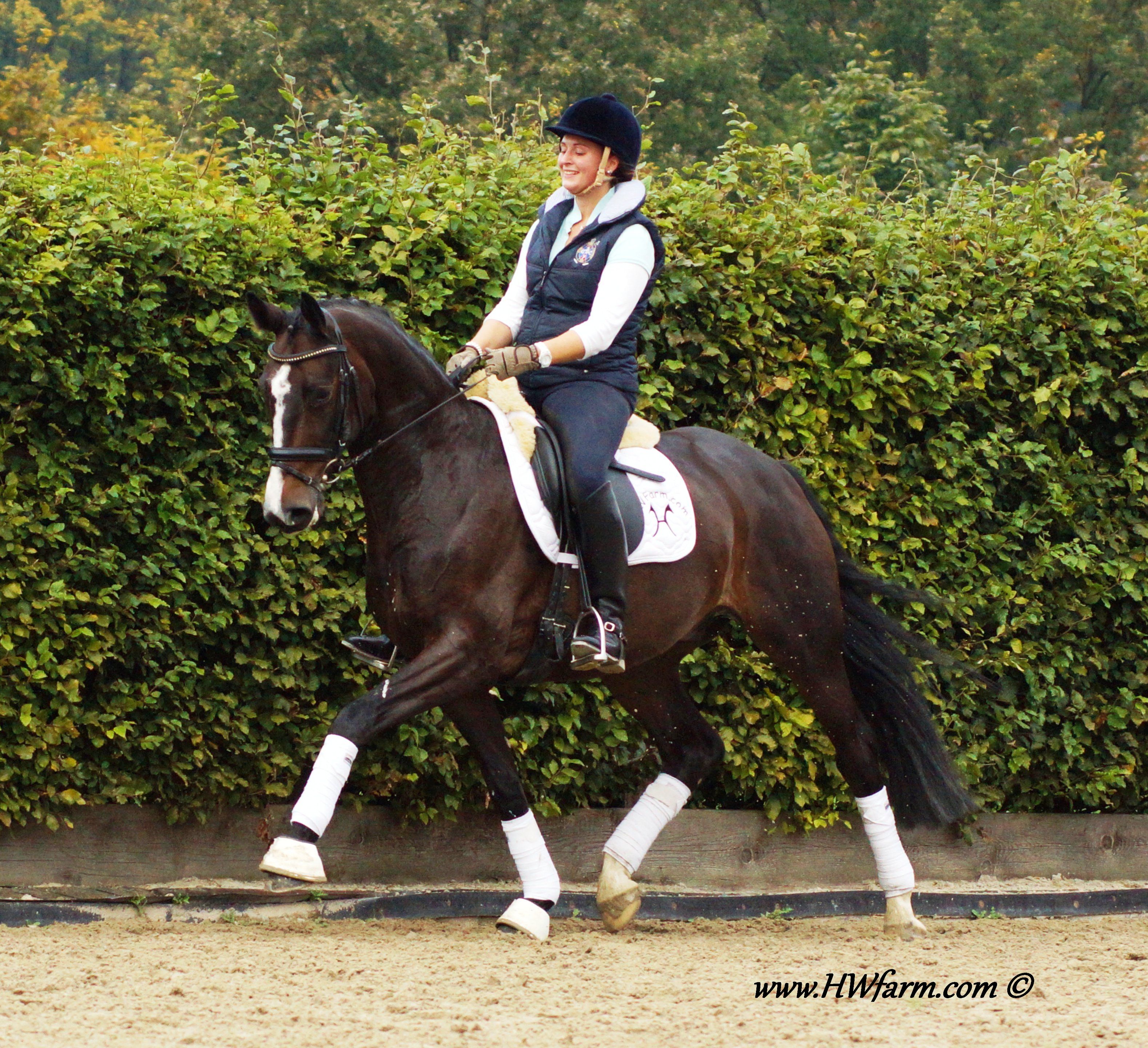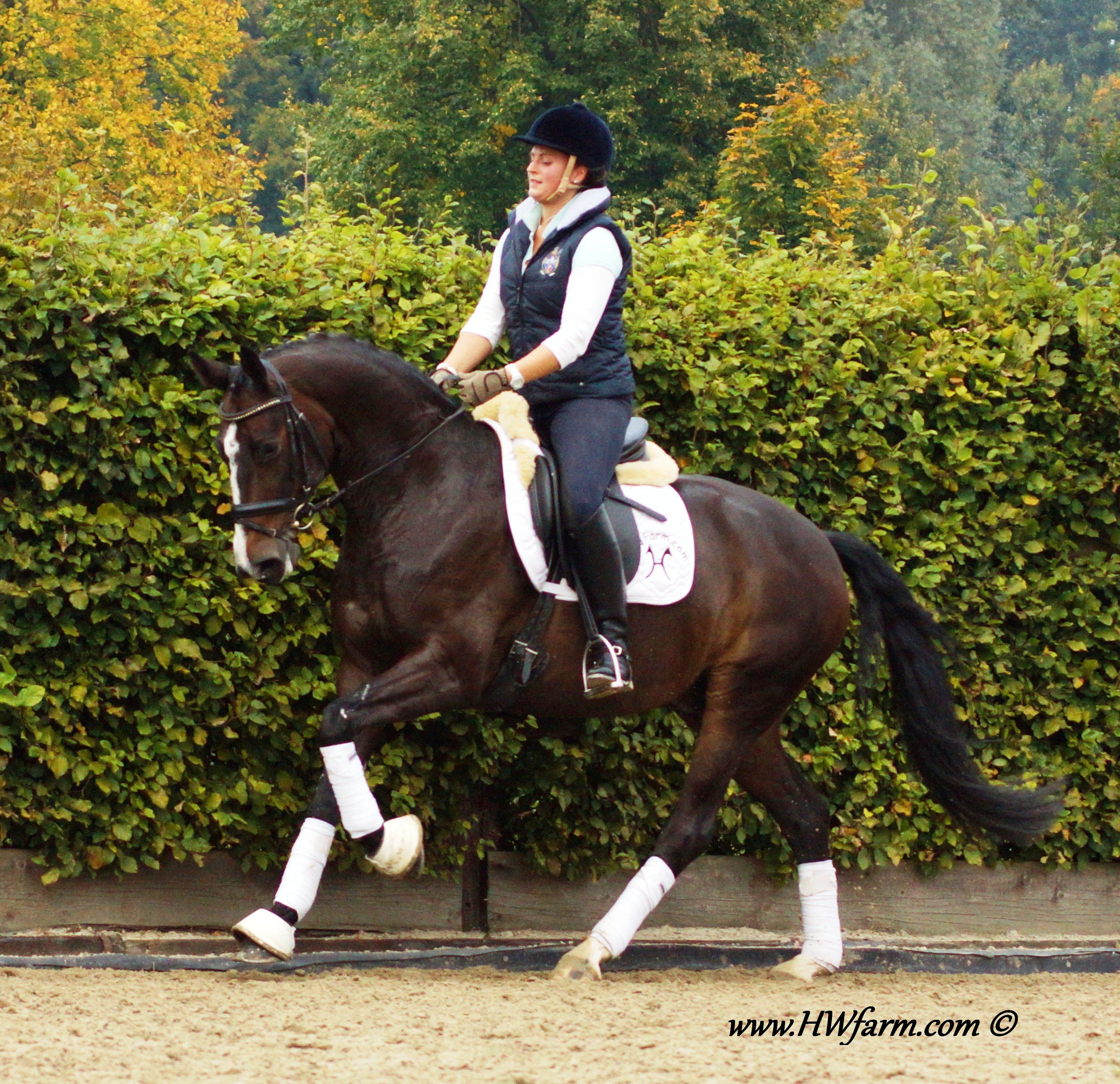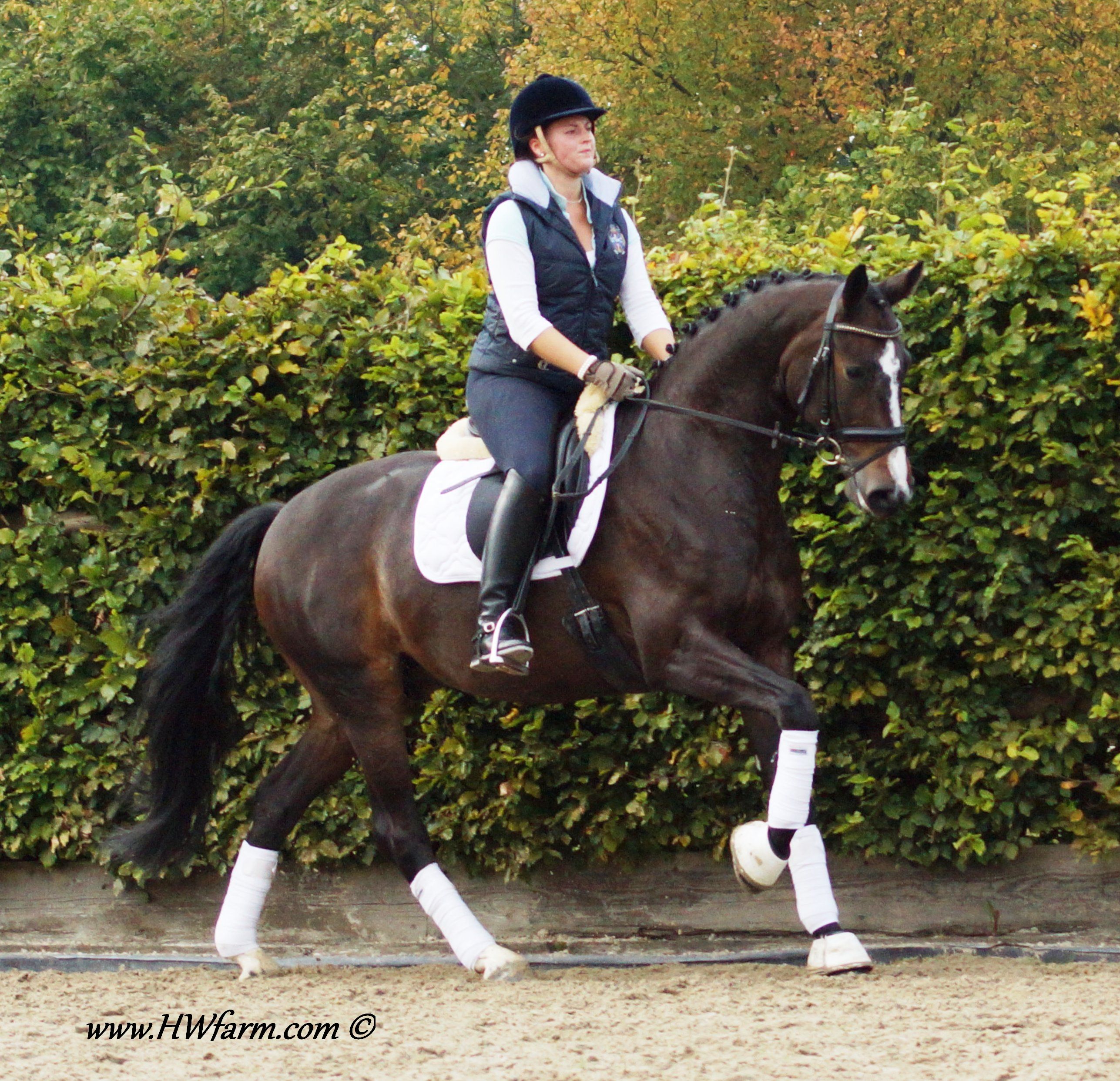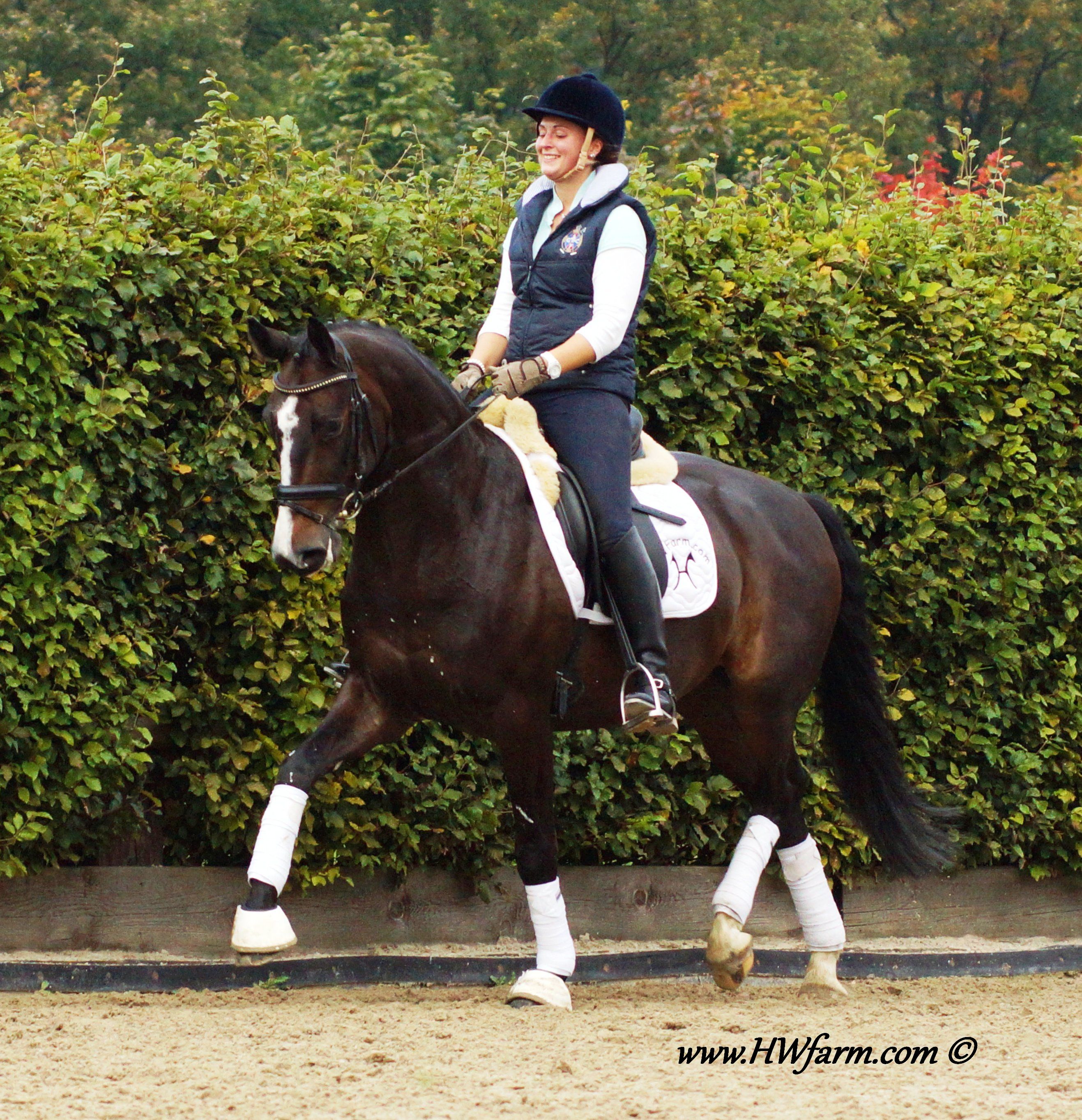 Festival HW's dam is by the famous stallion Grosso Z, he is known to be a performance sire and to produce versatile offspring with a very handable temperament and personality. FN Breeding indices as of 2001: Dressage 132 Jumping 139 A high percentage of his children are showing the upper levels with great success: 13 of his children made it up the levels in dressage, 28 in jumping, 17 are winning in three day events at S-level within Germany's borderlines. Grosso Z also has some show record of his own and placed himself in dressage up to S-level and show jumping up to M-level next to his breeding carreer. Grosso Z has produced international jumping star Goldfever and the international dressage stallion, Goethe. Goldfever has competed under Ludger Beerbaum in two Olympics, a Continental Championship, a World Cup Final and is still competing and winning! Grosso Z is a descendent of the Hanoverian `G` line and a product of Léon Melchior`s Zangersheide. Grosso Z was crowned the Champion Stallion of Belgium and the Champion Stallion of the Stallion Performance test. Festival HW is an elastic mover with lots of schwung and a free shoulder as well as a very good rhythm and balance, the perfect FEI horse. His under saddle work was carefully started in 2011, he is doing really well, already at 2nd level and his ride ability is just amazing. He is a real diamond in the rough. He is willing, forward without being hot and has an outstanding character with a really sweet demeanor. Festival HW will just need to look at you with his soft eyes and you are in love. He is ridden by a young rider as of now and will suit a young rider, adult amateur and has the gaits to impress professionals as well. The judges will love him due to his expression and "show me" attitude, take him to shows and collect your ribbons. He is fun all around and easy to manage in the stall. He is in daily training and progressing really nicely. He will enable you to fulfill your dreams with all his abilities. With this outstanding pedigree, all genes for a successful career under saddle are given. Pretty is, what pretty does? Well, this boy has it all! Festival HW has an outstanding walk, a super canter and a great rhythm and schwung in his trot with an elegant technique. He has a strong motor and a free shoulder, he is very impressive in his movements and he has the look at me attitude which will grab the attention from onlookers and judges alike. He is the modern type with an outstanding confirmation and comes in a pretty color and definitely the looks of a stallion (even as he is a gelding!). His exterior as well as his interior could not be any better. He knows how to be cross tied, he loves to get a shower, goes in the hot walker and enjoys his time in the solarium. He is an all around dream horse for the ambitioned rider. Festival HW is a true gentleman so to speak. He is sweet, cuddly, thrives for attention and has the quality stars are made of as well as a super pedigree, what more could you ask for? He is the partner you were looking for all along! X-rayed! Please contact Irene: Irene@HWfarm.com 239-772-7722 (ask for Irene, managing member of Horse Sales LLC) We take pride in answering every e-mail right away (at least at the same day) and to return each call. If you don't get a reply - please try again, our spam filter might have gotten in the way?!