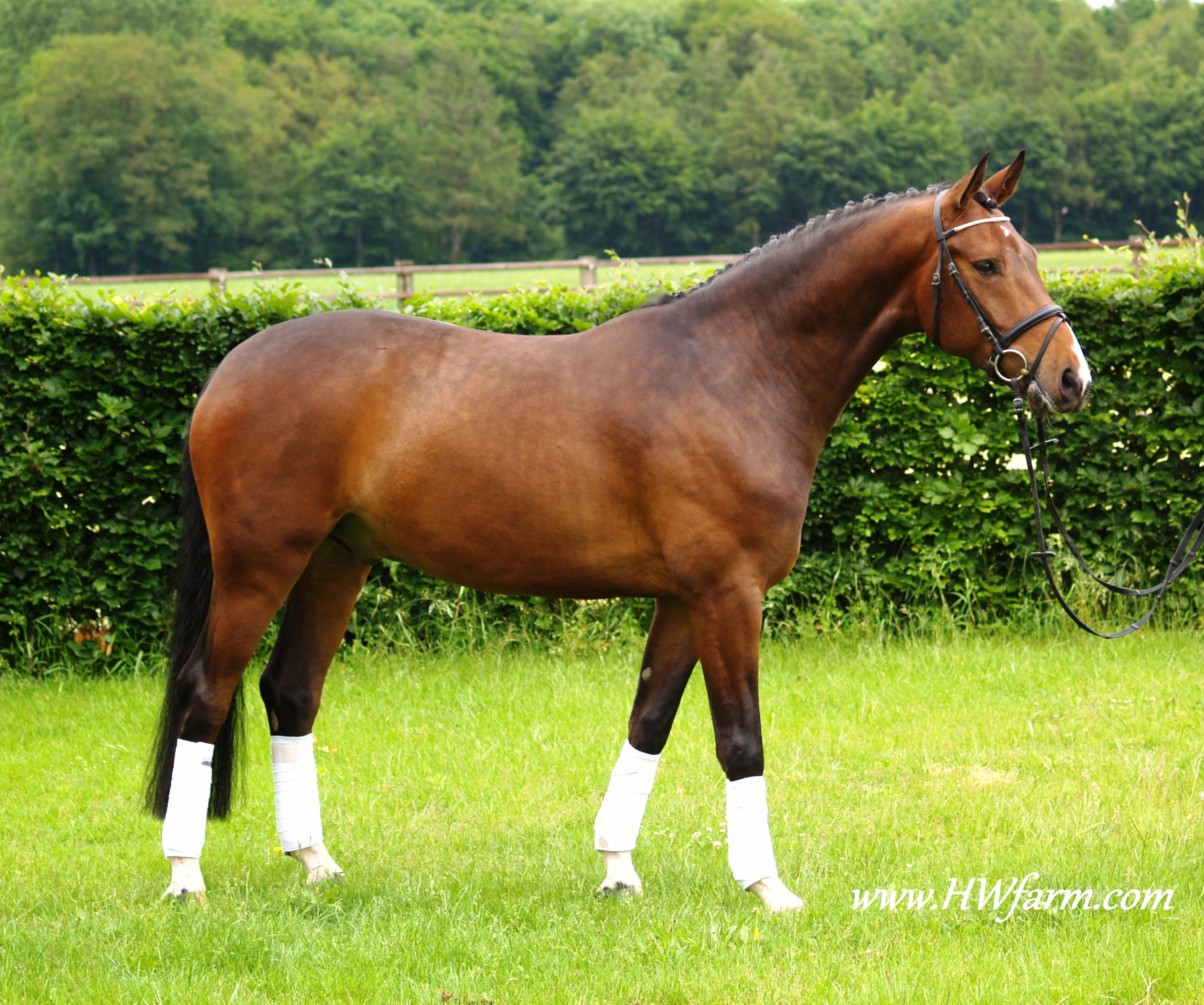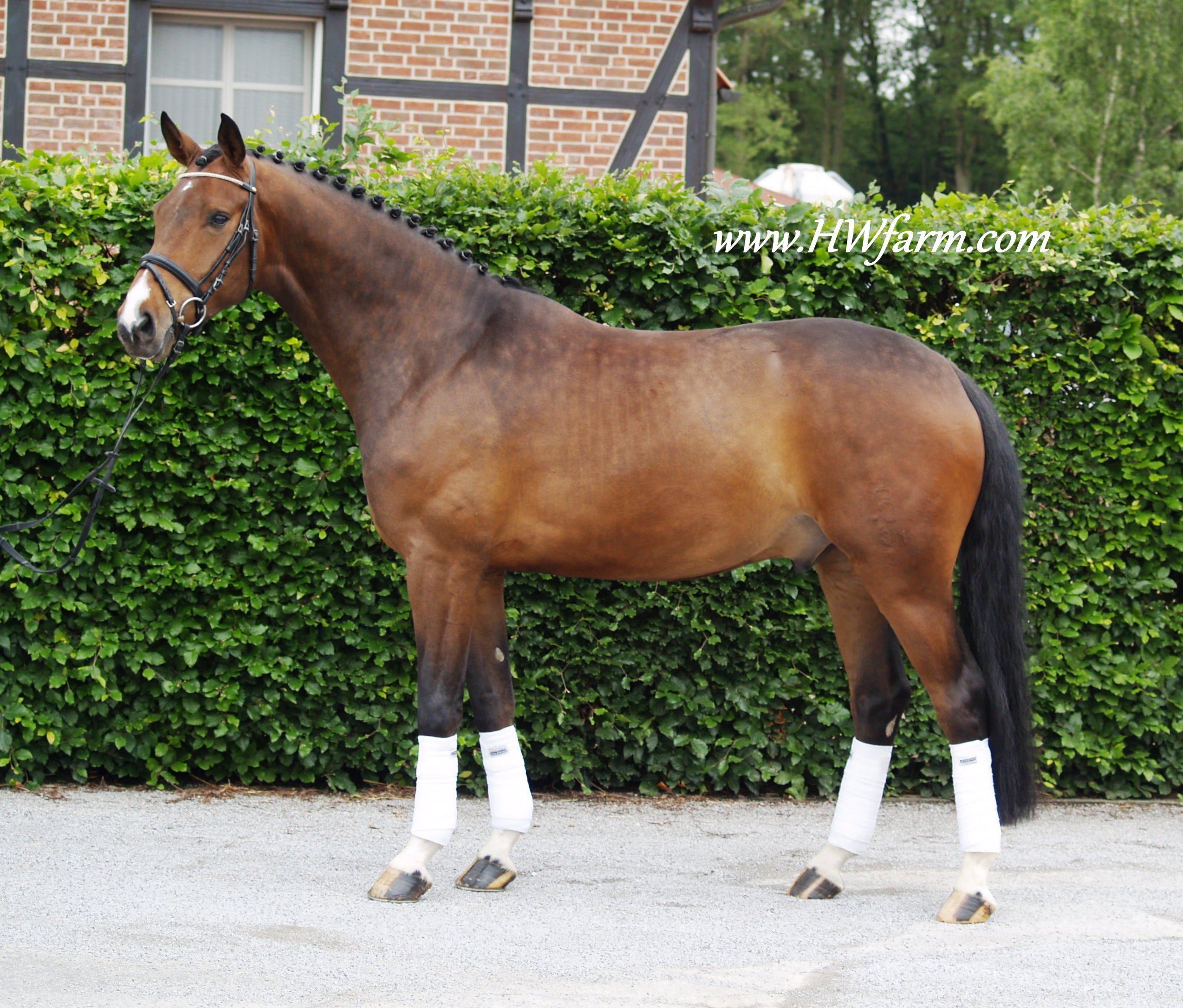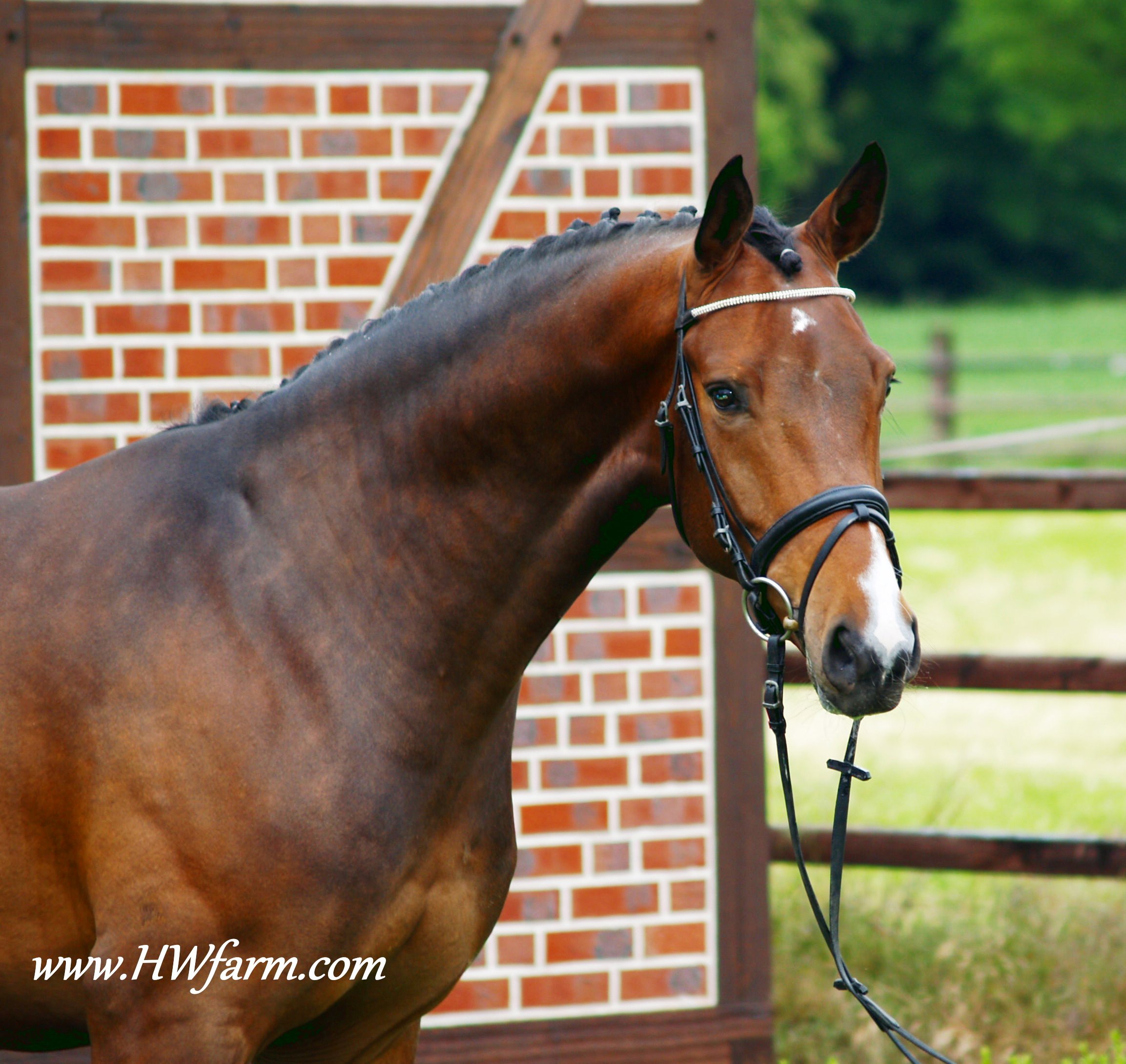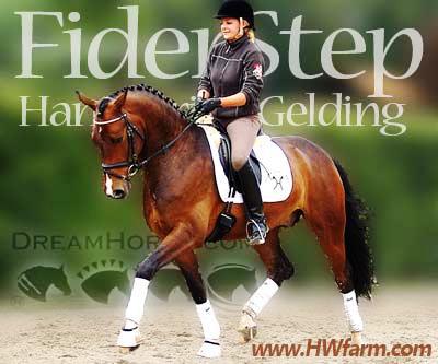 FiderStep HW, bay Oldenburg gelding by (Fidertanz / Don Cardinale), born in 2008, standing approximately 165 cm or 16.1 hands. FiderStep HW is a cute gentleman with superb genes. He is by the top star of the 14th Westphalian stallion licensing in 2004, Fidertanz. With standing ovations he left the arena and became champion stallion. His exceptional basic gaits, brilliant jumping manner, balanced nature and perfect conformation hasn't given rise to any doubt about this victory. His sire Fidermark won the stallion performance test, was National Young Horse Champion, winner of the Optimum and Grand Prix tests. His dam sire Ravallo also won the stallion performance test with a total index of 155 points (dressage 157.52 points - 1st range, jumping 127.7 points - 5th range). Frühlingstraum II has been regarded as one of the pillars of the Westphalian breeding. With Romadour II Fidertanz has been inbred three times to the famous Ramzes x. Fidertanz' dam, grand dam and grand-grand dam were state premium mares. Lots of approved stallions and highly successful sports horses derive from this damline. The Westphalian licensing champion of 2005, Fidertanz, was proclaimed Hauptpraemium Sieger during the stallion parade. Out of a group of 7 stallions, Fidertanz was selected as best stallion. Owned by Wahlers and Böckmann, Fidertanz scored well in his performance test and the Oldenburg Verband was especially impressed with his first crop of foals. FiderStep HW's dam is by the outstanding Don Cardinale (Donnerhall/Feinbrand/Feiner Stern). The black premium Oldenburg stallion has a special aura. On the spot, Don Cardinale had huge success in breeding. Five licensed sons, Verband and state premium mares, Elite foals at auctions and show winners prove his hereditary powers. Don Cardinale has the genes of his father Donnerhall, who's himself a master of the inheritance to be. This is one of the best dressage pedigrees in the world. In 2001, Don Cardinale finished the stallion performance test in Adelheidsdorf in Leistugsklasse I, with a dressage index of 128 points. In 2006 Don Cardinale was entered in the breeding book with 142 points which makes him one of the best dressage stallions in Germany. The super rideability of the descendants of Don Cardinale, are in really high demand. FiderStep HW is a picture perfect horse, you could not paint him any better He is sired by the famous Fidertanz and his genes will enable him to be a successful competitor in the show ring. FiderStep HW knows how to set himself in the picture and he is as proud as can be. This boy is sweet and the absolute fulfilling of all dreams a rider could have. Beautiful, elegant and able to go up all the levels in no time, the ribbons will be his. This is a once in a lifetime horse! His temperament is exactly the way we like it. He's safe, sane and willing. Channeled in the right direction, he will be able to do a sensational piaffe and passage later on in life. He is working well under saddle, improving quickly and already solid at 2nd level. He will be the most attractive horse at the show grounds. Take him to clinics and show him off, you can be assured to make an impression and the judges will remember him. Pretty is what pretty does? Ok, than look at his video clip and pictures. His rider is in love with him and can't wait to ride him every day. His