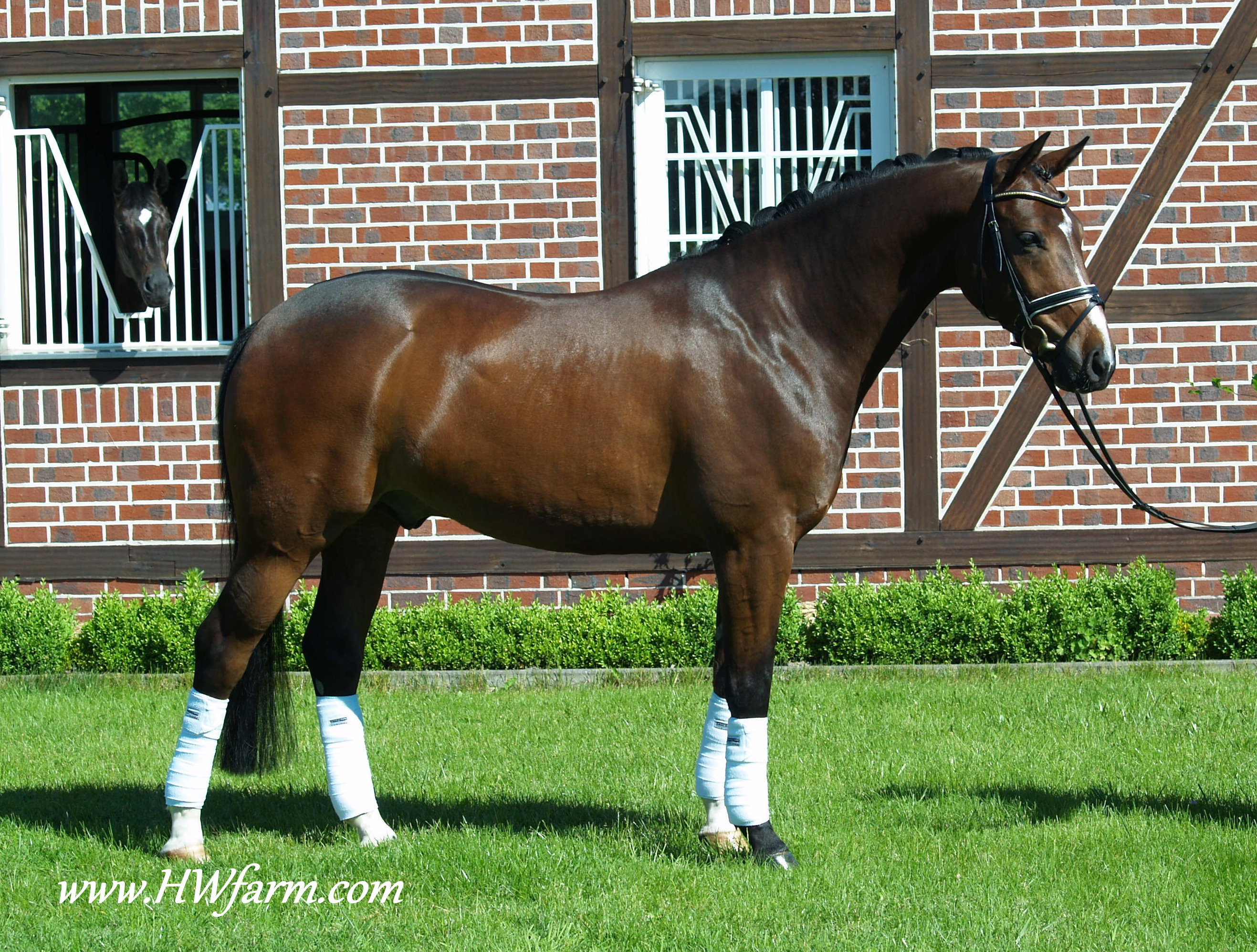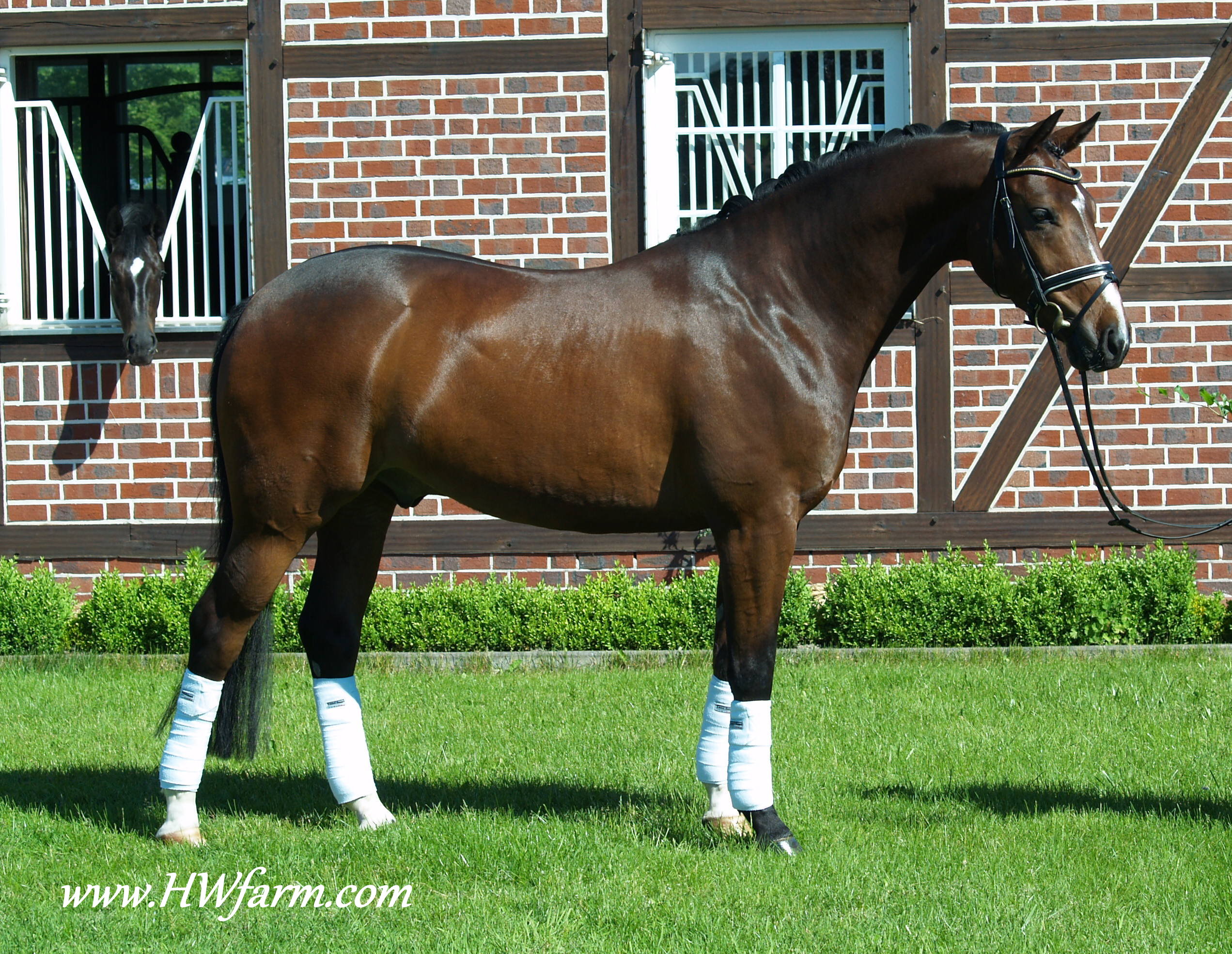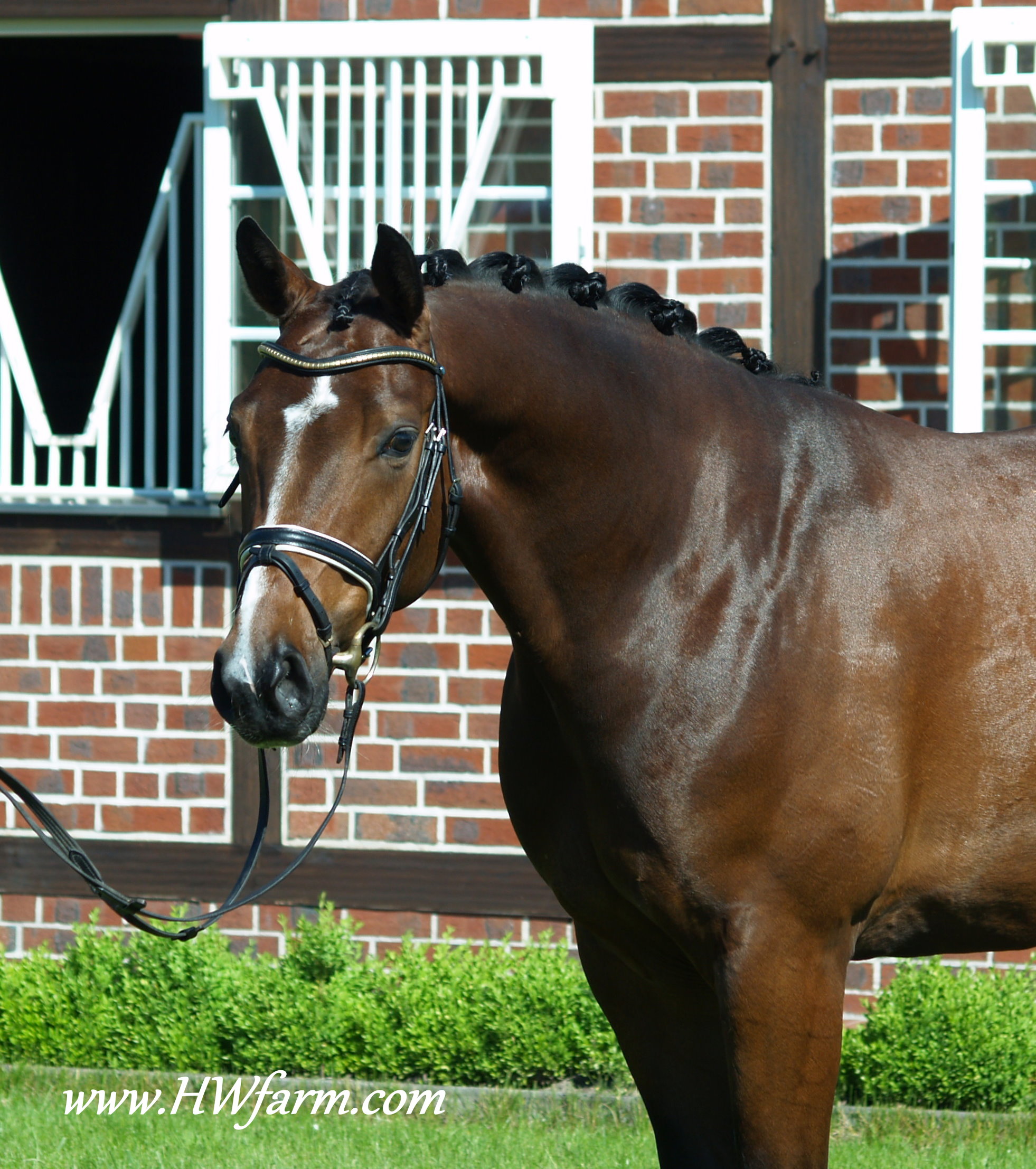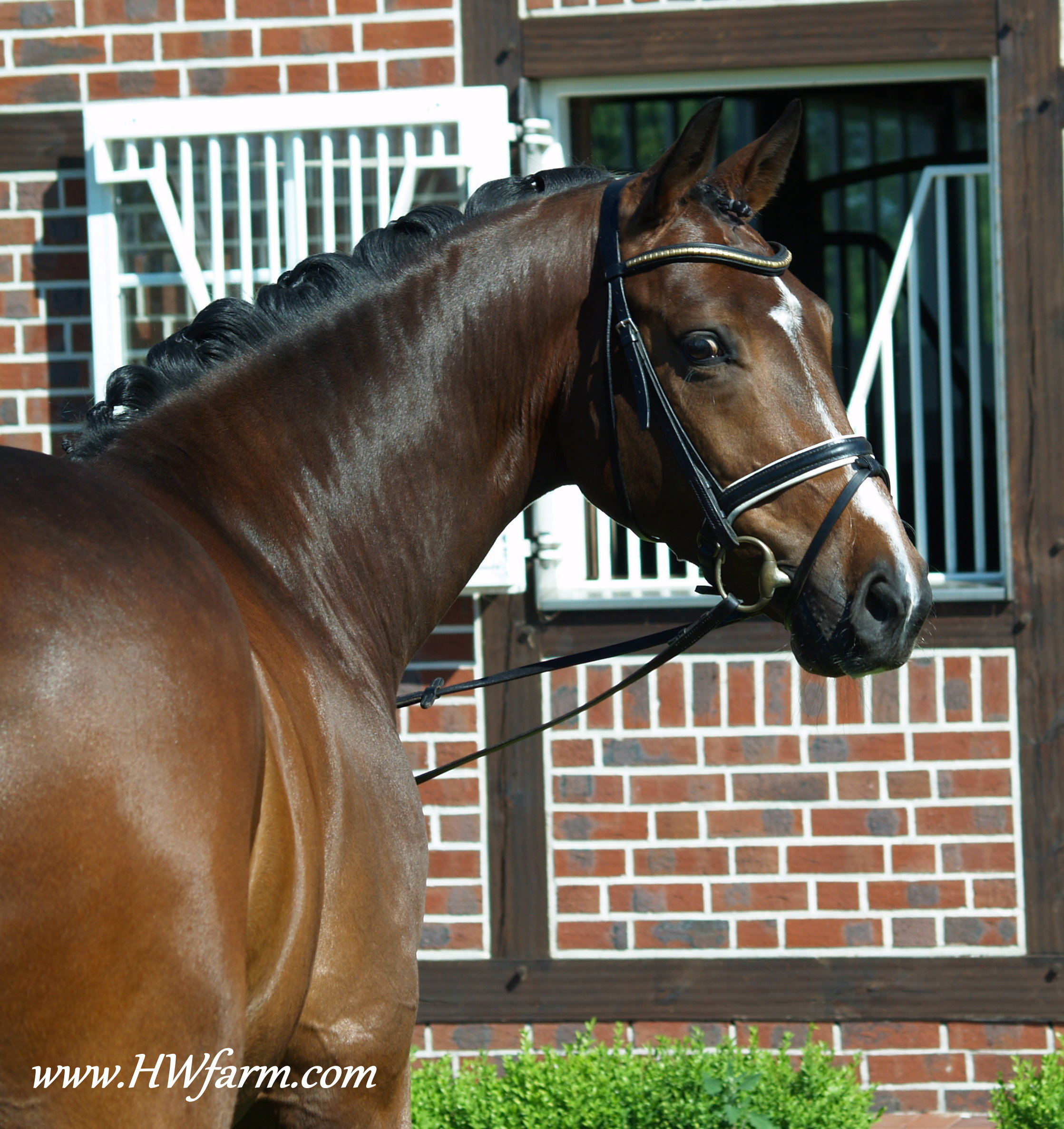 Fine Design HW, bay Rhinelander gelding by Fidertanz/Donnerschlag, born in 2007, standing approximately 163 cm or 16 hands Nobel and elegant, Fidertanz genes merge with Donnerhall heritage. Fine Design HW is a charming young gentleman with great bloodlines. He is by the top star of the 14th Westphalian stallion licensing in 2004, Fidertanz. With standing ovations he left the arena and became champion stallion. His exceptional basic gaits, brilliant jumping manner, balanced nature and perfect conformation hasn't given rise to any doubt about this victory. His sire Fidermark won the stallion performance test, was National Young Horse Champion, winner of the Optimum and Grand Prix tests. His dam sire Ravallo also won the stallion performance test with a total index of 155 points (dressage 157.52 points - 1st range, jumping 127.7 points - 5th range). Frühlingstraum II has been regarded as one of the pillars of the Westphalian breeding. With Romadour II Fidertanz has been inbred three times to the famous Ramzes x. Fidertanz' dam, grand dam and grand-grand dam were state premium mares. Lots of approved stallions and highly successful sports horses derive from this damline. The Westphalian licensing champion of 2005, Fidertanz, was proclaimed Hauptpraemium Sieger during the stallion parade. Out of a group of 7 stallions, Fidertanz was selected as best stallion. Owned by Wahlers and Böckmann, Fidertanz scored well in his performance test and the Oldenburg Verband was especially impressed with his first crop of foals. Fine Design HW's dam is by Donnerschlag. For many years the main sire at St. Ludwig, Donnerschlag left his distinctive mark on an era of breeding at the respected stud. His career had many high points,". . . enough to fill a book." At his 1990 stallion performance test, he showed a multitude of talents. In 1993 he was winner of a finals class at the Federal Championship for dressage horses, at Manheim. Donnerschlag posted many wins and placings at Grand Prix and World Cup , Intermediare level. His sire, Donnerhall was a stallion of legendary proportions, who achieved the unbelievable sire production index for dressage of 274 points! His dam, Pirola was a full sister to Pik Bube I and II. Bred to Raphael she bred the stallion Regazzo, now in Sweden. Her dam line is based on international jumper Dohlenfürsten. As a sire Donnerschlag has excelled--he has over two dozen offspring competing in "S" dressage, and a large number of gold medal and high-priced auction foals. He also has a large number of approved sons, including Dream of Heidelberg I and II, Donnerwind, and many more. His son Fontainbleu is a dressage champion in France. Donnerschlag's daughter Dona won the Rheinland elite mare show in 1998, and Donna Doria the Oldenburg elite mare show and the state riding championship. Fine Design HW is a typical Fidertanz son, he will catch your attention with his beauty and elegance. A true eye candy. He has three very good basic gaits. Stunning uphill canter, the trot swings nicely through his body, with an active hindleg and free shoulder. His walk is always rhythmic, no matter if collected or extended walk. Everybody will love this one, the judges and the audience alike will be excited to see him. He is highly successful in L-Dressage (equivalent to 2nd level, in the snaffle and double bridle), with scores up to 7.4 and 2nd place in a group of 42 horses. He is a horse willing to learn daily, very sweet and with his super work ethic and attitude, a horse that fascinates his rider every day of the year. He is so much fun. Even kids bring him out to and back in from the pasture in Germany, a small horse, with a very big heart. The rider in the video is 174 cm or 5.8' and looks just fine on him as well as he'd truly be a lady's horse for a smaller person if desired. He's looking for his life partner to go out and keep up his successful competition record. He is truly uncomplicated on the ground and under saddle. He's just a sweetheart all around. Fine Design HW is suitable for an amateur, young rider or professional alike to continue his training and go on from there. He is easy to easy to sit and behaves like a much older horse. He gets along well with other horses and loves human attention. He is very level headed. He wants to be in your pockets all the time and thrives for his personal grooming time. Loads and bathes and is pleasant all around as well as a super partner. He is ready to go to his new owner and impress with his looks and potential for the upper level. This boy will go his way up the levels with ease and fun, hopefully you will be the one guiding him there and getting all the nice compliments you are looking for. X-rays on file! Contact Irene at: Irene@HWfarm.com 239-772-7722 (ask for Irene, managing member of Horse Sales LLC) We take pride in answering every e-mail right away (at least at the same day) and to return each call. If you don't get a reply - please try again, our spam filter might have gotten in the way?!