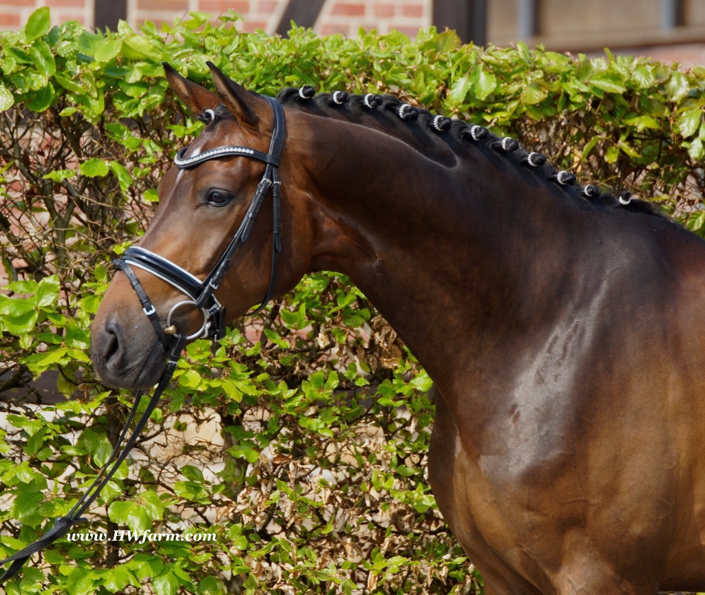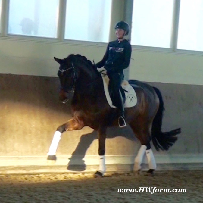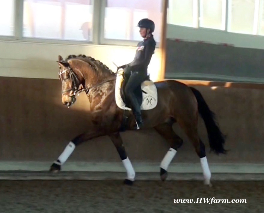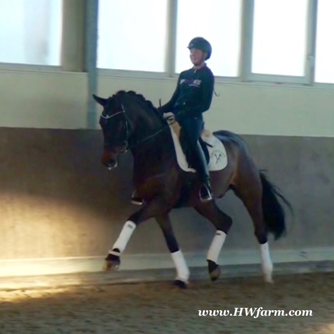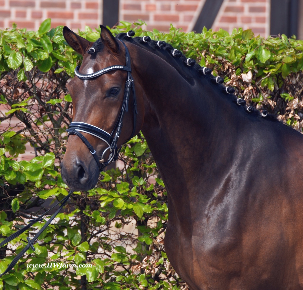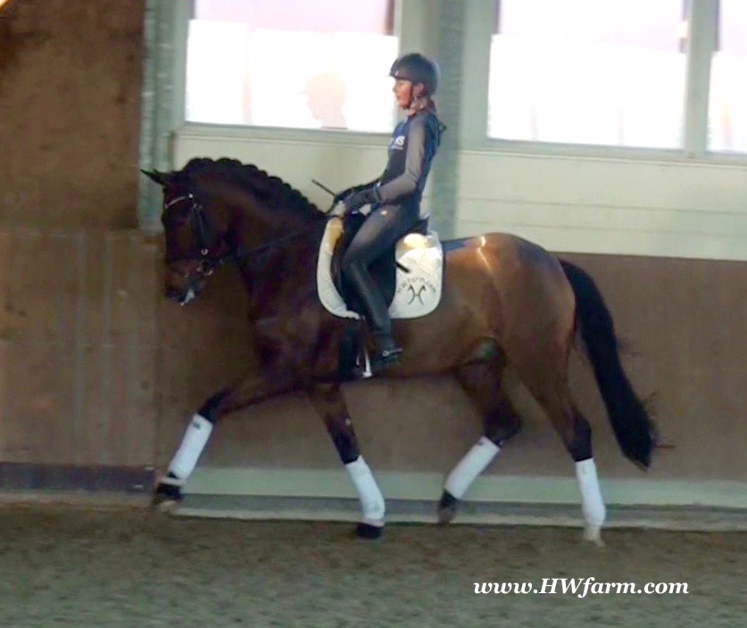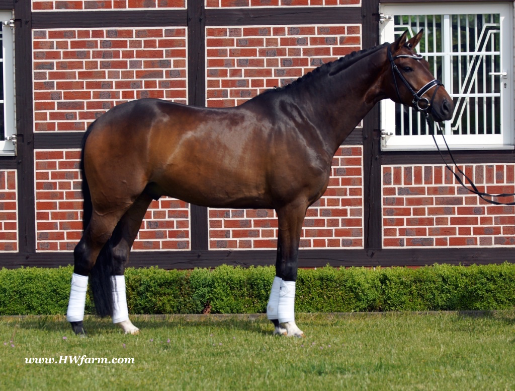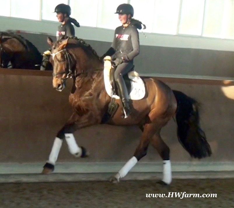 Dimension himself (by Donnerhall x Akzent II), passed away at age 22. Bred by Brigitte Pahl, Dimension was licensed in Munster in 1993. He competed up to M level and sired two licensed sons, Diderot and Don Camillo. Dimension was successful up to 3rd level dressage and 2nd level jumping, he was licensed in Münster-Handort and stood with the Oldenburg stallion station Höffmann. Dimension produced highly sought after offspring, a 1996 colt, named Der-rik, sold at Deutsche Mark 38.000 and the cold Doudly sold at Deutsche Mark 44.000, really super high prices, especially concerning the earlier times in the horse world. Two of his sons are licensed, Diderot and Don Camillo. Dimension had around 300 actively competing offspring, also the 4th level dressage horses Don Herny/Johan Vanthienen and Donar Ass/Carline Mümken. Dimension (full brother to De Niro): Fine Magic HW makes all dreams come true. He is a horse of highly sought after quality and a super fancy mover, who knows to impress due to his type, movement and work ethic, combined with an excellent self carriage and balance! Truly beautiful in- and exterior, with a super nice, mesmerizing head. Fine Magic HW is a very sweet boy and has the talent to do it all. With his sane attitude, he's easy to ride and trustworthy. He is an elastic mover with lots of impulsion, has a free shoulder as well as a very good rhythm, the perfect future FEI horse. He is truly breathtaking! This boy has a very active hind leg, reaching far under his belly. Check out his dynamic trot and beautiful uphill canter! Super smart, far advanced for his age and always willing to learn new things, he's already at 2nd level! Amazing lofty, well balanced counter canter and fantastic lateral work come easy to him. Fine Magic HW, or call him Magic Mike in the barn - if you'd like, will climb up the levels with ease. All exercises come naturally to him, as he has the built, movement and athleticism to work in dressage and he sure will excel in piaffe and passage. This extremely talented gentleman has international potential. Fine Magic HW will just look at you with his soft eyes and cast his love spell. The judges will recognize him due to his expression and "show me" attitude, take him to shows and collect your ribbons. Show him off at clinics and get yourself noticed. He is fun all around. He is in daily training and progressing really nicely, raised and correctly handled at the same barn all his life, in knowledgable hands and daily attention to all details. He grew up in a small stallion herd and is used to paddock time and was socialized correctly. Fine Magic HW is easy to handle in hand and under saddle, just an all around super baby, looking for his new mommy. The goal of HW Farm is, to raise and train highly talented young horses in Germany for riders in the USA and all over the world. Fine Magic HW, is a phenomenal dressage gelding, but is super athletic and would also excel in other disciplines. X-rays on file! Please contact Irene: Irene@HWfarm.com 239-772-7722 (ask for Irene, managing member of Horse Sales LLC) We take pride in answering every e-mail right away (at least at the same day) and to return each call. If you don't get a reply - please try again, our spam filter might have gotten in the way?!