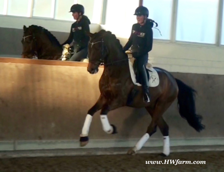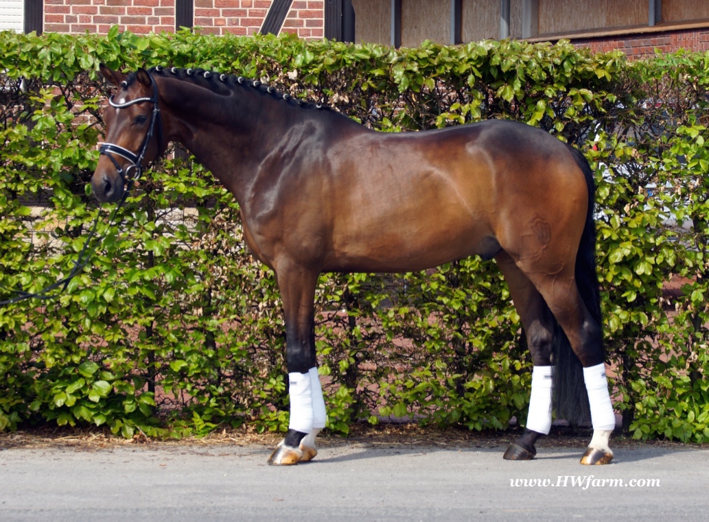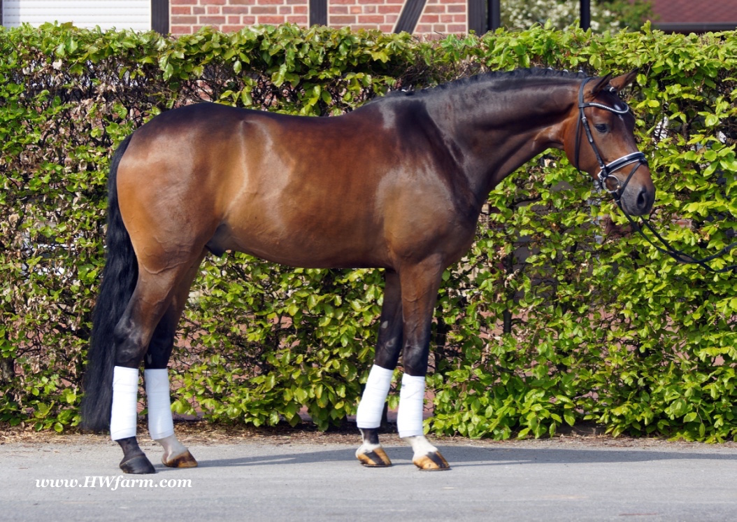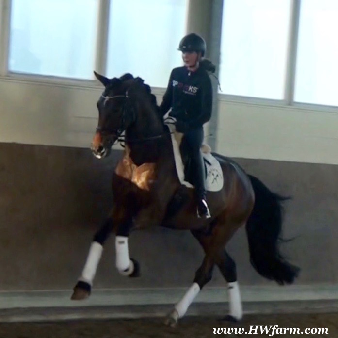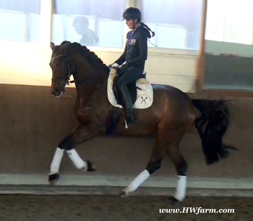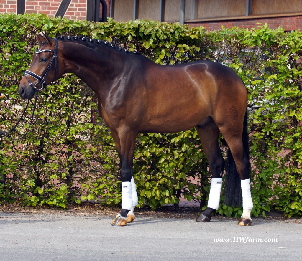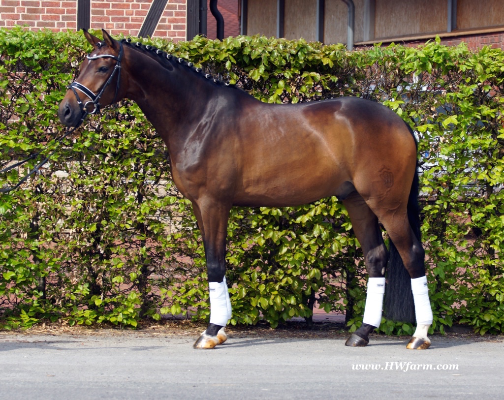 Dimension himself (by Donnerhall x Akzent II), passed away at age 22. Bred by Brigitte Pahl, Dimension was licensed in Munster in 1993. He competed up to M level and sired two licensed sons, Diderot and Don Camillo. Dimension was successful up to 3rd level dressage and 2nd level jumping, he was licensed in Münster-Handort and stood with the Oldenburg stallion station Höffmann. Dimension produced highly sought after offspring, a 1996 colt, named Der-rik, sold at Deutsche Mark 38.000 and the cold Doudly sold at Deutsche Mark 44.000, really super high prices, especially concerning the earlier times in the horse world. Two of his sons are licensed, Diderot and Don Camillo. Dimension had around 300 actively competing offspring, also the 4th level dressage horses Don Herny/Johan Vanthienen and Donar Ass/Carline Mümken. Dimension (full brother to De Niro): Fine Magic HW makes all dreams come true. He is a horse of highly sought after quality and a super fancy mover, who knows to impress due to his type, movement and work ethic, combined with an excellent self carriage and balance! Truly beautiful in- and exterior, with a super nice, mesmerizing head. Fine Magic HW is a very sweet boy and has the talent to do it all. With his sane attitude, he's easy to ride and trustworthy. He is an elastic mover with lots of impulsion, has a free shoulder as well as a very good rhythm, the perfect future FEI horse. He is truly breathtaking! This boy has a very active hind leg, reaching far under his belly. Check out his dynamic trot and beautiful uphill canter! Super smart, far advanced for his age and always willing to learn new things, he's already at 2nd level! Amazing lofty, well balanced counter canter and fantastic lateral work come easy to him. Fine Magic HW, or call him Magic Mike in the barn - if you'd like, will climb up the levels with ease. All exercises come naturally to him, as he has the built, movement and athleticism to work in dressage and he sure will excel in piaffe and passage. This extremely talented gentleman has international potential. Fine Magic HW will just look at you with his soft eyes and cast his love spell. The judges will recognize him due to his expression and "show me" attitude, take him to shows and collect your ribbons. Show him off at clinics and get yourself noticed. He is fun all around. He is in daily training and progressing really nicely, raised and correctly handled at the same barn all his life, in knowledgable hands and daily attention to all details. He grew up in a small stallion herd and is used to paddock time and was socialized correctly. Fine Magic HW is easy to handle in hand and under saddle, just an all around super baby, looking for his new mommy. The goal of HW Farm is, to raise and train highly talented young horses in Germany for riders in the USA and all over the world. Fine Magic HW, is a phenomenal dressage gelding, but is super athletic and would also excel in other disciplines. X-rays on file! Please contact Irene: Irene@HWfarm.com 239-772-7722 (ask for Irene, managing member of Horse Sales LLC) We take pride in answering every e-mail right away (at least at the same day) and to return each call. If you don't get a reply - please try again, our spam filter might have gotten in the way?!