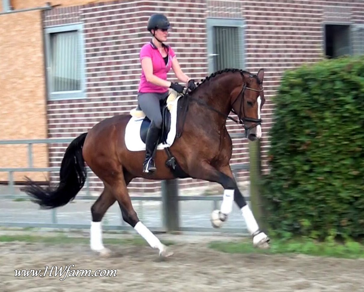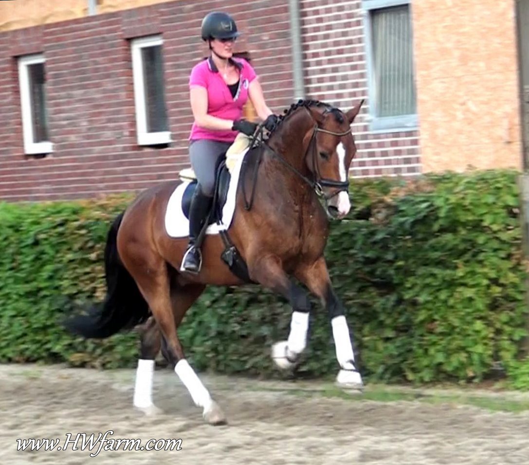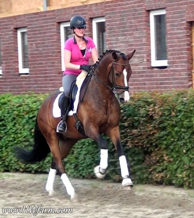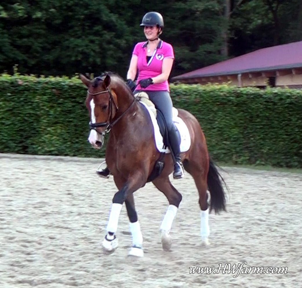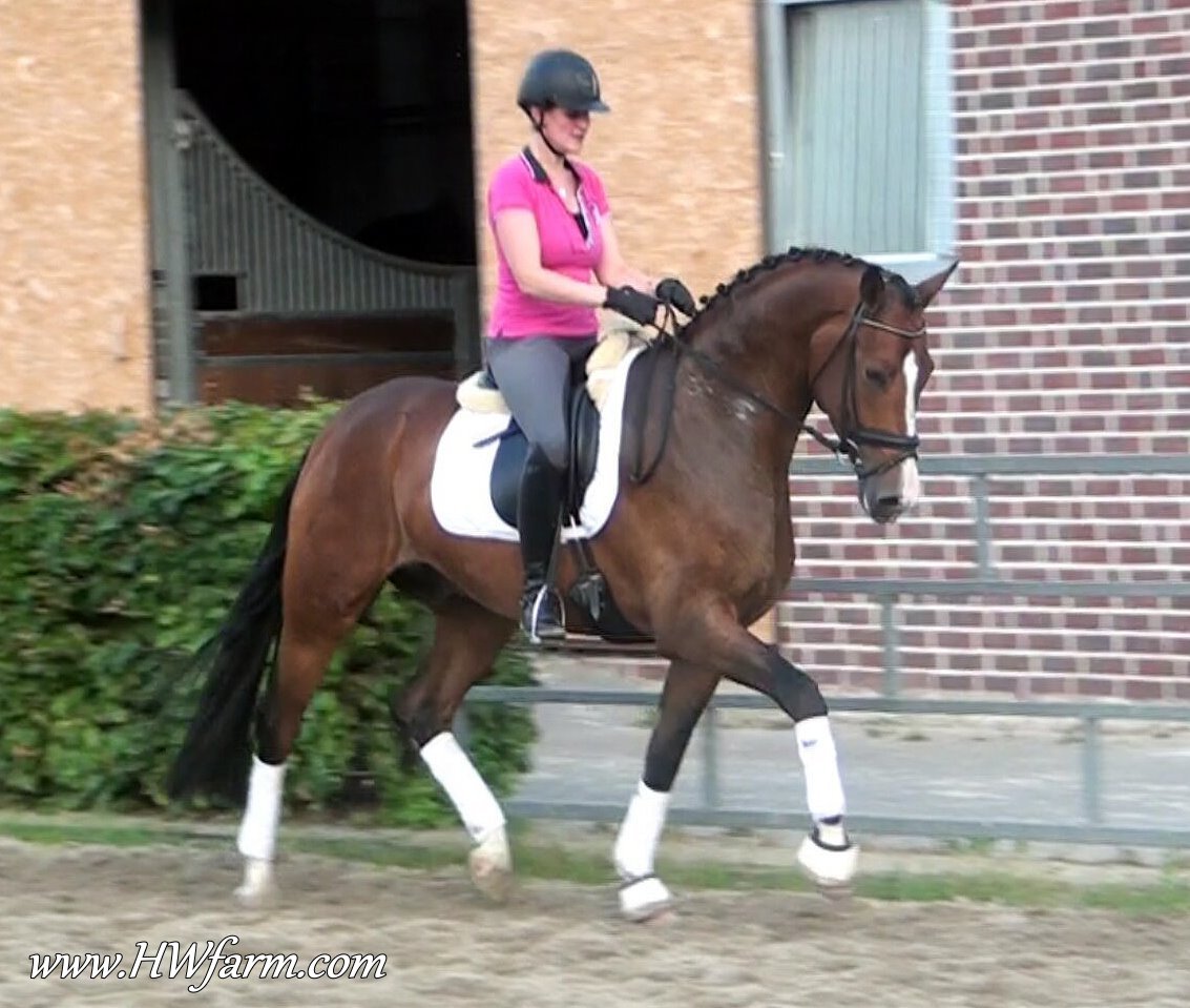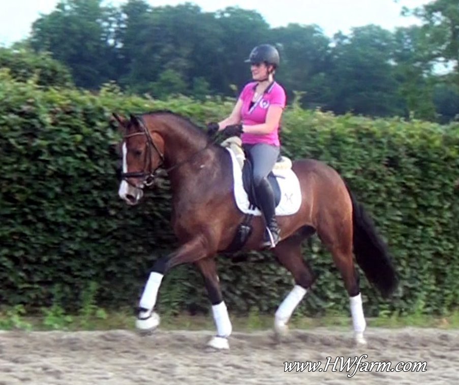 FineStep HW, Westphalian gelding by Florenciano/Medici, born in 2009, standing approximately 168 cm or 16.2 hands. FineStep HW is a noble and elegant young gentleman. He is by the top star Florenciano. Florenciano's sire Florencio I (Florestan/Weltmeyer), became the 2003 Vice Bundeschampion of four year old stallions after winning the Westphalian Champion title in Münster-Handorf. In 2004, after winning the Dutch Pavo Cup under Hans-Peter Minderhoud/NED, he took the title World Champion of five year old dressage horses in Verden with a record score: overall 9.8, with a 10.0 for his canter. In 2005 they repeated this feat at the same venue in the class for six year olds with a total score of 9.5. Florencio I was the sire of numerous top priced auction foals and the champion colt at the German Foal Championships in Lienen. In 2004 the Oldenburg Verband awarded Florencio the main premium with emphasis on dressage. Along with Florenciano, five other sons from his first crop were also licensed in Oldenburg and Westphalia. The dam line has its origins in the Netherlands . The dam, St.Pr.St. Lundi T, won eight M-level dressage tests and was awarded dressage performance mare status. The dam's sire, Havidoff, who is by the Grand Prix stallion, Clavecimbel, received the Dutch "keur" status. Many of his off-spring have been successful up to Grand Prix level such as his licensed son, Paganini. The granddam, Anuska, produced several off-spring that were successful in dressage rings. This dam line also produced the licensed stallion, Zoöloog (by Gondolier), who placed in international dressage, the world class jumper, Mister Spoon (by Zadoc)/Candice King/USA and Nietje (by Ziehim), who won gold at the 2006 WEG in Aachen in the carriage and four class with the Dutch team, as well as numerous State premium mares and auction horses. Performance record: 2010 - a year for sport In addition to wins in dressage competitions of class M ** qualified Florenciano at Hermannsburg in May 2010 for the German Federal Championships of the six year old dressage horses in Warendorf. In addition to the sporting success Florenciano has thus all the conditions associated with the breed recognition complies with flying colors. Genetic sit up he was again. With many auction foal auction on German courts and the winning colt of the mare and foal show in Ratingen, he made repeated attention. 2009 - a year for breeding Because of a very good first crop which consequently increased demand from breeders, Florenciano was made available to breeders for the entire breeding season and only competed in sport occasionally. He was highly successful in these few shows, winning and placing up front in novice (A) and elementary (L) level tests for young dressage horses. 2008 - Florenciano won the Optimum! In the year 2008, Florenciano enhanced his record in sport. With his permanent rider and trainer, the Olympic Game winner Ingrid Klimke in the saddle, he sovereignly won his first novice (A) level test for young dressage horses with a score of 9.0! This victory was immediately followed by another; Florenciano and Ingrid Klimke won the prestigious Optimum, Westphalian's traditional benchmark test for four-year old German riding horses with a total score of 9.0! 2007 - Florenciano puts on a great performance! Florencio finished his 30-day test in Münster-Handorf as the best in the class: His exceptional rideability was rewarded the highest score, a 9.75. But in the other areas as well, this strong type stallion received top scores above 9.0: Character 9.25, trot 9.13, canter 9.19. With a score of 8.13 in jumping, Florenciano proved his over-average talent in this area as well and his walk was given a 7.63. These scores put him at the head of the class. Breeding record: Florenciano's first foal crop was even better than we had dared to dream. At the 19th NRW Pedigree Auction, his colt, Four Season, was the most expensive dressage foal. Four Season Two youngsters qualified for the German Foal Championships. Even Klaus Balkenhol, the Olympic winning rider, bought a little dream mover by Florenciano. "The quality of all of his crops is impressive. The uniformity of the traits Florenciano passes on, his wonderful looks as well as his highly elastic movements, is worthy of special mention." (RuP 08/08 Dr. F. Marahrens, Manager and Breeding Director of the Westphalian Pferdestammbuch) Florenciano is by Florencio, the famous dark bay Westphalian Stallion by Florestan I/Weltmeyer/World Cup I. Florencio won with a record-breaking score at World Championships of the 5-year-old dressage horses in Verden. 10.0 points for the canter, 9.8 for the walk, 9.7 for the trot, 9.6 for the suppleness, and 9.9 points for the overall impression. Astronomical results for a stallion which seems to be from a different sphere: Florencio wins the World Championship of the 5-year-old dressage horses. With the total score of 9.80, the dark bay Westphalian under his Dutch rider Hans Peter Minderhoud established a new championship record. Quote by Hans-Peter Minderhoud: "Florencio is very special. He has a great character and knows exactly when it should happen. He gives a little extra. I am very fond of him. He is very intelligent and really plays with his exercises. He has great talent ". FineStep HW's dam is by Medici, going back to Montmatre and Mon Cheri by Matcho, truly old and steady stallion lines, very popular for their successes and foundation bloodlines. FineStep HW shows typical Florestan heritance, in looks, movement, brains, temperament, he's the total package. He will catch your attention with his beauty and elegance. He is a true eye candy, smart and willing to please. He has three very good, solid basic gaits and is super balanced, working at 2nd level with a steady and uphill counter canter. He is easy to sit and impresses with his stunning, uphill canter, his trot swings nicely through his body with a soft back and an active hindleg as well as a free 