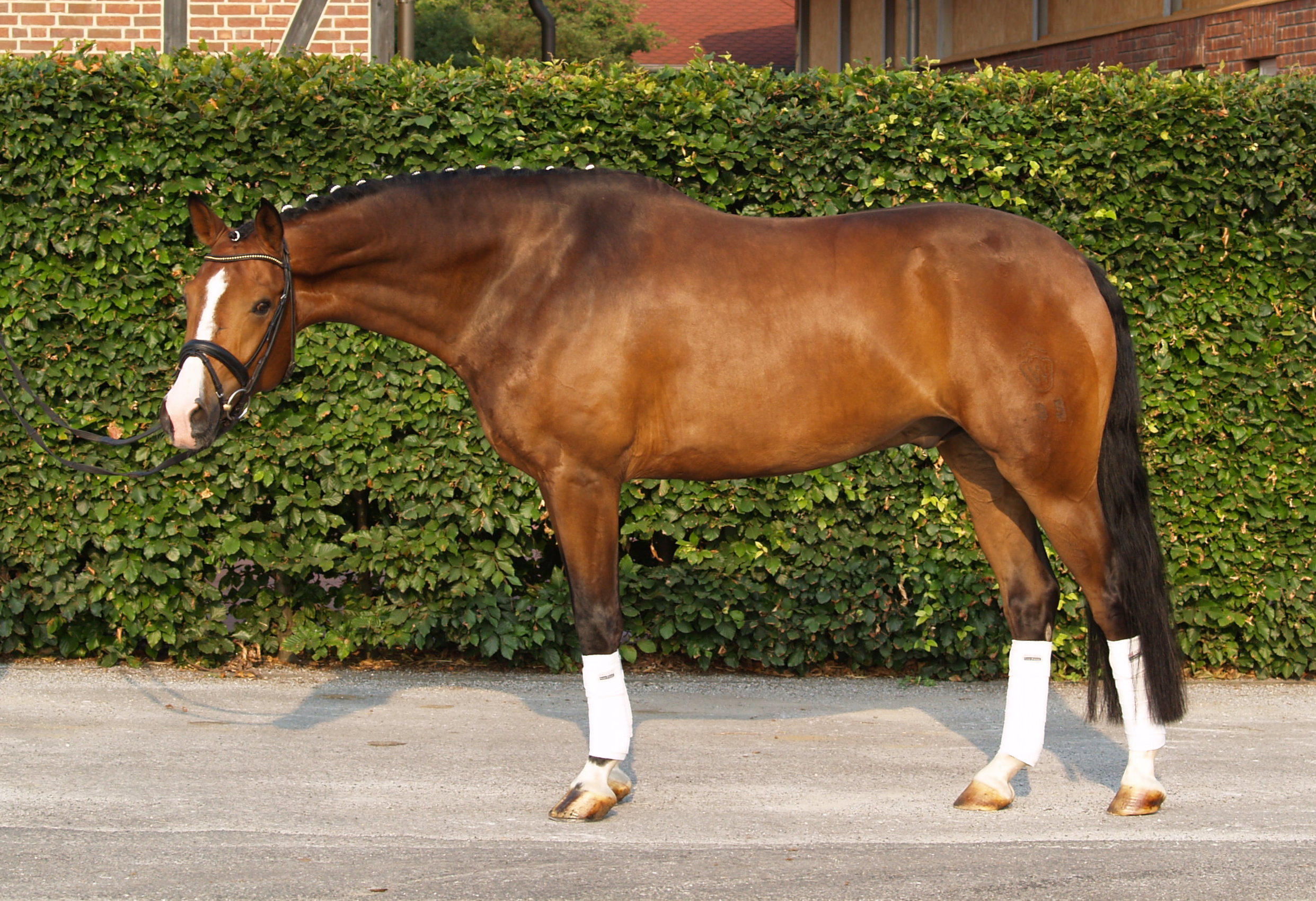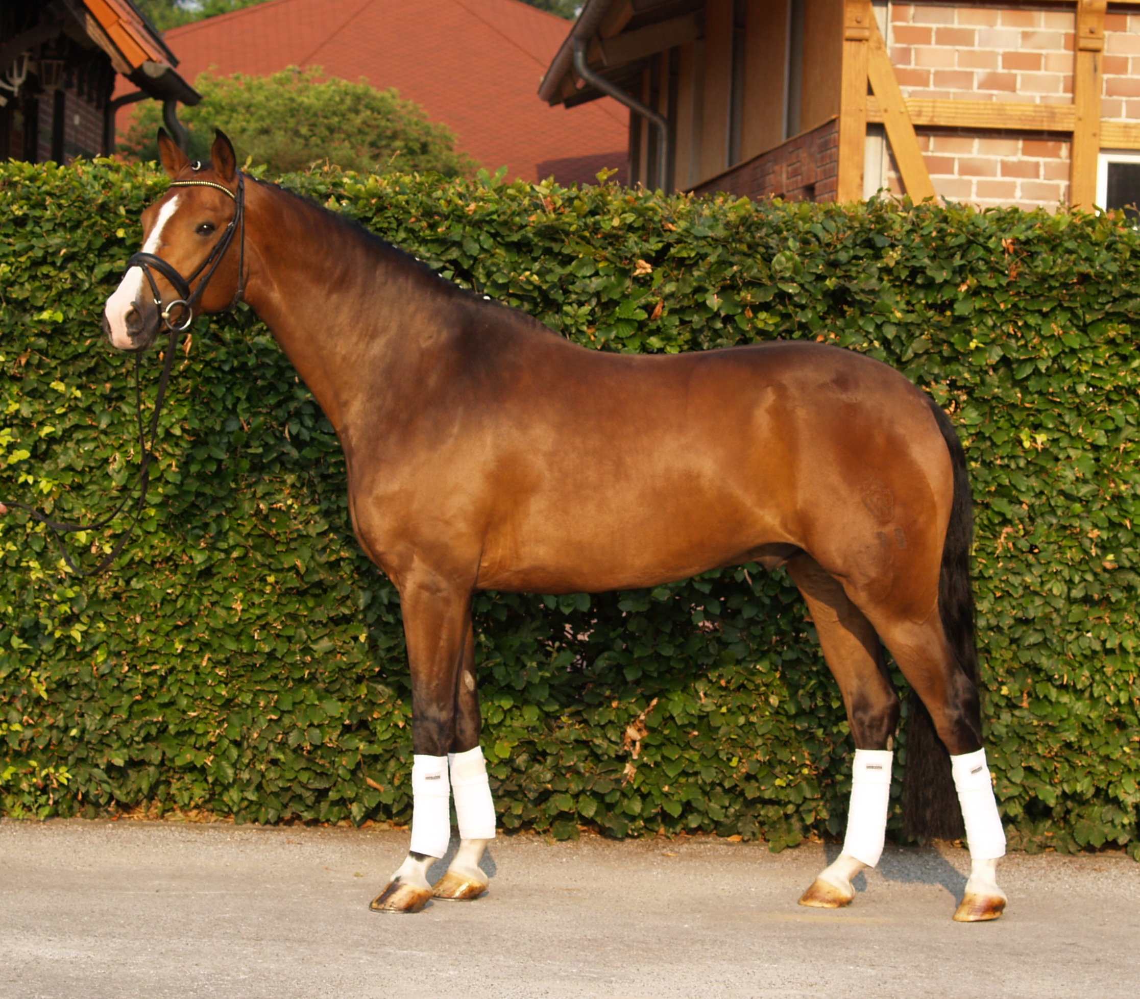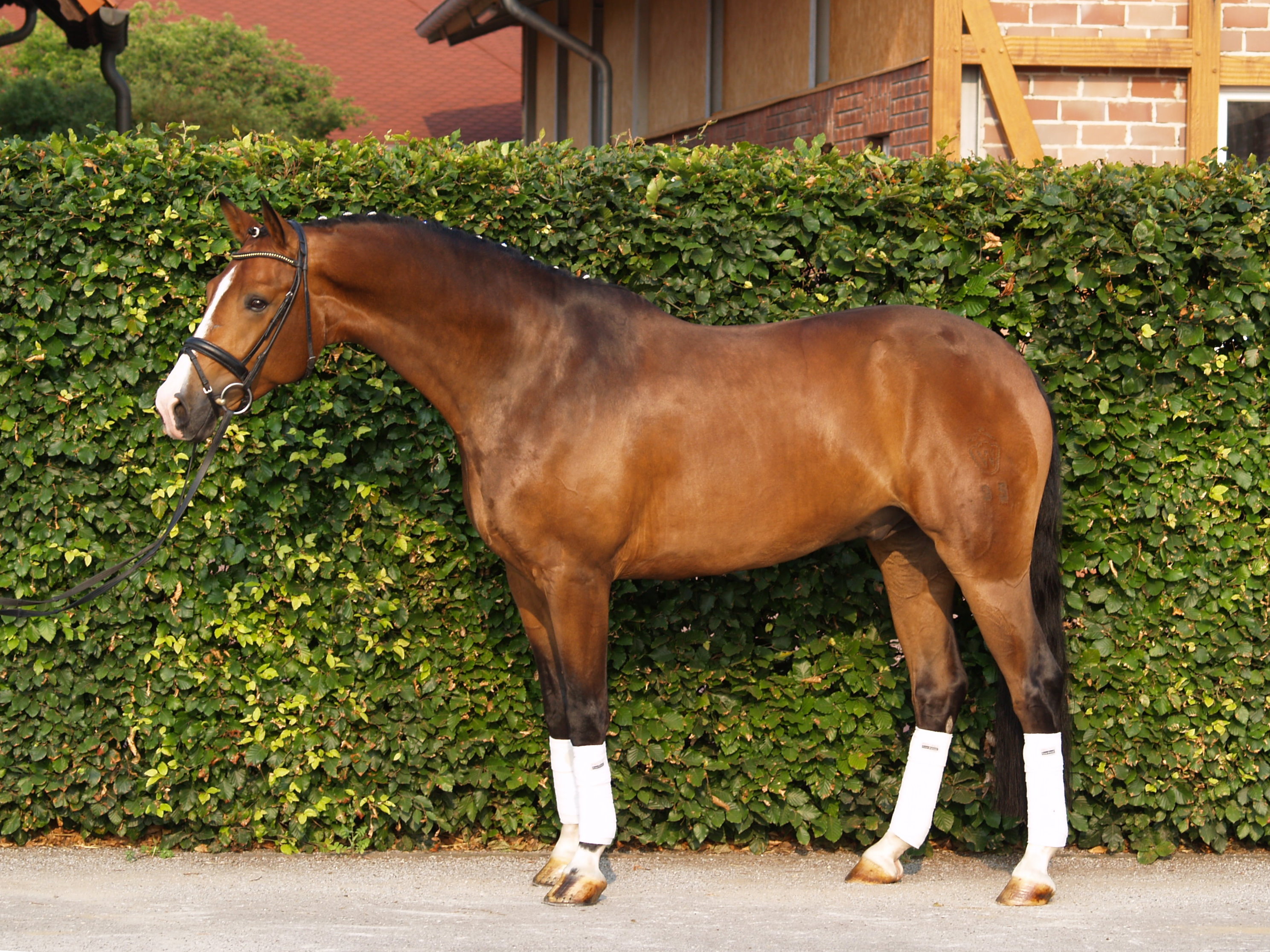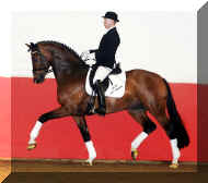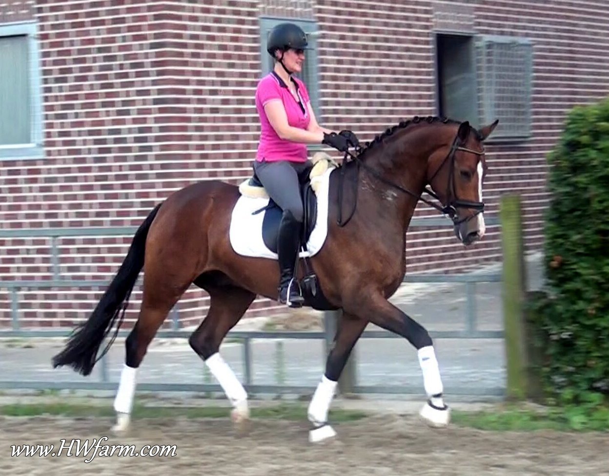 FineStep HW, Westphalian gelding by Florenciano/Medici, born in 2009, standing approximately 168 cm or 16.2 hands. FineStep HW is a noble and elegant young gentleman. He is by the top star Florenciano. Florenciano's sire Florencio I (Florestan/Weltmeyer), became the 2003 Vice Bundeschampion of four year old stallions after winning the Westphalian Champion title in Münster-Handorf. In 2004, after winning the Dutch Pavo Cup under Hans-Peter Minderhoud/NED, he took the title World Champion of five year old dressage horses in Verden with a record score: overall 9.8, with a 10.0 for his canter. In 2005 they repeated this feat at the same venue in the class for six year olds with a total score of 9.5. Florencio I was the sire of numerous top priced auction foals and the champion colt at the German Foal Championships in Lienen. In 2004 the Oldenburg Verband awarded Florencio the main premium with emphasis on dressage. Along with Florenciano, five other sons from his first crop were also licensed in Oldenburg and Westphalia. The dam line has its origins in the Netherlands . The dam, St.Pr.St. Lundi T, won eight M-level dressage tests and was awarded dressage performance mare status. The dam's sire, Havidoff, who is by the Grand Prix stallion, Clavecimbel, received the Dutch "keur" status. Many of his off-spring have been successful up to Grand Prix level such as his licensed son, Paganini. The granddam, Anuska, produced several off-spring that were successful in dressage rings. This dam line also produced the licensed stallion, Zoöloog (by Gondolier), who placed in international dressage, the world class jumper, Mister Spoon (by Zadoc)/Candice King/USA and Nietje (by Ziehim), who won gold at the 2006 WEG in Aachen in the carriage and four class with the Dutch team, as well as numerous State premium mares and auction horses. Performance record: 2010 - a year for sport In addition to wins in dressage competitions of class M ** qualified Florenciano at Hermannsburg in May 2010 for the German Federal Championships of the six year old dressage horses in Warendorf. In addition to the sporting success Florenciano has thus all the conditions associated with the breed recognition complies with flying colors. Genetic sit up he was again. With many auction foal auction on German courts and the winning colt of the mare and foal show in Ratingen, he made repeated attention. 2009 - a year for breeding Because of a very good first crop which consequently increased demand from breeders, Florenciano was made available to breeders for the entire breeding season and only competed in sport occasionally. He was highly successful in these few shows, winning and placing up front in novice (A) and elementary (L) level tests for young dressage horses. 2008 - Florenciano won the Optimum! In the year 2008, Florenciano enhanced his record in sport. With his permanent rider and trainer, the Olympic Game winner Ingrid Klimke in the saddle, he sovereignly won his first novice (A) level test for young dressage horses with a score of 9.0! This victory was immediately followed by another; Florenciano and Ingrid Klimke won the prestigious Optimum, Westphalian's traditional benchmark test for four-year old German riding horses with a total score of 9.0! 2007 - Florenciano puts on a great performance! Florencio finished his 30-day test in Münster-Handorf as the best in the class: His exceptional rideability was rewarded the highest score, a 9.75. But in the other areas as well, this strong type stallion received top scores above 9.0: Character 9.25, trot 9.13, canter 9.19. With a score of 8.13 in jumping, Florenciano proved his over-average talent in this area as well and his walk was given a 7.63. These scores put him at the head of the class. Breeding record: Florenciano's first foal crop was even better than we had dared to dream. At the 19th NRW Pedigree Auction, his colt, Four Season, was the most expensive dressage foal. Four Season Two youngsters qualified for the German Foal Championships. Even Klaus Balkenhol, the Olympic winning rider, bought a little dream mover by Florenciano. "The quality of all of his crops is impressive. The uniformity of the traits Florenciano passes on, his wonderful looks as well as his highly elastic movements, is worthy of special mention." (RuP 08/08 Dr. F. Marahrens, Manager and Breeding Director of the Westphalian Pferdestammbuch) Florenciano is by Florencio, the famous dark bay Westphalian Stallion by Florestan I/Weltmeyer/World Cup I. Florencio won with a record-breaking score at World Championships of the 5-year-old dressage horses in Verden. 10.0 points for the canter, 9.8 for the walk, 9.7 for the trot, 9.6 for the suppleness, and 9.9 points for the overall impression. Astronomical results for a stallion which seems to be from a different sphere: Florencio wins the World Championship of the 5-year-old dressage horses. With the total score of 9.80, the dark bay Westphalian under his Dutch rider Hans Peter Minderhoud established a new championship record. Quote by Hans-Peter Minderhoud: "Florencio is very special. He has a great character and knows exactly when it should happen. He gives a little extra. I am very fond of him. He is very intelligent and really plays with his exercises. He has great talent ". FineStep HW's dam is by Medici, going back to Montmatre and Mon Cheri by Matcho, truly old and steady stallion lines, very popular for their successes and foundation bloodlines. FineStep HW shows typical Florestan heritance, in looks, movement, brains, temperament, he's the total package. He will catch your attention with his beauty and elegance. He is a true eye candy, smart and willing to please. He has three very good, solid basic gaits and is super balanced, working at 2nd level with a steady and uphill counter canter. He is easy to sit and impresses with his stunning, uphill canter, his trot swings nicely through his body with a soft back and an active hindleg as well as a free 