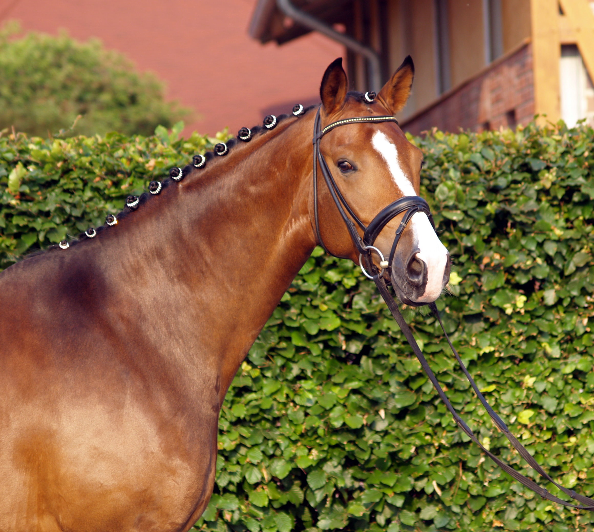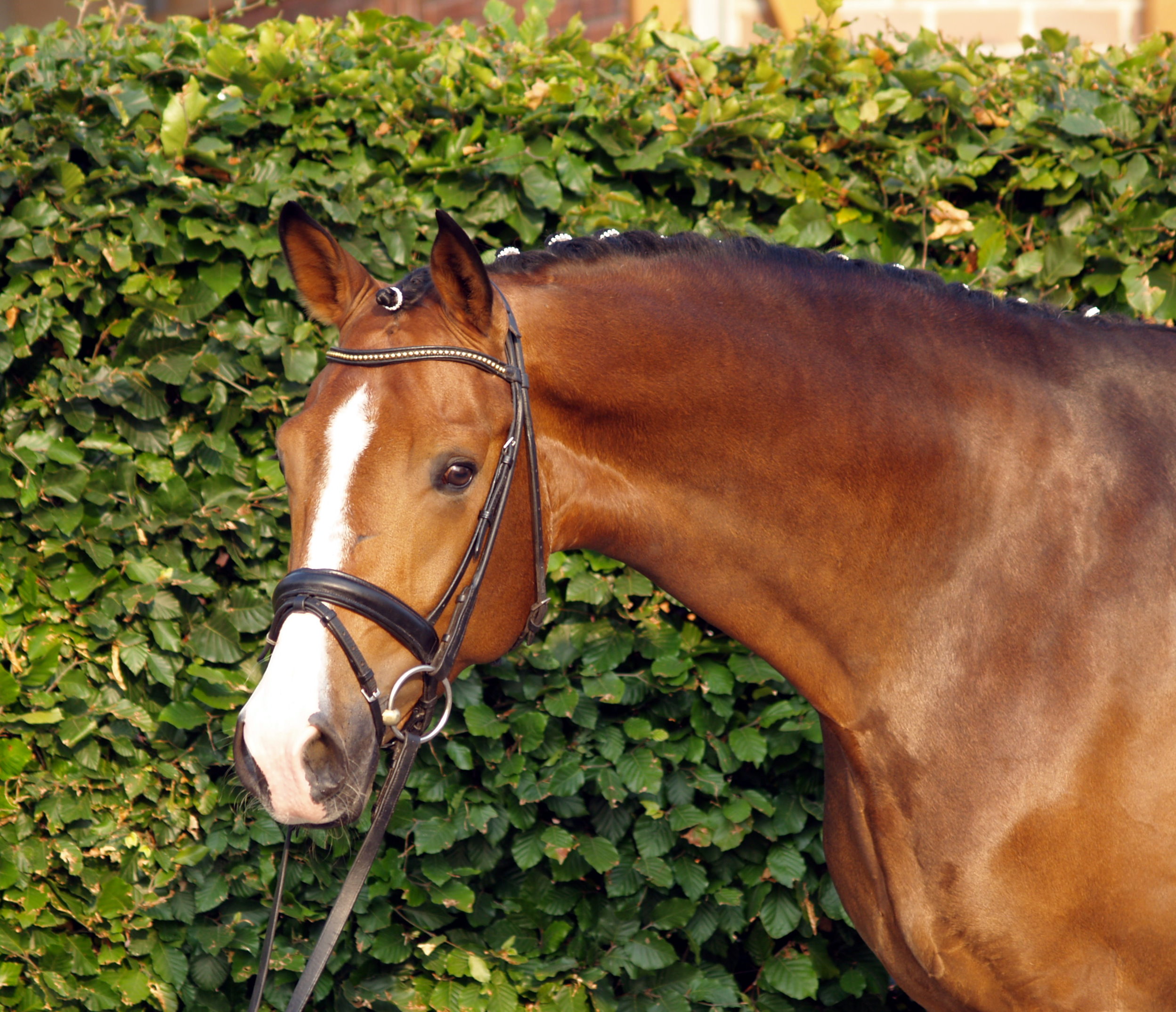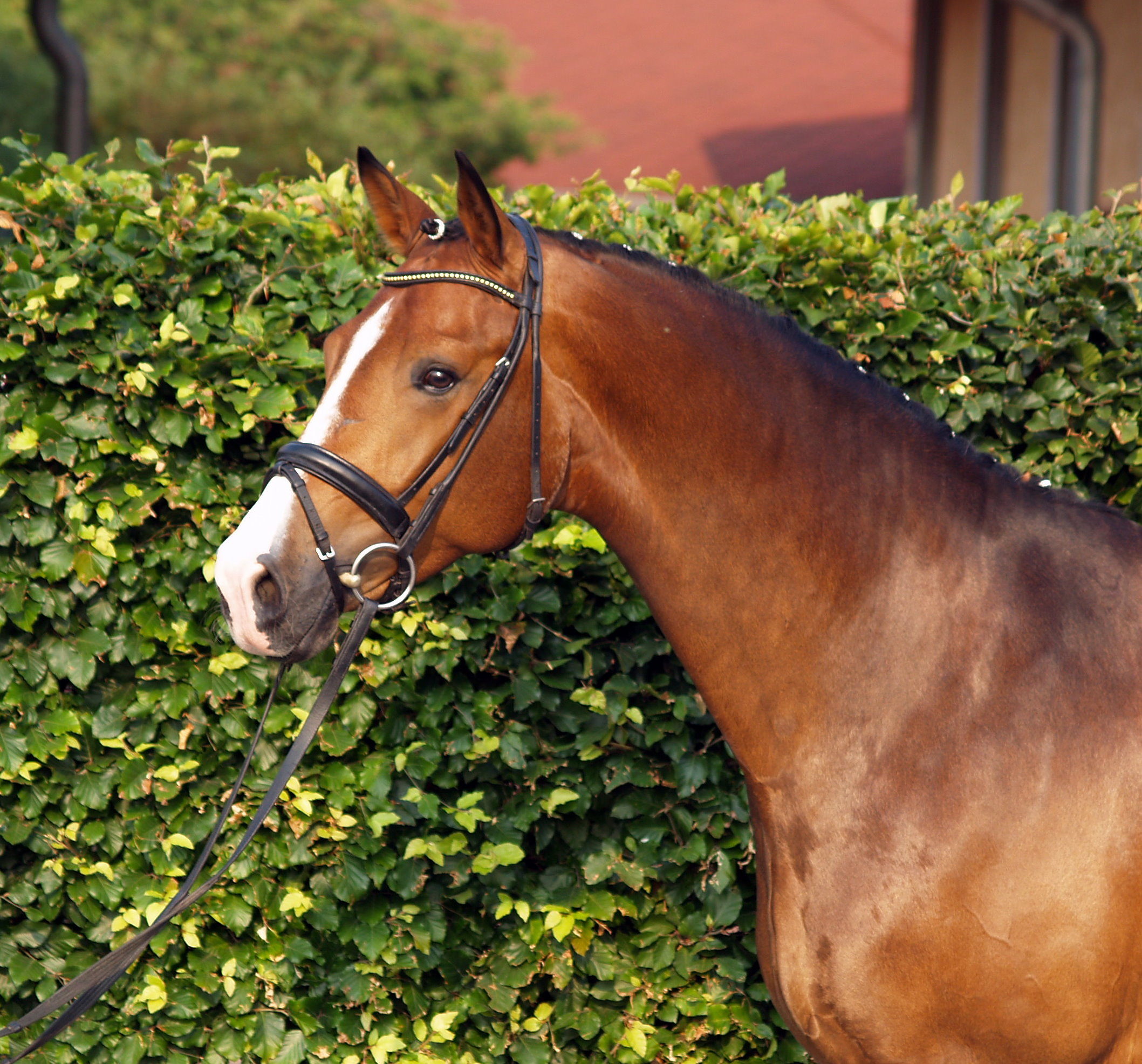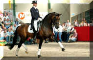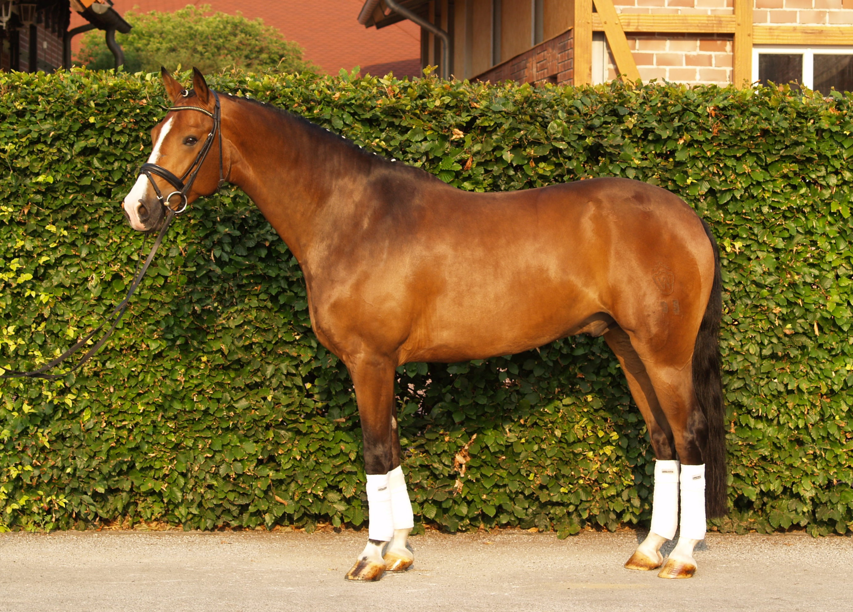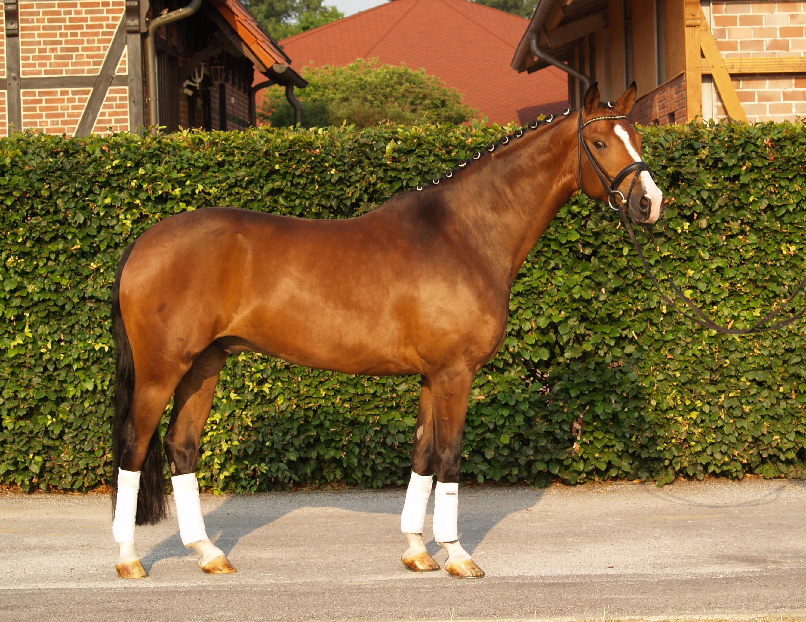 FineStep HW, Westphalian gelding by Florenciano/Medici, born in 2009, standing approximately 168 cm or 16.2 hands. FineStep HW is a noble and elegant young gentleman. He is by the top star Florenciano. Florenciano's sire Florencio I (Florestan/Weltmeyer), became the 2003 Vice Bundeschampion of four year old stallions after winning the Westphalian Champion title in Münster-Handorf. In 2004, after winning the Dutch Pavo Cup under Hans-Peter Minderhoud/NED, he took the title World Champion of five year old dressage horses in Verden with a record score: overall 9.8, with a 10.0 for his canter. In 2005 they repeated this feat at the same venue in the class for six year olds with a total score of 9.5. Florencio I was the sire of numerous top priced auction foals and the champion colt at the German Foal Championships in Lienen. In 2004 the Oldenburg Verband awarded Florencio the main premium with emphasis on dressage. Along with Florenciano, five other sons from his first crop were also licensed in Oldenburg and Westphalia. The dam line has its origins in the Netherlands . The dam, St.Pr.St. Lundi T, won eight M-level dressage tests and was awarded dressage performance mare status. The dam's sire, Havidoff, who is by the Grand Prix stallion, Clavecimbel, received the Dutch "keur" status. Many of his off-spring have been successful up to Grand Prix level such as his licensed son, Paganini. The granddam, Anuska, produced several off-spring that were successful in dressage rings. This dam line also produced the licensed stallion, Zoöloog (by Gondolier), who placed in international dressage, the world class jumper, Mister Spoon (by Zadoc)/Candice King/USA and Nietje (by Ziehim), who won gold at the 2006 WEG in Aachen in the carriage and four class with the Dutch team, as well as numerous State premium mares and auction horses. Performance record: 2010 - a year for sport In addition to wins in dressage competitions of class M ** qualified Florenciano at Hermannsburg in May 2010 for the German Federal Championships of the six year old dressage horses in Warendorf. In addition to the sporting success Florenciano has thus all the conditions associated with the breed recognition complies with flying colors. Genetic sit up he was again. With many auction foal auction on German courts and the winning colt of the mare and foal show in Ratingen, he made repeated attention. 2009 - a year for breeding Because of a very good first crop which consequently increased demand from breeders, Florenciano was made available to breeders for the entire breeding season and only competed in sport occasionally. He was highly successful in these few shows, winning and placing up front in novice (A) and elementary (L) level tests for young dressage horses. 2008 - Florenciano won the Optimum! In the year 2008, Florenciano enhanced his record in sport. With his permanent rider and trainer, the Olympic Game winner Ingrid Klimke in the saddle, he sovereignly won his first novice (A) level test for young dressage horses with a score of 9.0! This victory was immediately followed by another; Florenciano and Ingrid Klimke won the prestigious Optimum, Westphalian's traditional benchmark test for four-year old German riding horses with a total score of 9.0! 2007 - Florenciano puts on a great performance! Florencio finished his 30-day test in Münster-Handorf as the best in the class: His exceptional rideability was rewarded the highest score, a 9.75. But in the other areas as well, this strong type stallion received top scores above 9.0: Character 9.25, trot 9.13, canter 9.19. With a score of 8.13 in jumping, Florenciano proved his over-average talent in this area as well and his walk was given a 7.63. These scores put him at the head of the class. Breeding record: Florenciano's first foal crop was even better than we had dared to dream. At the 19th NRW Pedigree Auction, his colt, Four Season, was the most expensive dressage foal. Four Season Two youngsters qualified for the German Foal Championships. Even Klaus Balkenhol, the Olympic winning rider, bought a little dream mover by Florenciano. "The quality of all of his crops is impressive. The uniformity of the traits Florenciano passes on, his wonderful looks as well as his highly elastic movements, is worthy of special mention." (RuP 08/08 Dr. F. Marahrens, Manager and Breeding Director of the Westphalian Pferdestammbuch) Florenciano is by Florencio, the famous dark bay Westphalian Stallion by Florestan I/Weltmeyer/World Cup I. Florencio won with a record-breaking score at World Championships of the 5-year-old dressage horses in Verden. 10.0 points for the canter, 9.8 for the walk, 9.7 for the trot, 9.6 for the suppleness, and 9.9 points for the overall impression. Astronomical results for a stallion which seems to be from a different sphere: Florencio wins the World Championship of the 5-year-old dressage horses. With the total score of 9.80, the dark bay Westphalian under his Dutch rider Hans Peter Minderhoud established a new championship record. Quote by Hans-Peter Minderhoud: "Florencio is very special. He has a great character and knows exactly when it should happen. He gives a little extra. I am very fond of him. He is very intelligent and really plays with his exercises. He has great talent ". FineStep HW's dam is by Medici, going back to Montmatre and Mon Cheri by Matcho, truly old and steady stallion lines, very popular for their successes and foundation bloodlines. FineStep HW shows typical Florestan heritance, in looks, movement, brains, temperament, he's the total package. He will catch your attention with his beauty and elegance. He is a true eye candy, smart and willing to please. He has three very good, solid basic gaits and is super balanced, working at 2nd level with a steady and uphill counter canter. He is easy to sit and impresses with his stunning, uphill canter, his trot swings nicely through his body with a soft back and an active hindleg as well as a free 