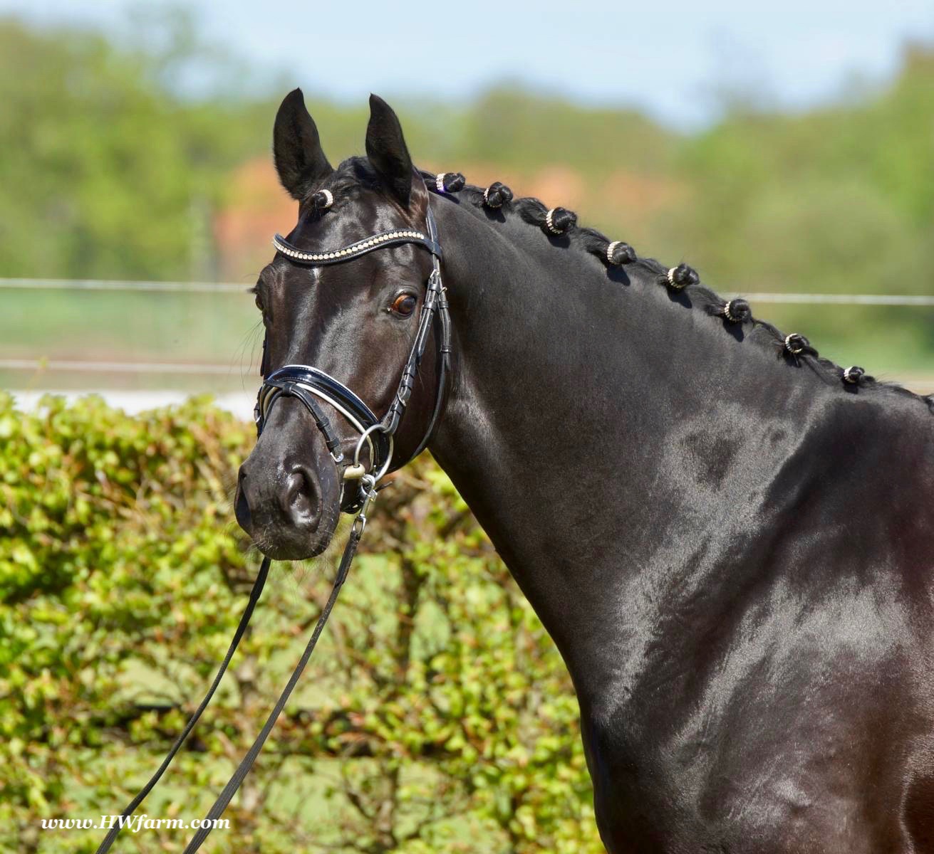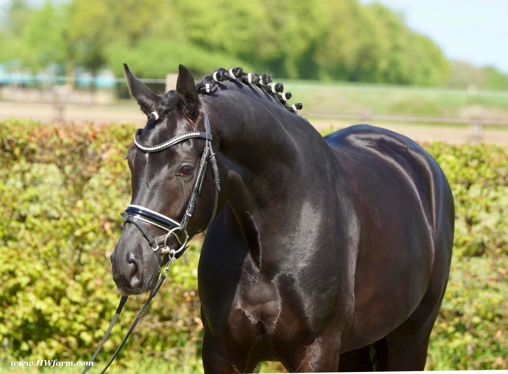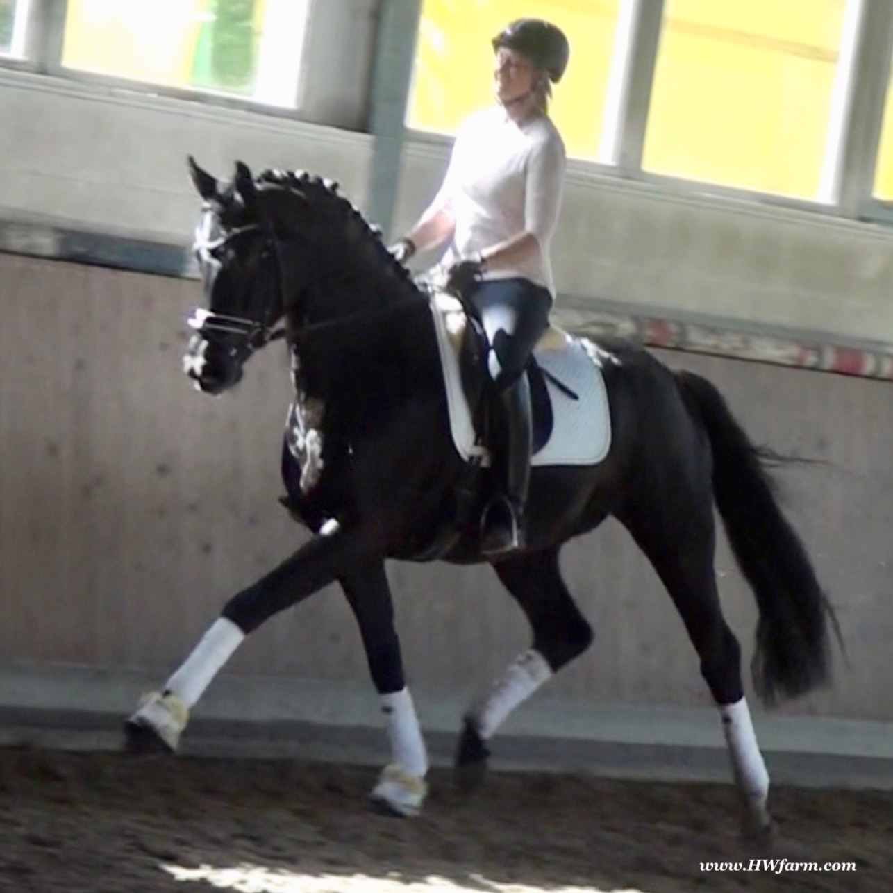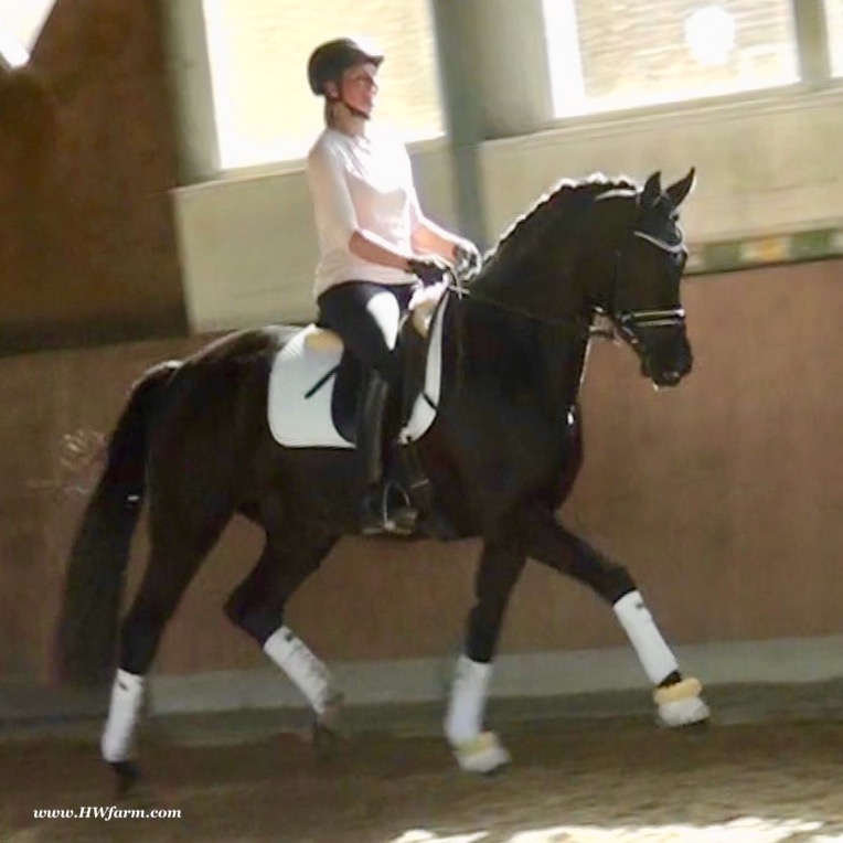 FirstEdition HW, black Hanoverian gelding, by Fuerst Romancier/ Bundeschampion Fidermark, born in 2015, standing approximately 169 cm or 16.2 hands. FirstEdition HW is by the famous stallion Fuerst Romancier - a stallion with world wide radiance. In dressage arenas, Fürst Romancier's offspring set the tone. After making his international debut at the CHIO Aachen, First Romance was unbeatable in the Burg Cup final with Dorothee Schneider. The Burg Cup finalist Fürst Levantino won the Future's Champion Cup in Hagen a.T.W. with Marlene Sieverding and Team Silver at the European Championships in Fontaine-bleau/FRA. Flying Dancer OLD/Dorothee Schneider, auction top price, was very well-placed at the World Championships for Young Horses. Best of Mount St. John OLD was Vice Regional Champion and fifth at the German National Championships. The Olden-burg Champion Mare, German Champion and P.S.I. auction top price Fasine OLD has already been placed in S-level (advanced) dressage competitions. Her two full broth-ers, For Romance I (licensing and main premium winner, top price of the Stallion Mar-ket, and Burg Cup finalist) and For Romance II (premium stallion) as well as Fürst Levantino and Fürst Jazz belong to the over 30 licensed sons of Fürst Romancier. Fürst Romancier was awarded the Oldenburg main premium. In 2009, he was fourth at the World Championships for Young Horses and at the Ger-man Championships, becoming the most successful stallion of his generation. His sire Fürst Heinrich, was Champion Stallion in 2001, winner of the main premium in 2002, World Champion of five-year-old dressage horses in 2003, and has produced 53 li-censed stallions, including Fürstenball, licensing and main premium champion, German champion and elite sire. His dam produced two other S-level dressage horses, Scarlatti (by San Amour) and Freestyler (v. Fürst Heinrich). The dam sire Romancier, successful up to Prix St. Georges, comes from the Olympian lineage of Dodona, from which de-scend Rembrandt/Nicole Uphoff, Ahlerich/Dr. Reiner Klimke, Amon and Rubinstein. Fürst Romancier represents the very successful Oldenburg Edoste line, from which also descend German Champion and European Championship participant Exupéry, Reserve German Champion Landjuwel Gold, Olympic Grand-Prix horse Petit Prince/Ellen Bontje/NED, Grand Prix horse Avignon and the international show-jumping winners Questa Vittoria/Thomas Kleis and Quintera/Leon Thijssen/NED.