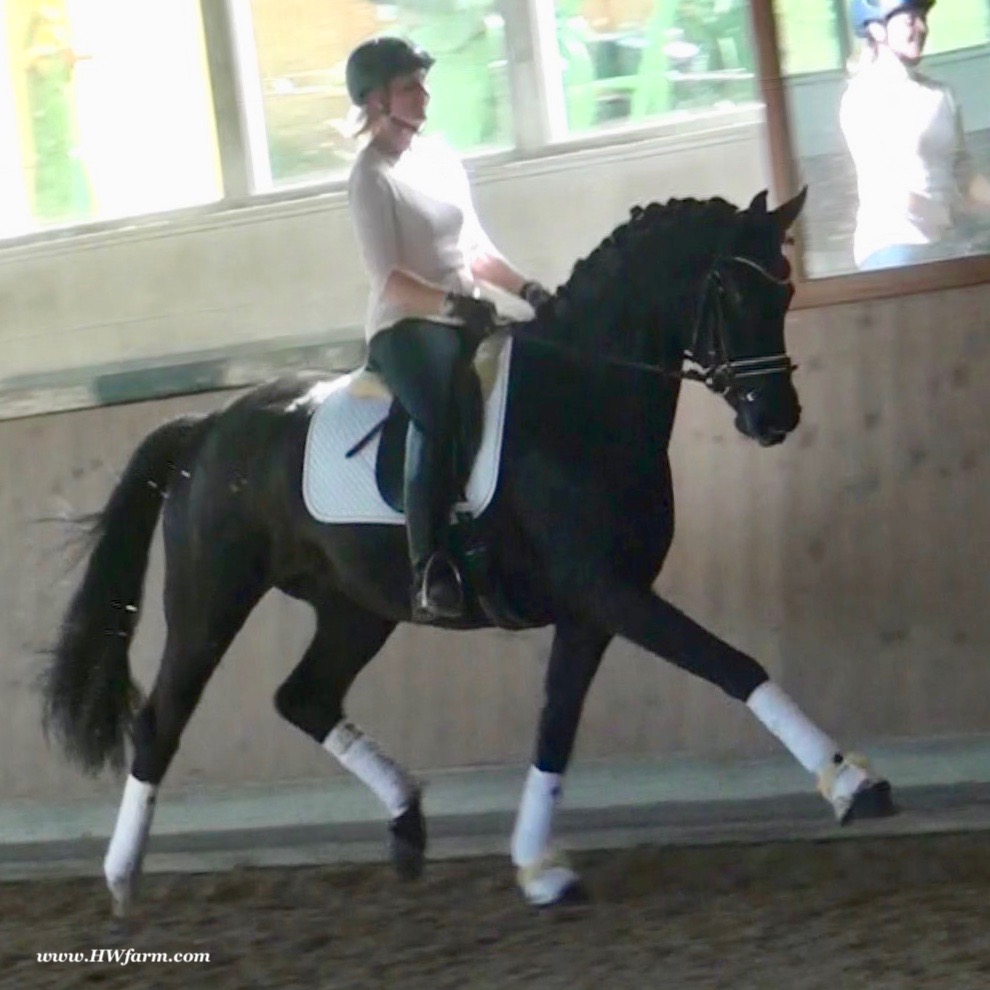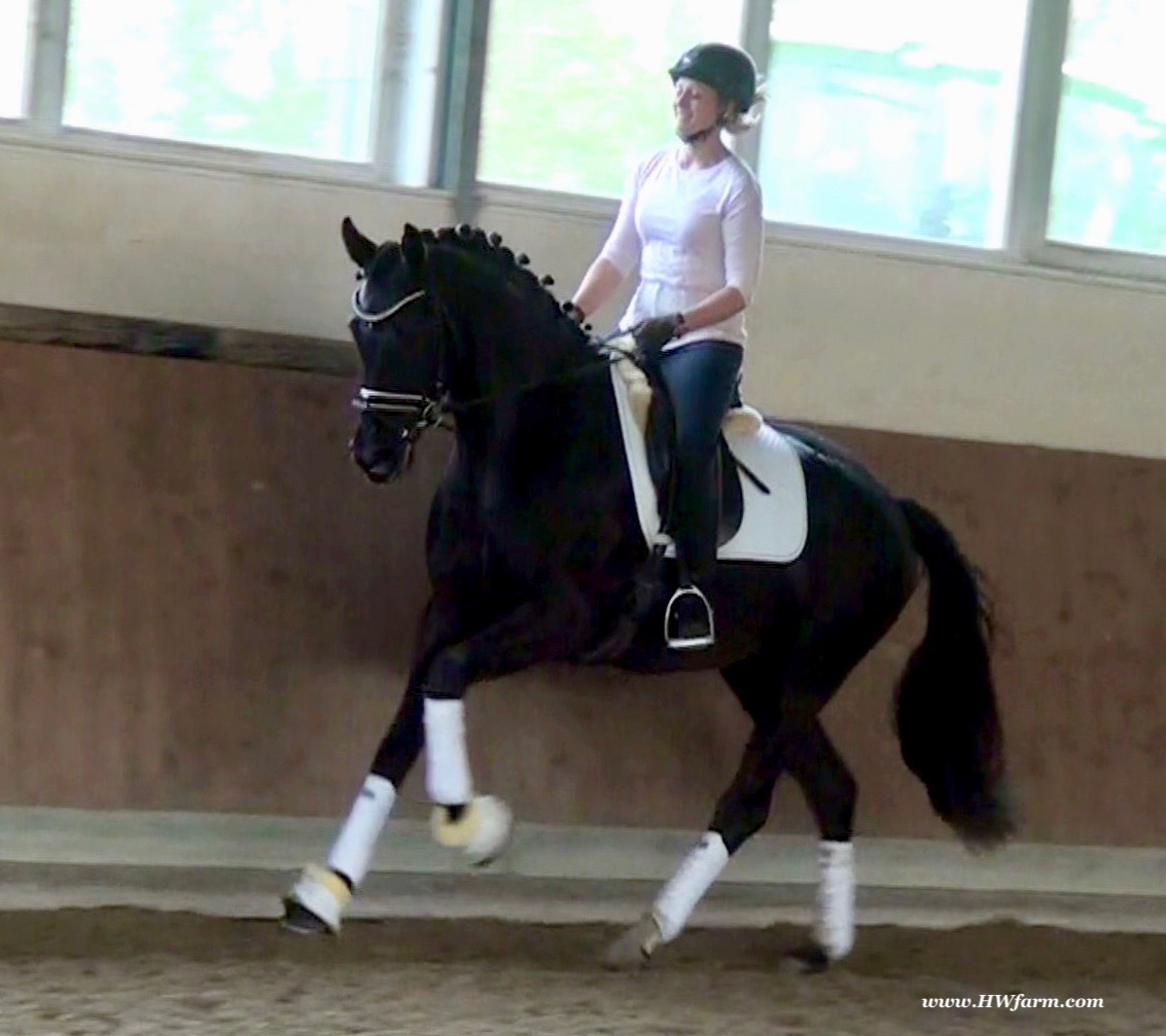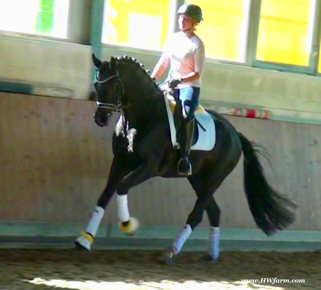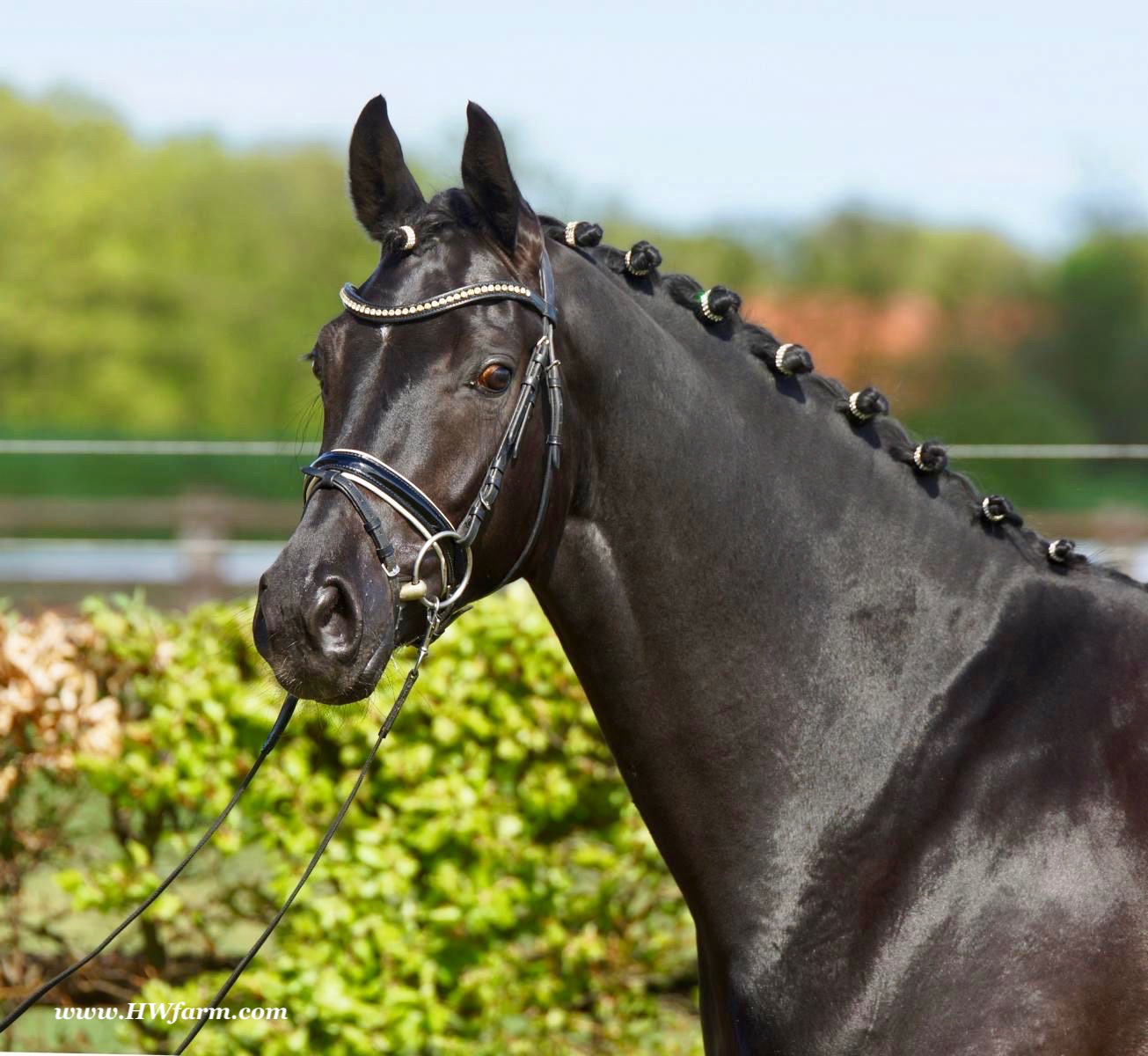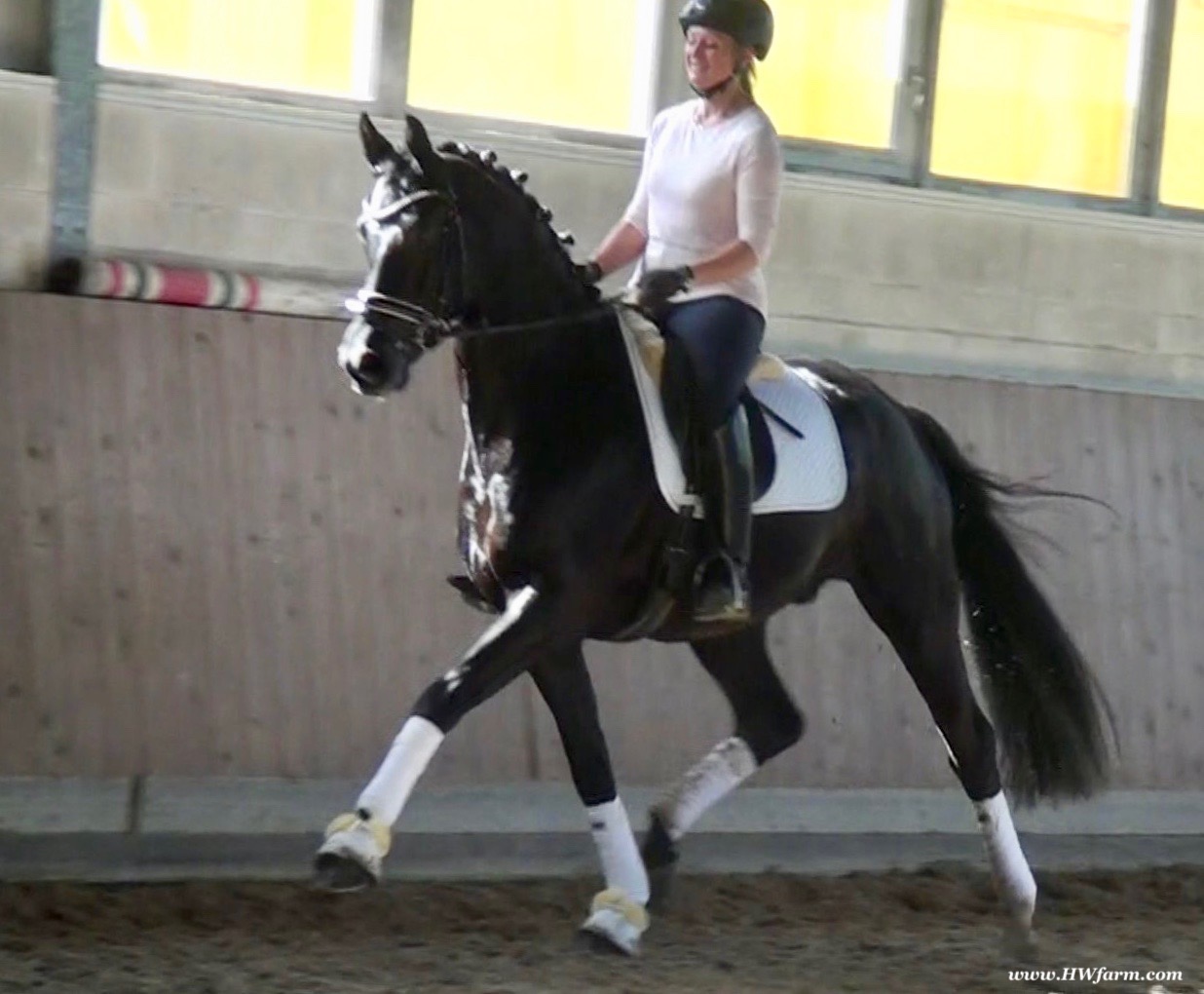 FirstEdition HW, black Hanoverian gelding, by Fuerst Romancier/ Bundeschampion Fidermark, born in 2015, standing approximately 169 cm or 16.2 hands. FirstEdition HW is by the famous stallion Fuerst Romancier - a stallion with world wide radiance. In dressage arenas, Fürst Romancier's offspring set the tone. After making his international debut at the CHIO Aachen, First Romance was unbeatable in the Burg Cup final with Dorothee Schneider. The Burg Cup finalist Fürst Levantino won the Future's Champion Cup in Hagen a.T.W. with Marlene Sieverding and Team Silver at the European Championships in Fontaine-bleau/FRA. Flying Dancer OLD/Dorothee Schneider, auction top price, was very well-placed at the World Championships for Young Horses. Best of Mount St. John OLD was Vice Regional Champion and fifth at the German National Championships. The Olden-burg Champion Mare, German Champion and P.S.I. auction top price Fasine OLD has already been placed in S-level (advanced) dressage competitions. Her two full broth-ers, For Romance I (licensing and main premium winner, top price of the Stallion Mar-ket, and Burg Cup finalist) and For Romance II (premium stallion) as well as Fürst Levantino and Fürst Jazz belong to the over 30 licensed sons of Fürst Romancier. Fürst Romancier was awarded the Oldenburg main premium. In 2009, he was fourth at the World Championships for Young Horses and at the Ger-man Championships, becoming the most successful stallion of his generation. His sire Fürst Heinrich, was Champion Stallion in 2001, winner of the main premium in 2002, World Champion of five-year-old dressage horses in 2003, and has produced 53 li-censed stallions, including Fürstenball, licensing and main premium champion, German champion and elite sire. His dam produced two other S-level dressage horses, Scarlatti (by San Amour) and Freestyler (v. Fürst Heinrich). The dam sire Romancier, successful up to Prix St. Georges, comes from the Olympian lineage of Dodona, from which de-scend Rembrandt/Nicole Uphoff, Ahlerich/Dr. Reiner Klimke, Amon and Rubinstein. Fürst Romancier represents the very successful Oldenburg Edoste line, from which also descend German Champion and European Championship participant Exupéry, Reserve German Champion Landjuwel Gold, Olympic Grand-Prix horse Petit Prince/Ellen Bontje/NED, Grand Prix horse Avignon and the international show-jumping winners Questa Vittoria/Thomas Kleis and Quintera/Leon Thijssen/NED.