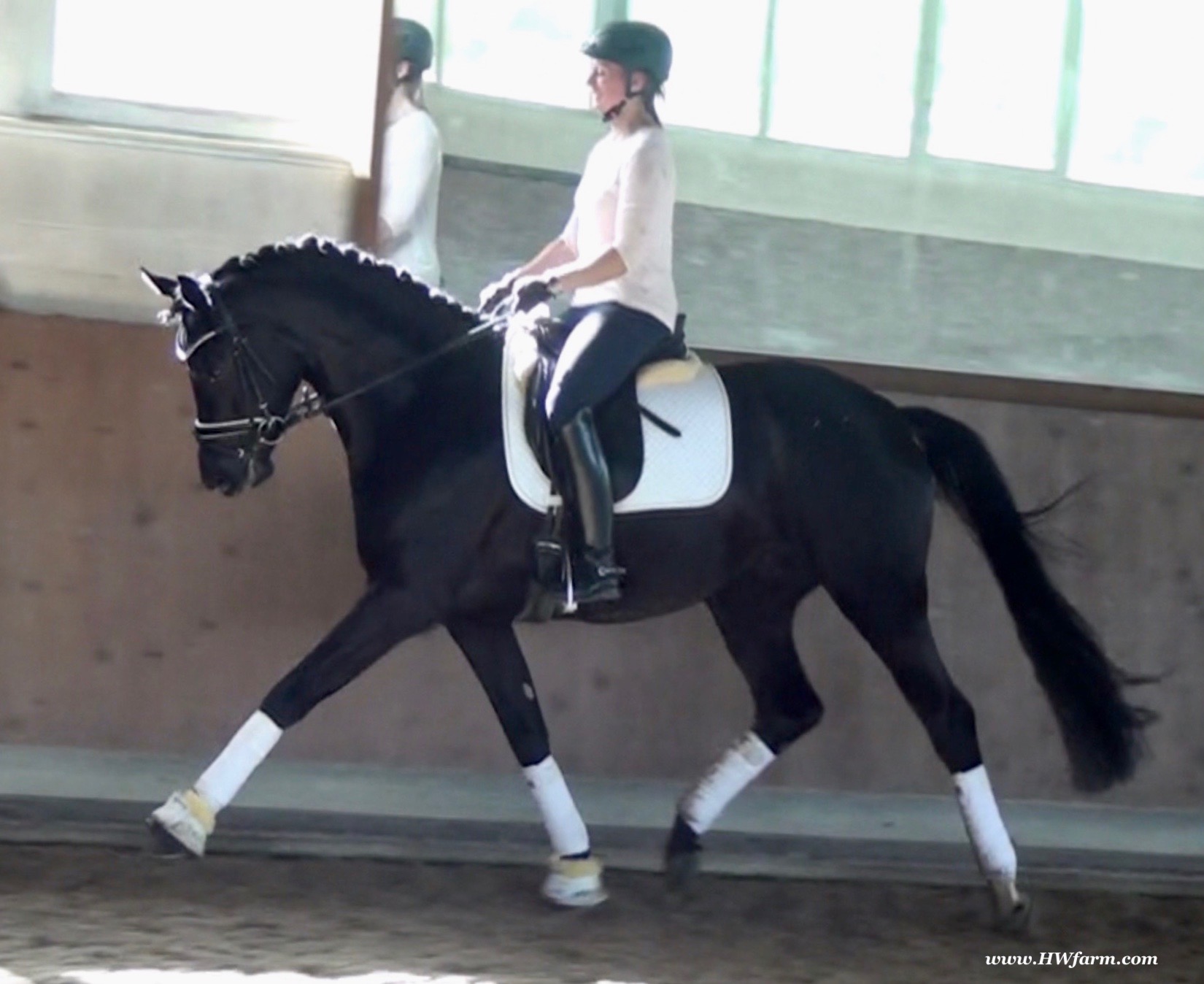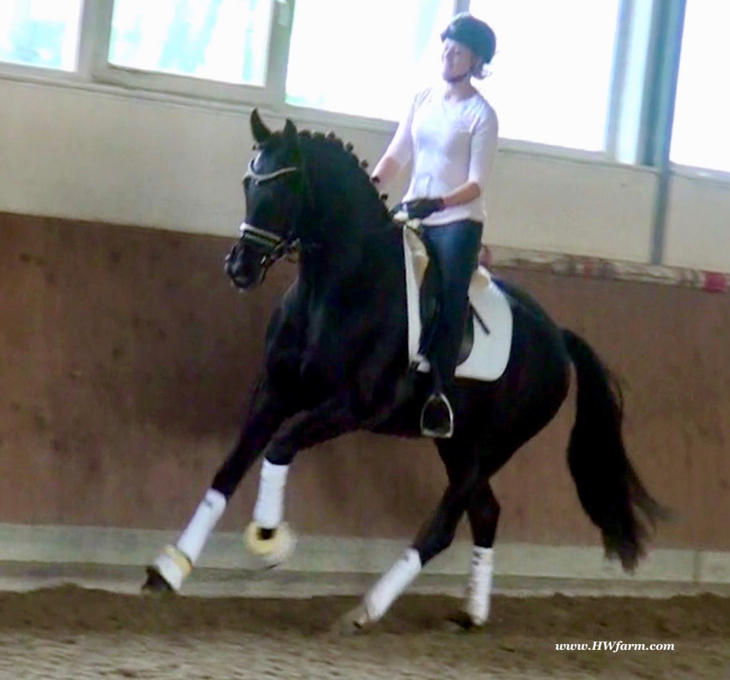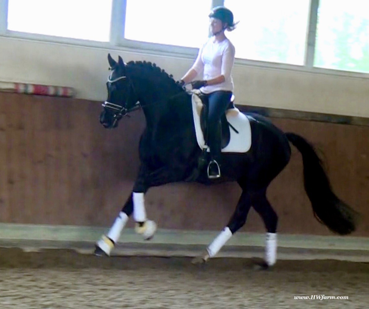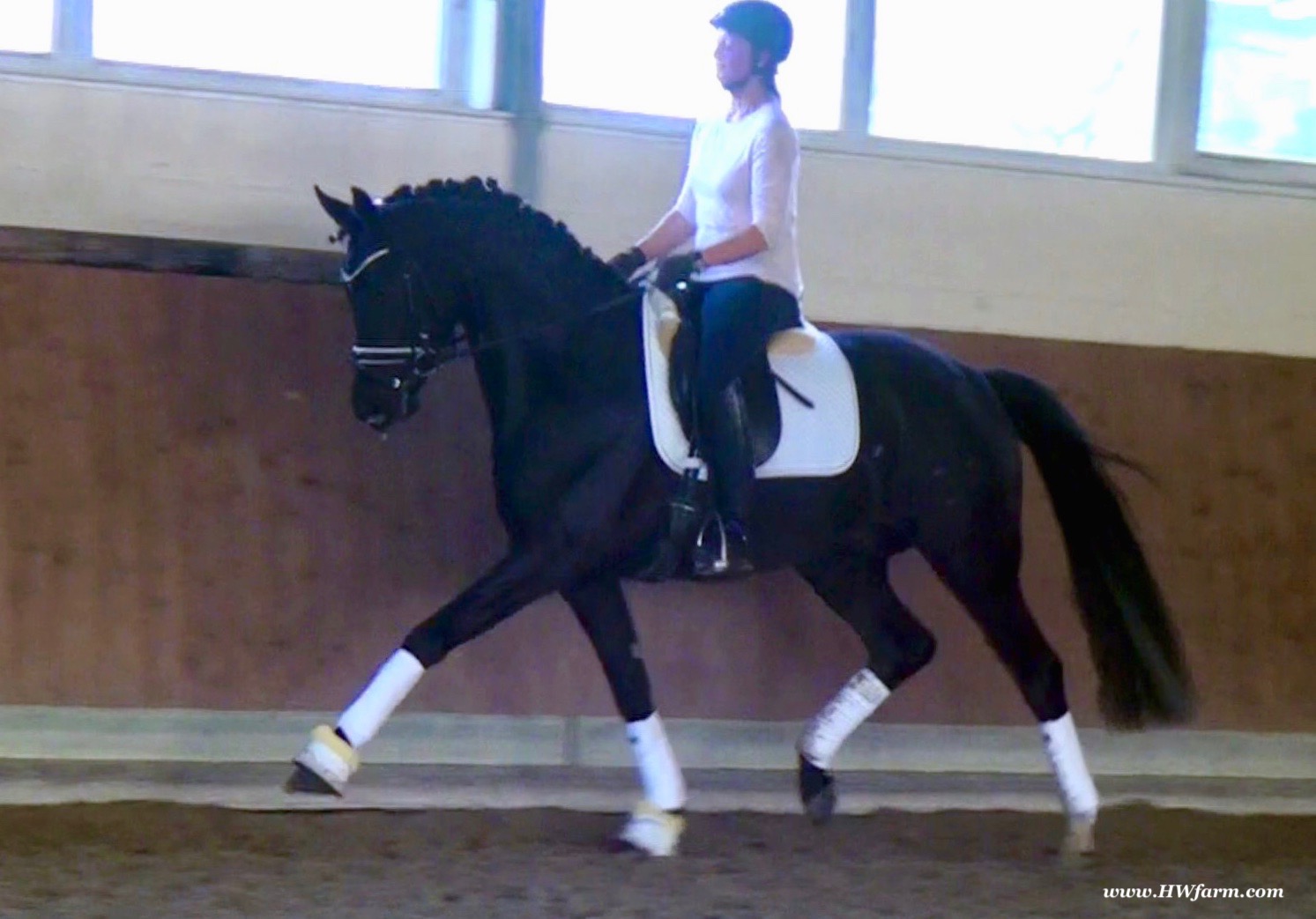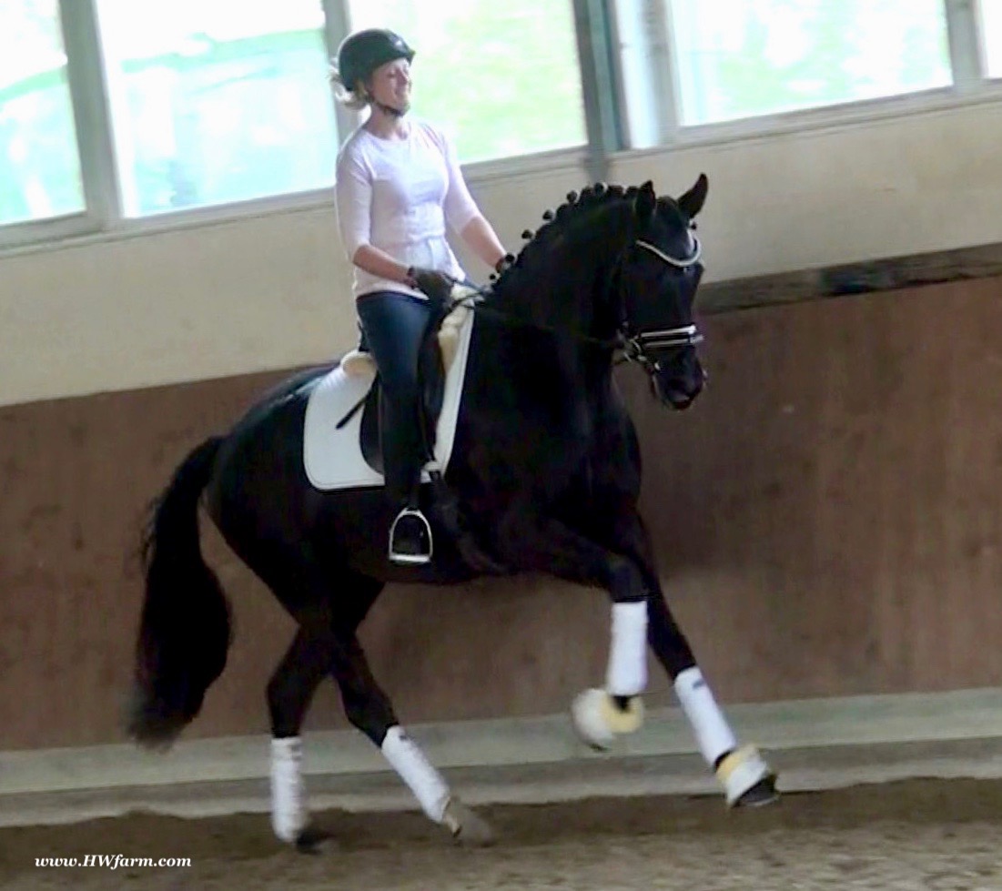 FirstEdition HW, black Hanoverian gelding, by Fuerst Romancier/ Bundeschampion Fidermark, born in 2015, standing approximately 169 cm or 16.2 hands. FirstEdition HW is by the famous stallion Fuerst Romancier - a stallion with world wide radiance. In dressage arenas, Fürst Romancier's offspring set the tone. After making his international debut at the CHIO Aachen, First Romance was unbeatable in the Burg Cup final with Dorothee Schneider. The Burg Cup finalist Fürst Levantino won the Future's Champion Cup in Hagen a.T.W. with Marlene Sieverding and Team Silver at the European Championships in Fontaine-bleau/FRA. Flying Dancer OLD/Dorothee Schneider, auction top price, was very well-placed at the World Championships for Young Horses. Best of Mount St. John OLD was Vice Regional Champion and fifth at the German National Championships. The Olden-burg Champion Mare, German Champion and P.S.I. auction top price Fasine OLD has already been placed in S-level (advanced) dressage competitions. Her two full broth-ers, For Romance I (licensing and main premium winner, top price of the Stallion Mar-ket, and Burg Cup finalist) and For Romance II (premium stallion) as well as Fürst Levantino and Fürst Jazz belong to the over 30 licensed sons of Fürst Romancier. Fürst Romancier was awarded the Oldenburg main premium. In 2009, he was fourth at the World Championships for Young Horses and at the Ger-man Championships, becoming the most successful stallion of his generation. His sire Fürst Heinrich, was Champion Stallion in 2001, winner of the main premium in 2002, World Champion of five-year-old dressage horses in 2003, and has produced 53 li-censed stallions, including Fürstenball, licensing and main premium champion, German champion and elite sire. His dam produced two other S-level dressage horses, Scarlatti (by San Amour) and Freestyler (v. Fürst Heinrich). The dam sire Romancier, successful up to Prix St. Georges, comes from the Olympian lineage of Dodona, from which de-scend Rembrandt/Nicole Uphoff, Ahlerich/Dr. Reiner Klimke, Amon and Rubinstein. Fürst Romancier represents the very successful Oldenburg Edoste line, from which also descend German Champion and European Championship participant Exupéry, Reserve German Champion Landjuwel Gold, Olympic Grand-Prix horse Petit Prince/Ellen Bontje/NED, Grand Prix horse Avignon and the international show-jumping winners Questa Vittoria/Thomas Kleis and Quintera/Leon Thijssen/NED.