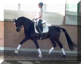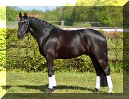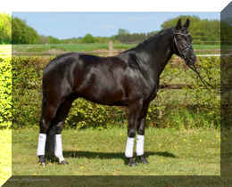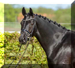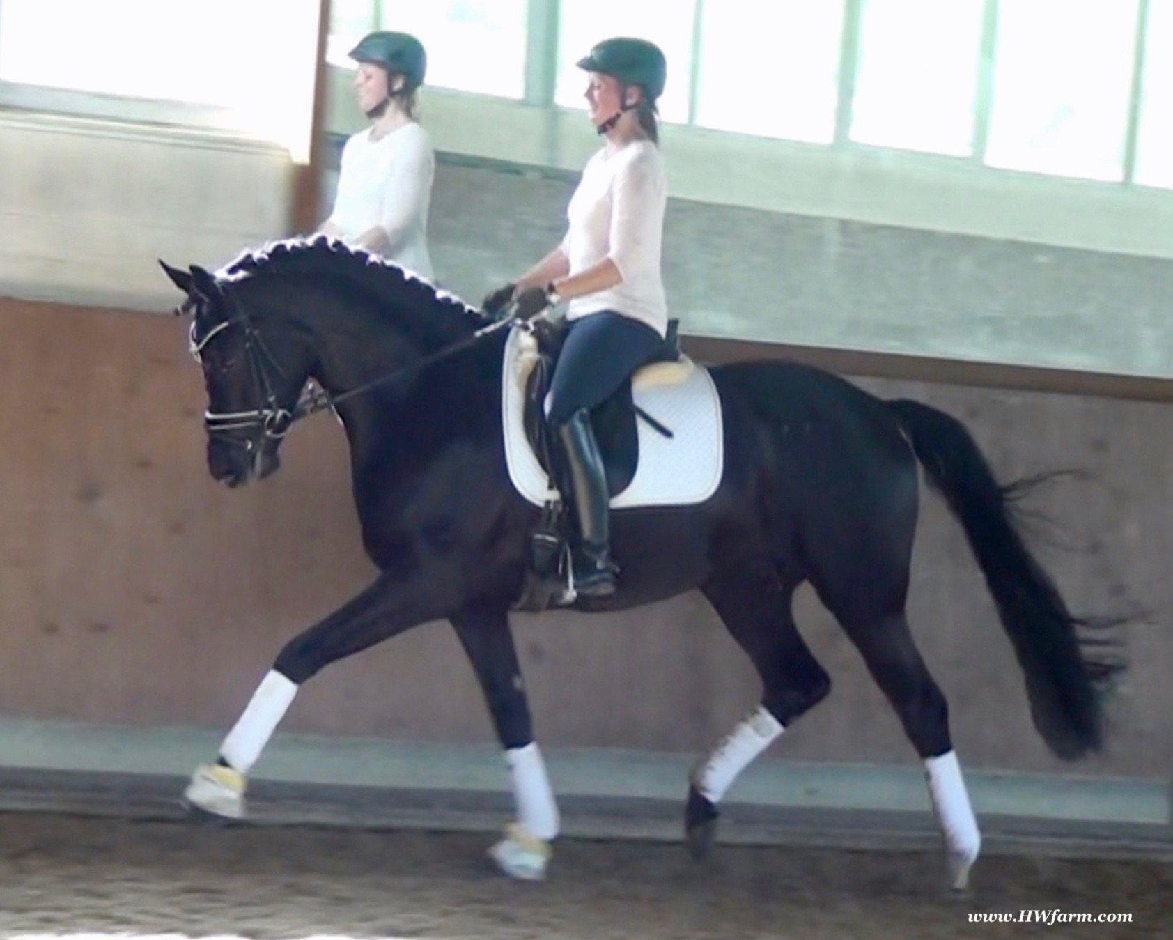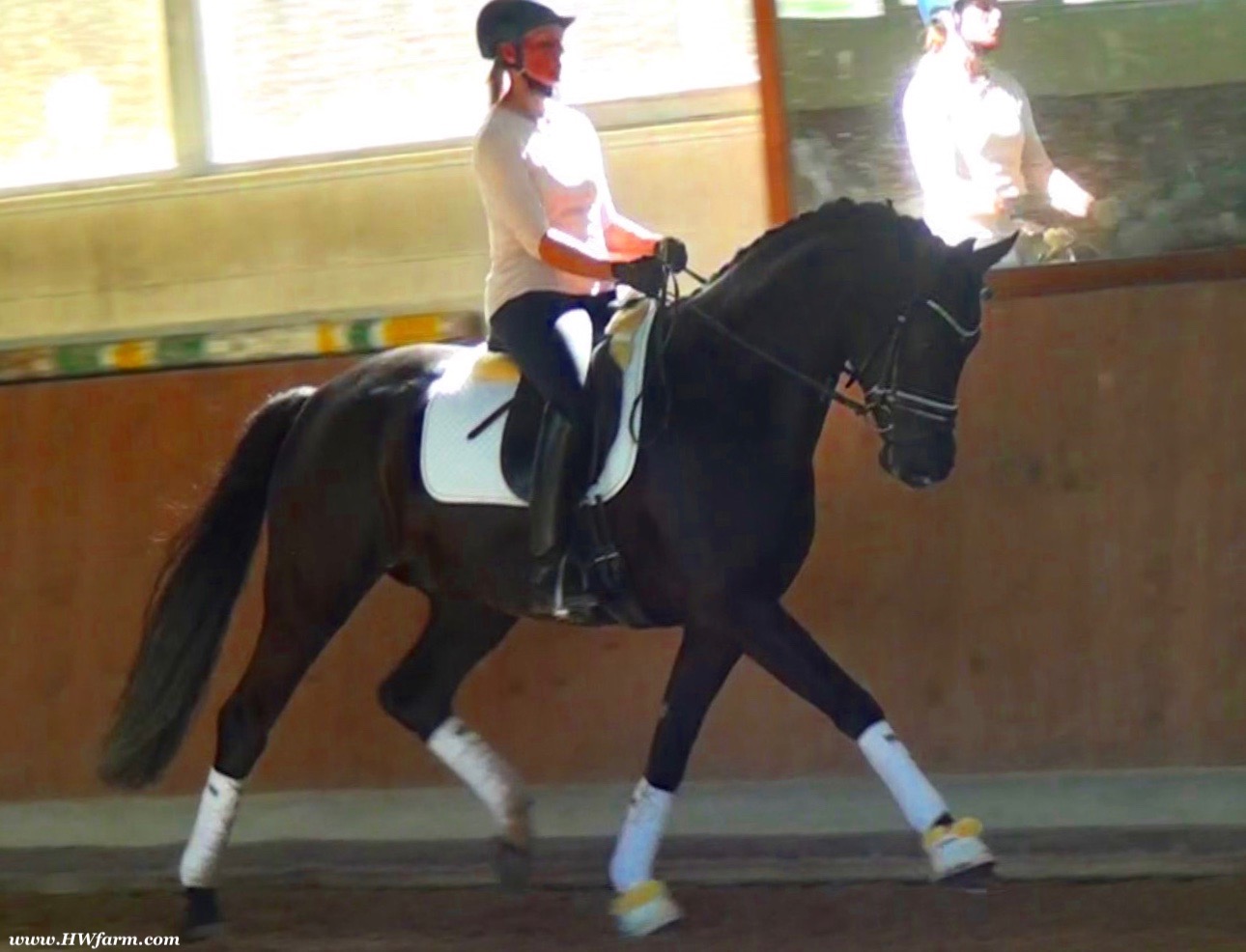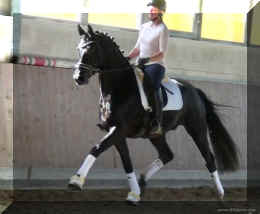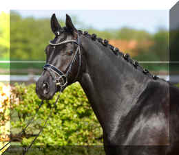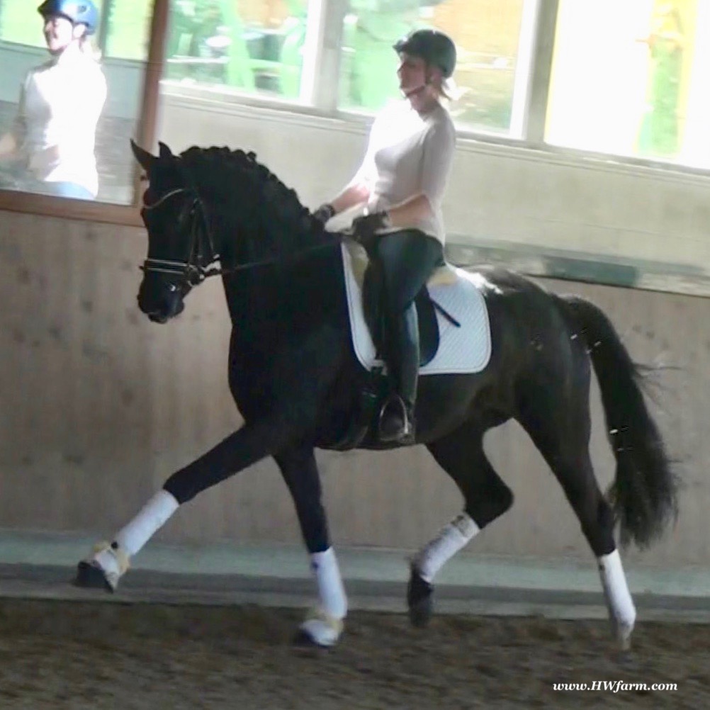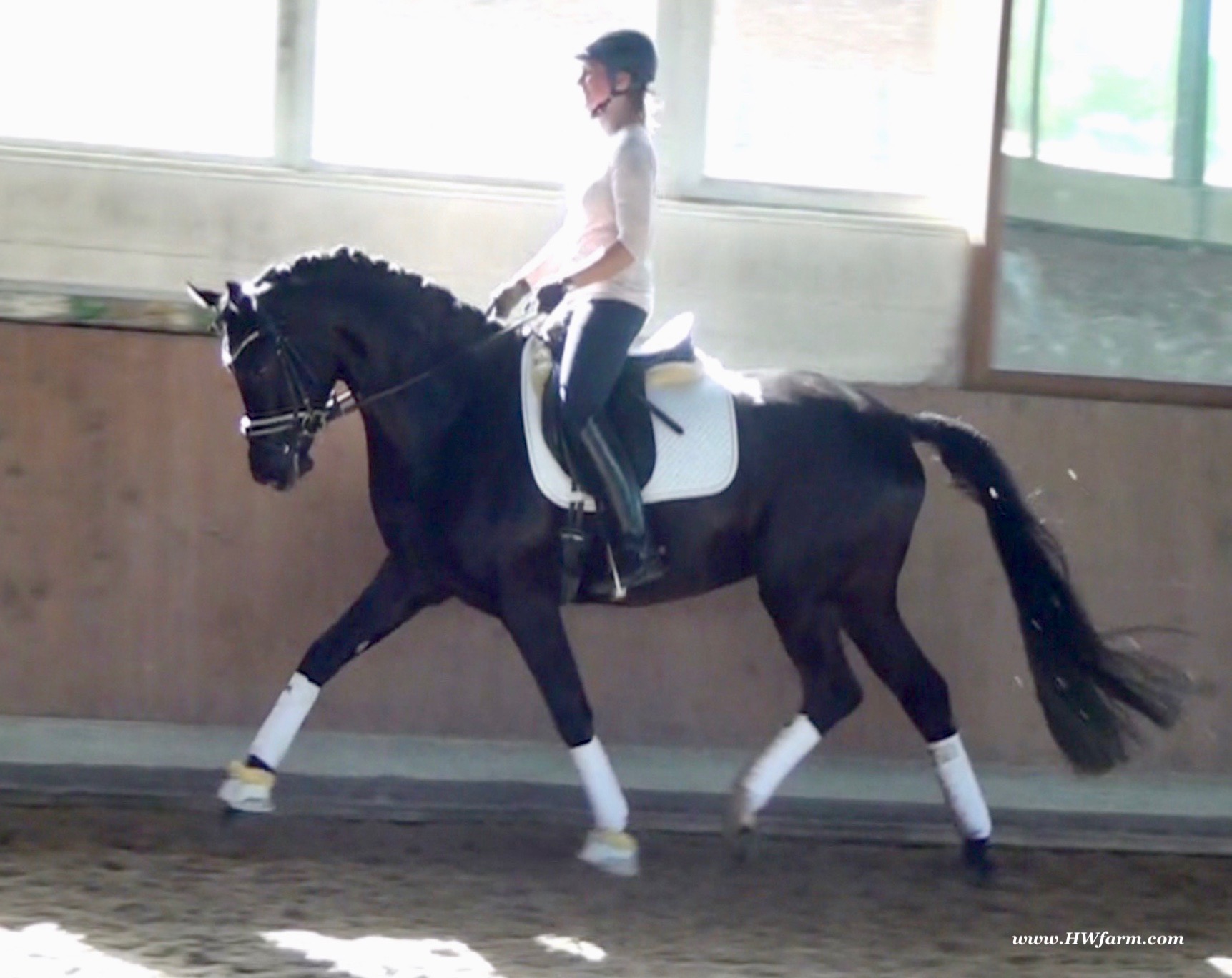 FirstEdition HW, black Hanoverian gelding, by Fuerst Romancier/ Bundeschampion Fidermark, born in 2015, standing approximately 169 cm or 16.2 hands. FirstEdition HW is by the famous stallion Fuerst Romancier - a stallion with world wide radiance. In dressage arenas, Fürst Romancier's offspring set the tone. After making his international debut at the CHIO Aachen, First Romance was unbeatable in the Burg Cup final with Dorothee Schneider. The Burg Cup finalist Fürst Levantino won the Future's Champion Cup in Hagen a.T.W. with Marlene Sieverding and Team Silver at the European Championships in Fontaine-bleau/FRA. Flying Dancer OLD/Dorothee Schneider, auction top price, was very well-placed at the World Championships for Young Horses. Best of Mount St. John OLD was Vice Regional Champion and fifth at the German National Championships. The Olden-burg Champion Mare, German Champion and P.S.I. auction top price Fasine OLD has already been placed in S-level (advanced) dressage competitions. Her two full broth-ers, For Romance I (licensing and main premium winner, top price of the Stallion Mar-ket, and Burg Cup finalist) and For Romance II (premium stallion) as well as Fürst Levantino and Fürst Jazz belong to the over 30 licensed sons of Fürst Romancier. Fürst Romancier was awarded the Oldenburg main premium. In 2009, he was fourth at the World Championships for Young Horses and at the Ger-man Championships, becoming the most successful stallion of his generation. His sire Fürst Heinrich, was Champion Stallion in 2001, winner of the main premium in 2002, World Champion of five-year-old dressage horses in 2003, and has produced 53 li-censed stallions, including Fürstenball, licensing and main premium champion, German champion and elite sire. His dam produced two other S-level dressage horses, Scarlatti (by San Amour) and Freestyler (v. Fürst Heinrich). The dam sire Romancier, successful up to Prix St. Georges, comes from the Olympian lineage of Dodona, from which de-scend Rembrandt/Nicole Uphoff, Ahlerich/Dr. Reiner Klimke, Amon and Rubinstein. Fürst Romancier represents the very successful Oldenburg Edoste line, from which also descend German Champion and European Championship participant Exupéry, Reserve German Champion Landjuwel Gold, Olympic Grand-Prix horse Petit Prince/Ellen Bontje/NED, Grand Prix horse Avignon and the international show-jumping winners Questa Vittoria/Thomas Kleis and Quintera/Leon Thijssen/NED.