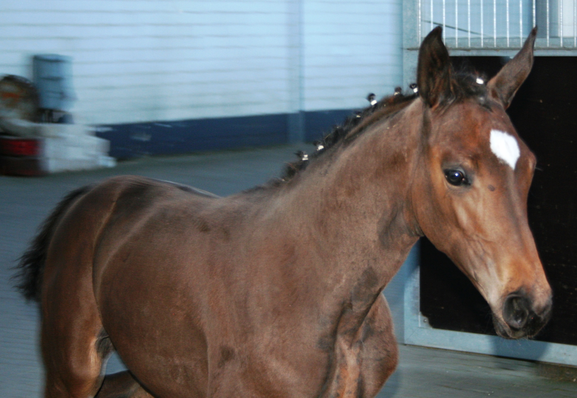 blowing in the stadium in Verden, the young stallion concentrated exemplarily on