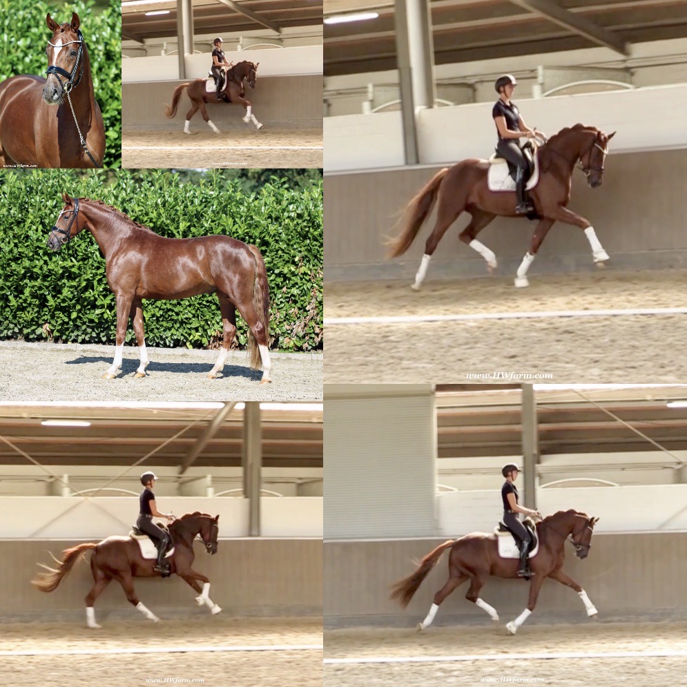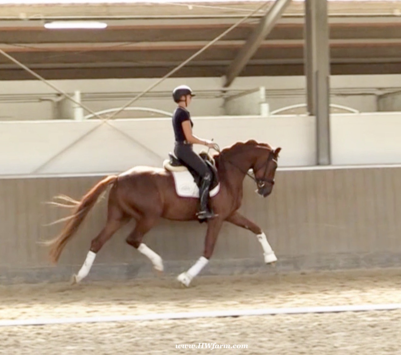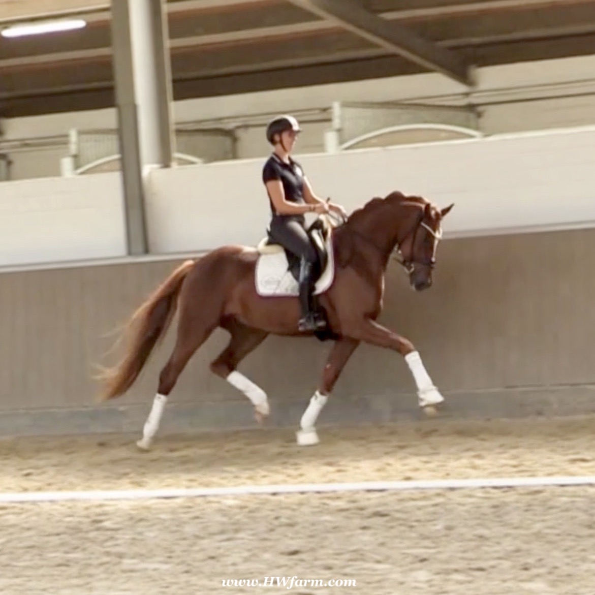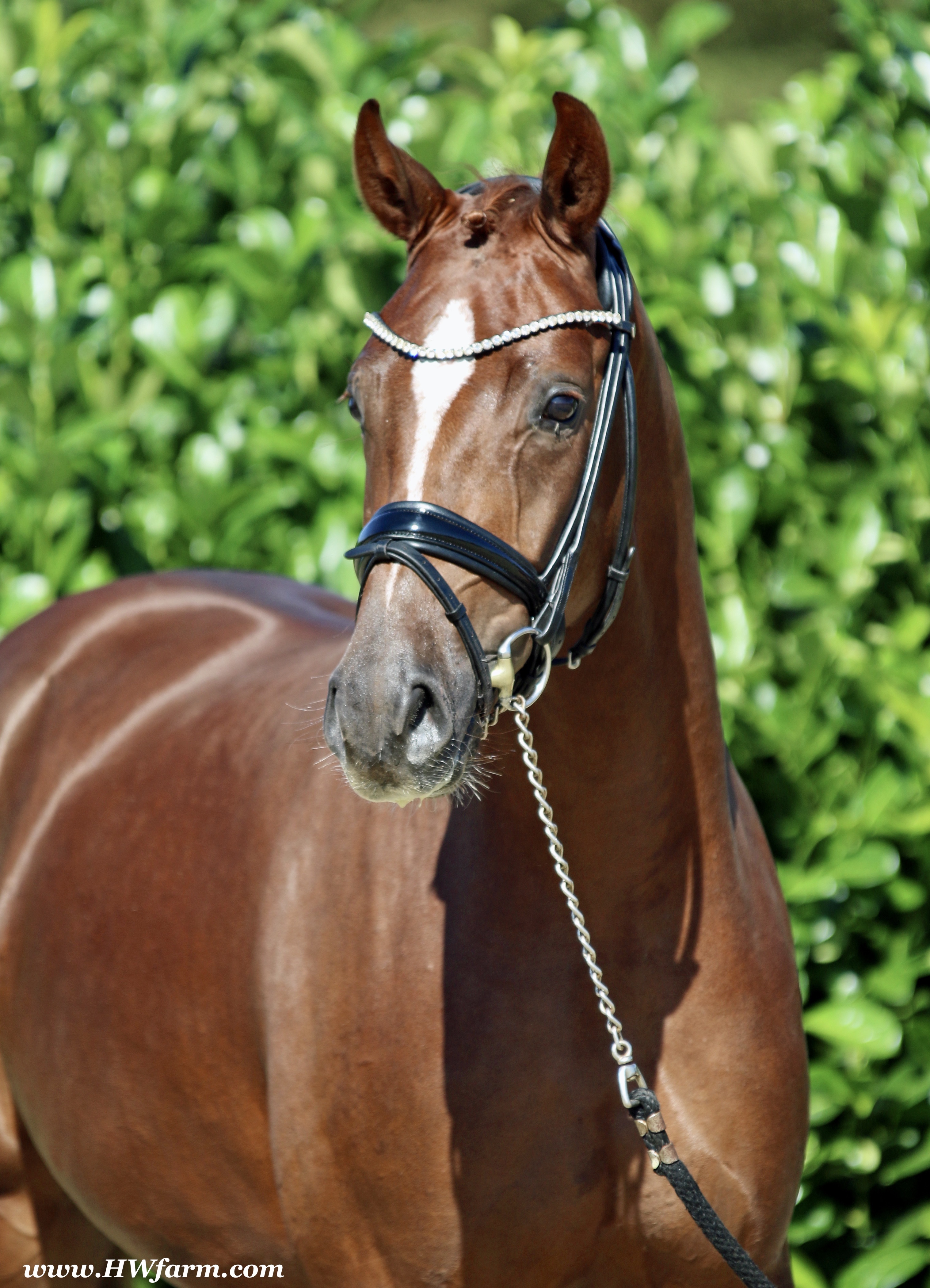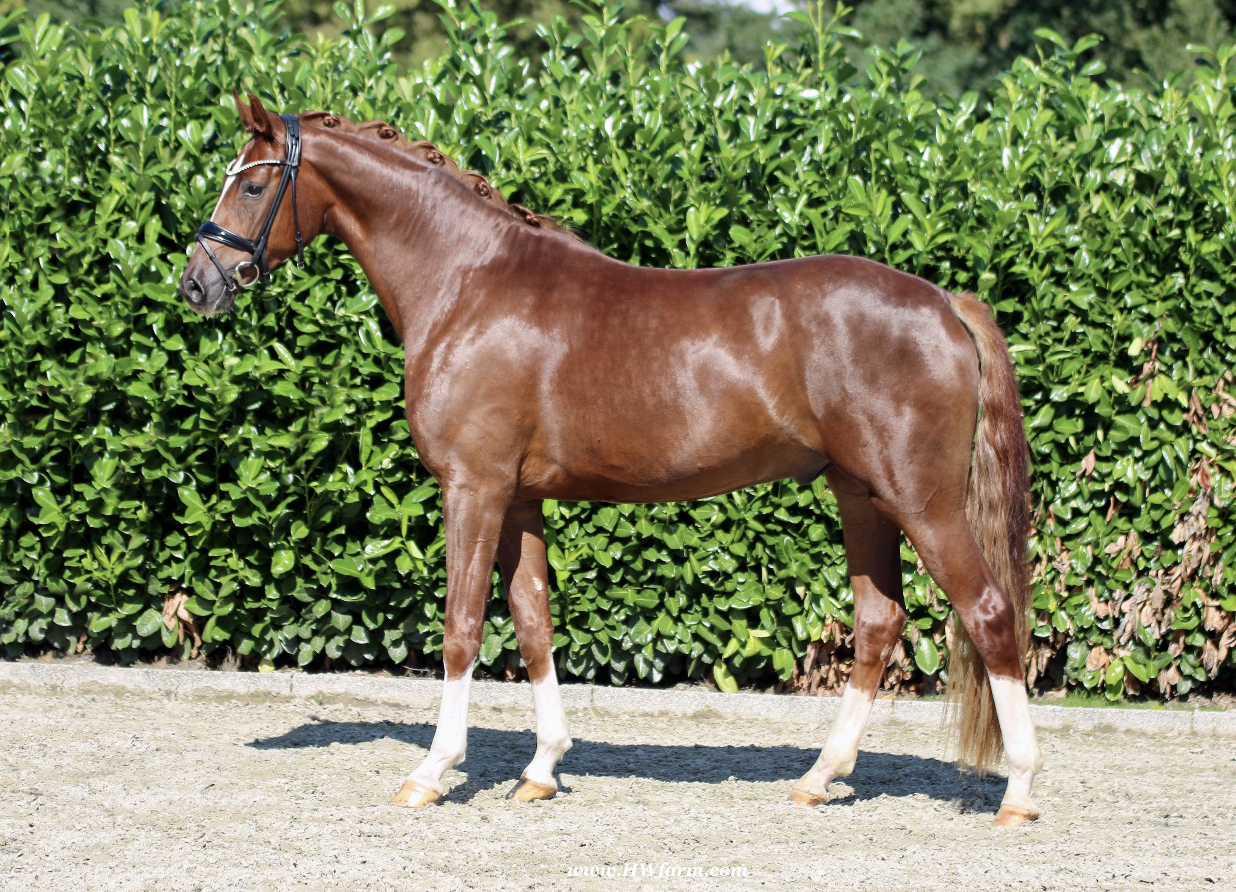 For Ever HW, liver chestnut Hanoverian gelding by Oldenburg champion For Romance/champion and Olympic bronze medalist Don Schufro, born in 2020, standing approximately 169 cm or 16.2 hands. For Ever HW has an impressive pedigree, his sire is the stunning Oldenburg Champion For Romance - the epitome of a model sire - and from a Voltaire dam line that has been accorded great success. Blessed with three excellent gaits, his canter and trot can only be described with superlatives and his character is also noteworthy. He stood out brilliantly in the strong lot of stallions at the 2011 Oldenburg Verband licensing and the enthusiastic spectators in Vechta gave him standing ovations. As expected, For Romance passed his 30-day test in Schlieckau with super scores. He received a 9.25 for his trot and rideability, a 9.0 for his canter and an 8.88 for character. In the third generation of his pedigree you find Don Schufro who took the Danish Champion title and won team bronze at the 2008 Olympic Games in Hong Kong under Andreas Helgstrand/DEN. He is also the sire of many champions. For Romance's dam line goes back to Voltaire, a Furioso II son who was well-known in breeding and sport the world over. This line is also the origin of the licensed stallions Dusty, Furinos and Platino as well as many international sport horses that were highly successful in show jumping as well as dressage. His sire, Fürst Romancier, was licensed in 2007 and made headlines just two years later when he took fourth place in the World Championships for young dressage horses in the class for five year olds and also fourth place at the Bundeschampionate in Warendorf. Matthias Alexander Rath has taken over Fürst Romancier's training. In 2012, For Romance’s full sister Fasine took the Oldenburg Champion Mare title – a feat that is so far unique in the history of the Oldenburg Verband. The dam's sire, Sir Donnerhall I, gained trademark status early on in his career. He was the 2nd Reserve Champion at his licensing, State Champion, the record-breaking winner of his stallion performance test, Vice World Champion of young dressage horses and Bundeschampion as well as the main premium winner of stallions with emphasis on dressage. More than 50 of his sons have been licensed. In 2010, three of his progeny took Vice Bundeschampion titles in Warendorf: Silbermond – the NRW Champion Stallion, Appassionata and the licensed Snap Shot. He has also siree numerous top auction horses. For Romance I has been honored as the VTV Oldenburg Dressage Stallion of the Year 2019 at the Oldenburg Stallion Licensing in Vechta, Germany, on Saturday 23 November 2019. This highly prestigious award is given to a licensed, Oldenburg stallion for his outstanding achievements in sport and breeding. On the occasion of the Stallion Gala, For Romance I OLD and Chap II was decorated with the VTV sash in the Oldenburg Horse Center Vechta. Heiko Meinen, head of the R+V VTV General Agency, which is specialized in insuring animals, once again took the opportunity this year to reward the breeder, as well as the owner by handing each of them a generous check in the amount of 1,000 euro for their great achievements in breeding. The splendid career of For Romance I OLD, born in 2009 by Fürst Romancier out of Gesina by Sir Donnerhall I - Don Schufro - Sandro - Gepard, bred by Gestüt Lewitz, and owned by Dressurpferde Leistungszentrum Lodbergen GmbH, was launched in 2011 when the Dressurpferde Leistungszentrum Lodbergen acquired the celebrated champion stallion of Oldenburg licensing on the Oldenburg stallion market. Carefully schooled by former auction rider Kira Wulferding and successful in dressage horse tests in classes A through M, this gorgeous stallion celebrated his first triumph in 2016 in advanced classes as well as a place in the top ten at the Nürnberger Burg-Pokal finals in the same year. In late 2017, For Romance I OLD’s further athletic development was taken over by Lodbergen’s head trainer, Therese Nilshagen. This year the pair won silver in both the Intermediaire II tests and the Short Grand Prix. Romance possesses extremely good rideability and collection. Working together with our trainer Klaus Balkenhol, we now want to concentrate on making him stronger, making optimal use of his excellent hindquarters and work carefully towards Grand Prix sport. Although For Romance I OLD is in great demand as a breeding stallion, he is incredibly sweet and will do almost anything for a lump of sugar. He’s also extremely well-behaved, even when other horses are in the arena The 36-year-old Swedish trainer took bronze at the European Championship in Rotterdam this year with her other Oldenburg ambassador, Dante Weltino OLD. This black beauty is not just thrilling horse fans in sport. He’s also sired about 30 licensed and price-winning stallions, including the champion stallions Fashion in Black and Feuerwerk, the HLP champions Ferrero and Fidelio Royal and numerous premium stallions including For Final OLD, national vice-champion and third-place winner in the state championship, likewise stationed at Lodbergen. For Romance I OLD has also sired more than 80 premium mares and numerous championship winners. His offspring inherit his lovely face, his outstanding typical beauty, his elegance, his rideability and his absolute determination to win”, reports Lodbergen’s manager Wolfgang Stagge. “Romance consistently succeeds in producing not just horses for pro riders but for amateurs as well, as his offspring are easy to handle but always come through when it counts Romance I OLD is a full brother to premium stallion For Romance II, licensed in 2015 in Vechta, For Romance III, licensed in 2019 in Redefin, and champion elite mare and national champion Fasine OLD. He is also half-brother to 2015 Mecklenburg licensing champion Feinrich and to 2017 Oldenburg champion mare Fürstin Gesine by Fürst Heinrich. Romance I OLD's dam line goes back to the renowned