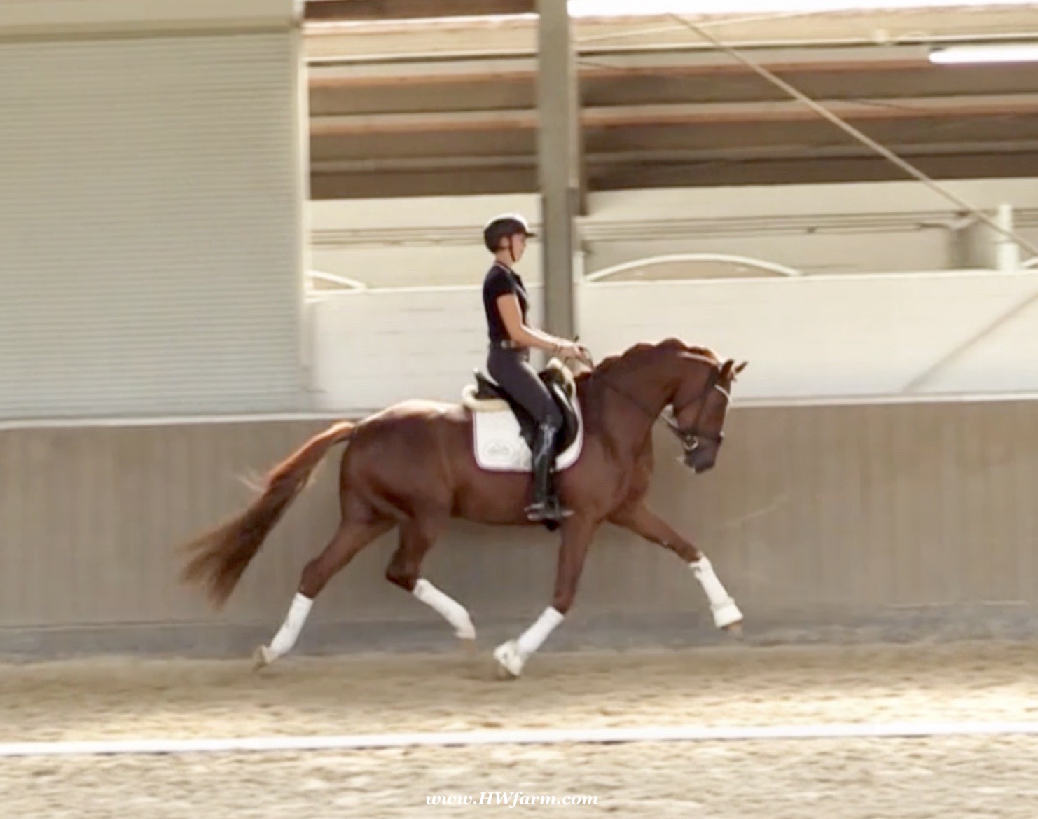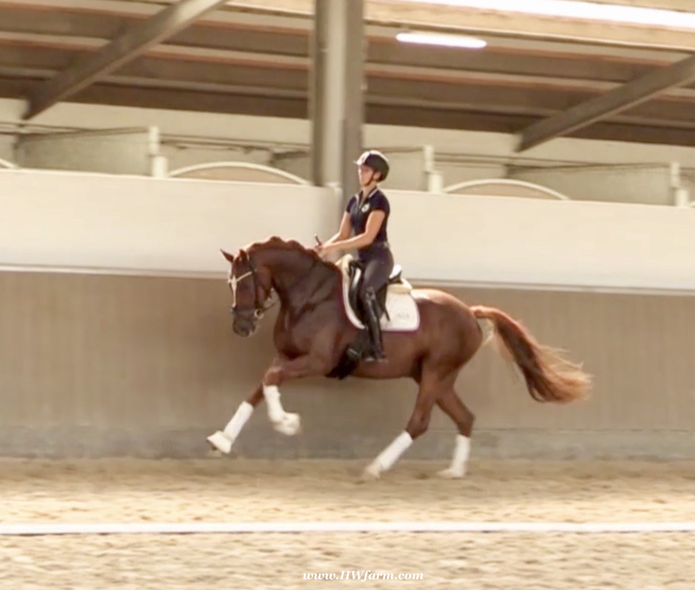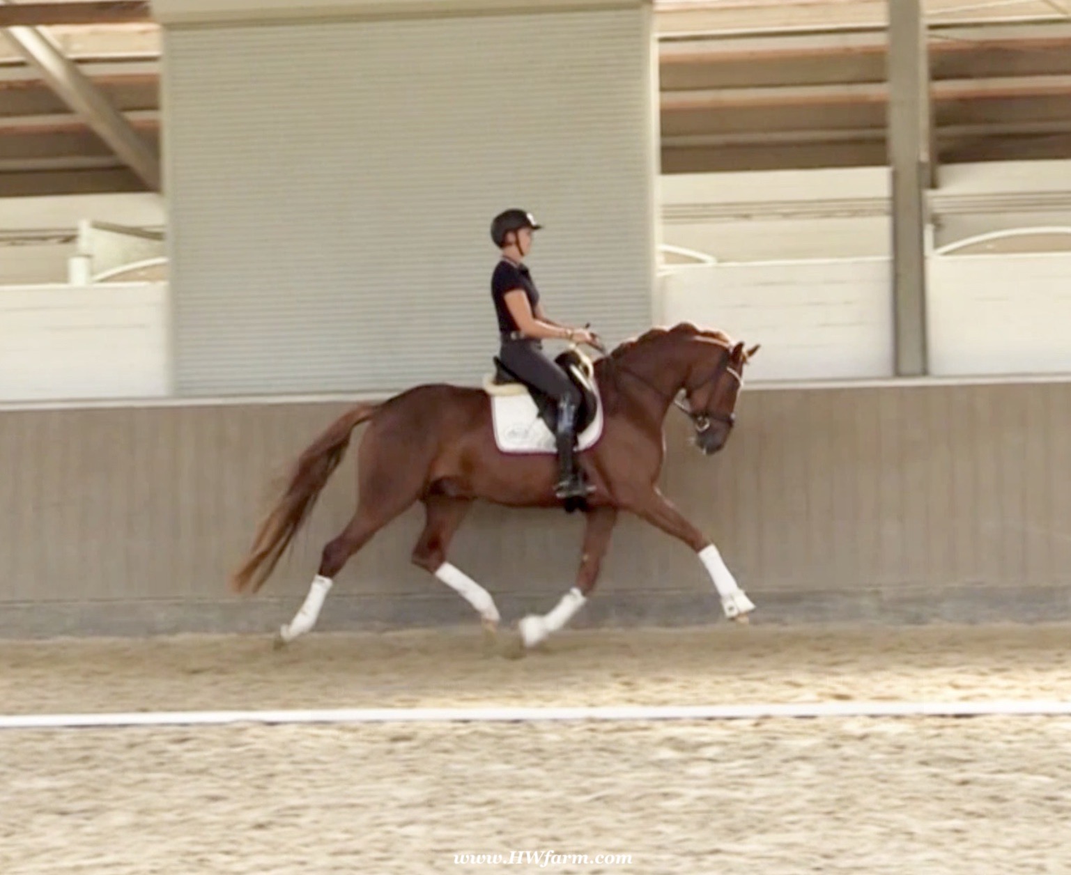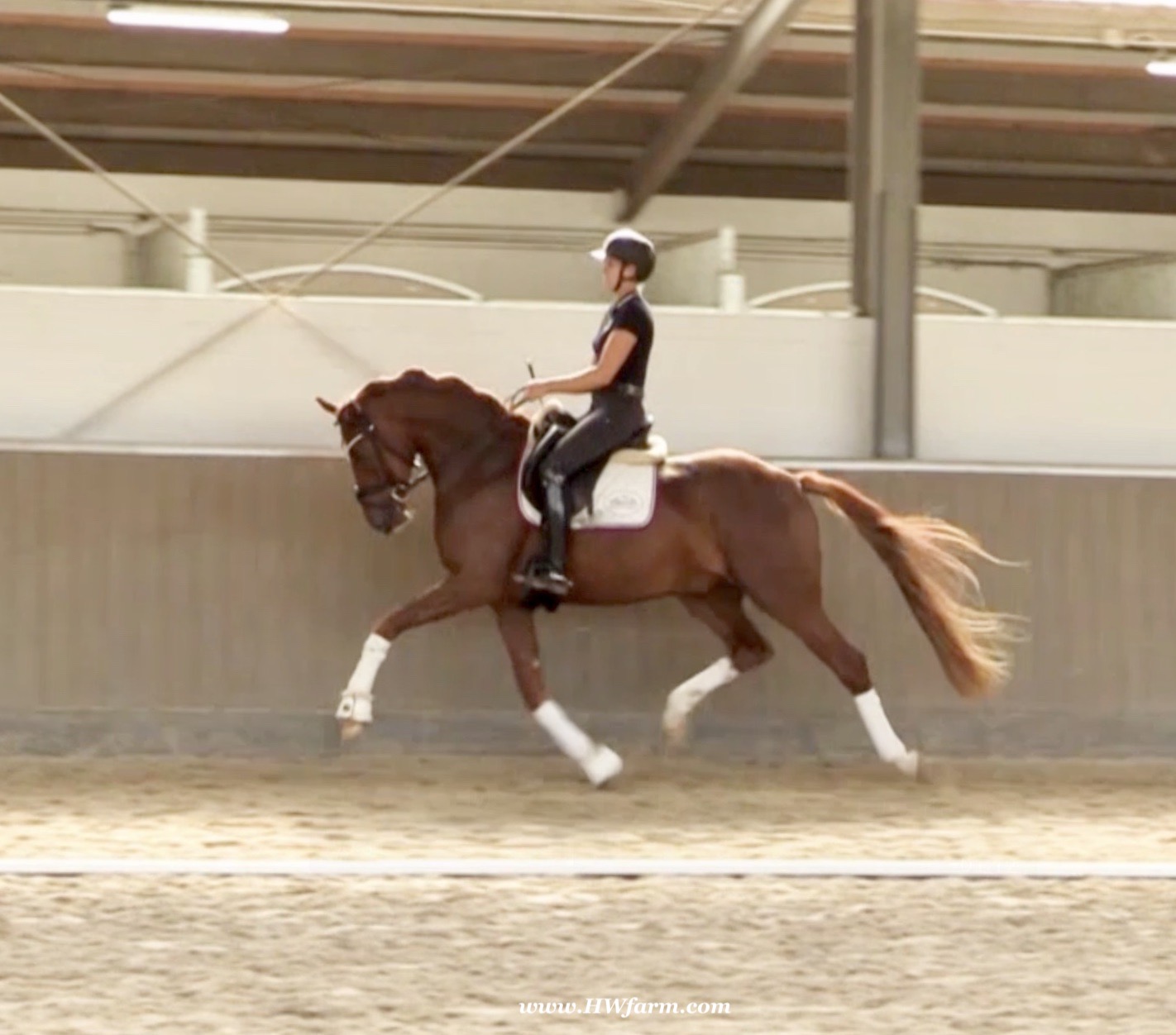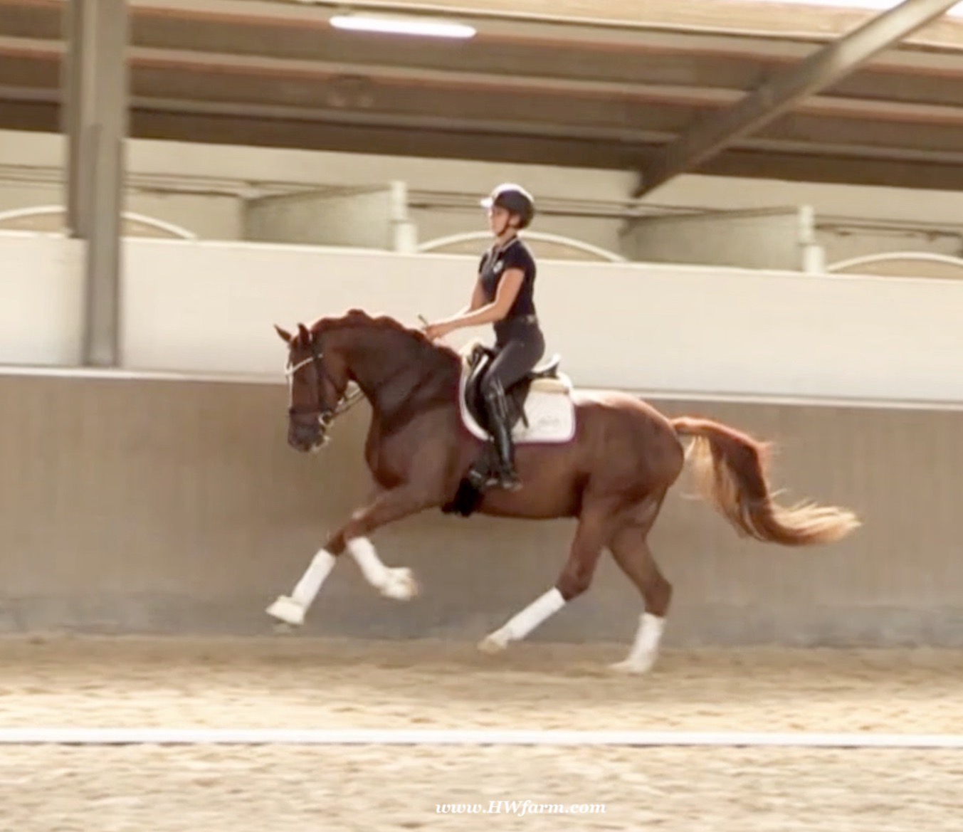 For Ever HW, liver chestnut Hanoverian gelding by Oldenburg champion For Romance/champion and Olympic bronze medalist Don Schufro, born in 2020, standing approximately 169 cm or 16.2 hands. For Ever HW has an impressive pedigree, his sire is the stunning Oldenburg Champion For Romance - the epitome of a model sire - and from a Voltaire dam line that has been accorded great success. Blessed with three excellent gaits, his canter and trot can only be described with superlatives and his character is also noteworthy. He stood out brilliantly in the strong lot of stallions at the 2011 Oldenburg Verband licensing and the enthusiastic spectators in Vechta gave him standing ovations. As expected, For Romance passed his 30-day test in Schlieckau with super scores. He received a 9.25 for his trot and rideability, a 9.0 for his canter and an 8.88 for character. In the third generation of his pedigree you find Don Schufro who took the Danish Champion title and won team bronze at the 2008 Olympic Games in Hong Kong under Andreas Helgstrand/DEN. He is also the sire of many champions. For Romance's dam line goes back to Voltaire, a Furioso II son who was well-known in breeding and sport the world over. This line is also the origin of the licensed stallions Dusty, Furinos and Platino as well as many international sport horses that were highly successful in show jumping as well as dressage. His sire, Fürst Romancier, was licensed in 2007 and made headlines just two years later when he took fourth place in the World Championships for young dressage horses in the class for five year olds and also fourth place at the Bundeschampionate in Warendorf. Matthias Alexander Rath has taken over Fürst Romancier's training. In 2012, For Romance’s full sister Fasine took the Oldenburg Champion Mare title – a feat that is so far unique in the history of the Oldenburg Verband. The dam's sire, Sir Donnerhall I, gained trademark status early on in his career. He was the 2nd Reserve Champion at his licensing, State Champion, the record-breaking winner of his stallion performance test, Vice World Champion of young dressage horses and Bundeschampion as well as the main premium winner of stallions with emphasis on dressage. More than 50 of his sons have been licensed. In 2010, three of his progeny took Vice Bundeschampion titles in Warendorf: Silbermond – the NRW Champion Stallion, Appassionata and the licensed Snap Shot. He has also siree numerous top auction horses. For Romance I has been honored as the VTV Oldenburg Dressage Stallion of the Year 2019 at the Oldenburg Stallion Licensing in Vechta, Germany, on Saturday 23 November 2019. This highly prestigious award is given to a licensed, Oldenburg stallion for his outstanding achievements in sport and breeding. On the occasion of the Stallion Gala, For Romance I OLD and Chap II was decorated with the VTV sash in the Oldenburg Horse Center Vechta. Heiko Meinen, head of the R+V VTV General Agency, which is specialized in insuring animals, once again took the opportunity this year to reward the breeder, as well as the owner by handing each of them a generous check in the amount of 1,000 euro for their great achievements in breeding. The splendid career of For Romance I OLD, born in 2009 by Fürst Romancier out of Gesina by Sir Donnerhall I - Don Schufro - Sandro - Gepard, bred by Gestüt Lewitz, and owned by Dressurpferde Leistungszentrum Lodbergen GmbH, was launched in 2011 when the Dressurpferde Leistungszentrum Lodbergen acquired the celebrated champion stallion of Oldenburg licensing on the Oldenburg stallion market. Carefully schooled by former auction rider Kira Wulferding and successful in dressage horse tests in classes A through M, this gorgeous stallion celebrated his first triumph in 2016 in advanced classes as well as a place in the top ten at the Nürnberger Burg-Pokal finals in the same year. In late 2017, For Romance I OLD’s further athletic development was taken over by Lodbergen’s head trainer, Therese Nilshagen. This year the pair won silver in both the Intermediaire II tests and the Short Grand Prix. Romance possesses extremely good rideability and collection. Working together with our trainer Klaus Balkenhol, we now want to concentrate on making him stronger, making optimal use of his excellent hindquarters and work carefully towards Grand Prix sport. Although For Romance I OLD is in great demand as a breeding stallion, he is incredibly sweet and will do almost anything for a lump of sugar. He’s also extremely well-behaved, even when other horses are in the arena The 36-year-old Swedish trainer took bronze at the European Championship in Rotterdam this year with her other Oldenburg ambassador, Dante Weltino OLD. This black beauty is not just thrilling horse fans in sport. He’s also sired about 30 licensed and price-winning stallions, including the champion stallions Fashion in Black and Feuerwerk, the HLP champions Ferrero and Fidelio Royal and numerous premium stallions including For Final OLD, national vice-champion and third-place winner in the state championship, likewise stationed at Lodbergen. For Romance I OLD has also sired more than 80 premium mares and numerous championship winners. His offspring inherit his lovely face, his outstanding typical beauty, his elegance, his rideability and his absolute determination to win”, reports Lodbergen’s manager Wolfgang Stagge. “Romance consistently succeeds in producing not just horses for pro riders but for amateurs as well, as his offspring are easy to handle but always come through when it counts Romance I OLD is a full brother to premium stallion For Romance II, licensed in 2015 in Vechta, For Romance III, licensed in 2019 in Redefin, and champion elite mare and national champion Fasine OLD. He is also half-brother to 2015 Mecklenburg licensing champion Feinrich and to 2017 Oldenburg champion mare Fürstin Gesine by Fürst Heinrich. Romance I OLD's dam line goes back to the renowned