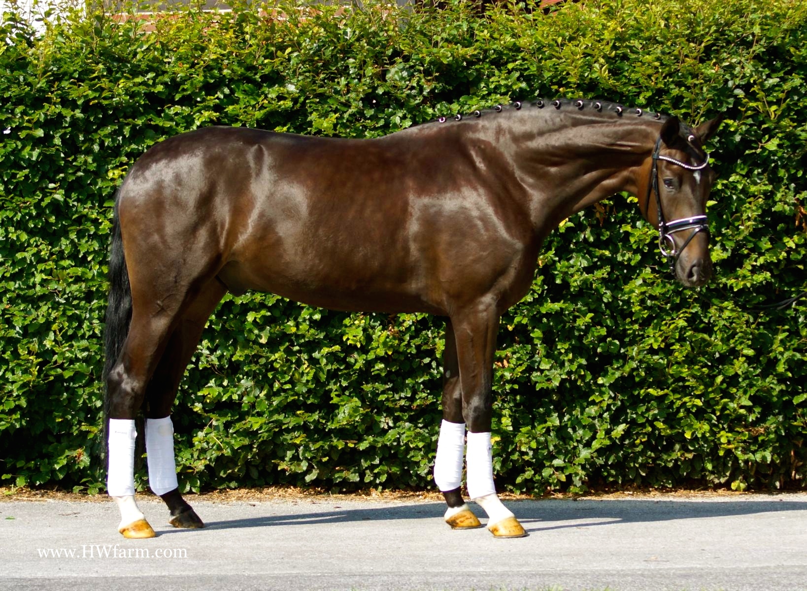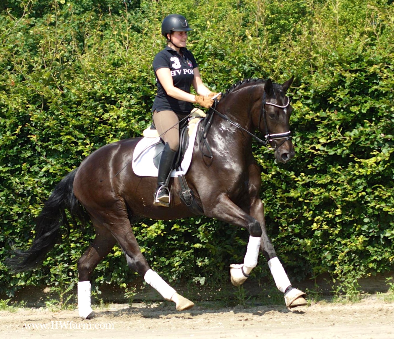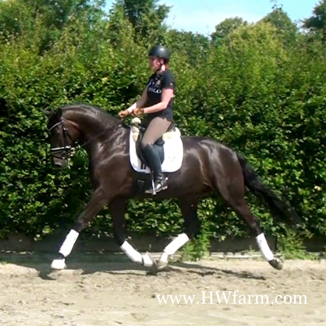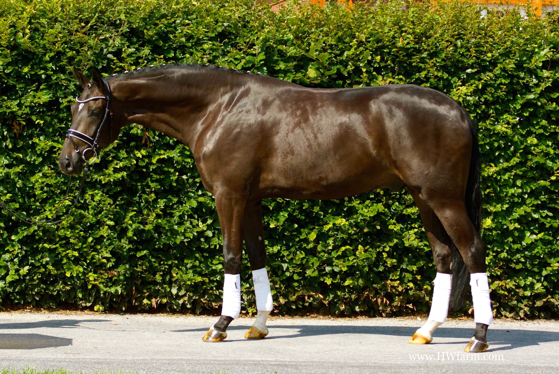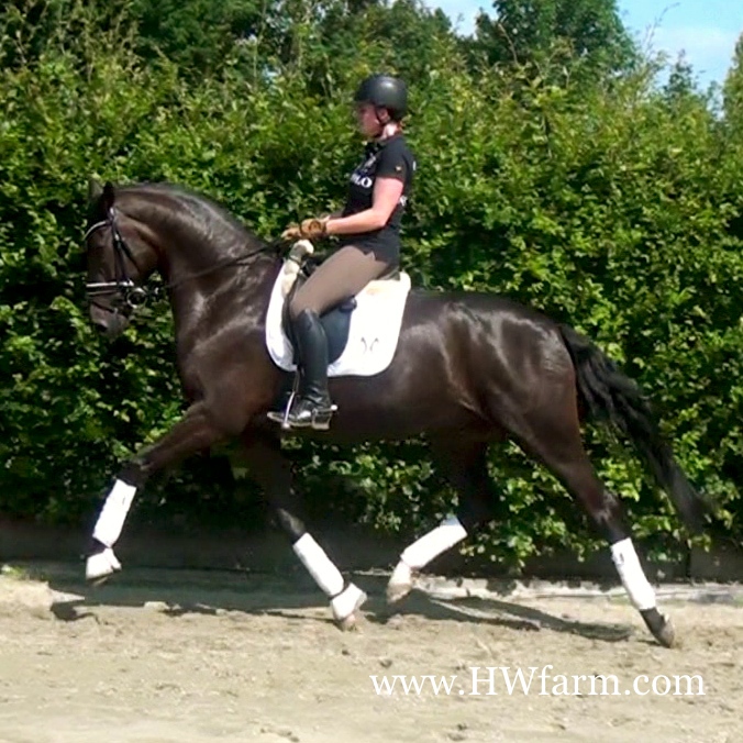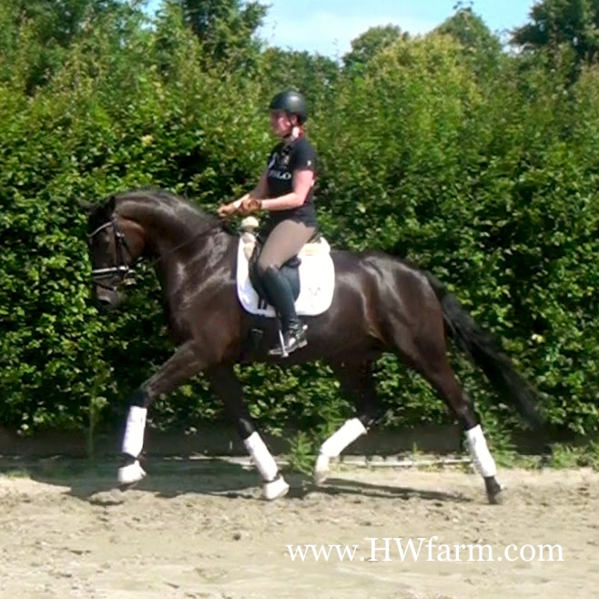 ForYou HW, dark bay Rhineland gelding, by (Feedback/Sandro Hit), born in 2011, standing approximately 169 cm or 16.2 hands. ForYou HW goes back to the famous F-line, he's a total look a like to his sire, in type and movement, a clear winner. Feedback, a beautiful stallion, presented himself, in the best light in 2012. With his rider Mathias Bouten he won novice and elementary dressage tests with scores up to 9.2 points. No wonder that he qualified for the German Young Horse Champion-ships and that he was nominated for the World Championships of the five year old dressage horses in Verden. The stallion is schooled by Isabell Werth and she is convinced that Feedback will become a "really good one". The Vice Champion of the NRW licensing in 2009 already has called attention to is qualities as stallion. In the year 2012 he fathered champion foals and gold medal foals at foal shows in Rhineland and Westphalia. His offspring are sought after at auctions as well. Out of a Grafenstolz mare, he provided the priciest horse (20,000 Euros) in Rhineland-Palatinate-Saar. His father Fidertanz, NRW-Champion in 2004, provided in 2012 many top foals, licensed sons and a German Young Horse Champion. Feedback's mother, premium mare Scarlett was first runner-up in her ring; she is mother of premium stallion Fiderhit, of state premium mare Fleet Street (who is mother of Quotenkönig, second runner-up of the NRW-licensing in 2011) and of more champion foals. Mother father Sandro Hit is father of record mare Poetin and of champion stallion Stedinger. The Holstein C- and L-lines perfect the pedigree in the third and fourth generation. ForYou HW's dam sire is by Sandro Hit. What an amazing pedigree, all around. The Oldenburg Champion stallion and Young Horse Champion, TRIPLE CROWN WINNER - Selten HW (previously Elizabeth Ball's mount, sold for Euro 500.000 to Fiona Bigwood and Anders Dahl - internationally successful, best international small horse tour 2014, bred and raised by www.HWfarm.com) - is by the same sire as ForYou HW's dam sire. ForYou HW's dam sire is Sandro Hit, inheriting his elegance and movement. Better than ever: Sandro Hit has started a new era in the dressage scene and is already writing sporting and breeding history The number one: National Young Horse Champion - Young Dressage World Champion - unique producer performance Sandro Hit progeny are breaking all price-records, are annually winning championships and are Approval Champions Sandro Hit absolved his stallion performance test in Medingen in 1997 and in 1999 he became federal champion six-year old dressage horses as well as world champion juvenile horse in Arnheim. He has meanwhile been trained up to advanced class. Right from the outset, Sandro Hit set standards not only in sport, but also in breeding. His first crops of foals are convincing by their exceptionally aesthetic imprint of type as well as their outstanding motions. His son Sandrit was the 1999 approval winner in Mecklenburg-Vorpommern, while Sommerhit was runner-up in Berlin-Brandenburg and Sandro Ace became vice-champion in Oldenburg. Sunny Boy in turn, was awarded a premium in Oldenburg , whereas Sommeliere likewise was approved in Oldenburger in 1999. In the year 2000, Sandro Hit made the headlines once more: His Brandenburg bred daughter Poetin won the Federal Championship of three year old mares and geldings under Hans-Heinrich Meyer zu Strohen. A number of his offspring attained peak prices at different German auction sites, including his daughter Starlet, who at DM 140,000 was the top lot of the collection of broodmares at the 2000 Vechta spring auction. On top of that, two Sandro Hit progeny were awarded the desired status "approved" at the Oldenburg approval, as well as at the NRW approvals. In 2001 he sired the Federal champion and two vice champions. ForYou HW will steal your heart in no time. He is a horse of superb quality and a super fancy mover, who knows to impress due to his type, movement and work ethic, combined with an excellent self carriage! He is as pretty as a horse can get. Unbelievable beautiful in- and exterior, he has a super nice head with a "stallion look alike" neck (he is a gelding!). He is a very sweet boy and has the talent to do it all. He's sane and easy to ride, really trustworthy for such a young gentleman. ForYou HW, is a cat like, elastic mover with lots of schwung, a free shoulder as well as a very good rhythm and balance, the perfect future FEI horse. He is truly breathtaking! He got the best competition genes from his dam and sire, this one is a really special boy. He is definitely for the "big tour". He has a very active hind leg, just check how far he reaches under his belly and his canter and trot are of outstanding quality. He just floats above the ground. He shows himself willing and forward without being too hot, he has an outstanding character and will climb up the levels with ease. All exercises come naturally to him, as he has the built, movement and athleticism to work in dressage and he sure will excel in piaffe and passage. This extremely talented gentleman has international potential. ForYou HW will just need to look at you with his soft eyes and you are in love with one of the prettiest horses available. The judges will love him due to his expression and "show me" attitude, take him to shows and collect your ribbons. Show him off at clinics and get yourself noticed. He is fun all around. He is in daily training and progressing really nicely. He's very well balanced and behaved. This boy will enable you to fulfill your dreams with all his sensational abilities. The goal of HW Farm is, to find highly talented young horses in Germany for riders in the USA and all over the world. ForYou HW, is a phenomenal dressage gelding. This young star will go far in the dressage ring, he is your ticket to the top! Buy him now and show him yourself in the Young Horse Championships or take him to the BundesChampionships. X-rays on file P