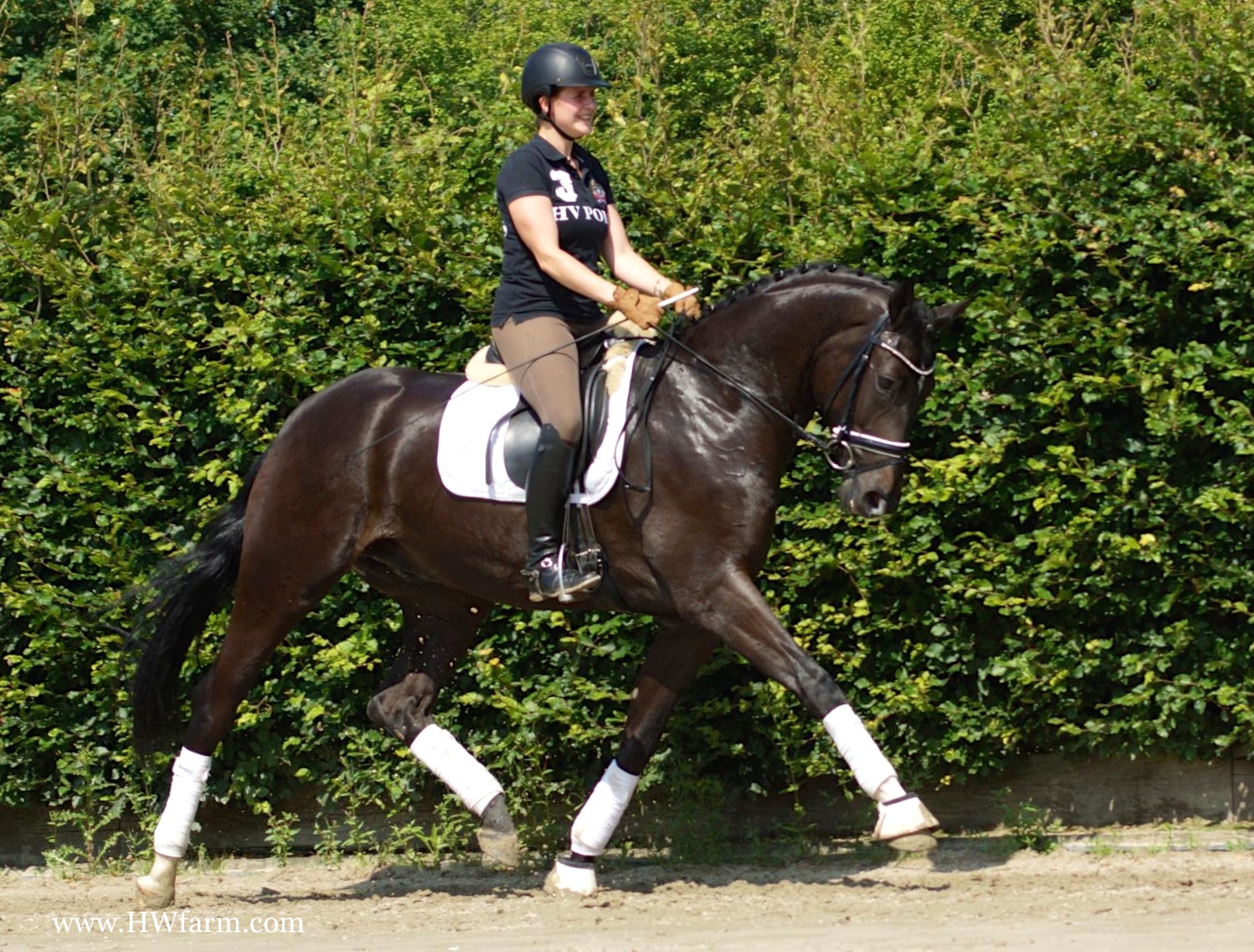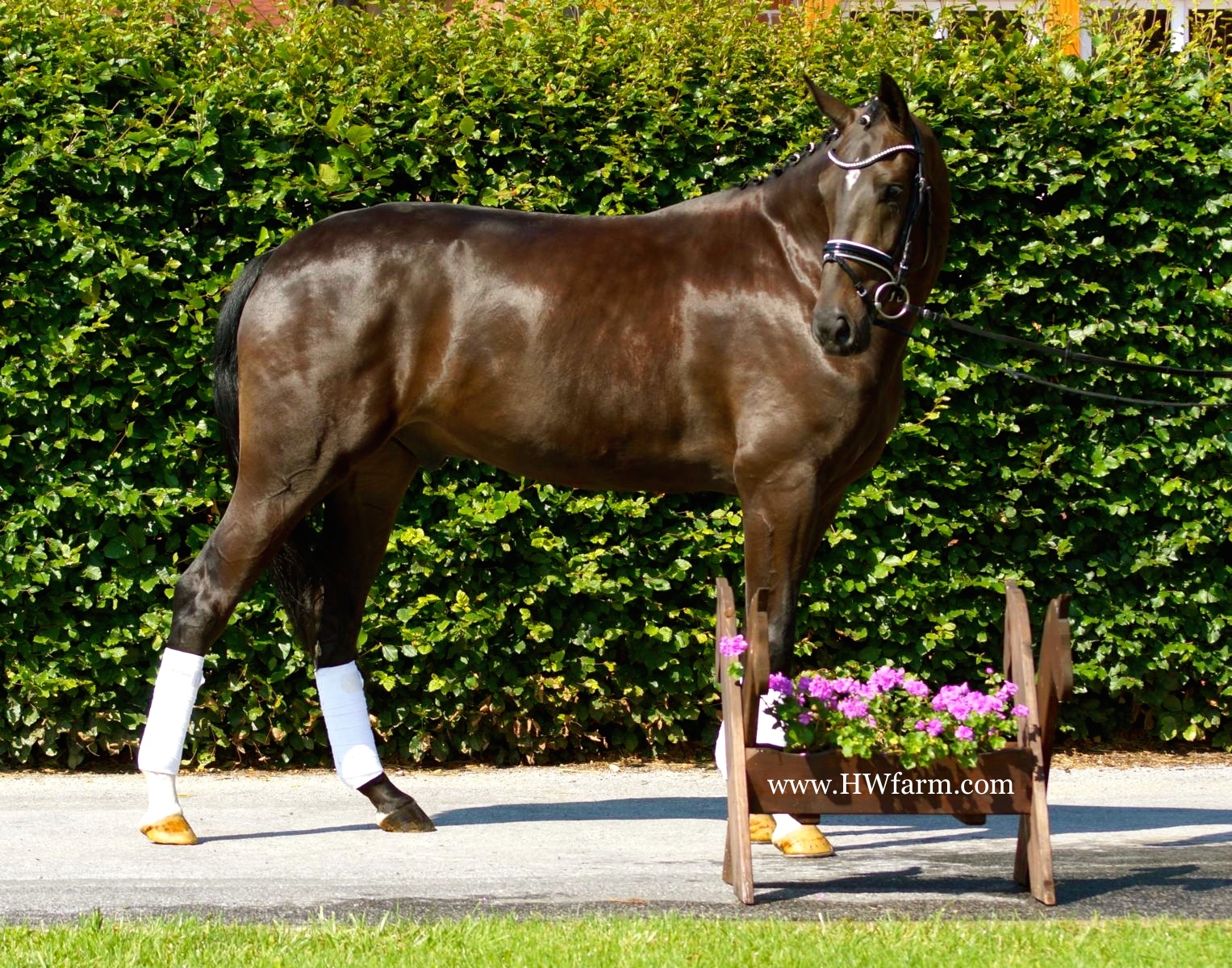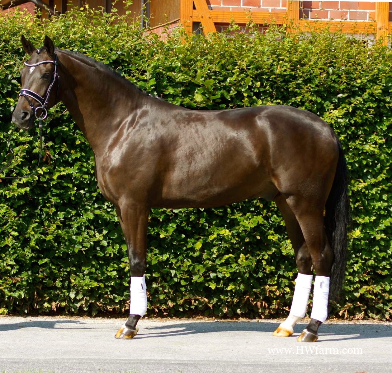 ForYou HW, dark bay Rhineland gelding, by (Feedback/Sandro Hit), born in 2011, standing approximately 169 cm or 16.2 hands. ForYou HW goes back to the famous F-line, he's a total look a like to his sire, in type and movement, a clear winner. Feedback, a beautiful stallion, presented himself, in the best light in 2012. With his rider Mathias Bouten he won novice and elementary dressage tests with scores up to 9.2 points. No wonder that he qualified for the German Young Horse Champion-ships and that he was nominated for the World Championships of the five year old dressage horses in Verden. The stallion is schooled by Isabell Werth and she is convinced that Feedback will become a "really good one". The Vice Champion of the NRW licensing in 2009 already has called attention to is qualities as stallion. In the year 2012 he fathered champion foals and gold medal foals at foal shows in Rhineland and Westphalia. His offspring are sought after at auctions as well. Out of a Grafenstolz mare, he provided the priciest horse (20,000 Euros) in Rhineland-Palatinate-Saar. His father Fidertanz, NRW-Champion in 2004, provided in 2012 many top foals, licensed sons and a German Young Horse Champion. Feedback's mother, premium mare Scarlett was first runner-up in her ring; she is mother of premium stallion Fiderhit, of state premium mare Fleet Street (who is mother of Quotenkönig, second runner-up of the NRW-licensing in 2011) and of more champion foals. Mother father Sandro Hit is father of record mare Poetin and of champion stallion Stedinger. The Holstein C- and L-lines perfect the pedigree in the third and fourth generation. ForYou HW's dam sire is by Sandro Hit. What an amazing pedigree, all around. The Oldenburg Champion stallion and Young Horse Champion, TRIPLE CROWN WINNER - Selten HW (previously Elizabeth Ball's mount, sold for Euro 500.000 to Fiona Bigwood and Anders Dahl - internationally successful, best international small horse tour 2014, bred and raised by www.HWfarm.com) - is by the same sire as ForYou HW's dam sire. ForYou HW's dam sire is Sandro Hit, inheriting his elegance and movement. Better than ever: Sandro Hit has started a new era in the dressage scene and is already writing sporting and breeding history The number one: National Young Horse Champion - Young Dressage World Champion - unique producer performance Sandro Hit progeny are breaking all price-records, are annually winning championships and are Approval Champions Sandro Hit absolved his stallion performance test in Medingen in 1997 and in 1999 he became federal champion six-year old dressage horses as well as world champion juvenile horse in Arnheim. He has meanwhile been trained up to advanced class. Right from the outset, Sandro Hit set standards not only in sport, but also in breeding. His first crops of foals are convincing by their exceptionally aesthetic imprint of type as well as their outstanding motions. His son Sandrit was the 1999 approval winner in Mecklenburg-Vorpommern, while Sommerhit was runner-up in Berlin-Brandenburg and Sandro Ace became vice-champion in Oldenburg. Sunny Boy in turn, was awarded a premium in Oldenburg , whereas Sommeliere likewise was approved in Oldenburger in 1999. In the year 2000, Sandro Hit made the headlines once more: His Brandenburg bred daughter Poetin won the Federal Championship of three year old mares and geldings under Hans-Heinrich Meyer zu Strohen. A number of his offspring attained peak prices at different German auction sites, including his daughter Starlet, who at DM 140,000 was the top lot of the collection of broodmares at the 2000 Vechta spring auction. On top of that, two Sandro Hit progeny were awarded the desired status "approved" at the Oldenburg approval, as well as at the NRW approvals. In 2001 he sired the Federal champion and two vice champions. ForYou HW will steal your heart in no time. He is a horse of superb quality and a super fancy mover, who knows to impress due to his type, movement and work ethic, combined with an excellent self carriage! He is as pretty as a horse can get. Unbelievable beautiful in- and exterior, he has a super nice head with a "stallion look alike" neck (he is a gelding!). He is a very sweet boy and has the talent to do it all. He's sane and easy to ride, really trustworthy for such a young gentleman. ForYou HW, is a cat like, elastic mover with lots of schwung, a free shoulder as well as a very good rhythm and balance, the perfect future FEI horse. He is truly breathtaking! He got the best competition genes from his dam and sire, this one is a really special boy. He is definitely for the "big tour". He has a very active hind leg, just check how far he reaches under his belly and his canter and trot are of outstanding quality. He just floats above the ground. He shows himself willing and forward without being too hot, he has an outstanding character and will climb up the levels with ease. All exercises come naturally to him, as he has the built, movement and athleticism to work in dressage and he sure will excel in piaffe and passage. This extremely talented gentleman has international potential. ForYou HW will just need to look at you with his soft eyes and you are in love with one of the prettiest horses available. The judges will love him due to his expression and "show me" attitude, take him to shows and collect your ribbons. Show him off at clinics and get yourself noticed. He is fun all around. He is in daily training and progressing really nicely. He's very well balanced and behaved. This boy will enable you to fulfill your dreams with all his sensational abilities. The goal of HW Farm is, to find highly talented young horses in Germany for riders in the USA and all over the world. ForYou HW, is a phenomenal dressage gelding. This young star will go far in the dressage ring, he is your ticket to the top! Buy him now and show him yourself in the Young Horse Championships or take him to the BundesChampionships. X-rays on file P
