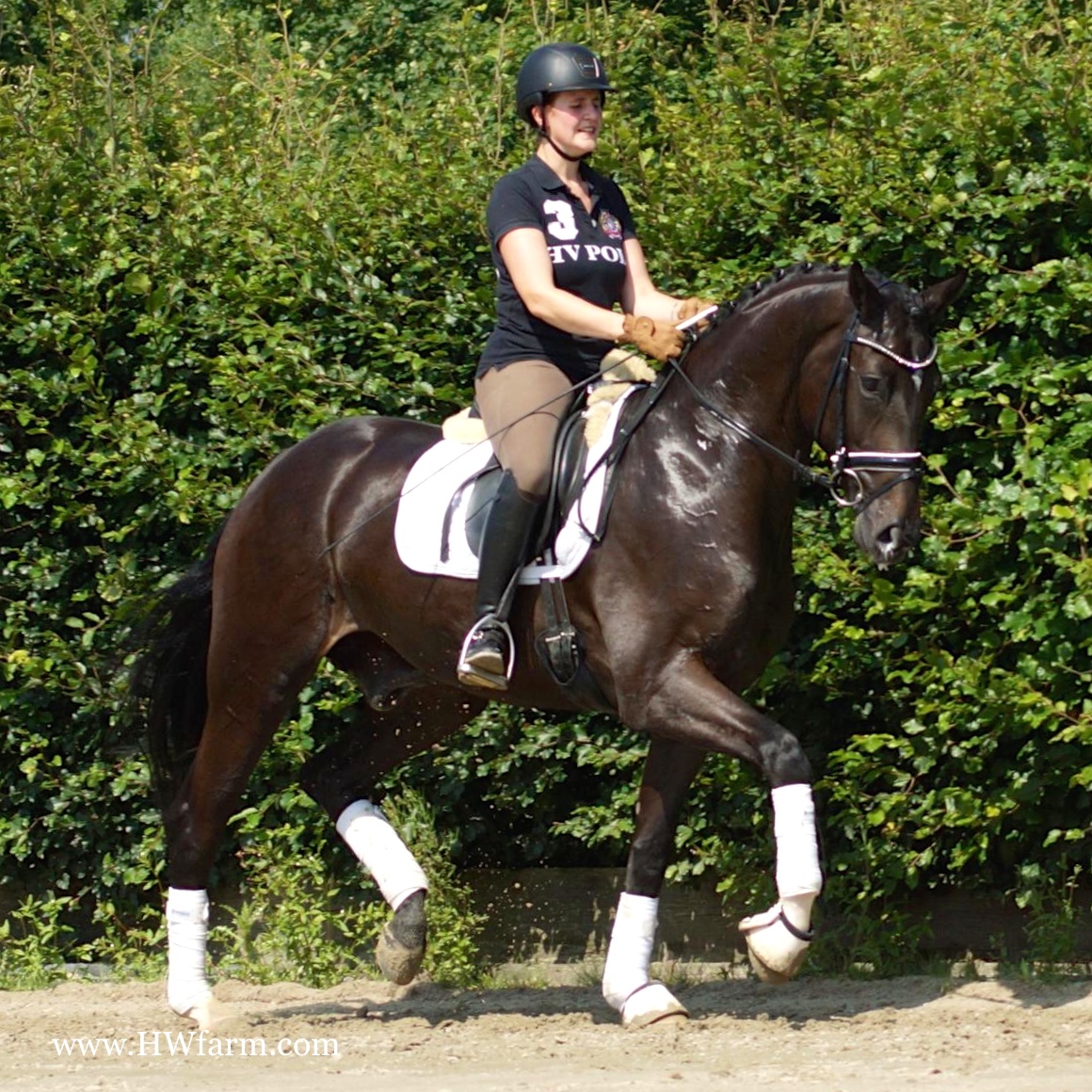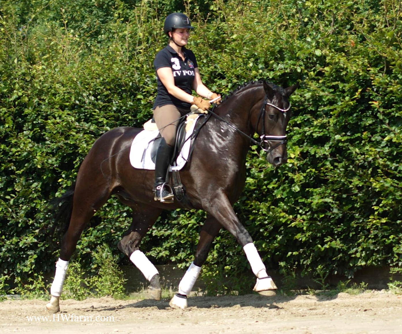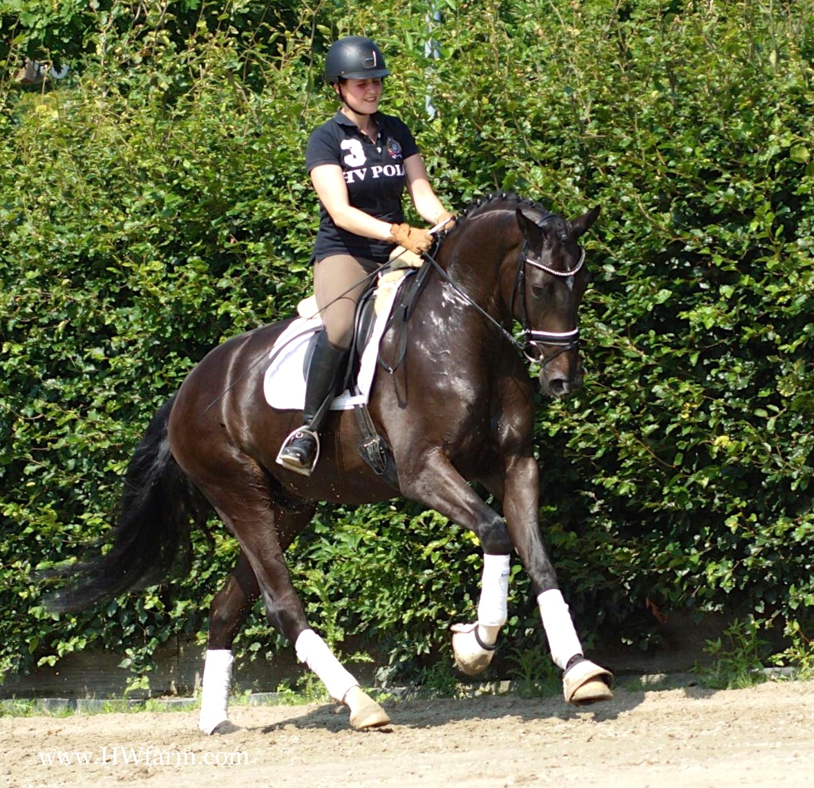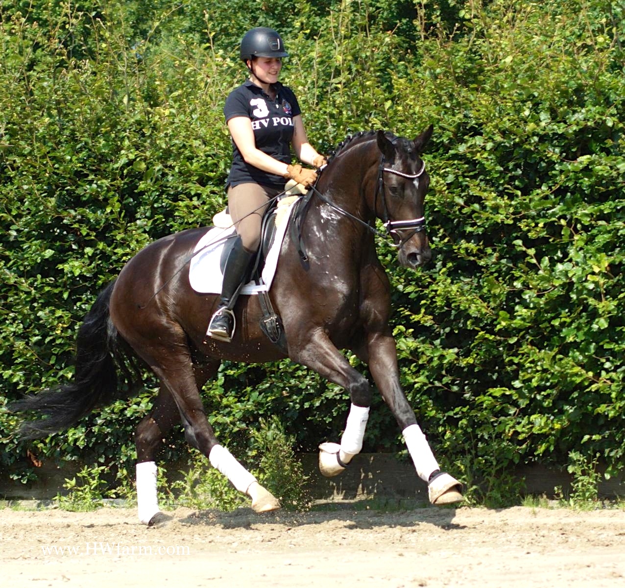 ForYou HW, dark bay Rhineland gelding, by (Feedback/Sandro Hit), born in 2011, standing approximately 169 cm or 16.2 hands. ForYou HW goes back to the famous F-line, he's a total look a like to his sire, in type and movement, a clear winner. Feedback, a beautiful stallion, presented himself, in the best light in 2012. With his rider Mathias Bouten he won novice and elementary dressage tests with scores up to 9.2 points. No wonder that he qualified for the German Young Horse Champion-ships and that he was nominated for the World Championships of the five year old dressage horses in Verden. The stallion is schooled by Isabell Werth and she is convinced that Feedback will become a "really good one". The Vice Champion of the NRW licensing in 2009 already has called attention to is qualities as stallion. In the year 2012 he fathered champion foals and gold medal foals at foal shows in Rhineland and Westphalia. His offspring are sought after at auctions as well. Out of a Grafenstolz mare, he provided the priciest horse (20,000 Euros) in Rhineland-Palatinate-Saar. His father Fidertanz, NRW-Champion in 2004, provided in 2012 many top foals, licensed sons and a German Young Horse Champion. Feedback's mother, premium mare Scarlett was first runner-up in her ring; she is mother of premium stallion Fiderhit, of state premium mare Fleet Street (who is mother of Quotenkönig, second runner-up of the NRW-licensing in 2011) and of more champion foals. Mother father Sandro Hit is father of record mare Poetin and of champion stallion Stedinger. The Holstein C- and L-lines perfect the pedigree in the third and fourth generation. ForYou HW's dam sire is by Sandro Hit. What an amazing pedigree, all around. The Oldenburg Champion stallion and Young Horse Champion, TRIPLE CROWN WINNER - Selten HW (previously Elizabeth Ball's mount, sold for Euro 500.000 to Fiona Bigwood and Anders Dahl - internationally successful, best international small horse tour 2014, bred and raised by www.HWfarm.com) - is by the same sire as ForYou HW's dam sire. ForYou HW's dam sire is Sandro Hit, inheriting his elegance and movement. Better than ever: Sandro Hit has started a new era in the dressage scene and is already writing sporting and breeding history The number one: National Young Horse Champion - Young Dressage World Champion - unique producer performance Sandro Hit progeny are breaking all price-records, are annually winning championships and are Approval Champions Sandro Hit absolved his stallion performance test in Medingen in 1997 and in 1999 he became federal champion six-year old dressage horses as well as world champion juvenile horse in Arnheim. He has meanwhile been trained up to advanced class. Right from the outset, Sandro Hit set standards not only in sport, but also in breeding. His first crops of foals are convincing by their exceptionally aesthetic imprint of type as well as their outstanding motions. His son Sandrit was the 1999 approval winner in Mecklenburg-Vorpommern, while Sommerhit was runner-up in Berlin-Brandenburg and Sandro Ace became vice-champion in Oldenburg. Sunny Boy in turn, was awarded a premium in Oldenburg , whereas Sommeliere likewise was approved in Oldenburger in 1999. In the year 2000, Sandro Hit made the headlines once more: His Brandenburg bred daughter Poetin won the Federal Championship of three year old mares and geldings under Hans-Heinrich Meyer zu Strohen. A number of his offspring attained peak prices at different German auction sites, including his daughter Starlet, who at DM 140,000 was the top lot of the collection of broodmares at the 2000 Vechta spring auction. On top of that, two Sandro Hit progeny were awarded the desired status "approved" at the Oldenburg approval, as well as at the NRW approvals. In 2001 he sired the Federal champion and two vice champions. ForYou HW will steal your heart in no time. He is a horse of superb quality and a super fancy mover, who knows to impress due to his type, movement and work ethic, combined with an excellent self carriage! He is as pretty as a horse can get. Unbelievable beautiful in- and exterior, he has a super nice head with a "stallion look alike" neck (he is a gelding!). He is a very sweet boy and has the talent to do it all. He's sane and easy to ride, really trustworthy for such a young gentleman. ForYou HW, is a cat like, elastic mover with lots of schwung, a free shoulder as well as a very good rhythm and balance, the perfect future FEI horse. He is truly breathtaking! He got the best competition genes from his dam and sire, this one is a really special boy. He is definitely for the "big tour". He has a very active hind leg, just check how far he reaches under his belly and his canter and trot are of outstanding quality. He just floats above the ground. He shows himself willing and forward without being too hot, he has an outstanding character and will climb up the levels with ease. All exercises come naturally to him, as he has the built, movement and athleticism to work in dressage and he sure will excel in piaffe and passage. This extremely talented gentleman has international potential. ForYou HW will just need to look at you with his soft eyes and you are in love with one of the prettiest horses available. The judges will love him due to his expression and "show me" attitude, take him to shows and collect your ribbons. Show him off at clinics and get yourself noticed. He is fun all around. He is in daily training and progressing really nicely. He's very well balanced and behaved. This boy will enable you to fulfill your dreams with all his sensational abilities. The goal of HW Farm is, to find highly talented young horses in Germany for riders in the USA and all over the world. ForYou HW, is a phenomenal dressage gelding. This young star will go far in the dressage ring, he is your ticket to the top! Buy him now and show him yourself in the Young Horse Championships or take him to the BundesChampionships. X-rays on file P