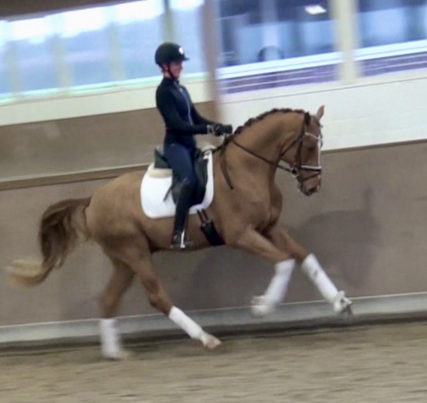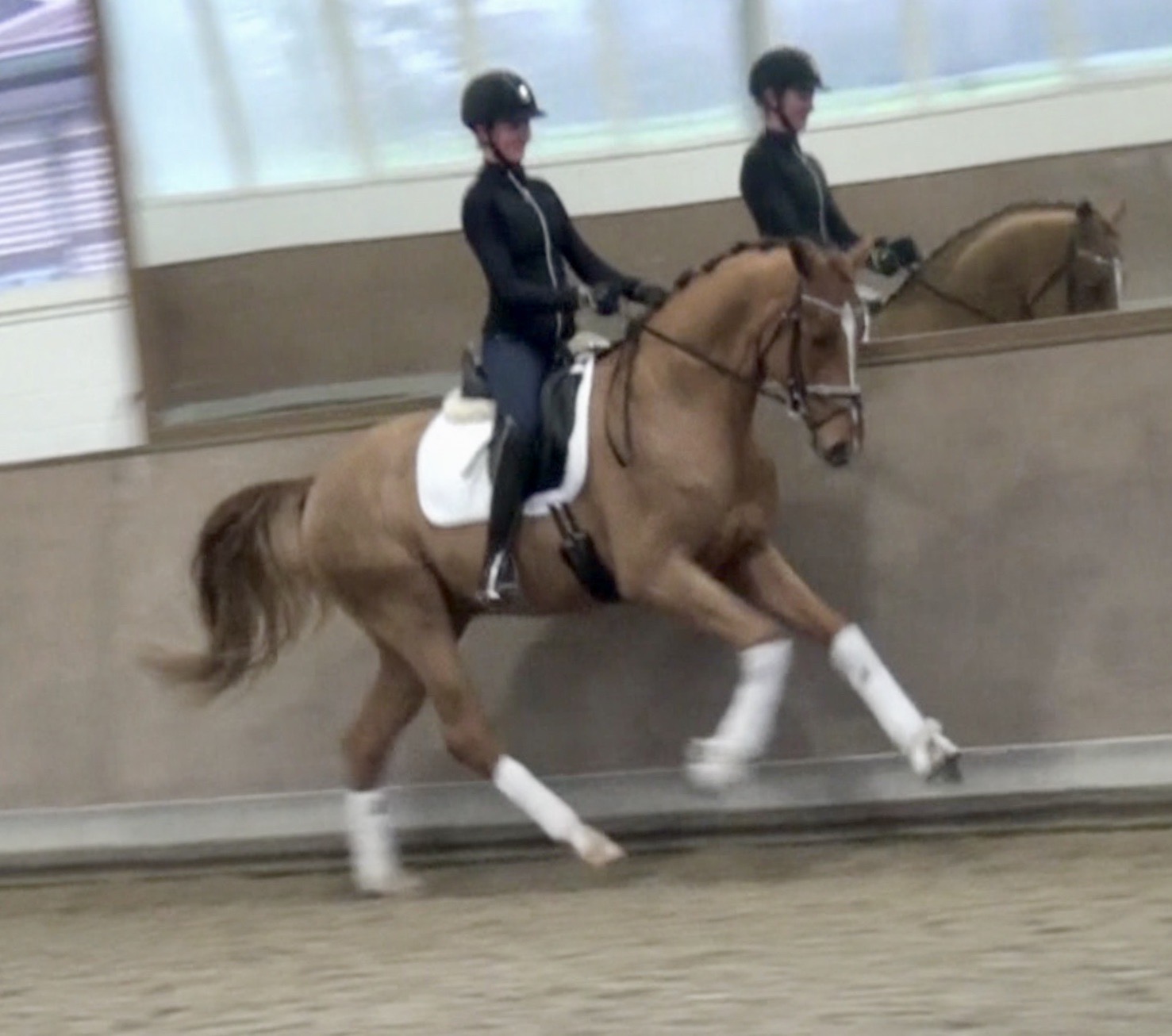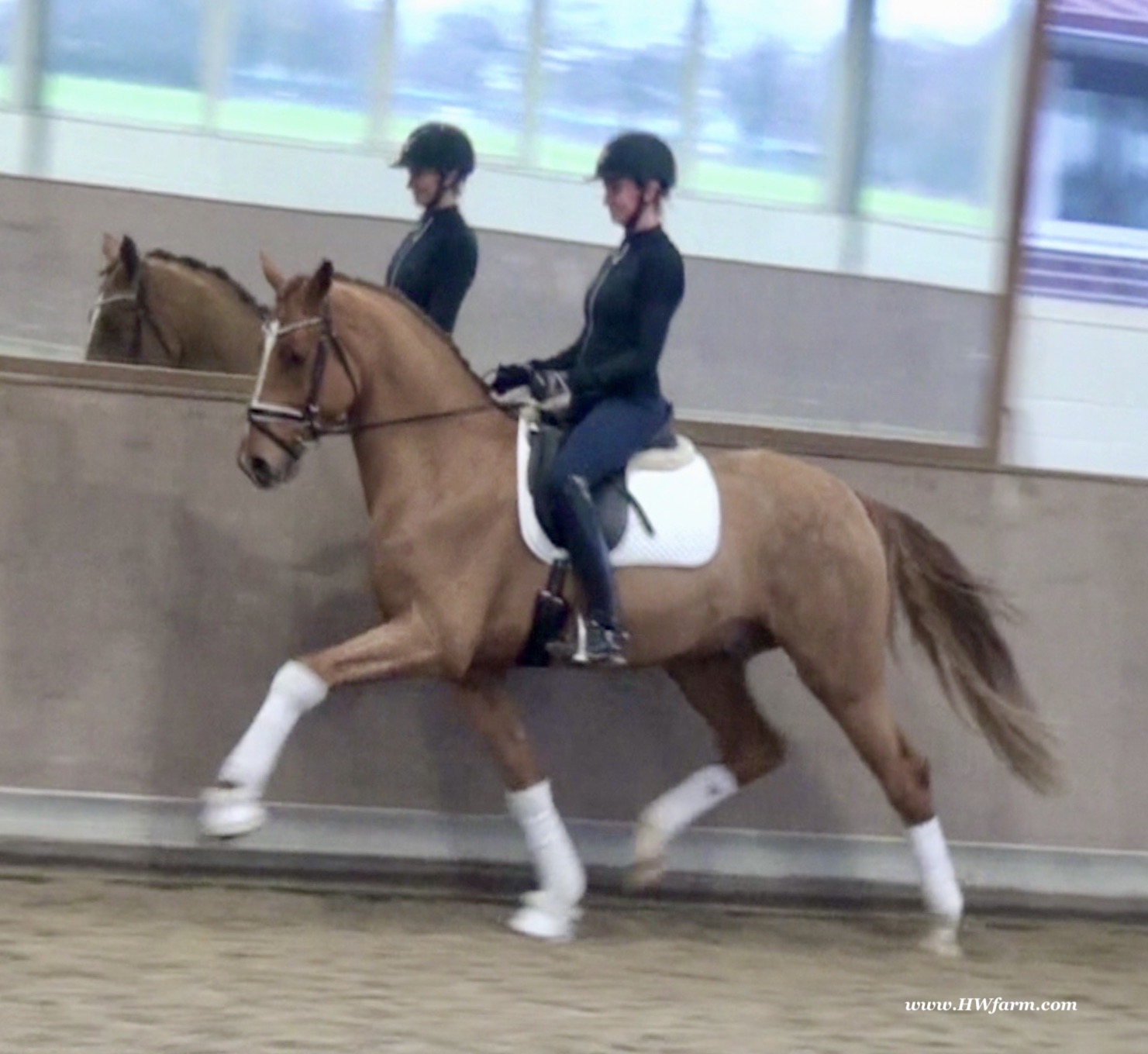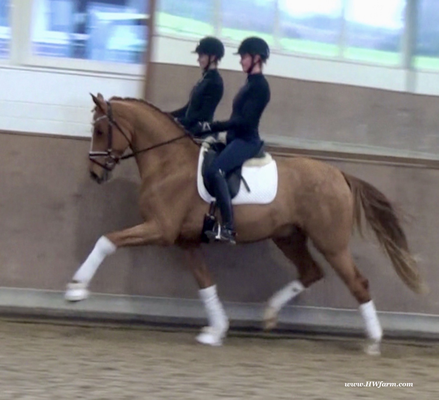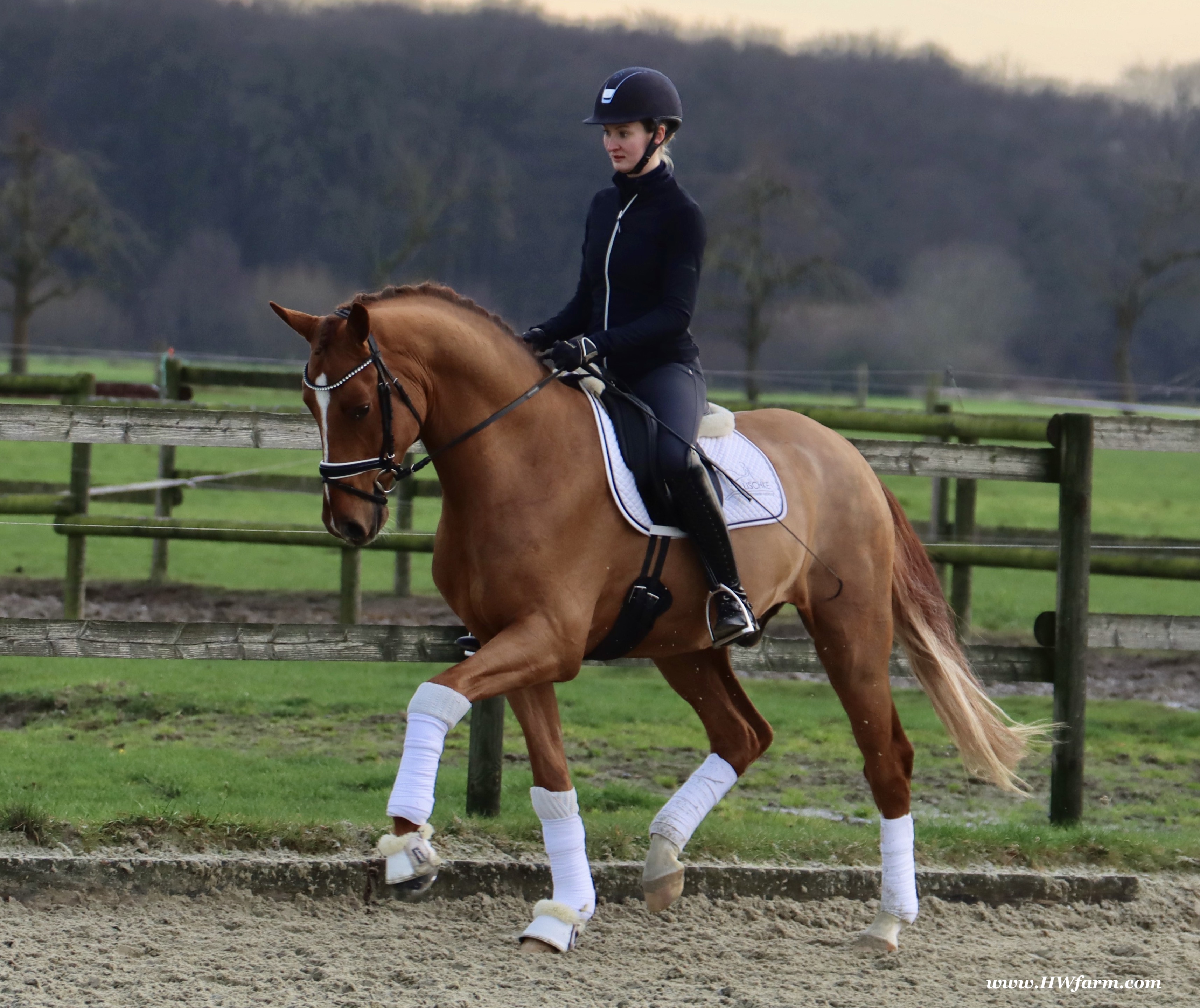 Frankly HW, chestnut Westphalian gelding, Franziskus/Dimension born in 2017, standing approximately 168 cm or 16.2 hands. Frankly HW's sire is the premium stallion Franziskus, he impressed the spectators at the Westphalian licensing in 2010. He has a brilliant type, a perfect frame as well as a harmonious and correct exterior. His basic gaits are perfect: He walks with diligence and beat, he trots with impulsion and forward thrust and he canters uphill. Franziskus was already very good as a foal. He won the qualification to the German foal-championships. In 2011 Franziskus absolved the 30-days-test in Münster-Handorf successfully: He got a score of 9.0 for trot, canter and rideability in the training and 9.5 for his character. The test rider gave him even 9.5 points for rideability. Continuing his life of success, Franziskus soon became Bundeschampion of the 4-year-old riding stallions with top marks when he was presented by both his own and by foreign riders in 2012. The Olympic rider Ingrid Klimke began riding Franziskus at the end of 2013 and was victorious with him in his first dressage class for young horses, at "M-level" (the highest class 6-year-olds can compete in Germany). Franziskus is victorious in dressage tests of KL S ** and has been 15 licensed sons. 2015 and 2016, victorious in dressage horse Kl. S ** Inter I under Ingrid Klimke and was a finalist in the Nuernberg Burgpokals/cup. Franziskus' sire Fidertanz began his career by winning the Westphalian licensing and the 30-days-test in Neustadt/Dosse. He was runner up at the "Bundeschampionat" and was the main premium award winner in 2006. Since then, Fidertanz has placed in many advanced dressage classes. His dam, Antara, has also produced the licensed stallion Dementi, who is successful in advanced dressage competitions as well. His Dam's sire, Alabaster, was "Bundeschampion" of young dressage horses. In the third and fourth generation, there are the international sport horses, and important stallions, Rubinstein I and Grundstein. I. The basis of the dam line is the Irish thoroughbred mare Daffy Toban xx (by Go Tobann xx-Mustang xx, family 2). That line produced the sires Count on Me, Grafenstein and Winston hervor, as well as the international sport horses Grand Giraud (Alexandra Simons-de Ridder) and Calman, who won the Grand Prix of Nörten-Hardenberg with Rolf Moormann. Franziskus' sire, Fidertanz, started his phenomenal career in the year 2004 as NRW-Champion Stallion in Münster-Handorf. In 2005, Fidertanz won his 30-day-test in Neustadt/Dosse with excellent results, and became Vice Bundeschampion with a top score of 9.5 in test-riding. In the year 2006, Fidertanz won the High Premium award for dressage-stallions at the Oldenburg-licensing in Vechta. In the meantime, Fidertanz has been trained up to the advanced level in dressage. Franziskus' dam, Antara, produced with De Niro the licensed stallion Dementi, who is successful at the advanced dressage S Level. The dam's sire is the former Bundeschampion of German Dressage Horses, Alabaster. The third and fourth generation of the pedigree is refined by the internationally successful top-stallions Rubinstein I and Grundstein I. The dam line is based on the Irish thoroughbred-mare Daffy Toban xx (v. Go Tabann xx-Mustang xx-Flamenco xx etc,, thoroughbred-familiy 2). Some of the stallions out of this line (which is followed by the breeding-familiy Albers since the mid 1970's) are e.g. Count on Me (PB Denmark), Grafenstein (PB Oldenburg, State Stud Redefin and Marbach), Winston (PB Hannover, State Stud Celle), as well as the international sport horses Grand Giraud/Alexandra Simons-de Ridder and Calman, who won the "Goldene Peitsche" in Nörten-Hardenberg under the saddle of Rolf Moormann. Ingrid Klimke and Franziskus: Frankly HW's dam is by Dimension, a full brother to De Niro! De Niro's sire, Donnerhall, holds the highest dressage breeding value index (271) of all stallions. He placed second among 70 stallions at his performance test and went on to be-come DLG Champion in 1986. Donnerhall won more than 65 FEI Level and Grand Prix competitions and competed successfully until he was retired at 17-years of age. De Niro's dam was a successful dressage competitor producing an Approved stallion in Westfalia. His dam's sire, Akzent II, is regarded as one of the best sires of rideability in modern sport horse breeding producing many Approved stallions and expensive auction horses.