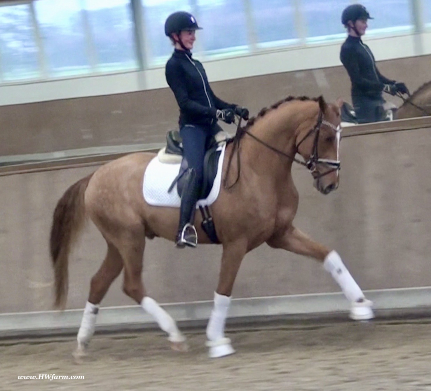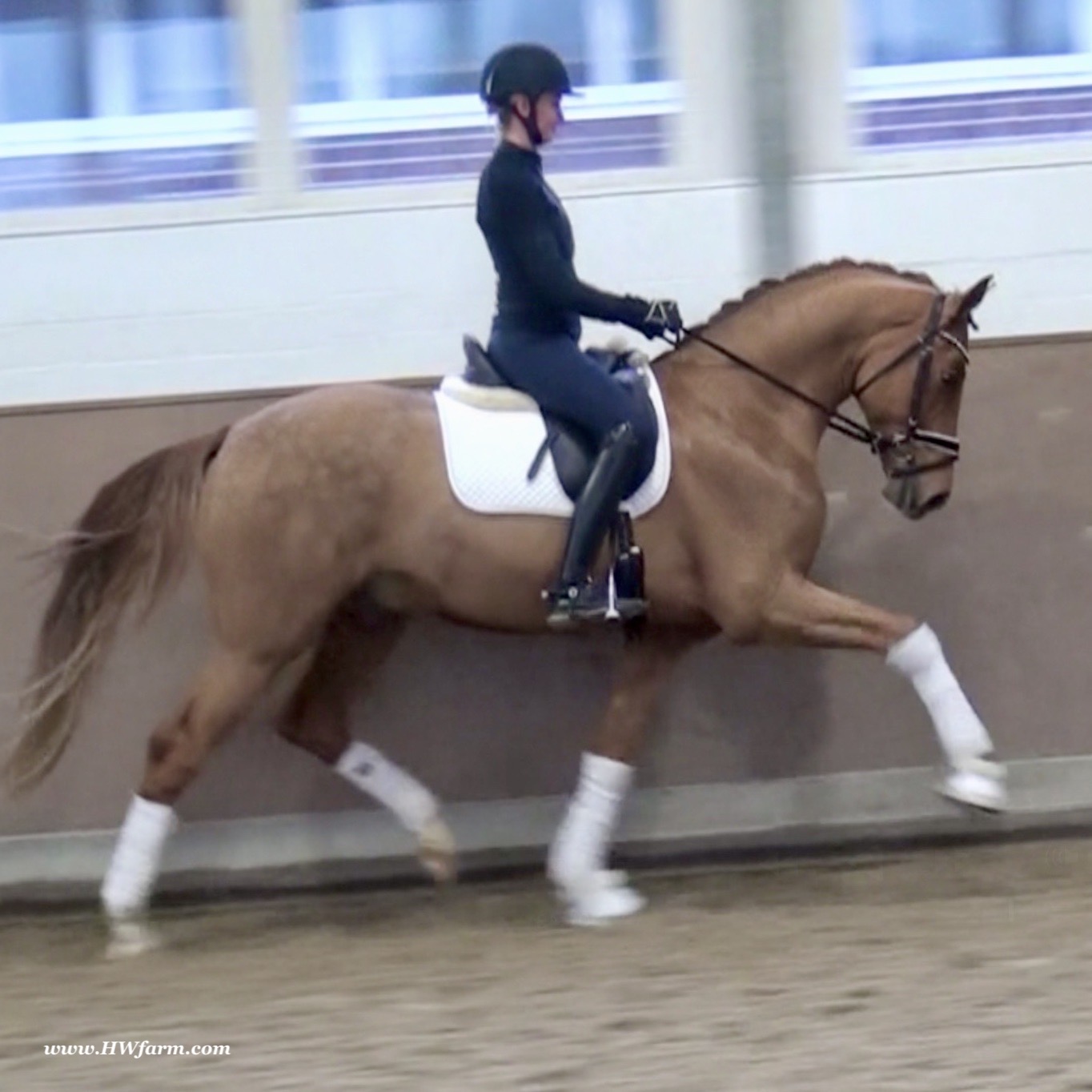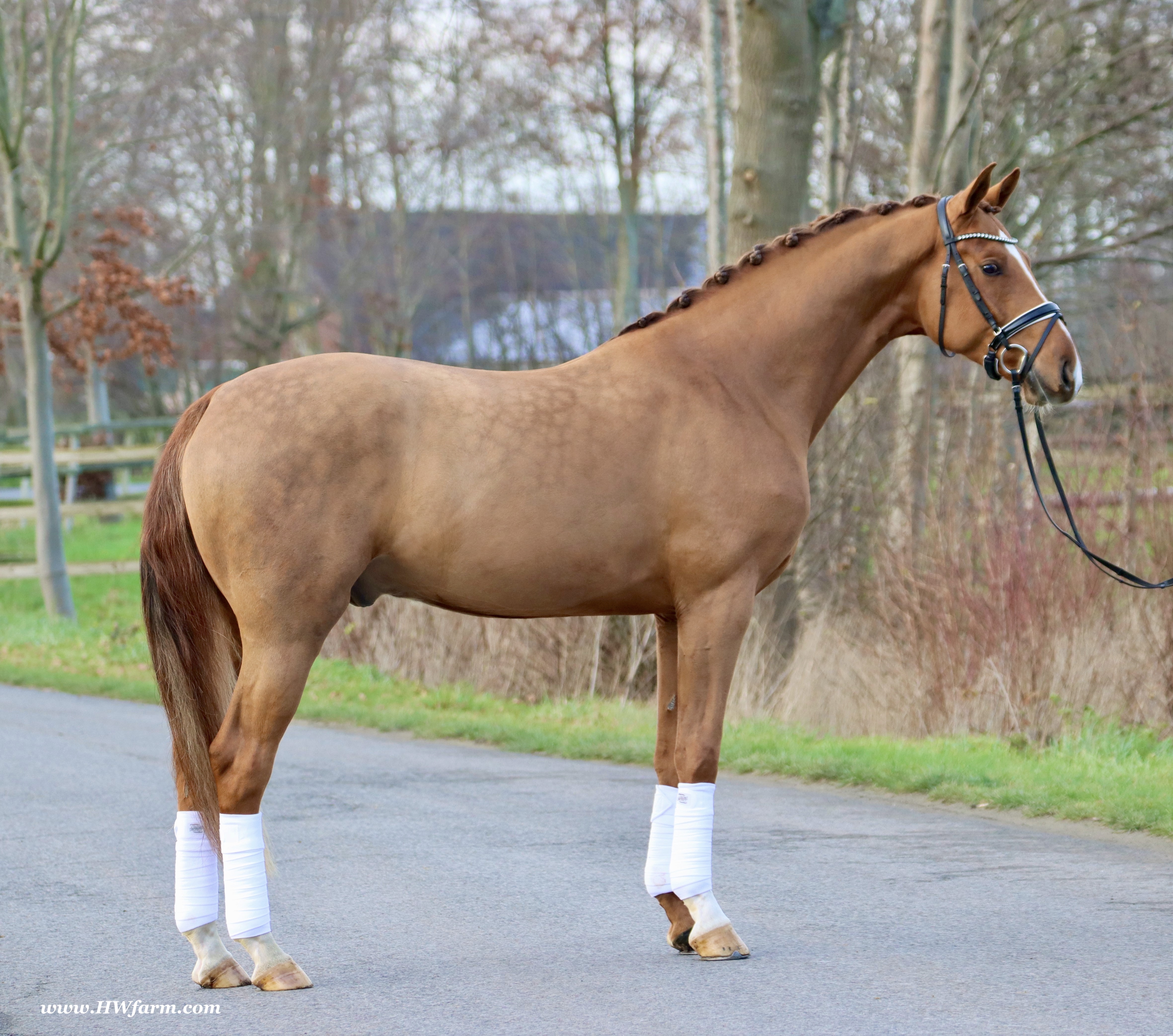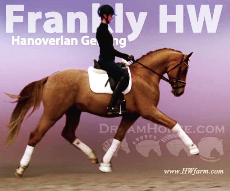 Dimension himself (by Donnerhall x Akzent II), passed away at age 22. Bred by Brigitte Pahl, Dimension was licensed in Munster in 1993. He competed up to M level and sired two licensed sons, Diderot and Don Camillo. Dimension was successful up to 3rd level dressage and 2nd level jumping, he was licensed in Münster-Handort and stood with the Oldenburg stallion station Höffmann. Dimension produced highly sought after offspring, a 1996 colt, named Der-rik, sold at Deutsche Mark 38.000 and the cold Doudly sold at Deutsche Mark 44.000, really super high prices, especially concerning the earlier times in the horse world. Two of his sons are licensed, Diderot and Don Camillo. Dimension had around 300 actively competing offspring, also the 4th level dressage horses Don Herny/Johan Vanthienen and Donar Ass/Carline Mümken. Dimension (full brother to De Niro): Frankly HW, one of the prettiest boys you could find, is a horse for the big ring. He impresses with unbelievable gaits and looks. A horse with the quality for international competitions. His dynamic and schwung are sensational. He's just amazing, a horse which will leave you speechless. Frankly will blow everybody away with his freedom in the shoulders and a very strong motor and a super active hind leg. He is very well behaved, easy to ride and easily managed by anybody and will go all the way to the top. Nicely balanced and can carry himself proudly. Tons of airtime and hang time, floats above the ground and is a teddy bear that loves to cuddle and have his own person to take care of him. He has the energy to do it all, but is relaxed enough to concentrate and work for an amateur or young rider and has 100% the quality for a professional too. With him, there is no limit to any level, he will compete in the big ring and be a phenomenal FEI horse. He is very elastic and a fast learner, amazing cadence and is a fun horse for every day. This gentleman has the right attitude and ability to do it all, he will be seen in the upper levels, collecting the blue ribbons, one after another. Frankly HW is super pretty, stallion looks (he's a gelding), chiseled small face, huge neck and elegant, modern type, he will just look at you with his soft eyes and cast his love spell. The judges will recognize him due to his expression and "show me" attitude, take him to shows and collect your ribbons. Show him off at clinics and get yourself noticed. He is fun all around. In daily training and progressing really nicely, raised and correctly handled all his life, in knowledgeable hands and daily attention to all details. He grew up in a small stallion herd and is used to paddock time and was socialized correctly. He is easy to handle in hand and under saddle, just an all around super boy, looking for his new mommy. The goal of HW Farm is, to raise and train highly talented young horses in Germany for riders in the USA and all over the world. Frankly HW, is a phenomenal dressage gelding, super athletic and fun! X-rays on file! check out his video clip!!! Please contact Irene: Irene@HWfarm.com 239-772-7722 (ask for Irene, managing member of HorseSales LLC) We take pride in answering every e-mail right away (at least at the same day) and to return each call. If you don't get a reply - please try again, our spam filter might have gotten in the way?!