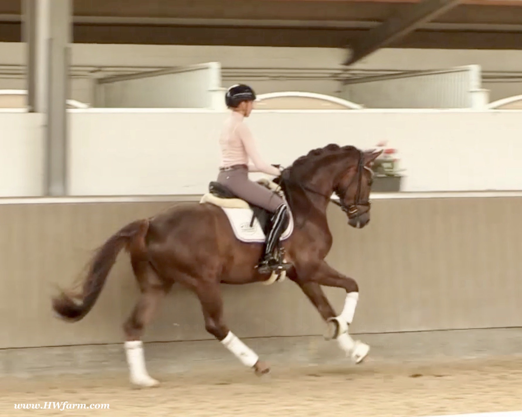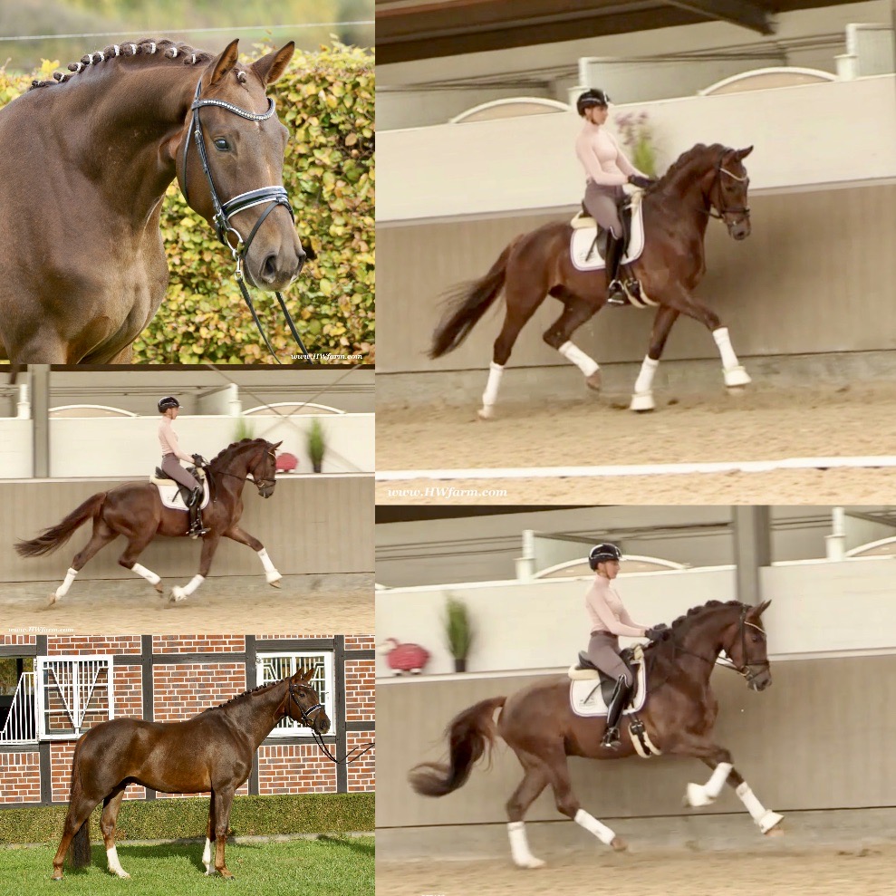 in Germany • 2021 World Cup premiere in Herning DK Franziskus' sire Fidertanz began his career by winning the Westphalian licensing and the 30-days-test in Neustadt/Dosse. He was runner up at the "Bundeschampionat" and was the main premium award winner in 2006. Since then, Fidertanz has placed in many advanced dressage classes. His Dam's sire, Alabaster, was "Bundeschampion" of young dressage horses. In the third and fourth generation, there are the international sport horses, and important stallions, Rubinstein I and Grundstein I. The basis of the dam line is the Irish thoroughbred mare Daffy Toban xx (by Go Tobann xx-Mustang xx, family 2). That line produced the sires Count on Me, Grafenstein and Winston hervor, as well as the international sport horses Grand Giraud (Alexandra Simons-de Ridder) and Calman, who won the Grand Prix of Nörten-Hardenberg with Rolf Moormann. Franziskus' sire, Fidertanz, started his phenomenal career in the year 2004 as NRW-Champion Stallion in Münster-Handorf. In 2005, Fidertanz won his 30-day-test in Neustadt/Dosse with excellent results, and became Vice Bundeschampion with a top score of 9.5 in test-riding. In the year 2006, Fidertanz won the High Premium award for dressage-stallions at the Oldenburg-licensing in Vechta. In the meantime, Fidertanz has been trained up to the advanced level in dressage. Franziskus' dam, Antara, produced with De Niro the licensed stallion Dementi, who is successful at the advanced dressage S Level. The dam's sire is the former Bundeschampion of German Dressage Horses, Alabaster. The third and fourth generation of the pedigree is refined by the internationally successful top-stallions Rubinstein I and Grundstein I. The dam line is based on the Irish thoroughbred-mare Daffy Toban xx (v. Go Tabann xx-Mustang xx-Flamenco xx etc,, thoroughbred-familiy 2). Some of the stallions out of this line (which is followed by the breeding-familiy Albers since the mid 1970's) are e.g. Count on Me (PB Denmark), Grafenstein (PB Oldenburg, State Stud Redefin and Marbach), Winston (PB Hannover, State Stud Celle), as well as the international sport horses Grand Giraud/Alexandra Simons-de Ridder and Calman, who won the "Goldene Peitsche" in Nörten-Hardenberg under the saddle of Rolf Moormann. Ingrid Klimke and Franziskus: FrontMan HW's dam is the elegant State Sire SIR HEINRICH, a TOP stallion and full-brother to the four Bundeschampions Cindy OLD, Candy OLD, Caty OLD and Casey OLD. His sire Sir Donnerhall I became Bundeschampion of six-year-old dressage horses in 2006 and finished best at the 70-day test in Adelheidsdorf in 2005 (dressage index 163.87). More than 100 of his sons have been licensed, soon 400 of his daughters have been awarded premium mares. As the first mare in history, St.Pr./El.St. C'est bon became dam of five Bundeschampions: Sir Heinrich OLD, Cindy OLD, Candy OLD, Caty OLD and Casey OLD (all by Sir Donnerhall I). Sir Heinrich OLD and Si bon were also licensed, and Oldenburg champion mares are Candy OLD and Casey OLD. Oldenburger line of El.St. Cinderella, dam line of St.Pr./El.St. Cabarett. Sir Heinrich was licensed in 2010 at the NRW main licensing in Münster and completed his 70-day test in Neustadt/Dosse in 2011 with an overall score of 8.5, achieving the second-best result of the entire year with his dressage score of 8.99. As a highly sought-after NRW state stud stallion, he sired 16 licensed sons, more than 60 premium mares, auction price peaks and offspring that are successful in sport. After he won the Oldenburger Landeschampionat in 2012, he became vice-champion in national championships of four years old stallions. At national championships in 2013 he won convincingly his qualification class of five years-old dressage horses, in the finals he saved the silver medal with a scoring of 8.6 in his age group. Sir Heinrich OLD represented the German colors as a five and six years-old in world championships of young dressage horses in Verden. He can show victories in elementary and medium level dressage tests for young horses as well as in advanced level dressage tests (S*). His sport horses career's highlight was certainly the victory in national championships of six years-old dressage horses in 2014 with a total score of 8.7 in the finals. On the occasion of the Oldenburg Stallion Days 2016 he was awarded VTV-Dressage Stallion of the year. FrontMan HW, such a pretty boy who impresses with super gaits and looks. A horse with the quality for all levels. His dynamic and suspension are sensational. He's just amazing, a horse which will leave you speechless. FrontMan HW has amazing freedom in the shoulders and a very strong motor and a super active hind leg. Nicely balanced and can carry himself proudly. Tons of airtime and hang time, floats above the ground and is a teddy bear that loves to cuddle and have his own person to take care of him. With him, there is no limit to any level, he will compete in the big ring and be a phenomenal FEI horse. He is very elastic and a fast learner, amazing cadence. This gentleman has the right attitude and ability to do it all, he will be seen in the upper levels, collecting the blue ribbons, one after another. FrontMan HW is super pretty, stallion looks (he's a gelding), chiseled small face, huge neck and elegant, modern type, he will just look at you with his soft eyes and cast his love spell. The judges will recognize him due to his expression and "show me" attitude, take him to shows and collect your ribbons. Show him off at clinics and get yourself noticed. He is fun all around. He is progressing really nicely, raised and correctly handled all his life, in knowledgable hands and daily attention to all details. He grew up in a small stallion herd and is used to paddock time and was socialized correctly. He is an all around super boy, looking for his new mommy. FrontMan HW, is a phenomenal dressage gelding, super athletic and fun! The goal of HW Farm is, to breed/raise/find highly ta