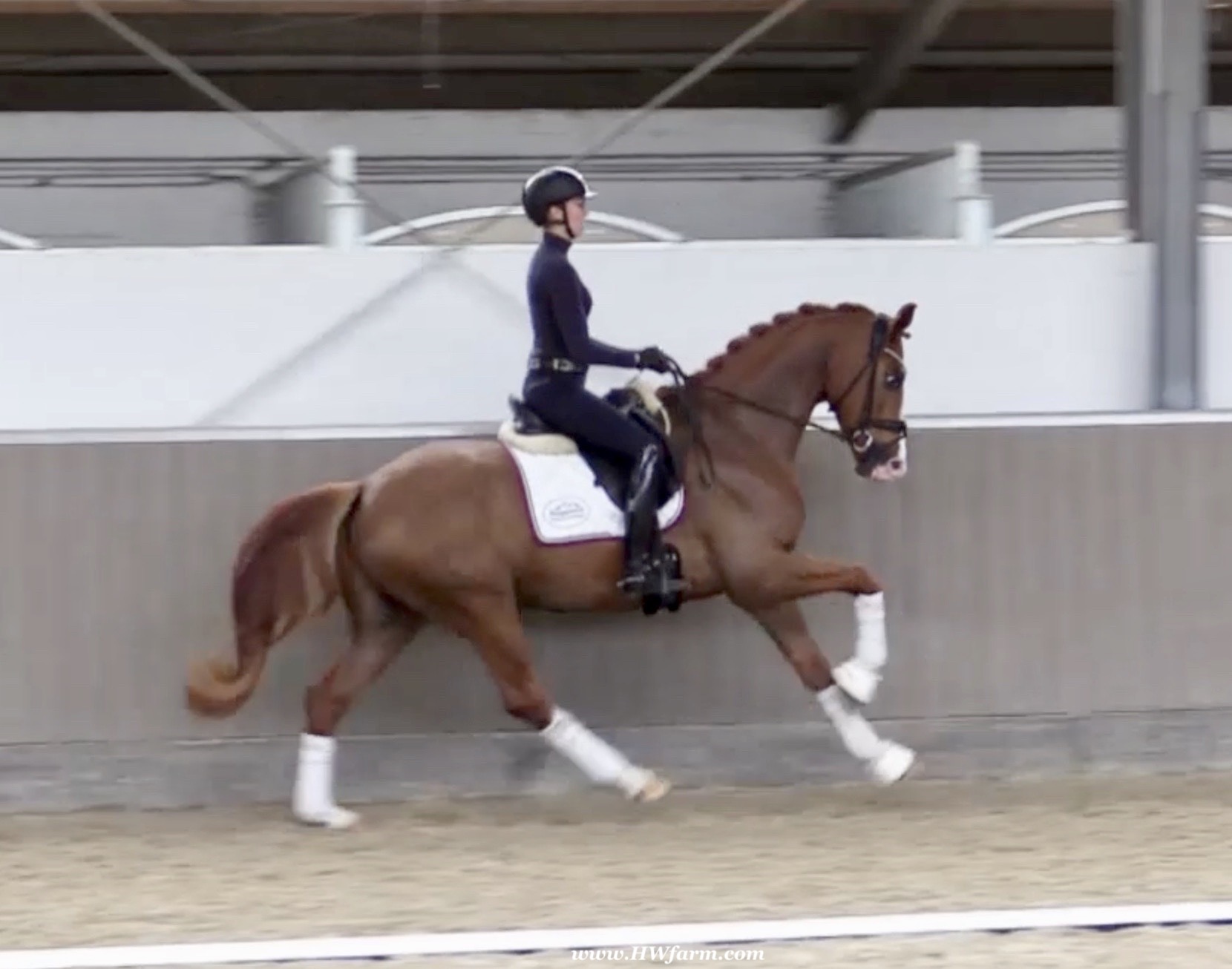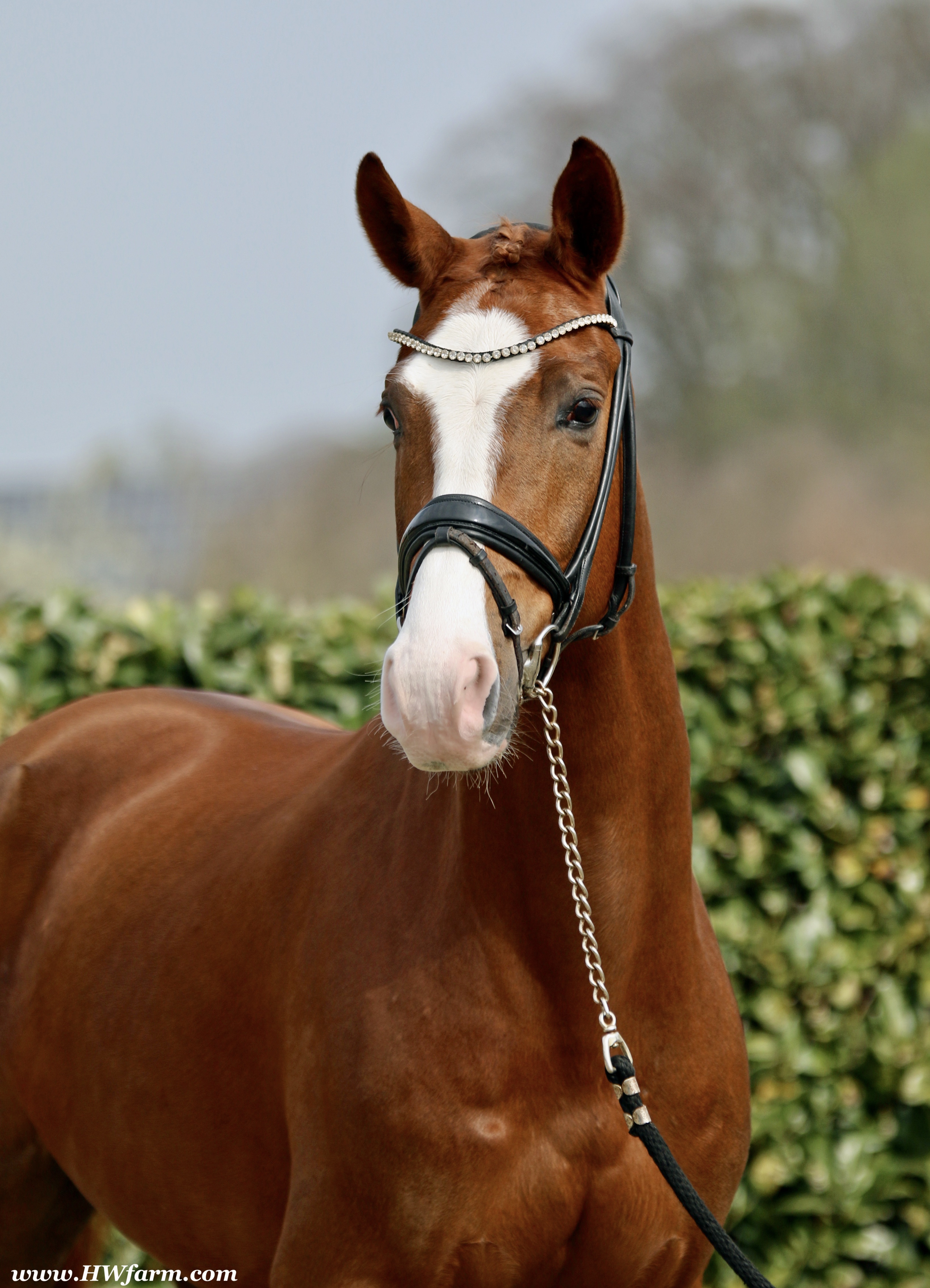 Fürst Quotenkönig HW's dam is by Quotenkönig, Vice Bundeschampion 2012, Westphalian Champion 2012, 2013 and 2014. BundesChampionat 2015, 4th place, WorldChampionship 2015, 8th place in the final round, victories in 3rd and 4th levels, WorldChampionship 2016, 4th place, multiple S & M Dressage victories,, liver chestnut Westphalian Stallion, by Quaterback - Fürst Piccolo - Sandro Hit - Contender - Landgraf, born 2009, standing approximately 16.2 hands. Quotenkönig is by the Bundeschampion Quaterback. A breathtaking stallion with phenomenal offspring. Here are just some of the highlights for Quaterback: Scores for the