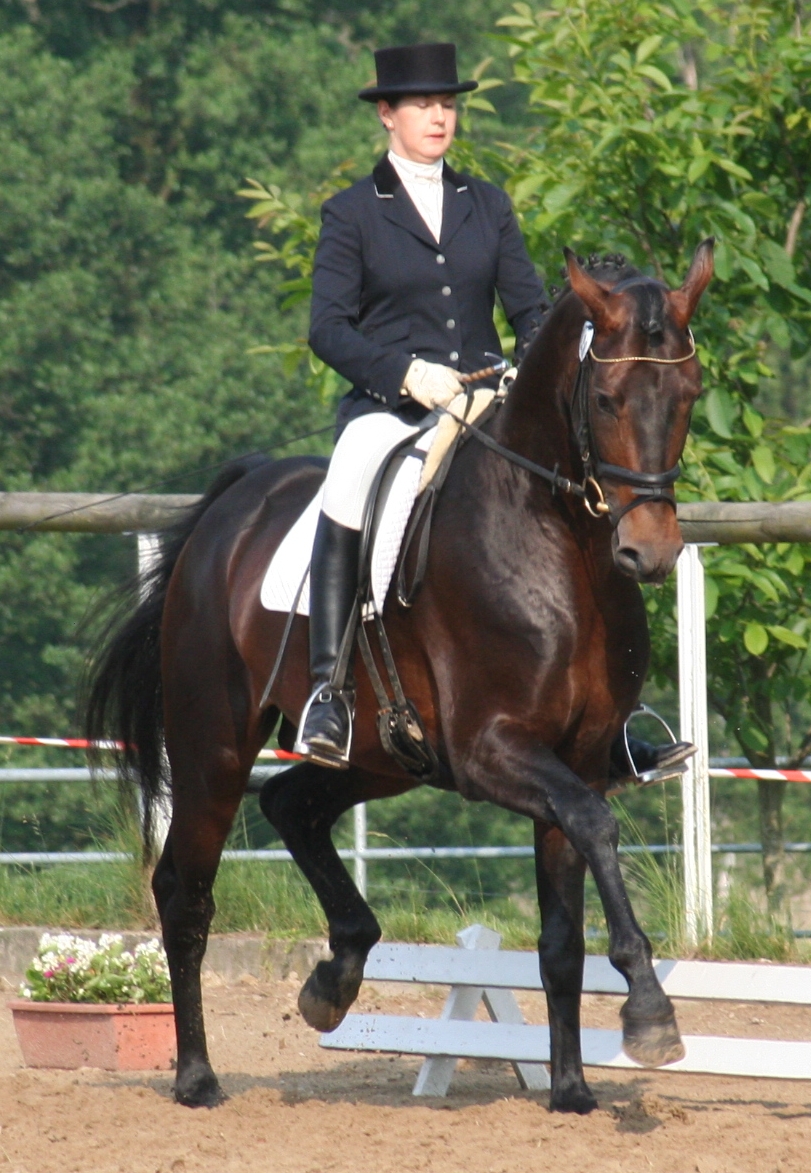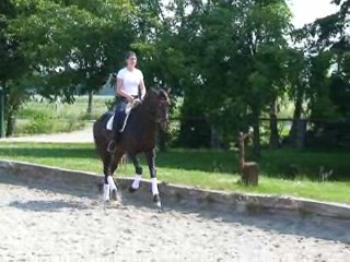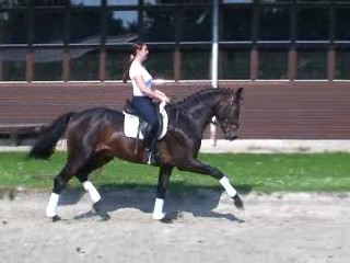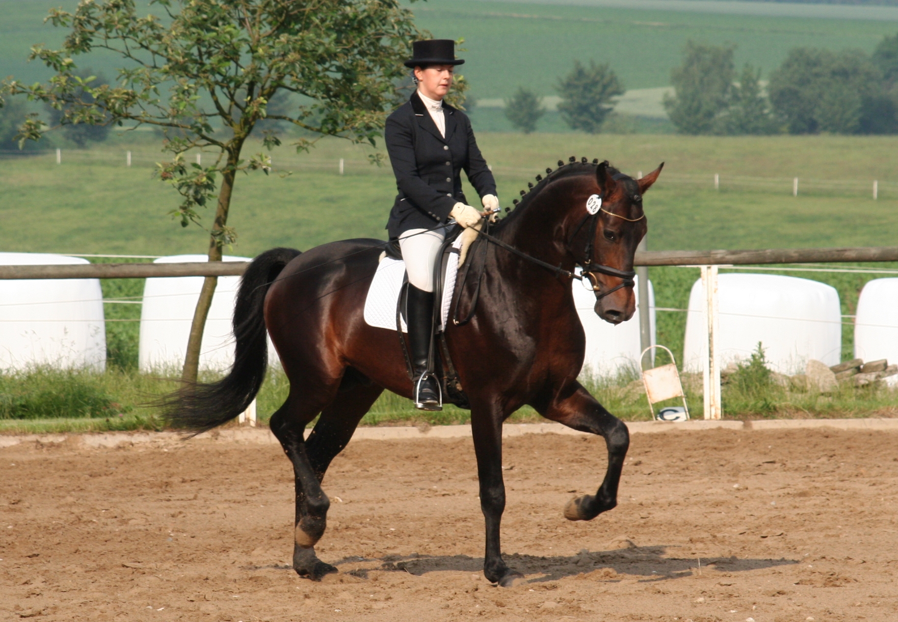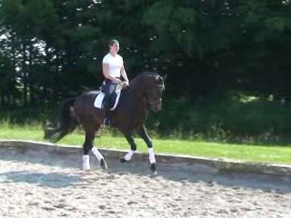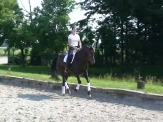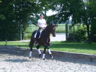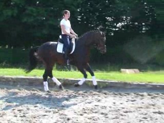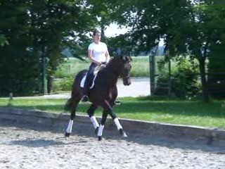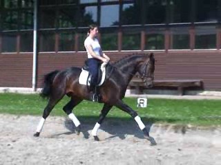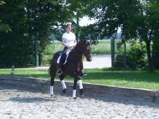 Fürstentanz, bay Hanoverian stallion by Fürstenreich/Warkant, born in 2004, standing approximately 16.1 hands – still growing! Wow, to see a three year old moving like this one is very rare, he is the famous Fürstenreich (Florestan) / Warkant and he leaves no wishes open. He just qualified for the Campionat in Nörten Hardenberg and he is of proven quality. Already out there and competing like a much older horse, well behaved and fun to ride. His airtime is spectacular are his extensions. This is one for the big ring and international competitions, your FEI horse par excellence, the gaits, looks and brain to match for all the way up. He shows off even more at shows, the video was done in brutal heat for German circumstances and even then he is more impressive than anything I’ve seen in a long time. He holds his free shoulder under saddle, a good motor and three very good and clean gaits. Fürstentanz will impress the judges and