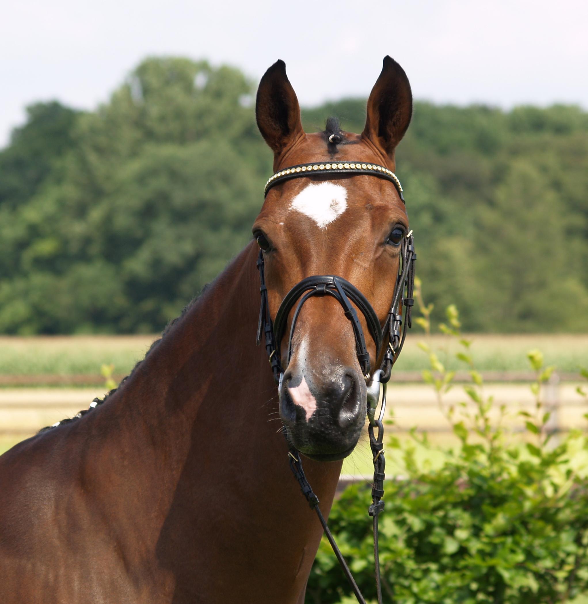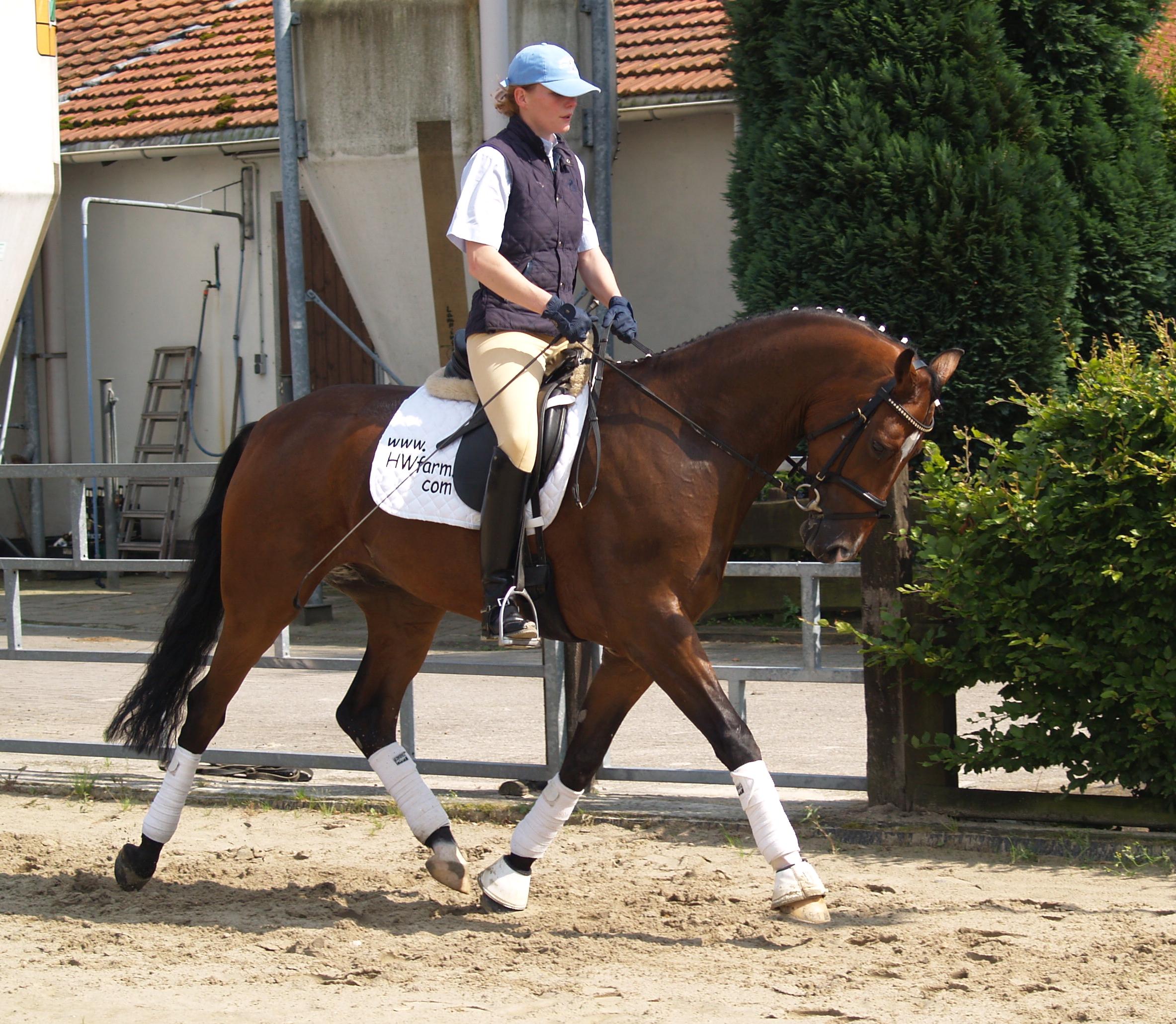 Lightning Jack HW, bay Westphalian gelding by Lanciano/Pilot’s Ass (Pilot) born in 2003, standing approximately 16 – 16.1 hands. Lightning Jack HW will get you recognized in the young horse FEI classes!!! Want the cutest face on earth? Here you go: This amazing FEI prospect does have the cuteness of a pony. He was already at his first riding horse class and was placed second! His scores included 8,5 for trot and canter! As you can see, the judges agree that he has way above average gaits. He