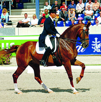 PrimeTime HW, bay Westphalian gelding by (Peking / Florestan I), born in 2008, standing approximately 170 cm or 16.2 and 3/4 hands. PrimeTime HW has proven foundation bloodlines and is by the famous stallion Peking. PEKING was awarded Premium stallion at the NRW Approval in Münster-Handorf in 2003 and emerged as the winner from his stallion performance test, achieving equally high scores in all disciplines. In 2006 he became the Westphalian Vice Champion of five-year old dressage horses and qualified for the Bundeschampionat. Now he is placed in dressage competitions on level M. The foals from his first crop were awarded Premiums and were sold at above-average prices at the North Rhine-Westphalien elite foal auction. In 2008 PEKING has presented the Westfalian Champion Mare and the Vize-Champion of "Zuchtverband für deutsche Pferde". His sire Polytraum from POLYDOR was Premium stallion at the 6th North Rhine-Westphalian approval in 1996. After that he was successfull in sport. The damsire, PARADOX I, became an epoch-making sire in the Westphalian breeding region. PrimeTime HW's dam sire is no lesser than the spectacular F-line foundation Florestan I. Here come the rideability genes into play, which everybody is looking for! The Westfalian stallion Florestan I has passed away at age 26 at his home Landgestut Warendorf in Germany on Tuesday 2 January 2011. The stallion stopped breeding three years ago and was enjoying his retirement at the stud farm. Bred by Grit and Eberhard Schulte-Böcker in Geilenkirchen, Germany, Florestan was by Fidelio I out of Raute (by Rheingold x Garamond). The bay was the champion of the 1988 Rhinelander stallion licensing and was immediately bought by the Landgestut Warendorf. He won his Stallion Performance Test in Warendorf with a total index of 129,02 points and was winner of the dressage and show jumping division. Florestan became a true foundation stallion stamping his offspring and creating a breeding line of his own. He was the runner up on the 2011 WBFSH Dressage Sire Ranking thanks to his successfull offspring competing at Grand Prix level dressage. More than 2,000 offspring are registered as competition horse in Germany. Ninety sons are licensed for breeding (Fidermark, Florencio, French Kiss, First Dance, Festrausch, Fleurop, Florentinus V, Floresco, Florestano, Florianus, Florett As, Furstenreich, Furst Heinrich, etc. )and 222 daughters were proclaimed State Premium mares. In his last breeding year at the station in Bad Sassendorf, Florestan still covered 130 mares naturally but his fertility had decreased immensely at the end of his breeding career. Florestan was one of the first stallions to cover more than 500 mares in one season. The bay stallion achieved this record in 1996. A Grand Prix star with Steffen Peters - Floriano by Florestan PrimeTime HW is a fascinating mover with lots of schwung, a very good rhythm and balance, the perfect FEI horse for your future. He is really breathtaking. He has a super active hind leg and his canter, walk and trot are of outstanding quality. He just floats. He has a clear rhythm in all gaits with a far reaching hind leg and a good overstride. This is one for the "big tour" and international competitions. His under saddle work is always fun and he is doing really well with an amazing ride ability, a real diamond in the rough and a rare find. He shows himself willing and forward, has an outstanding character and he is a very sweet boy. He's already solid at 3rd level, including clean flying changes, successfully shown at 1st and 2nd level with gait scores of 8 and loves to learn new things every day. He's able to soak up the information and does his best all the time. PrimeTime HW will just need to look at you with his soft eyes and you are in love with one of the prettiest and most elegant horses available. He has excellent markings and a very noble, mesmerising head and neck! The judges will love him due to his expression and "show me" attitude, take him to shows and collect your ribbons. Enjoy him at clinics and get yourself noticed. He is fun all around and easy to manage in the stall and always strives for human attention. He is in daily training and progressing really nicely. This is a spectacular horse for everybody alike and he loves to learn new things and to please his handler and rider. He is the modern type with an outstanding confirmation and comes in a pretty color and definitely the looks of a stallion (even as he is a gelding!). His exterior as well as his interior could not be any better. He knows how to be cross tied, he loves to get a shower, goes in the hot walker and enjoys his time in the solarium. PrimeTime HW is a true gentleman. He is sweet, cuddly, thrives for attention and has the quality stars are made of as well as a super pedigree, what more could you ask for? He is a dream partner! He will enable you to fulfill your goals with all his abilities and athleticism. The main interest of HW Farm is, to find highly talented young horses in Germany for riders in the USA and all over the world. This is one phenomenal horse to remember, one that "has it all", buy him now and take him out to shows and clinics, he is ready for you. This one is a lover! X-rays on file! Please contact Irene: Irene@HWfarm.com 239-772-7722 (ask for Irene, managing member of Horse Sales LLC) We take pride in answering every e-mail right away (at least at the same day) and to return each call. If you don't get a reply - please try again, our spam filter might have gotten in the way?!