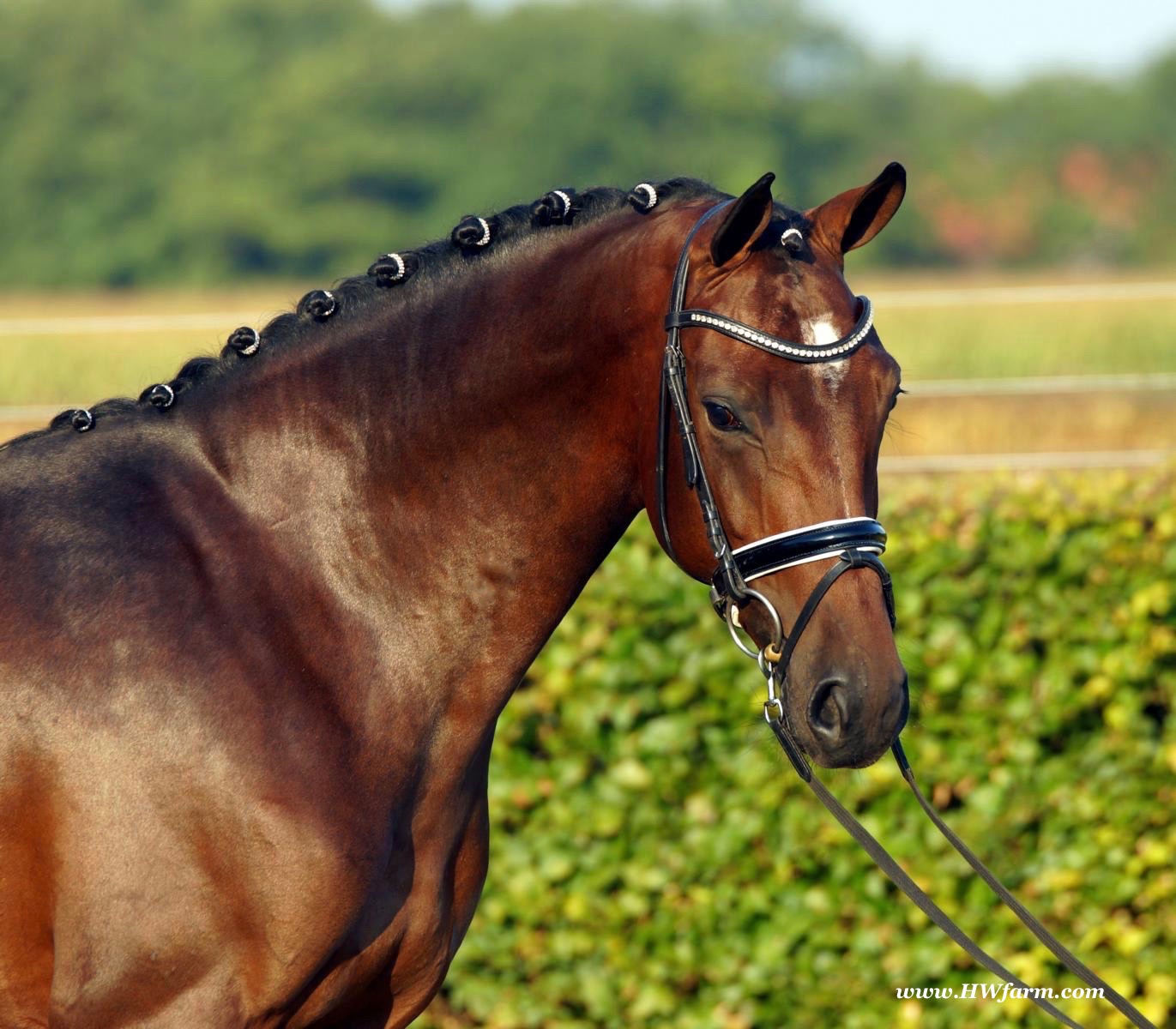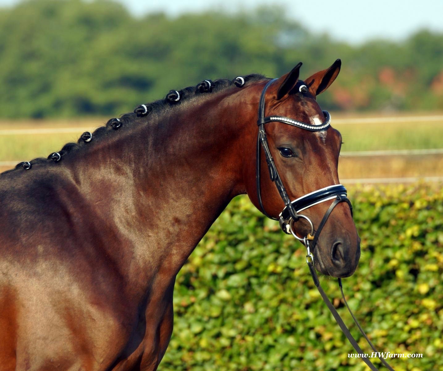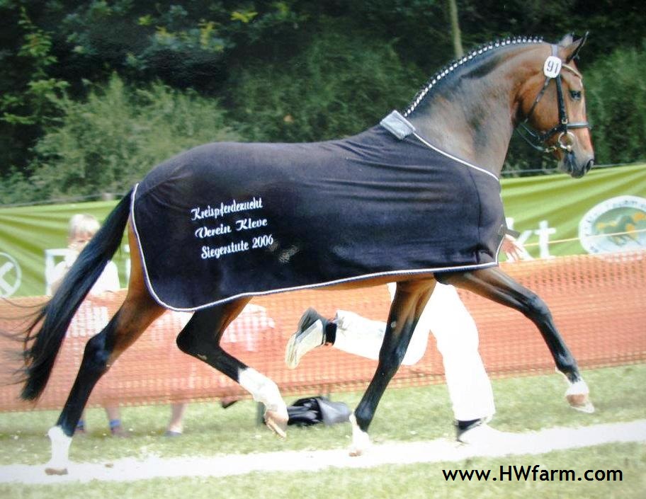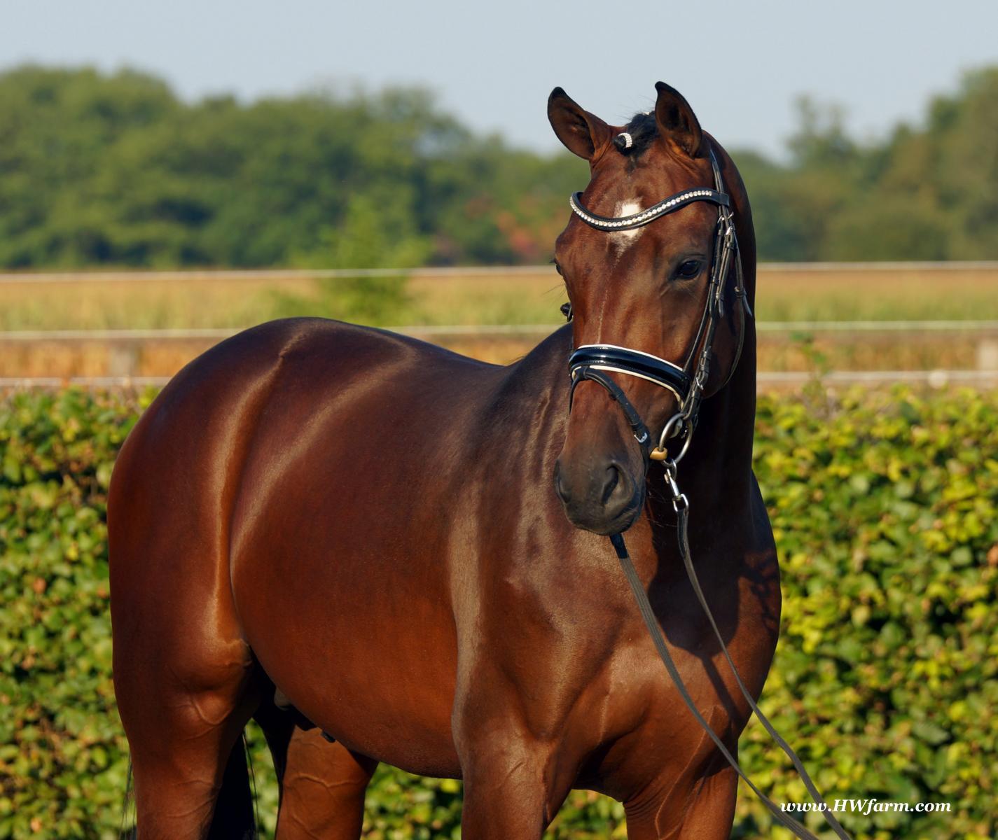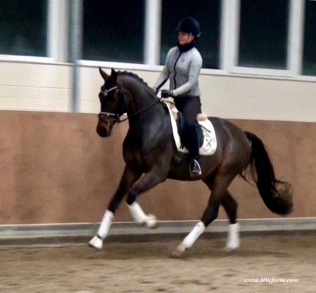3 x Westphalian Champion & ViceBundesChampion son Quincy HW, dark bay Rhineland gelding by the powerful and dynamic Quotenkönig/Sandro Hit, born in 2014, standing approximately 169 cm or 16.2 hands. Quotenkönig, Vice Bundeschampion 2012, Westphalian Champion 2012, 2013 and 2014. BundesChampionat 2015, 4th place, WorldChampionship 2015, 8th place in the final round, victories in 3rd and 4th levels, WorldChampionship 2016, 4th place, multiple S & M Dressage victories and counting! Quotenkönig is by the Bundeschampion Quaterback. A breathtaking stallion with phenomenal offspring. Here are just some of the highlights for Quaterback: Scores for the Bundeschampionat: Trot; 9.5 Canter: 10 walk 7.5 Conformation: 9.5 Overall Impression: 9.5 Licensed for Berlin-Brandenburg, Oldenburg , Hanoverian This exceptional moving young stallion has already started his winning ways. Paired with the talented young rider, Christian Flamm of Hessen, Quaterback galloped away from the competition at the Bundeschampionate in 2006. He started his stallion career by being named Champion of his licensing in Neustadt/Dosse in 2005. In 2006, after the Bundeschampionate, he went on to win his 30 day test at Neustadt/Dosse with outstanding scores: Int. 9.0 Trot 9.25 Canter 9.75 Walk 7.63 Riding qualities 9.75 Jumping 7.75 Quotenkönig's dam is "St.Pr.St. Fleet-Street", 1. Reserve-Champion (Elite) of the mare performance testing in the year 2006 and she participated at the Bundeschampionat as well. She scored an amazing 8.99 at her performance testing. SPS Fleet-Street under saddle: SPS Fleet-Street in hand: She is by the famous Fürst Piccolo, a 100 Day Performance Test Winner! Fürst Piccolo's sire Fidermark was the vice champion of the NRW approvals in 1994 and won the Warendorf state stallion performance test with a big margin in 1995. Further successes followed in 1996. He dominated the "Optimum of Westphalian Riding Horses" sovereignty in Munster . He also became the Buneschampion in his home town of Warendorf . He then went on to win the LVM stallion championship in Munster Handorf. He has had many wins in the Prix St George and Intermediaire I under Marlies Van Baalen and he is trained by Johann Hinnemann. In 2003 he made his debut successfully at Grand Prix. His first foal crops produced sensational foals. They dominated the Westphalian Foal shows and the NRW elite foal auctions. In 1998 his first approved son Fein Sinn won the 100 day test, the first of several including the impressive moving Fürst Piccolo. He has over 15 licensed sons and many state premium mares to his credit already. He is a sire who will dominate German breeding for many years to come. He is ranked highly on the FN breeding values list. The dam sire Mephistopheles, a son of the Trakehner Mackensen derives from a Romadour II mare, establishing a blood connection to the paternal side via Rheingold. Mephistopheles sired the performance test winner Jacquare. Rembrandt in the third generation was a performance test winner with Trakehner blood. Fürst Piccolo was a premium stallion at the NRW main approval in 1999 and won the 100 day test in 2000 with high scores. He is an amazing moving stallion and his first few foal crops have dominated the Westphalian elite foal auctions. Quotenkönig's grand dam is the mother of "Feedback", by Fidertanz, he was the reserve winner of the NRW-stallion licensing 2009. She scored an amazing 8.06 at her performance testing. Feedback is her son, here is some info about him: After victories in riding horse tests and the Federal Championship qualifying with a score of 8.6, underlined its exceptional quality of Feedback with a superb 30-day test in Neustadt / Dosse. He received the best grade point average of all stallions. The descendants of the second NRW reserve winner in 2009 are eagerly awaited. Fidertanz father, the NRW champion stallion in 2004, presented again in 2010 and numerous top foals approved sons. Feedbacks mother, Conn. Pr.St. Scarlett was first reserve champion mare in her circle, is the parent of the premium stallion Fiderhit, the champion mare St.Pr.St. Fleet Street and many winning foals. Dam's sire Sandro Hit was Bundes champion six-year old and World champion of the young horses. Among the best known children of the stallion are the champion stallion Sir Donnerhall as well as the record mare Poetin. The Contender-Holstein and Landgraf lines round out the third and fourth generation of the pedigree. Quotenkönig (King of hearts!) is a picture perfect and absolutely stunning young stallion. He is a favorite of the NRW stallion auditions. Superb gentleman with 3 way above average gaits. He impresses everybody with his cat like movement, super free shoulder and unbelievable active hind end. He is one of a kind in movement, dynamic, charm and esprit. Quincy HW is a high quality youngster. His pedigree reads like no other, famous stallions, famous worldwide known riders! The Olympic horse, Horse Of The Year, Oldenburg Champion stallion and Young Horse Champion, TRIPLE CROWN WINNER - Selten HW, previously Elizabeth Ball's mount, sold for Euro 500.000 to Fiona Bigwood and Anders Dahl - internationally successful, bred and raised by www.HWfarm.com - is by the same sire as Quincy HW's dam sire. Olympic horse Selten HW, bred by www.HWfarm.com with Anders Dahl Quincy HW's dam herself produced a high priced auction horse and a half brother, was in the end ring at the foal championships, she is a proven high quality producer by the stallion of the century, Sandro Hit. Sandro Hit - Better than ever: Dominant refiner with revolutionary breeding performance two of his offspring, St. Emilion and Showtime ridden by Dorothee Schneider, are currently on the German Olympic dressage team. Very few stallions have managed to become a legend during their lifetime. Sandro Hit is therefore almost unique and his production of epochal importance in world dressage horse breeding. He has almost created his own "label": Des