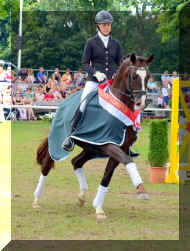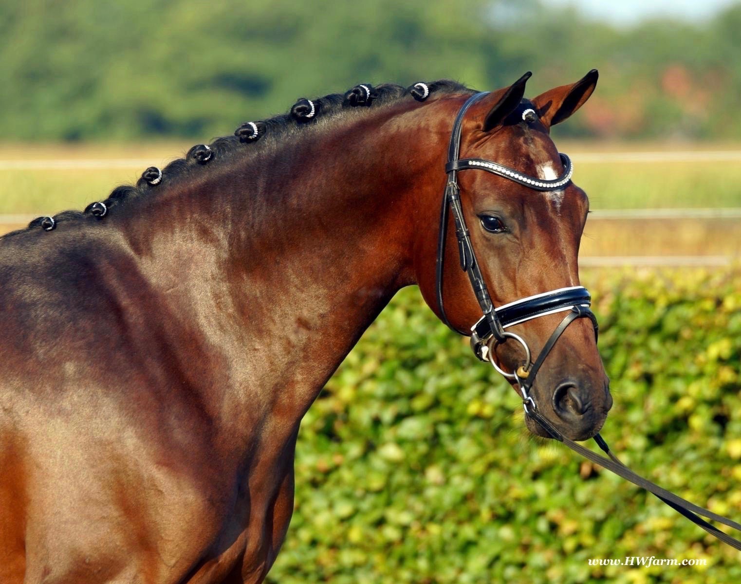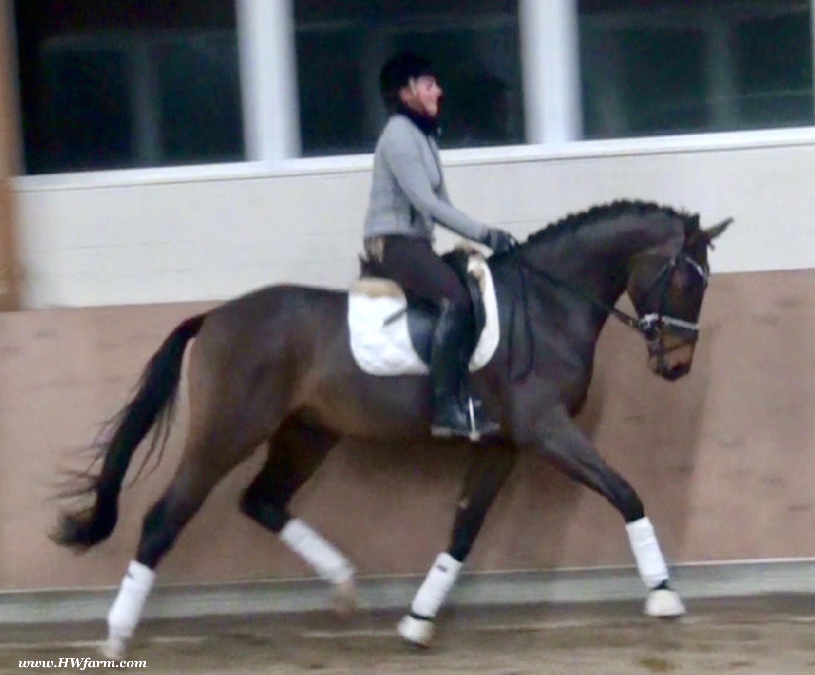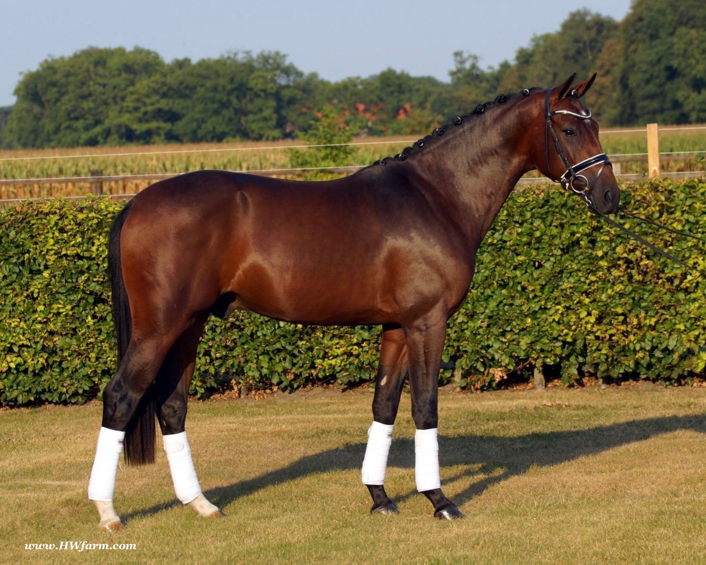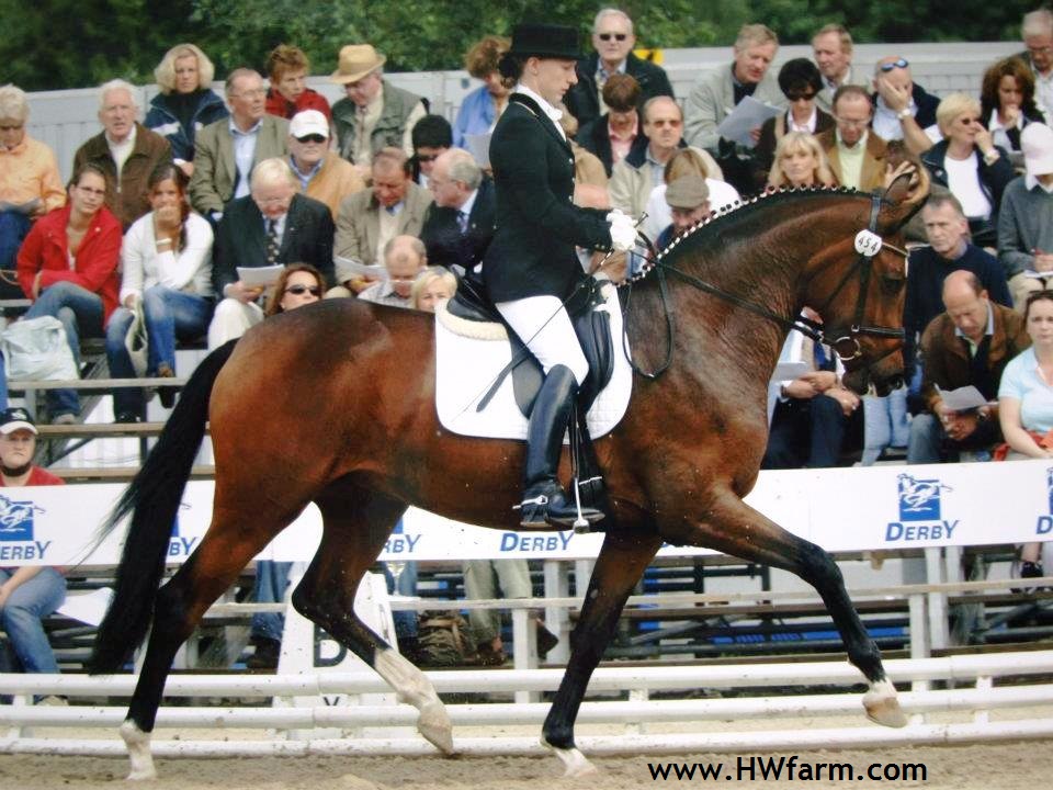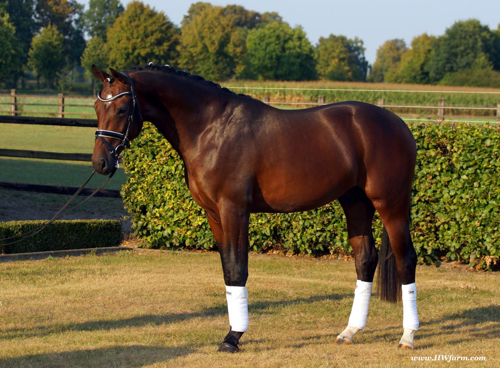 3 x Westphalian Champion & ViceBundesChampion son Quincy HW, dark bay Rhineland gelding by the powerful and dynamic Quotenkönig/Sandro Hit, born in 2014, standing approximately 169 cm or 16.2 hands. Quotenkönig, Vice Bundeschampion 2012, Westphalian Champion 2012, 2013 and 2014. BundesChampionat 2015, 4th place, WorldChampionship 2015, 8th place in the final round, victories in 3rd and 4th levels, WorldChampionship 2016, 4th place, multiple S & M Dressage victories and counting! Quotenkönig is by the Bundeschampion Quaterback. A breathtaking stallion with phenomenal offspring. Here are just some of the highlights for Quaterback: Scores for the Bundeschampionat: Trot; 9.5 Canter: 10 walk 7.5 Conformation: 9.5 Overall Impression: 9.5 Licensed for Berlin-Brandenburg, Oldenburg , Hanoverian This exceptional moving young stallion has already started his winning ways. Paired with the talented young rider, Christian Flamm of Hessen, Quaterback galloped away from the competition at the Bundeschampionate in 2006. He started his stallion career by being named Champion of his licensing in Neustadt/Dosse in 2005. In 2006, after the Bundeschampionate, he went on to win his 30 day test at Neustadt/Dosse with outstanding scores: Int. 9.0 Trot 9.25 Canter 9.75 Walk 7.63 Riding qualities 9.75 Jumping 7.75 Quotenkönig's dam is "St.Pr.St. Fleet-Street", 1. Reserve-Champion (Elite) of the mare performance testing in the year 2006 and she participated at the Bundeschampionat as well. She scored an amazing 8.99 at her performance testing. SPS Fleet-Street under saddle: SPS Fleet-Street in hand: She is by the famous Fürst Piccolo, a 100 Day Performance Test Winner! Fürst Piccolo's sire Fidermark was the vice champion of the NRW approvals in 1994 and won the Warendorf state stallion performance test with a big margin in 1995. Further successes followed in 1996. He dominated the "Optimum of Westphalian Riding Horses" sovereignty in Munster . He also became the Buneschampion in his home town of Warendorf . He then went on to win the LVM stallion championship in Munster Handorf. He has had many wins in the Prix St George and Intermediaire I under Marlies Van Baalen and he is trained by Johann Hinnemann. In 2003 he made his debut successfully at Grand Prix. His first foal crops produced sensational foals. They dominated the Westphalian Foal shows and the NRW elite foal auctions. In 1998 his first approved son Fein Sinn won the 100 day test, the first of several including the impressive moving Fürst Piccolo. He has over 15 licensed sons and many state premium mares to his credit already. He is a sire who will dominate German breeding for many years to come. He is ranked highly on the FN breeding values list. The dam sire Mephistopheles, a son of the Trakehner Mackensen derives from a Romadour II mare, establishing a blood connection to the paternal side via Rheingold. Mephistopheles sired the performance test winner Jacquare. Rembrandt in the third generation was a performance test winner with Trakehner blood. Fürst Piccolo was a premium stallion at the NRW main approval in 1999 and won the 100 day test in 2000 with high scores. He is an amazing moving stallion and his first few foal crops have dominated the Westphalian elite foal auctions. Quotenkönig's grand dam is the mother of "Feedback", by Fidertanz, he was the reserve winner of the NRW-stallion licensing 2009. She scored an amazing 8.06 at her performance testing. Feedback is her son, here is some info about him: After victories in riding horse tests and the Federal Championship qualifying with a score of 8.6, underlined its exceptional quality of Feedback with a superb 30-day test in Neustadt / Dosse. He received the best grade point average of all stallions. The descendants of the second NRW reserve winner in 2009 are eagerly awaited. Fidertanz father, the NRW champion stallion in 2004, presented again in 2010 and numerous top foals approved sons. Feedbacks mother, Conn. Pr.St. Scarlett was first reserve champion mare in her circle, is the parent of the premium stallion Fiderhit, the champion mare St.Pr.St. Fleet Street and many winning foals. Dam's sire Sandro Hit was Bundes champion six-year old and World champion of the young horses. Among the best known children of the stallion are the champion stallion Sir Donnerhall as well as the record mare Poetin. The Contender-Holstein and Landgraf lines round out the third and fourth generation of the pedigree. Quotenkönig (King of hearts!) is a picture perfect and absolutely stunning young stallion. He is a favorite of the NRW stallion auditions. Superb gentleman with 3 way above average gaits. He impresses everybody with his cat like movement, super free shoulder and unbelievable active hind end. He is one of a kind in movement, dynamic, charm and esprit. Quincy HW is a high quality youngster. His pedigree reads like no other, famous stallions, famous worldwide known riders! The Olympic horse, Horse Of The Year, Oldenburg Champion stallion and Young Horse Champion, TRIPLE CROWN WINNER - Selten HW, previously Elizabeth Ball's mount, sold for Euro 500.000 to Fiona Bigwood and Anders Dahl - internationally successful, bred and raised by www.HWfarm.com - is by the same sire as Quincy HW's dam sire. Olympic horse Selten HW, bred by www.HWfarm.com with Anders Dahl Quincy HW's dam herself produced a high priced auction horse and a half brother, was in the end ring at the foal championships, she is a proven high quality producer by the stallion of the century, Sandro Hit. Sandro Hit - Better than ever: Dominant refiner with revolutionary breeding performance two of his offspring, St. Emilion and Showtime ridden by Dorothee Schneider, are currently on the German Olympic dressage team. Very few stallions have managed to become a legend during their lifetime. Sandro Hit is therefore almost unique and his production of epochal importance in world dressage horse breeding. He has almost created his own "label": Des