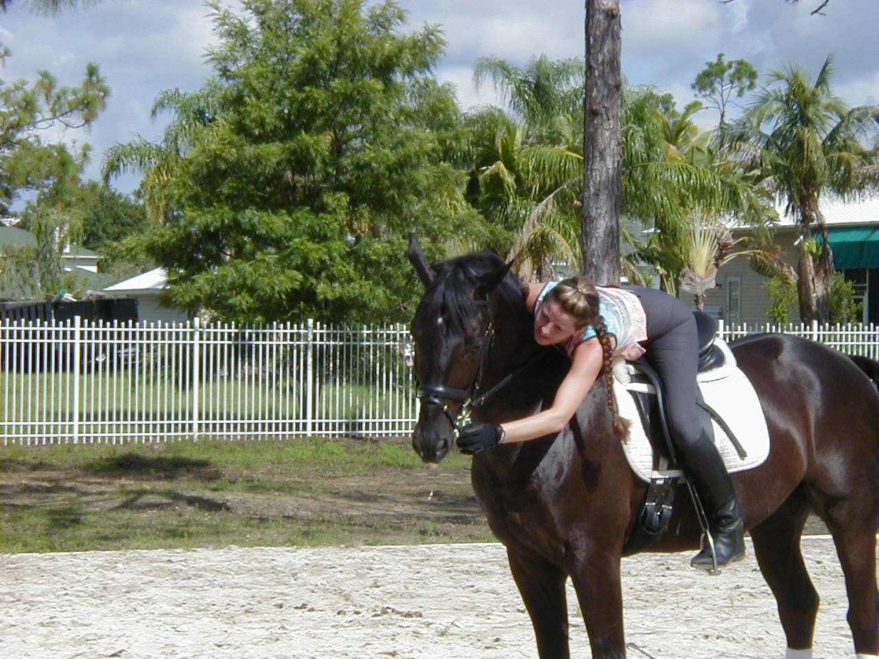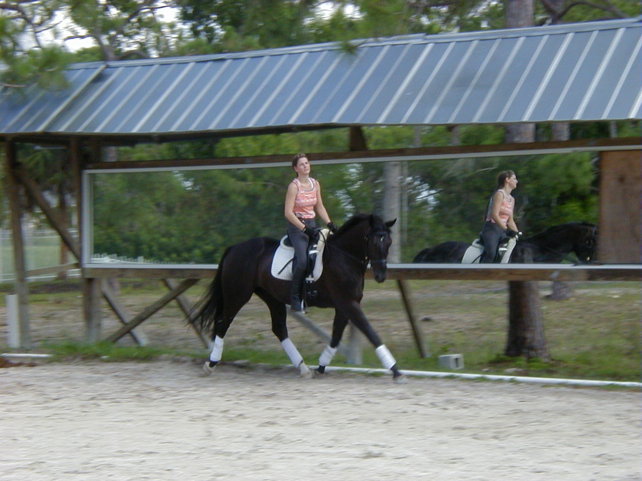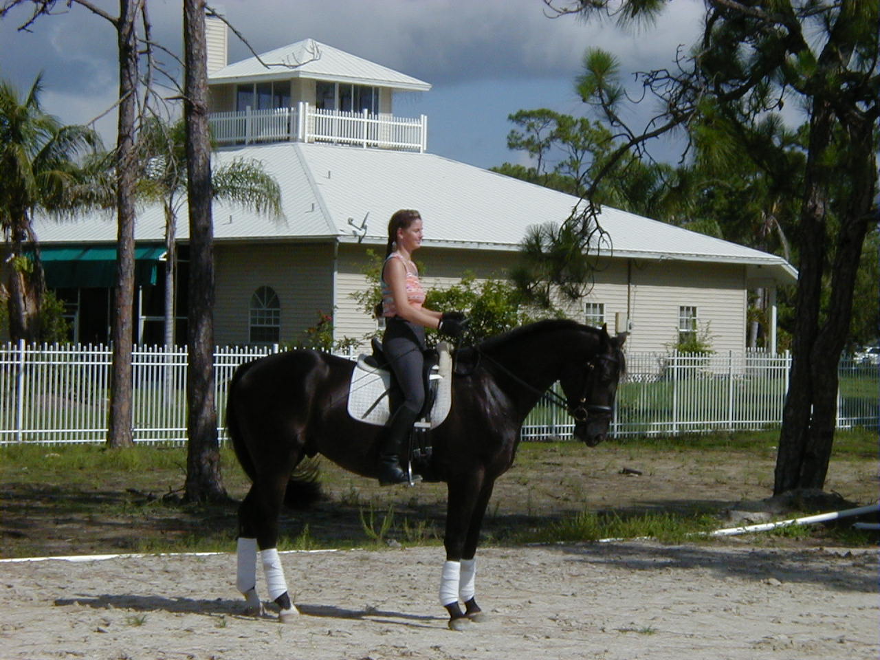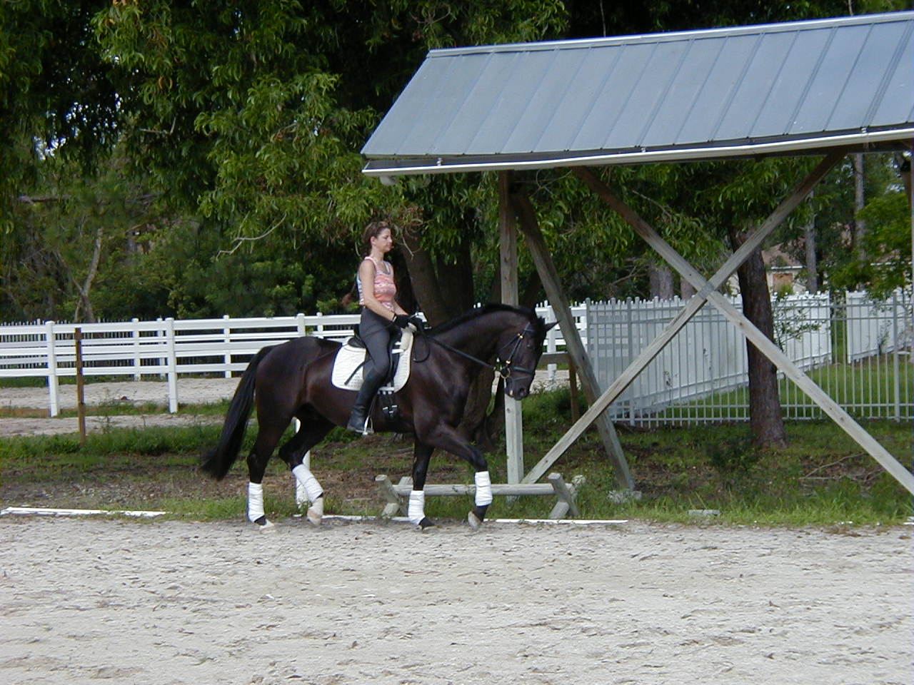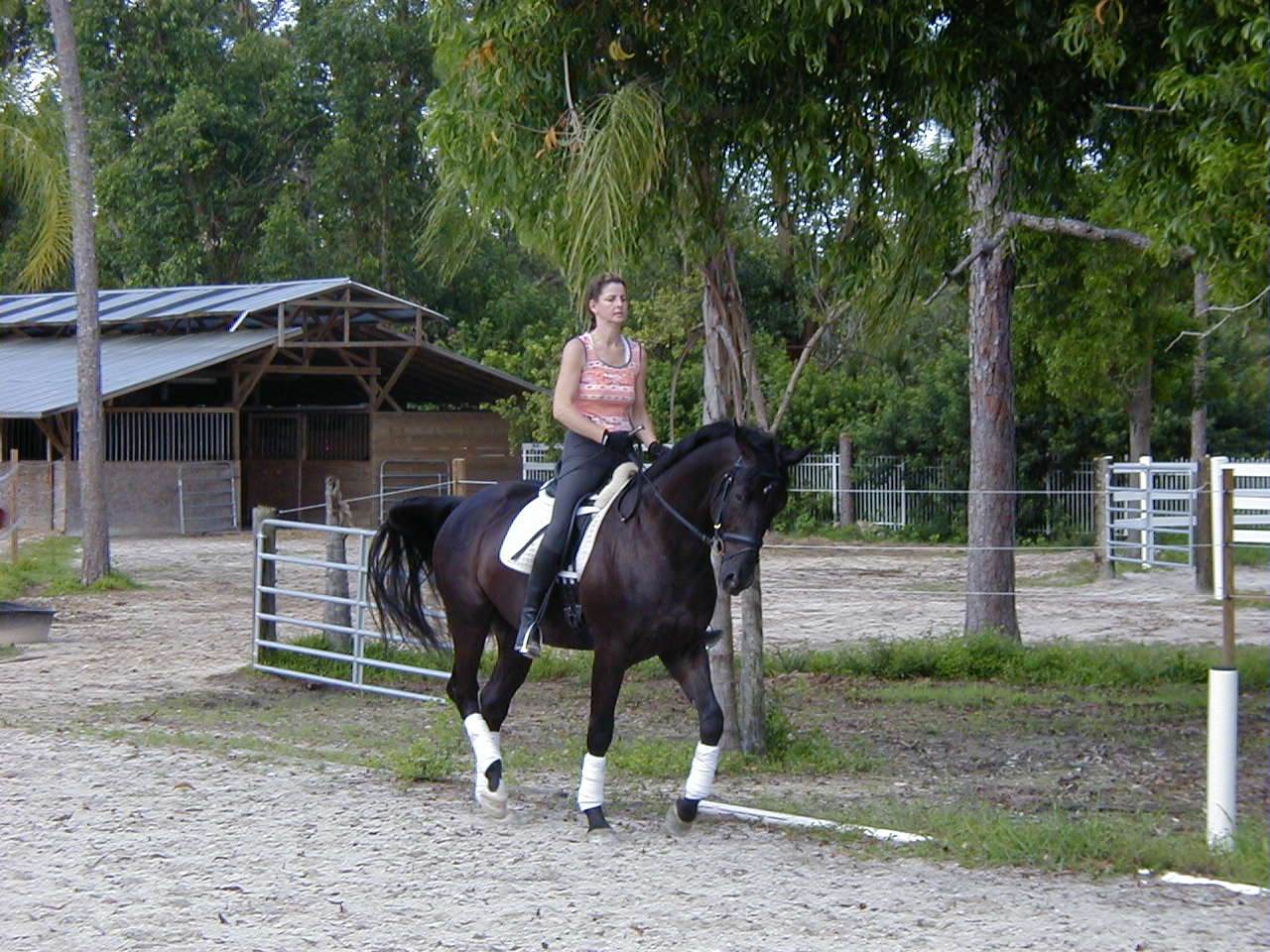 NEW now with video clips (click here) Riccie HW, born February 2002, is a 16,2 hand black gelding by Reccio L. Riccie was presented at the German stallion licensing, by the owners of his sire. They were hoping that his approval would be a nice feather in the cap of his sire because Reccio had just been sold to new owners in China. With so many quality youngsters being bred in Germany (out of approximately 800, only 100 get pre selected and only some of them get approved!), Riccie was not licensed and is now being offered as a super riding horse for the discerning person. Riccie is an exceptional “stallion look-a -like” example of the Hanoverian breed. His shiny ebony coat plus his natural expression keep eyes turning everywhere he goes. With a gorgeous neck and wonderful gaits, this fellow is destined for a show career. He is also quite comfortable to sit and loves to work. He is safe and sensible in and out of the ring. He is forward thinking but not hot and calm enough without being boring or lazy. Riccie can be ridden by nearly any level of rider. He can also be your best friend and partner because he wallows in the extra attention. He is quite a clown in the barn, will help to fill up water buckets (he holds the water hose!) and he’ll open the door for you, without being annoying! Impeccable barn manners also speak volumes of the quality of this fellow. He bathes loads and stands quietly for the vet and blacksmith. Riccie loves his special grooming time and patiently allows my 14 year old daughter to manage, handle and ride him. He is suitable for other young riders too! His bloodlines go back to Raphael (Ramiro), Falkland as well as the world famous Calypso. This will enable him to be a perfect partner for dressage or jumping, depending on your personal preference. He is currently in dressage training with a small jump here and there for fun. He is very reasonably priced at $ 28,900 for a limited time. His price will soon go up with further training and with show ring experience. Blue ribbons tend to add value, and we are sure that Riccie will get more than his share!