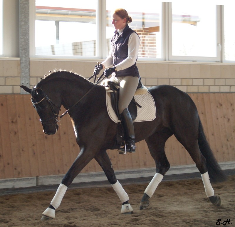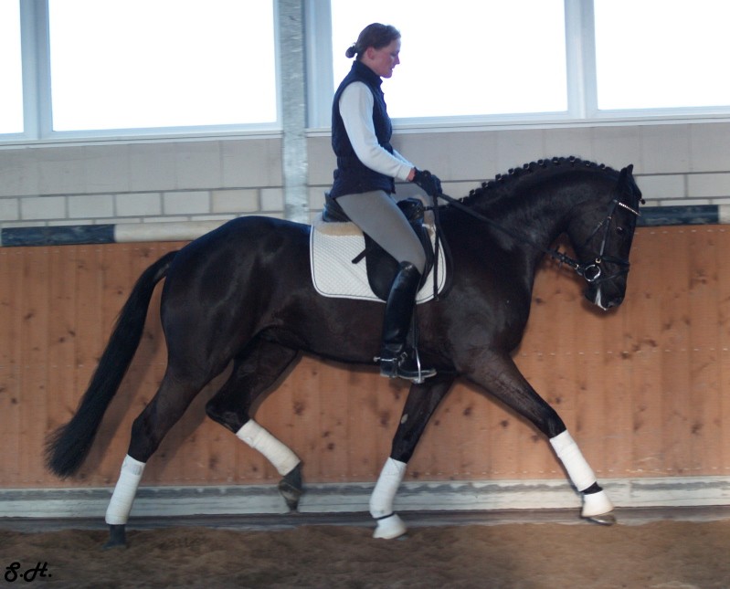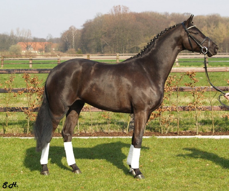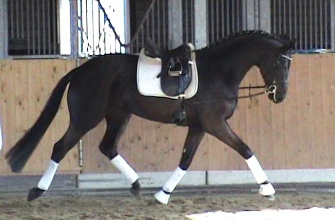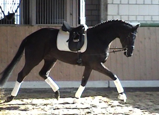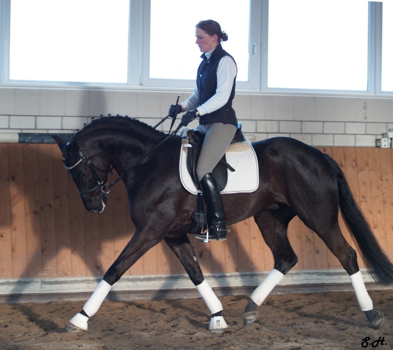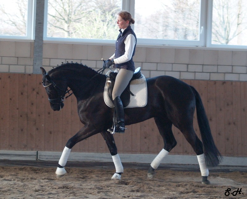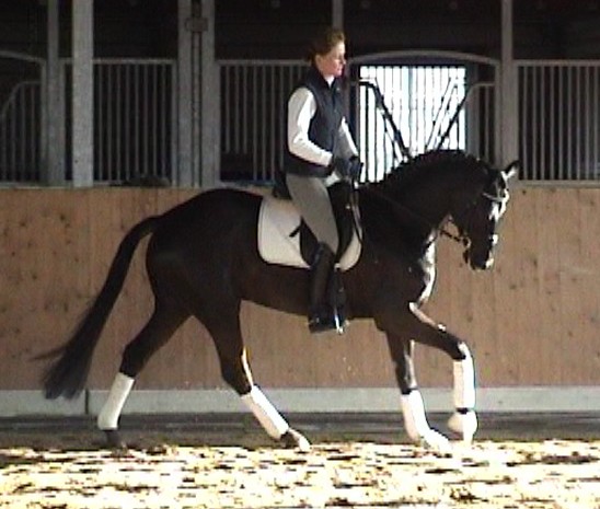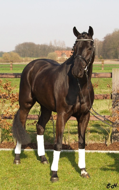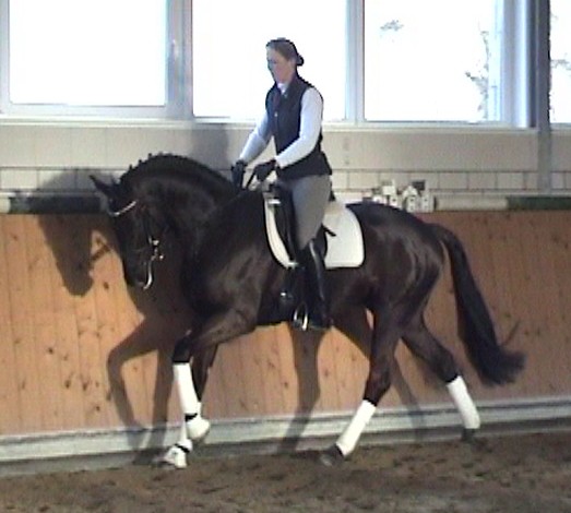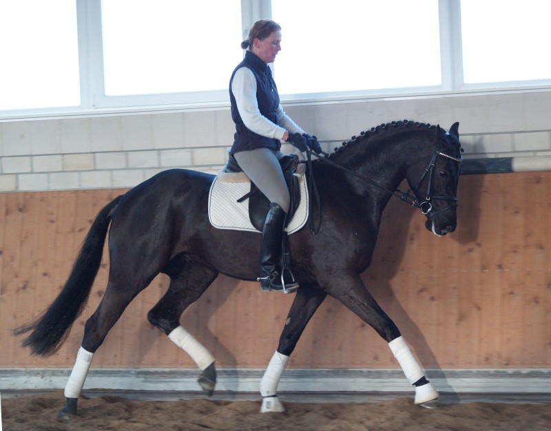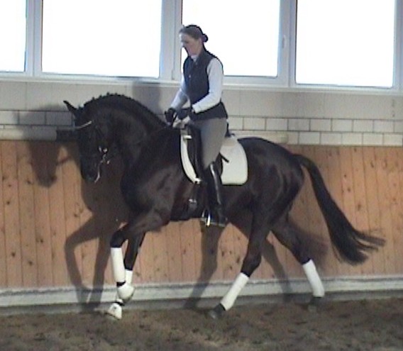 Romancero HW, a black Westphalian gelding by Rosenkönig, born in 2003, and is approximately 16.2 hands Absolutely stunning and breathtaking FEI candidate! Romancero HW is a picture perfect horse, you could not paint him any better – he is as perfect as a horse can be! He is sired by the famous Rosenkönig from Rubinstein and his genes will enable him to be a successful competitor in the show rings. Romancero HW knows how to set himself in the picture and he is as proud as a black swan – look at this stallion neck!!! - and the absolute fulfilling of all dreams a rider could have. Beautiful, elegant and able to go up all the levels in no time, the ribbons will be his. This is a once in a lifetime horse! His temperament is exactly the way we like