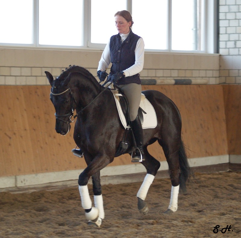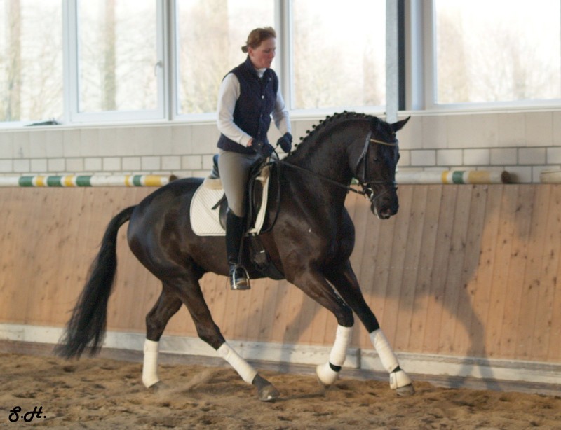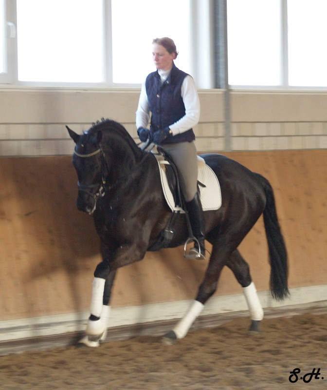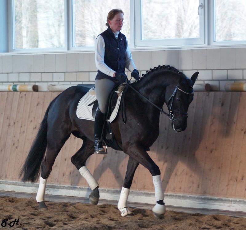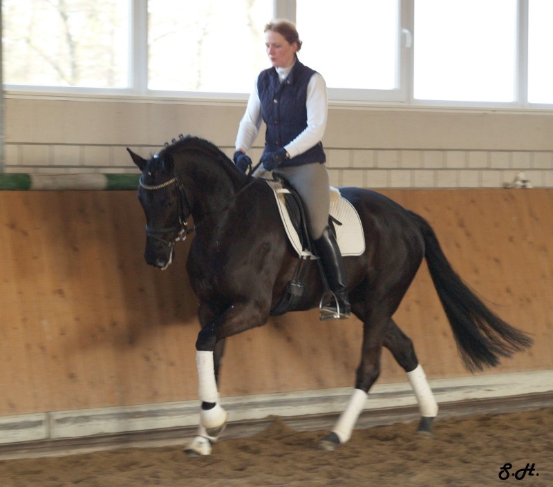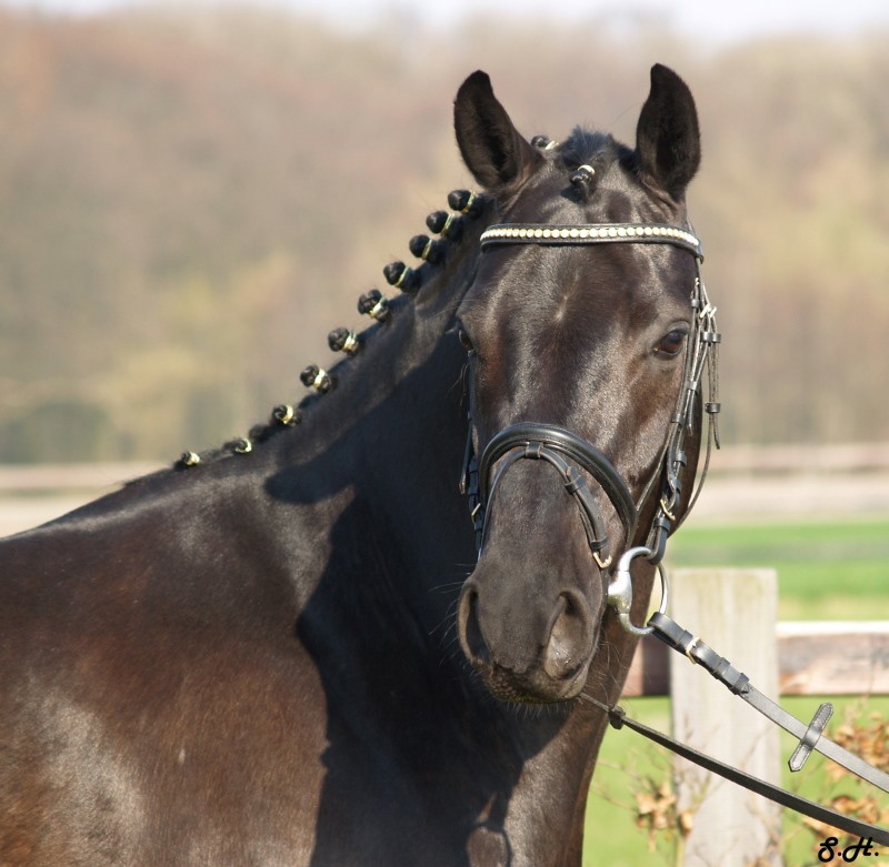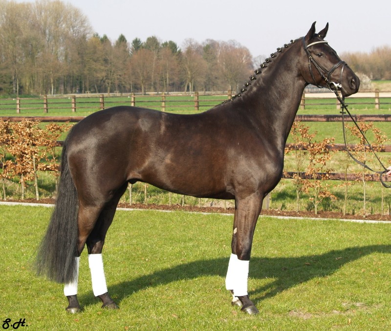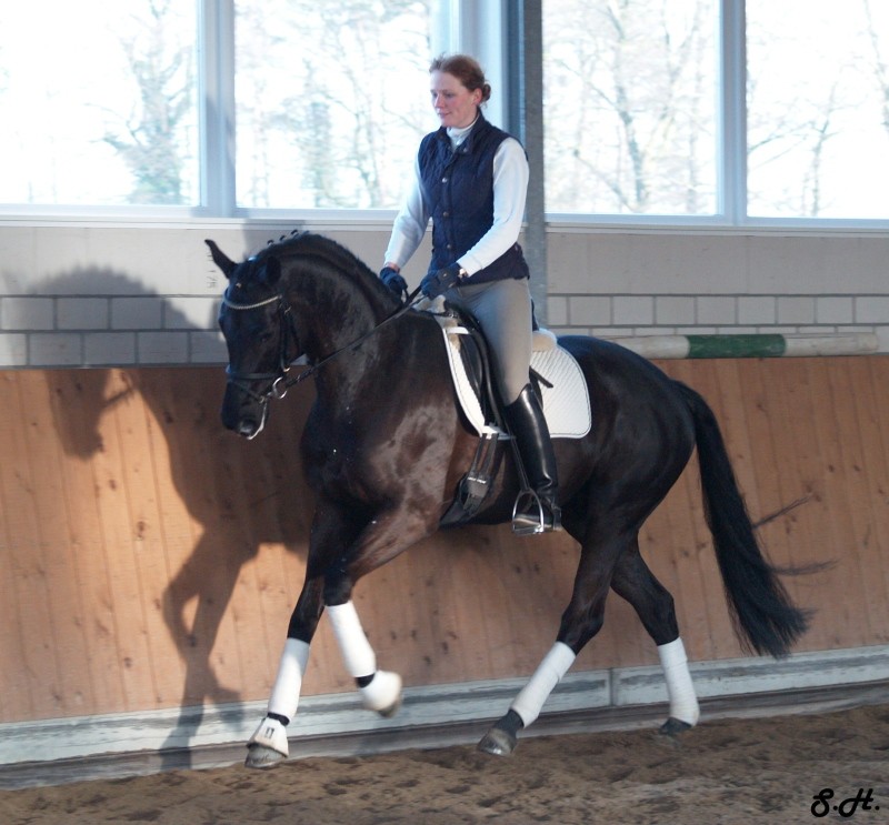 Romancero HW, a black Westphalian gelding by Rosenkönig, born in 2003, and is approximately 16.2 hands Absolutely stunning and breathtaking FEI candidate! Romancero HW is a picture perfect horse, you could not paint him any better – he is as perfect as a horse can be! He is sired by the famous Rosenkönig from Rubinstein and his genes will enable him to be a successful competitor in the show rings. Romancero HW knows how to set himself in the picture and he is as proud as a black swan – look at this stallion neck!!! - and the absolute fulfilling of all dreams a rider could have. Beautiful, elegant and able to go up all the levels in no time, the ribbons will be his. This is a once in a lifetime horse! His temperament is exactly the way we like