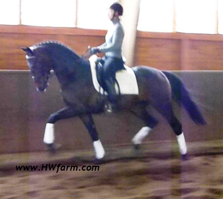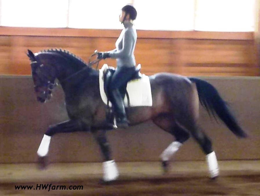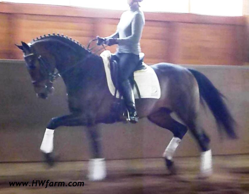 Saint Tropez, another successful offspring of the stallion of the century! He is sired by Weltmeyer: 1997 in Adelheidsdorf From his first foal crop, Weltmeyer's son Wittinger won the 1991 German Champion Three Year Old Riding Horse title, and won the 1992 Stallion Performance Test. Another son, Weltburger, was the Four Year Old German Riding Horse Champion in 1993. Weltmeyer's daughter Windrose was Reserve Champion Mare in the European Mare Show for Riding Horses. From Weltmeyer's second foal crop came the Stallion Performance Test winner and 1993 Three Year Old Riding Horse Champion - Wolkenstein II. From the third crop came yet another multiple Champion, Wolkentanz. Another son, Welt Hit O, was the 1994 Reserve Champion Three Year Old Riding Horse. In 1995 the Weltmeyer son White Star was named Reserve Champion of the Stallion Licensing. Another son, White Magic (out of a Bolero mare), dominated the Stallion Performance Test. In 1996 White Star was the German Three Year Old Riding Horse Champion, and the Weltmeyer daughter Wildrose was named the Champion Three Year Old Riding Horse Mare. The list continues to grow each year as Weltmeyer progeny prove themselves with superior talent and quality. Weltmeyer and his sons: The grand dam sire of Saint Tropez is nobody less than the famous Brentano. Brentano II, Hanoverian Stallion of the Year 2003: The Celle state stud stallion Brentano II is the Hanoverian stallion of the year 2003. At the Verden stallion licensing, the chestnut stallion was awarded this prestigious title. His breeder, Dr. Max Schulz-Stellenfleth, Stellenfleth, was honored with a check for EURO 10,000.00 and a valuable Wohlklang-statuette. The Uelzener insurance company always generously supports this award that honors important Hanoverian stallions who have a tremendous influence on the breed. In 1983, Brentano II was born on Dr. Max Schulz-Stellenfleth's farm in Kehdingen. His dam, the Grande-daughter Glocke, descends from one of the most important mare families in Hanover, going back to the Schumann-daughter S449. The stallions Garibaldi I and II, Wolkenstein I and II and Beltain as well as Beauvalais, one of the internationally most successful dressage horses with Beatriz Ferrer-Salat, belong to this equine family. Recently, Beltain caused a sensation in Warendorf: Under Holga Finken, his son Belissimo M became federal champion of three-year-old stallions. After having won the stallion licensing, Brentano II moved to the Celle National Stud. At his stallion performance test, he presented the best dressage performances, and with a final score of 129,97, he ranked second. One year later, he achieved the fourth place at the Federal Championships of the German Riding Horse. He is trained up to advanced dressage level, and he has been belonging to the Celle Quadrilles for years now. Since 1987, he has been stationed in Artland, first in Natbergen, later on at the Ankum insemination station. At the World Equestrian Games in Jerez, Brentina won the team bronze medal under the American Debbie McDonald. Her right brother Barclay is just about to start his international career with Gonnelien and Sven Rothenberger. In the youngster division, Bernstein and Christian Ritter are a successful and important equine pair. This year, Bon Jovi was especially successful: He won the federal championship title of four-year-old horses in Warendorf. Apart from that, he is the dam's sire of the Brandenburg mare Poetin who is on everyone's lips after having won the World Breeding Championships Dressage of Young Horses and the Federal Championships. Brentano II is a dressage stallion with an exemplary inheritance, and his dressage breeding evaluation reaches the above-average mark of 137 points. With his successful offspring, he is one of the sons of the trademark stallion Bolero who ensured a revival of this bloodline in sport. Thus in October, Bonaparte (Heike Kemmer) was awarded the most successful dressage horse of the world. Brentano II, a phenomenal stallion! Saint Tropez has dream bloodlines, gaits and attitude. He is a horse of unbelievable quality and an outstanding mover. He has the elasticity everybody is looking for. He has a free shoulder, a huge grundschwung and swings nicely through his back. This extremely talented stallion has international potential. He is dark bay and beautiful. He is a very sweet gentleman that has a quiet nature and the talent to do it all. He is very rideable and trustworthy. The girl in the video loves to ride him and can't wait to get on his back as often as possible. He is easy to handle and loves his personal grooming time and puts his head right in your lap, striving for attention. This boy will go far in the dressage ring, he is your ticket to the top! Buy him now and show him yourself in the 4 year old Young Horse Championships in 2013 and in addition you could breed with him if you wish and produce your own quality offspring!