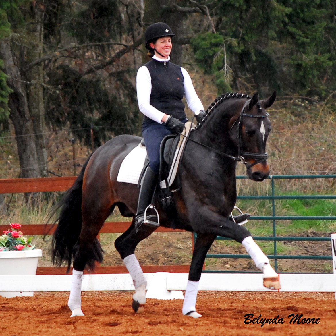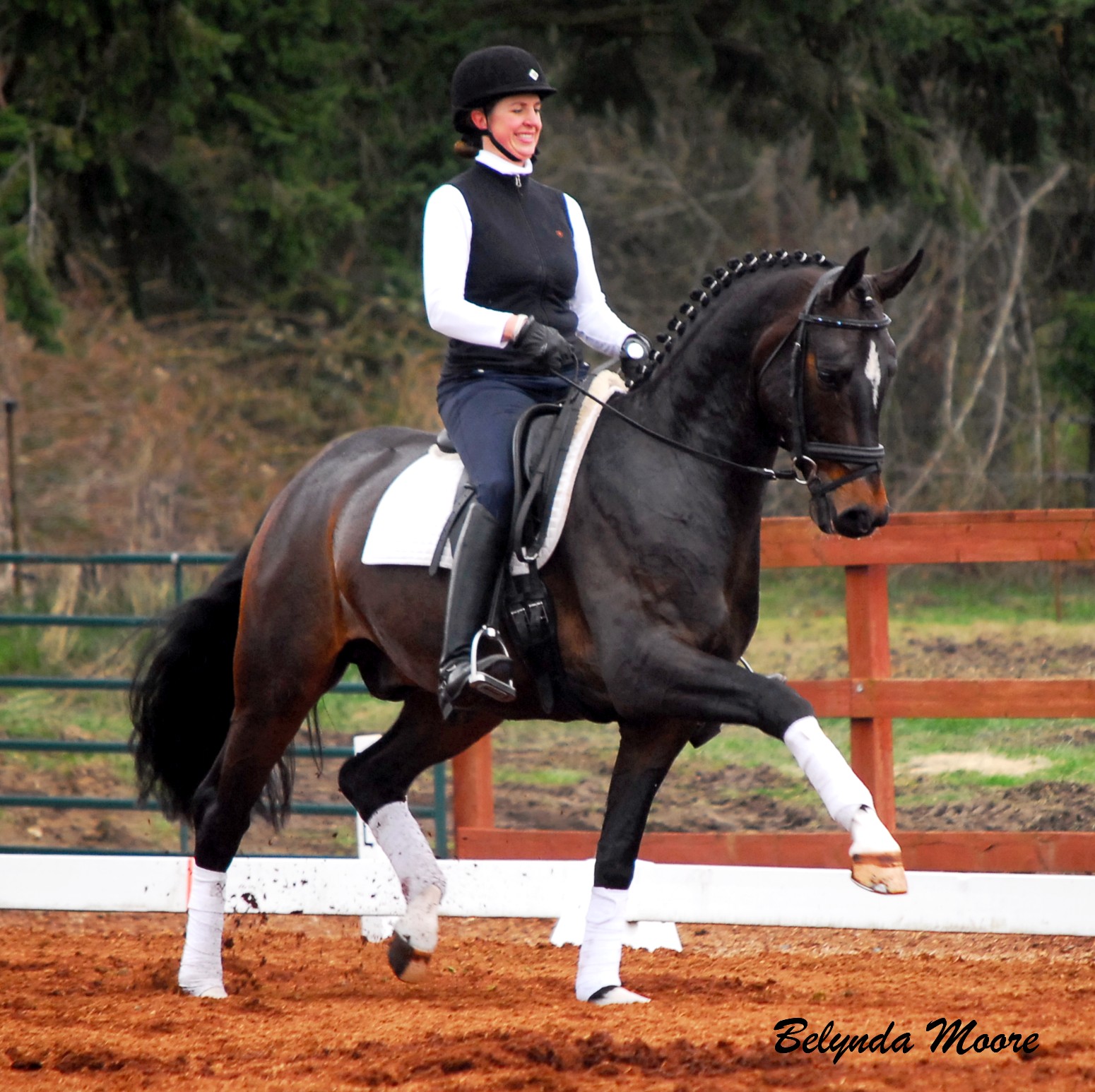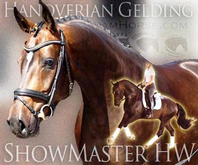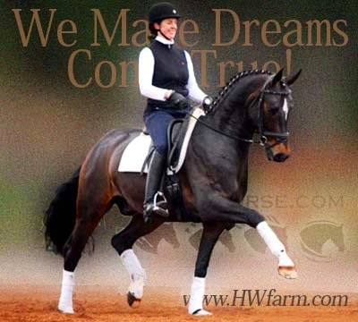 ShowMaster HW, black/bay Oldenburg gelding, by (Sandro Hit / Relevant / Donnerhall / Pik Bube), born 2008, standing approximately 169cm or 16.2 hands. ShowMaster HW is a high quality youngster. His pedigree reads like no other, famous stallions, famous worldwide known riders! The Oldenburg Champion stallion and Young Horse Champion, TRIPLE CROWN WINNER - Selten HW (Elizabeth Ball's mount, bred and raised by HWfarm) - is by the same sire. ShowMaster HW is sired is by the famous sire Sandro Hit, inheriting his elegance and movement. Better than ever: Sandro Hit has started a new era in the dressage scene and is already writing sporting and breeding history The number one: National Young Horse Champion - Young Dressage World Champion - unique producer performance Sandro Hit progeny are breaking all price-records, are annually winning championships and are Approval Champions Sandro Hit absolved his stallion performance test in Medingen in 1997 and in 1999 he became federal champion six-year old dressage horses as well as world champion juvenile horse in Arnheim. He has meanwhile been trained up to advanced class. Right from the outset, Sandro Hit set standards not only in sport, but also in breeding. His first crops of foals are convincing by their exceptionally aesthetic imprint of type as well as their outstanding motions. His son Sandrit was the 1999 approval winner in Mecklenburg-Vorpommern, while Sommerhit was runner-up in Berlin-Brandenburg and Sandro Ace became vice-champion in Oldenburg. Sunny Boy in turn, was awarded a premium in Oldenburg , whereas Sommeliere likewise was approved in Oldenburger in 1999. In the year 2000, Sandro Hit made the headlines once more: His Brandenburg bred daughter Poetin won the Federal Championship of three year old mares and geldings under Hans-Heinrich Meyer zu Strohen. A number of his offspring attained peak prices at different German auction sites, including his daughter Starlet, who at DM 140,000 was the top lot of the collection of broodmares at the 2000 Vechta spring auction. On top of that, two Sandro Hit progeny were awarded the desired status "approved" at the Oldenburg approval, as well as at the NRW approvals. In 2001 he sired the Federal champion and two vice champions. Show Master HW's dam is by Relevant, Lisa Wilcox's ride. Striking exterior and scope, fabulous movement possibilities with plenty of freedom at the shoulder--it's all Relevant! His is the significant dam line of former DLG Champion Mare, Hirtin. Salonlöwe, by Sandro, is a direct half-brother on his dam's side. After successfully passing his stallion performance test in Medingen with a score of 120 points in dressage, Relevant returned to Cappeln in the fall of 1996, where, as a consequence of his admirable rideability and willingness to perform, he has been further trained up to advanced and international level in a very short time. In 1997, as a six year old he won and placed in medium level dressage tests and was a successful participant in the 1997 German Championships. In 1998 he won the "Kleine Tour" at the CDIO Aachen and the Nürnberger Burgpokal. In 1999, among his many entries, three in Grand Prix resulted in three first places. In 2000-2001, Relevant became Best Stallion of 2001 in Zwolle, Netherlands. He gained an outstanding reputation under Lisa Wilcox at international dressage shows, winning Grand Prix freestyle in series with scores up to 79%. With Lisa Wilcox the pair achieved team silver and 5th place individual at the World Equestrian Games in Jerez. They won the German Masters in Stuttgart. Relevant is the world's best dressage stallion according to BCM World Breeding Ranking. In 2001 they again won the VTV Dressage Stallion award. Their best performances were in a Grand Prix in Oldenburg with 78.20%, 77.84% in a Grand Prix Special in Stuttgart and 82.65% in the Grand Prix in Jerez. They are in third place on the FEI's world ranking list for dressage. At shows in Germany they won € 41,936.00, increasing Relevant's life timeprize money to a total of € 93,372.00. His first crop produced highly interesting foals. IWinner of the 2002 German Masters in Stuttgart. World best dressage stallion according to BCM World Breeding Ranking. 82.65% in the Grand Prix free-style at the World Championships in Jerez. In 2003 Relevant was 2nd place at the CHIO in Aachen in the CDIO final results. Relevant returned from the 2003 open European Championships in Hickstead with the silver medal. In 2003, Relevant ranked 3rd among the most successful horses in Germany with 61,875 € in prizes that year. 2004 brought a team bronze medal at the Olympic Games in Athens. Lifetime earnings as of December 31, 2004: 162,147 €. In 2005 Relevant was successful up to Grand Prix with his rider, Marlies van Baalen. In 2006, he finished in 5th place at the World Cup in Maastricht, 8th place at the World Cup in Aarhus, 7th place in the Dutch Championships, 6th place at the World Cup in Mechelen, winner of several Grand Prix tests. ShowMaster HW's great grandsire is Donnerhall, one of the great dressage sires of this century. I have seen videos of Donnerhall, most notably his final competition performance in Rome. He was gorgeous, but to be honest what impressed me most was the crowd's adoration of this old gentleman. He had flowing, supple gaits. He was not known so much for his gaits as his rideability and talent for dressage. Donnerhall died in 2002, but he left a legacy. There are a ton of D-line stallions around, and for good reason. Donnerhall is one of the most influential breeding stallions in dressage. A few tidbits about Donnerhall... As a young horse he placed second out of 70 horses at his Stallion Performance Test, with an overall score of 131.92. At least 16 of his offspring are competing at an international level--twice as many as other prominent sires such as Weltmeyer. He has the highest dressage breeding value index (271) of all stallions. Donnerhall sired more than 77 a