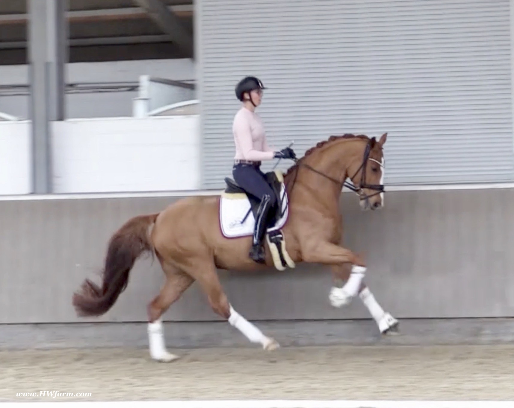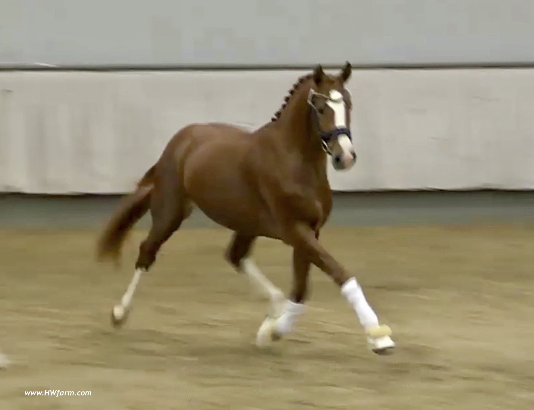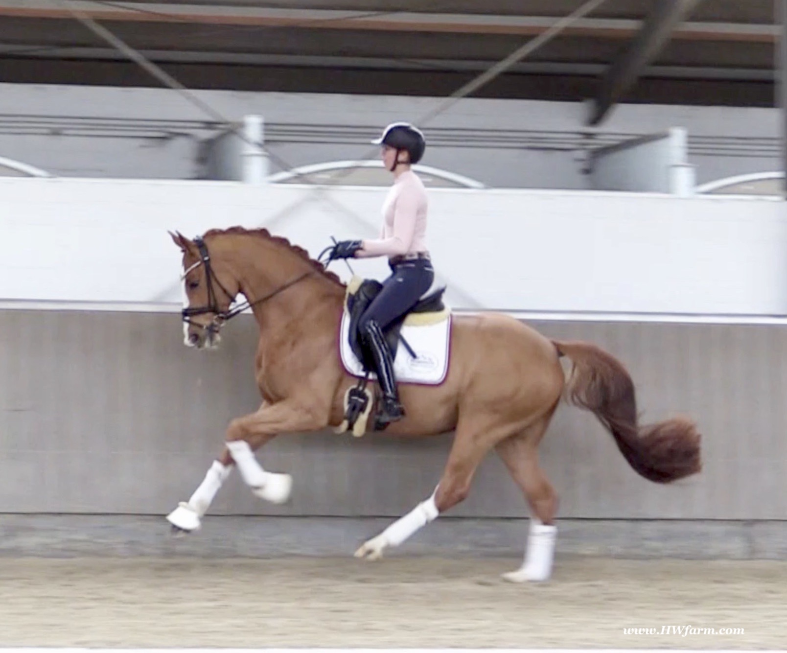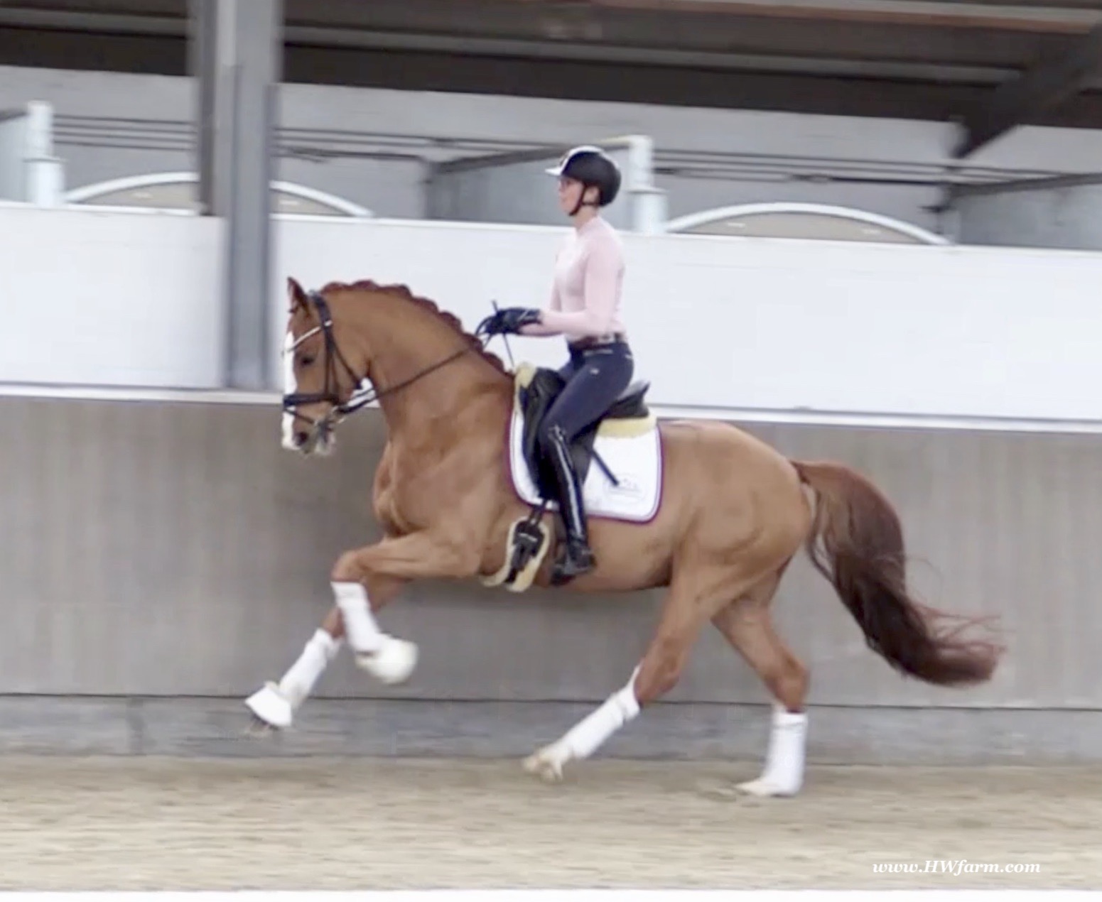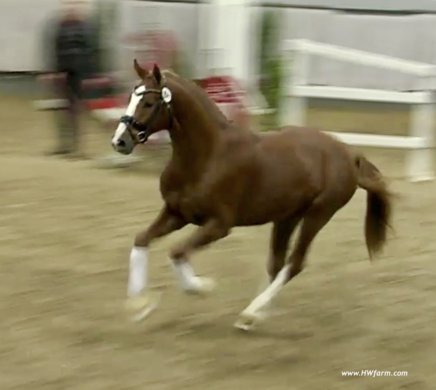 Sir Dynamic HW, chestnut Westphalian gelding, by stallion of the year Sir Heinrich/Champion Don Frederico, born in 2017, standing approximately 166 cm or 16.1 hands. Sir Dynamic HW is by Sir Heinrich, the full-brother to the four Bundeschampions Cindy OLD, Candy OLD, Caty OLD and Casey OLD. His sire Sir Donnerhall I became Bundeschampion of six-year-old dressage horses in 2006 and finished best at the 70-day test in Adelheidsdorf in 2005 (dressage index 163.87). More than 100 of his sons have been licensed, soon 400 of his daughters have been awarded premium mares. As the first mare in history, St.Pr./El.St. C'est bon became dam of five Bundeschampions: Sir Heinrich OLD, Cindy OLD, Candy OLD, Caty OLD and Casey OLD (all by Sir Donnerhall I). Sir Heinrich OLD and Si bon were also licensed, and Oldenburg champion mares are Candy OLD and Casey OLD. He was licensed in 2010 at the NRW main licensing in Münster and completed his 70-day test in Neustadt/Dosse in 2011 with an overall score of 8.5, achieving the second-best result of the entire year with his dressage score of 8.99. As a highly sought-after NRW state stud stallion, he sired 16 licensed sons, more than 60 premium mares, auction price peaks and offspring that are successful in sport. After he won the Oldenburger Landeschampionat in 2012, he became vice-champion in national championships of four years old stallions. At national championships in 2013 he won convincingly his qualification class of five years-old dressage horses, in the finals he saved the silver medal with a scoring of 8.6 in his age group. Sir Heinrich OLD represented the German colors as a five and six years-old in world championships of young dressage horses in Verden. He can show victories in elementary and medium level dressage tests for young horses as well as in advanced level dressage tests (S*). His sport horses career's highlight was certainly the victory in national championships of six years-old dressage horses in 2014 with a total score of 8.7 in the finals. On the occasion of the Oldenburg Stallion Days 2016 he was awarded VTV-Dressage Stallion of the year.