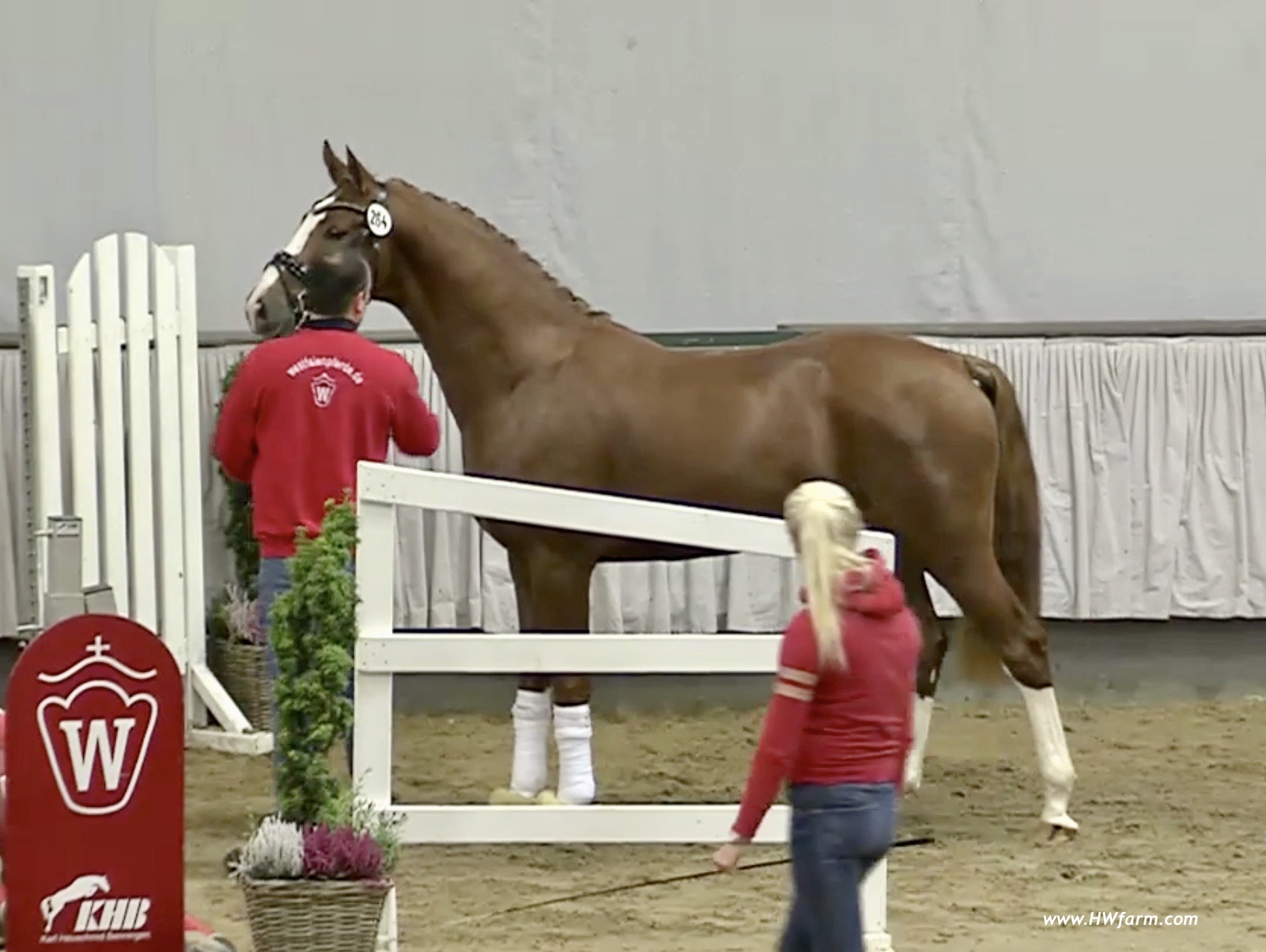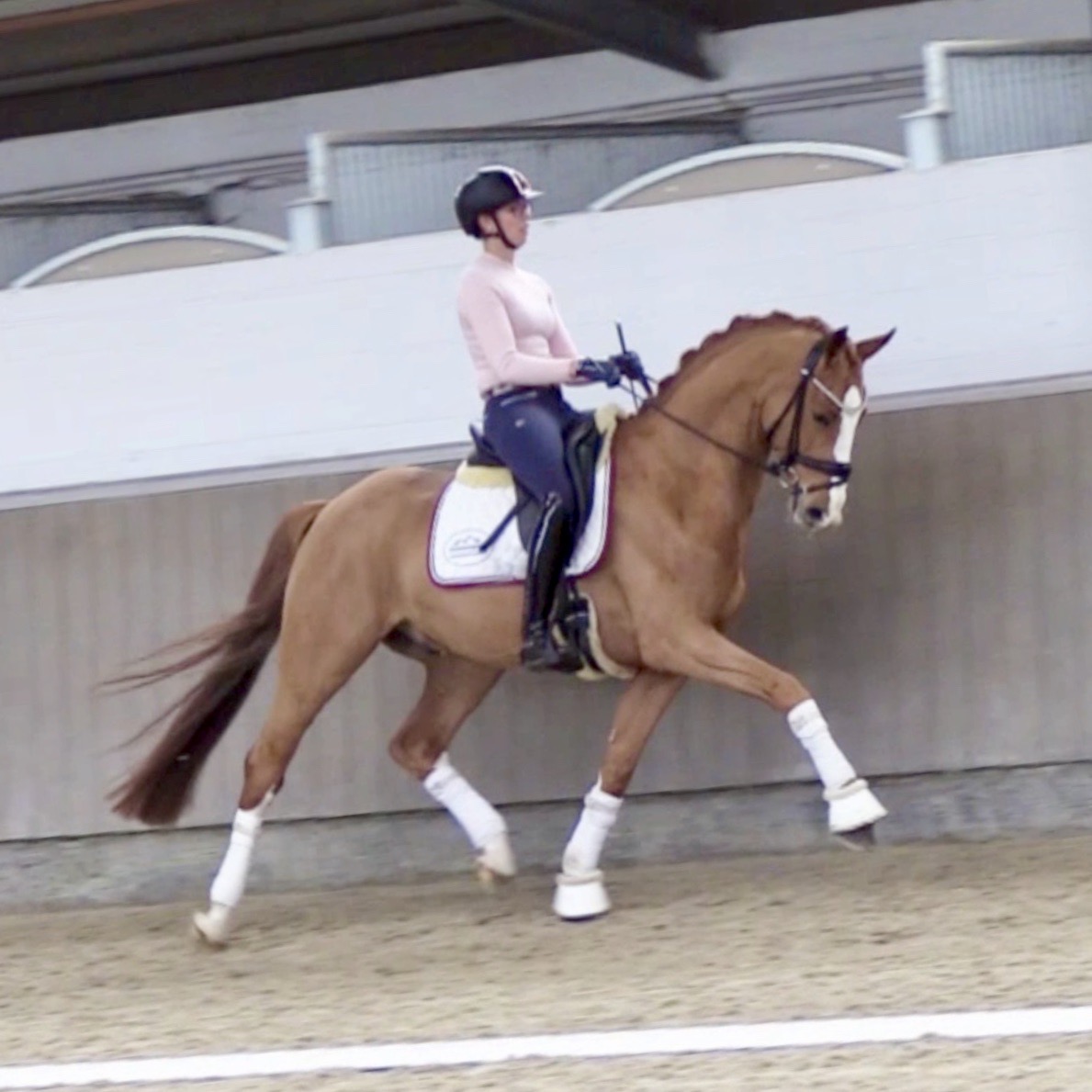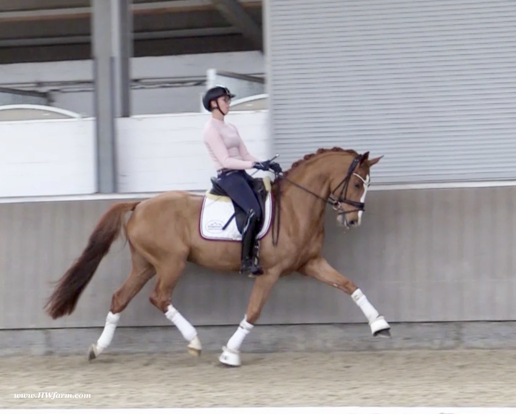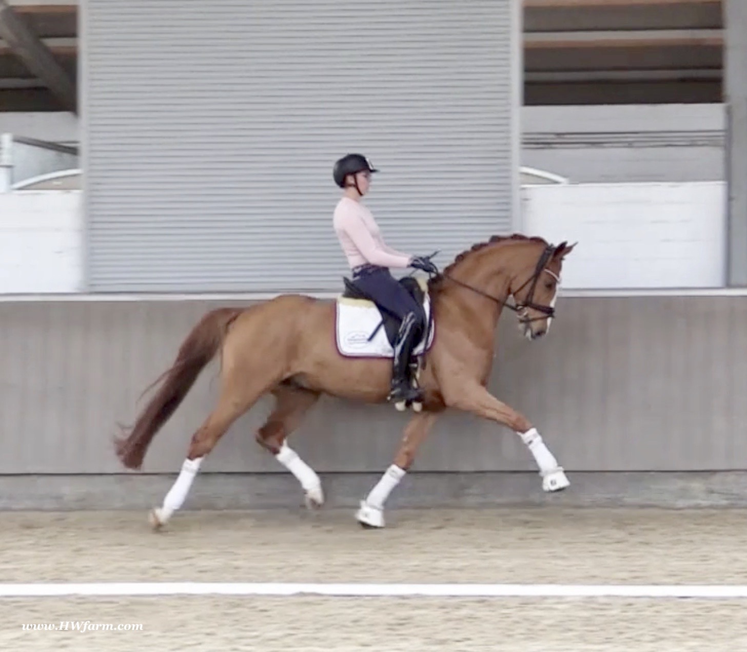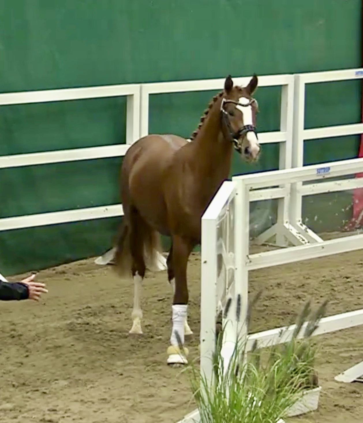 Sir Dynamic HW, chestnut Westphalian gelding, by stallion of the year Sir Heinrich/Champion Don Frederico, born in 2017, standing approximately 166 cm or 16.1 hands. Sir Dynamic HW is by Sir Heinrich, the full-brother to the four Bundeschampions Cindy OLD, Candy OLD, Caty OLD and Casey OLD. His sire Sir Donnerhall I became Bundeschampion of six-year-old dressage horses in 2006 and finished best at the 70-day test in Adelheidsdorf in 2005 (dressage index 163.87). More than 100 of his sons have been licensed, soon 400 of his daughters have been awarded premium mares. As the first mare in history, St.Pr./El.St. C'est bon became dam of five Bundeschampions: Sir Heinrich OLD, Cindy OLD, Candy OLD, Caty OLD and Casey OLD (all by Sir Donnerhall I). Sir Heinrich OLD and Si bon were also licensed, and Oldenburg champion mares are Candy OLD and Casey OLD. He was licensed in 2010 at the NRW main licensing in Münster and completed his 70-day test in Neustadt/Dosse in 2011 with an overall score of 8.5, achieving the second-best result of the entire year with his dressage score of 8.99. As a highly sought-after NRW state stud stallion, he sired 16 licensed sons, more than 60 premium mares, auction price peaks and offspring that are successful in sport. After he won the Oldenburger Landeschampionat in 2012, he became vice-champion in national championships of four years old stallions. At national championships in 2013 he won convincingly his qualification class of five years-old dressage horses, in the finals he saved the silver medal with a scoring of 8.6 in his age group. Sir Heinrich OLD represented the German colors as a five and six years-old in world championships of young dressage horses in Verden. He can show victories in elementary and medium level dressage tests for young horses as well as in advanced level dressage tests (S*). His sport horses career's highlight was certainly the victory in national championships of six years-old dressage horses in 2014 with a total score of 8.7 in the finals. On the occasion of the Oldenburg Stallion Days 2016 he was awarded VTV-Dressage Stallion of the year.