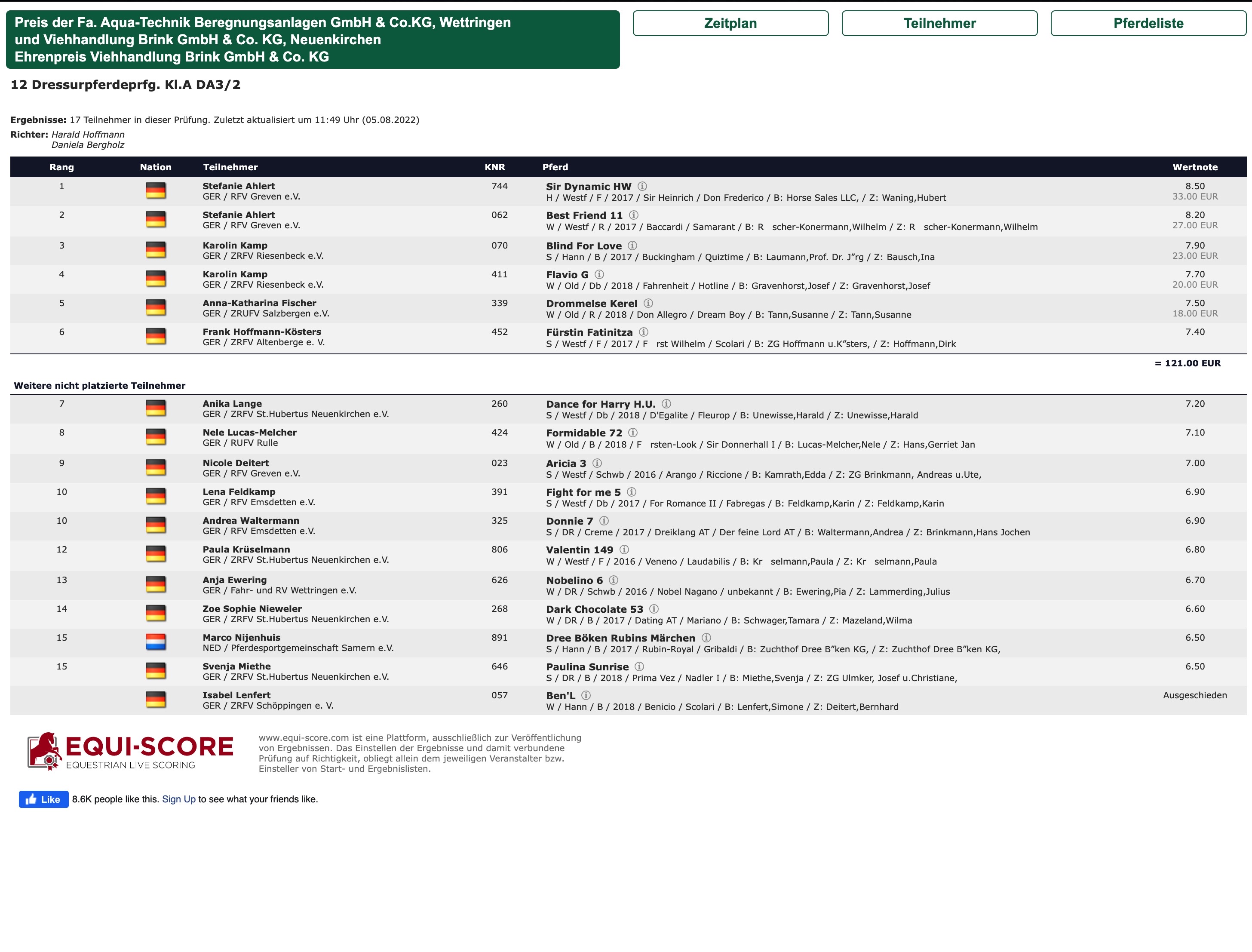 Sir Dynamic HW's dam is by the Hanoverian stallion of the year and one of the most popular stallions at the Hanoverian state stud Celle, Don Frederico. The elegant and impressive Don Frederico became Champion of the 1999 Hanoverian Stallion Licensing. This "eye-catcher" completed his stallion performance test as runner-up with the amazing score of 151.67 points in the dressage section. He also constantly improved his qualities during the test, proving his excellent mental qualities. Don Frederico convinces by his excellent rideability and his very good basic gaits which will impress all dressage riders. He is a member of the Celle black horse dressage quadrille. His offspring are also demonstrating dressage excellence. In 2005, Dantonisius and Dark Carlotta were Champion and Reserve Champion Four Year Old Riding horses (mares and geldings) at the Bundeschampionate. Don Frederico was rated by the German Equestrian Federation as the second most valuable sport horse breeding stallion of 2005, based on his Breeding Value Index of 174 points, with an assurance of 89% heritability. In 2009 he was awarded the Grande Prize of the Hanoverian Verband in part because of the resounding success of offspring such as the internationally successful Grand Prix gelding, Don Johnson (mv Warkant) ridden by Isabell Werth, and the Olympic team silver medalist, Diva Royal (mv Warkant), ridden by Dorothee Schneider. Don Johnson and Isabell Werth have won many top CDNs and CDIs including the Grand Prix Special at the 2012 CHIO Aachen and the 2012 Vienna Masters CDI4* Grand Prix. The 10 yr. old mare, Diva Royal, and Dorothee Schneider made their debut at the Olympic Games and impressed everyone with a final Kur score of 81.661 placing 7th in the world. In 2012 he was awarded Hanoverian Stallion of the year. Sir Dynamic HW is of true International quality. He was a gold foal and kept up his success with getting recognized by the judges and was a fully approved stallion, he’s now gelded to make international travel and competition easier. His super talent, combined with his excellent training, promise a bright future. In addition, beautiful doesn't even start to describe the looks of this willing young star. He successfully completed all his stallion requirements (he now is gelded) and was licensed for Oldenburg and Westphalia. Wonderful genes, valuable all over the world. Super fancy small head, attractive huge neck and a sexy body to match. Lots of chrome, what a stunning horse. He's a super model and will steal your heart in no time. Sir Dynamic HW has superb suspension, amazing suppleness and his airtime is marvelous. Steady rhythm, already well balanced. He just floats above the ground, piaffe and passage will come easy to him, Grand Prix is definitely in his future. This boy is already successfully showing in big dressage classes with victories and super scores of up to 8.6, very well behaved in and out of the show ring, with a young girl in the saddle. He’s at 3rd level with flying changes, everything comes easy to him. He is light in the bridle, comfortable to sit. Part of his phenomenal heritage are the best competition genes possible, good, old, very strong dam and sire lines, a near guarantee for success. His pedigree reads like the Who's Who. The very active hind leg pushes him up, supports superior lift of the whole body and will be the ideal for the upper levels, just check how far he reaches under, his canter is lofty and uphill, amazing trot, free shoulder, combined with a clean, rhythmic, reaching walk, outstanding quality movement all around. Collection comes easy, he loves to please. This special boy, just floats above the ground, with his great temperament, sweet character, he will climb up the levels with ease and fun. All exercises come naturally to him, as he has the built, movement and athleticism to do it all. Sir Dynamic HW will put a spell on you, with his soft eyes and in no time, you'll be in love with one of the prettiest horses available. The judges will love him due to his expression and "show me" attitude, take him to shows and collect your ribbons. Show him off at clinics and get yourself noticed. This boy will enable you to fulfill your dreams, he will collect blue ribbons, high point and more. Looking for a puppy dog mentality, in your pocket attitude gentleman, with FEI potential? You found him! The goal of HW Farm is, to offer highly talented young horses in Germany for riders in the USA and all over the world. This young star will go far in the dressage ring, he is your ticket to the top! X-rays on file! Check out his video clip!!! Please e-mail Irene@HWfarm.com Or text 239-772-7722 for Irene, managing member, HorseSales LLC We take pride in answering every e-mail right away (at least at the same day) and to return each call. If you don't get a reply - please try again, our spam filter might have gotten in the way?!