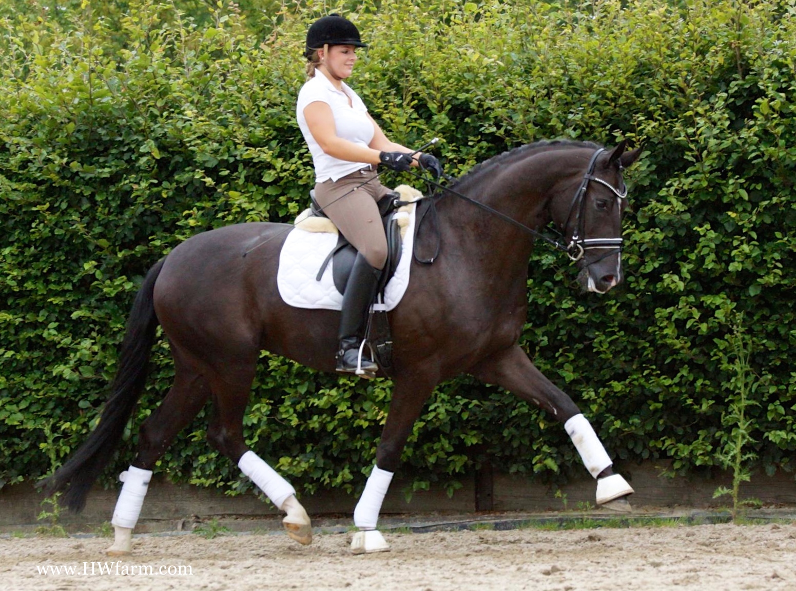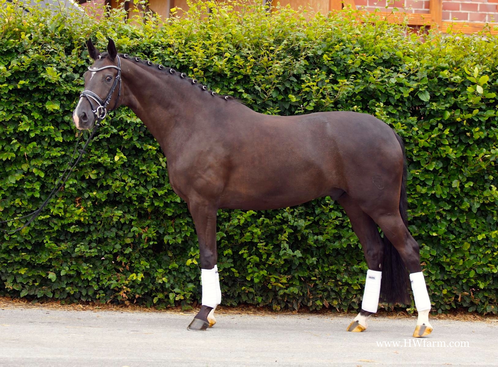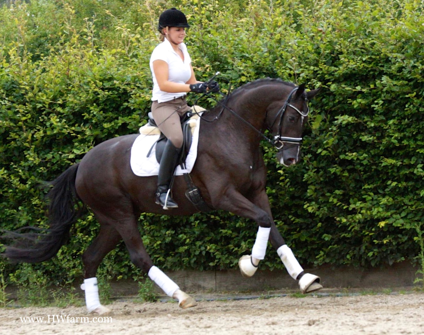 Sir Niro HW is a noble and elegant young gentleman. Sir Niro HW shows typical De Niro attributes, looks, movement, brains, temperament, he's the total package. He's truly coming after his dam sire. He will catch your attention with his beauty and elegance. He is a true eye candy, smart and willing to please. He has three very good, solid basic gaits and is super balanced and a willing worker bee. With his buoyant expression, everybody will remember him. He is is ready to impresses with his stunning, uphill canter, his trot swings nicely through his body with a soft back and an active hind leg as well as a free shoulder. His walk is always rhythmic, no matter if collected or extended walk. Everybody will love this one, the judges and the audience alike will be excited to see him. He is a horse willing to learn daily, very sweet and with his super work ethic and attitude, a horse that fascinates his rider every day of the year. He is so much fun, safe and reliable. Even kids bring him out to and back in from the pasture in Germany, a young horse, with a very big heart and an old soul. He's looking for his life partner to go out, have fun and compete. He is uncomplicated on the ground and under saddle. He's just a sweetheart. Sir Niro HW is suitable for an amateur, young rider, lady or professional alike to continue his training and go on from here. He is easy all around and behaves like a much older horse. He gets along well with other horses and loves human attention. He is very level headed. He wants to be in your pockets all the time and thrives for his personal grooming time and is on the lookout for cookies and carrots, oh - and apples! Loads and bathes, goes in the hot walker and is pleasant all around as well as a super partner. He is ready to go to his new owner and impress with his looks and potential for the upper level. This boy will go his way up the levels with ease and fun, hopefully you will be the one guiding him there and getting all the nice compliments. He is sweet, cuddly and has the quality stars are made of as well as a super pedigree, what more could you ask for? He is the partner you were looking for all along! He will enable you to fulfill your goals with all his abilities and athleticism. The main interest of HW Farm is, to find highly talented young horses in Germany for riders in the USA and all over the world. This is one phenomenal horse to remember, one that "has it all", buy him now and take him out to shows and clinics, he is ready for you. This one is a lover! X-rays on file Please contact Irene: Irene@HWfarm.com 239-772-7722 (ask for Irene, managing member of Horse Sales LLC) We take pride in answering every e-mail right away (at least at the same day) and to return each call. If you don't get a reply - please try again, our spam filter might have gotten in the way?!