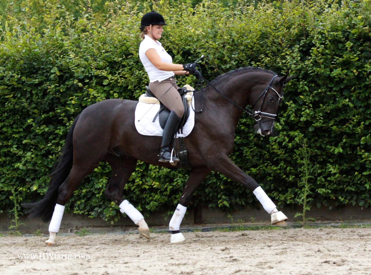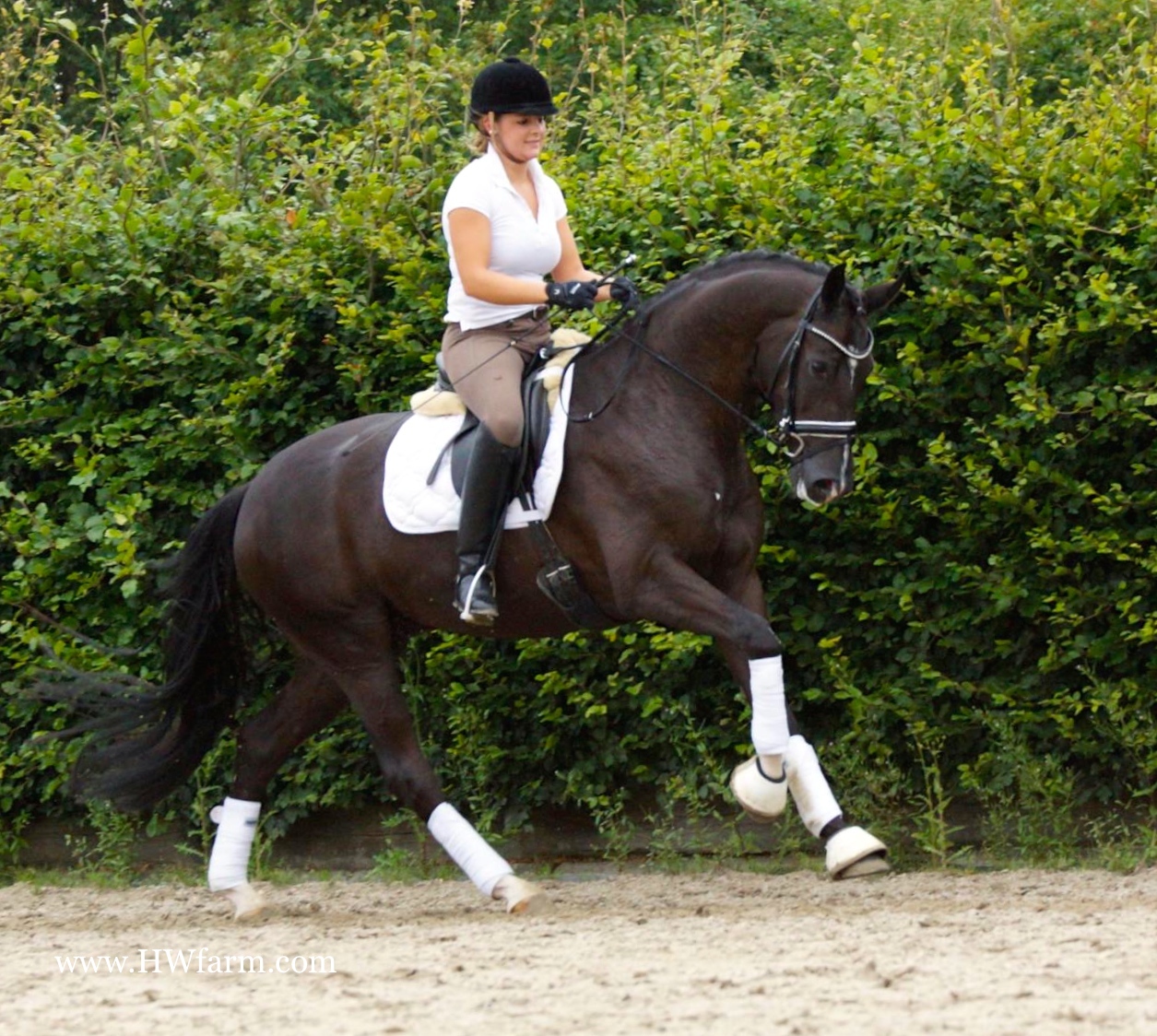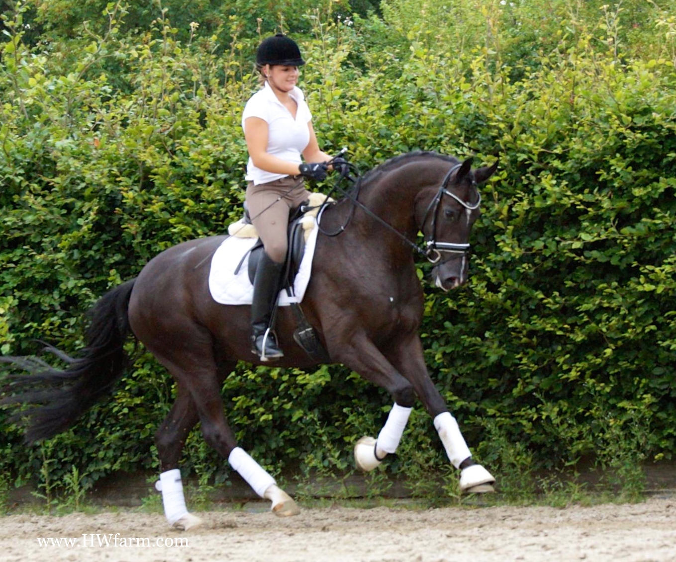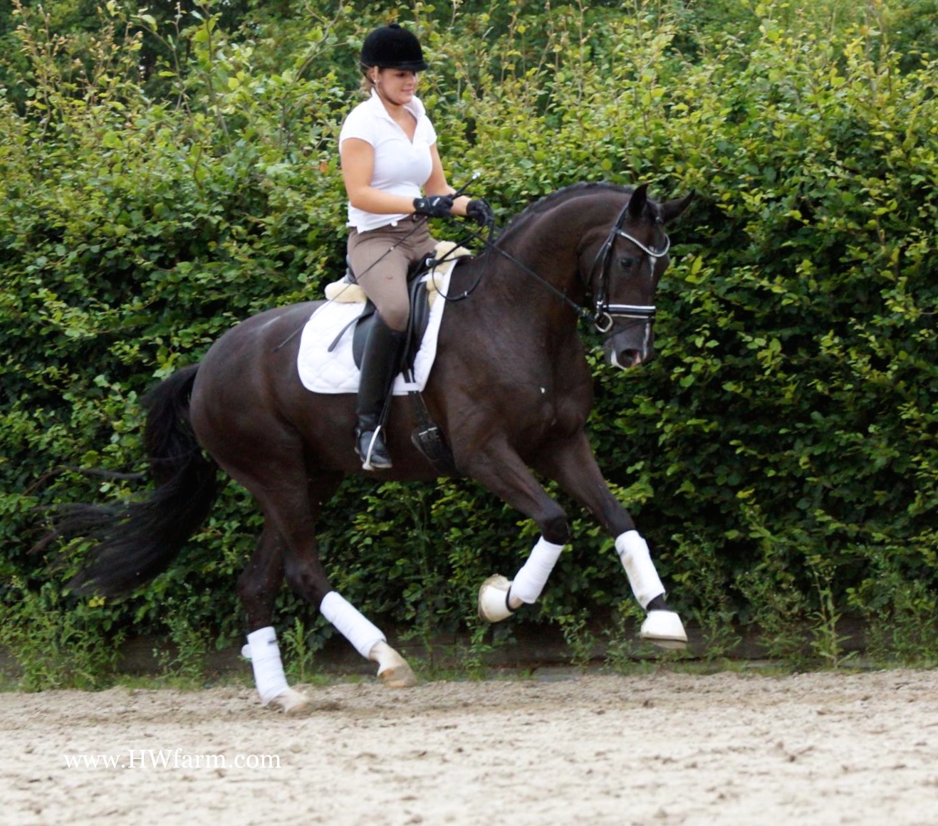 Sir Niro HW is a noble and elegant young gentleman. Sir Niro HW shows typical De Niro attributes, looks, movement, brains, temperament, he's the total package. He's truly coming after his dam sire. He will catch your attention with his beauty and elegance. He is a true eye candy, smart and willing to please. He has three very good, solid basic gaits and is super balanced and a willing worker bee. With his buoyant expression, everybody will remember him. He is is ready to impresses with his stunning, uphill canter, his trot swings nicely through his body with a soft back and an active hind leg as well as a free shoulder. His walk is always rhythmic, no matter if collected or extended walk. Everybody will love this one, the judges and the audience alike will be excited to see him. He is a horse willing to learn daily, very sweet and with his super work ethic and attitude, a horse that fascinates his rider every day of the year. He is so much fun, safe and reliable. Even kids bring him out to and back in from the pasture in Germany, a young horse, with a very big heart and an old soul. He's looking for his life partner to go out, have fun and compete. He is uncomplicated on the ground and under saddle. He's just a sweetheart. Sir Niro HW is suitable for an amateur, young rider, lady or professional alike to continue his training and go on from here. He is easy all around and behaves like a much older horse. He gets along well with other horses and loves human attention. He is very level headed. He wants to be in your pockets all the time and thrives for his personal grooming time and is on the lookout for cookies and carrots, oh - and apples! Loads and bathes, goes in the hot walker and is pleasant all around as well as a super partner. He is ready to go to his new owner and impress with his looks and potential for the upper level. This boy will go his way up the levels with ease and fun, hopefully you will be the one guiding him there and getting all the nice compliments. He is sweet, cuddly and has the quality stars are made of as well as a super pedigree, what more could you ask for? He is the partner you were looking for all along! He will enable you to fulfill your goals with all his abilities and athleticism. The main interest of HW Farm is, to find highly talented young horses in Germany for riders in the USA and all over the world. This is one phenomenal horse to remember, one that "has it all", buy him now and take him out to shows and clinics, he is ready for you. This one is a lover! X-rays on file Please contact Irene: Irene@HWfarm.com 239-772-7722 (ask for Irene, managing member of Horse Sales LLC) We take pride in answering every e-mail right away (at least at the same day) and to return each call. If you don't get a reply - please try again, our spam filter might have gotten in the way?!