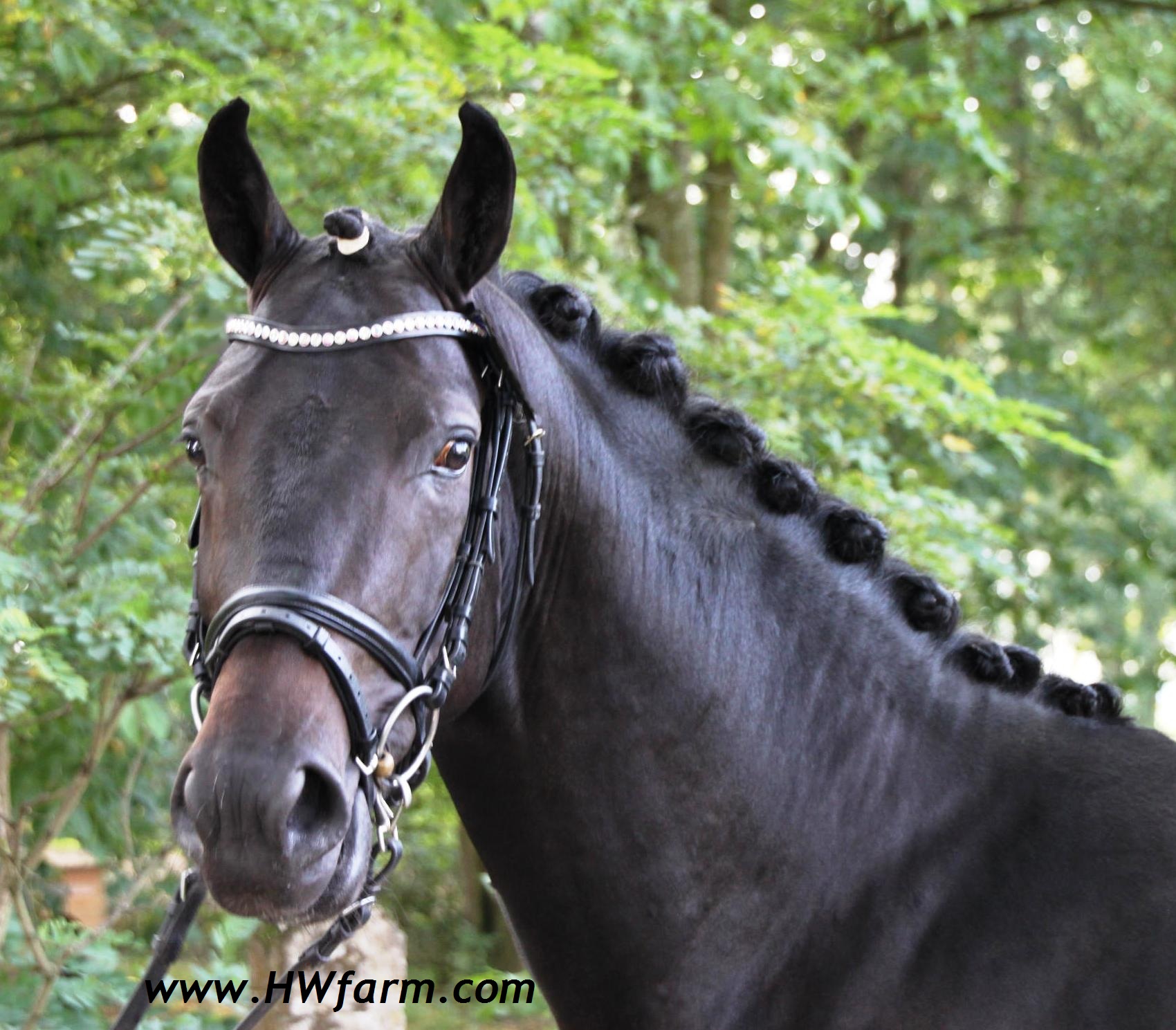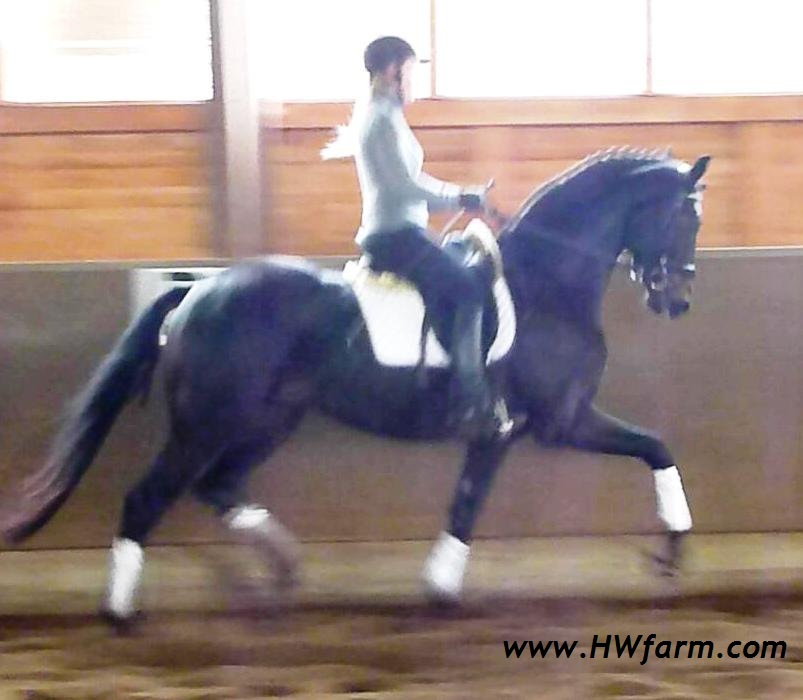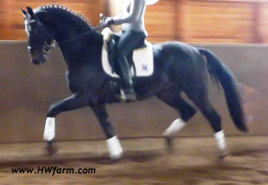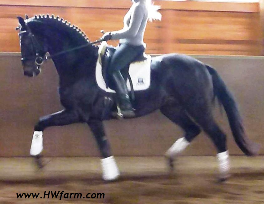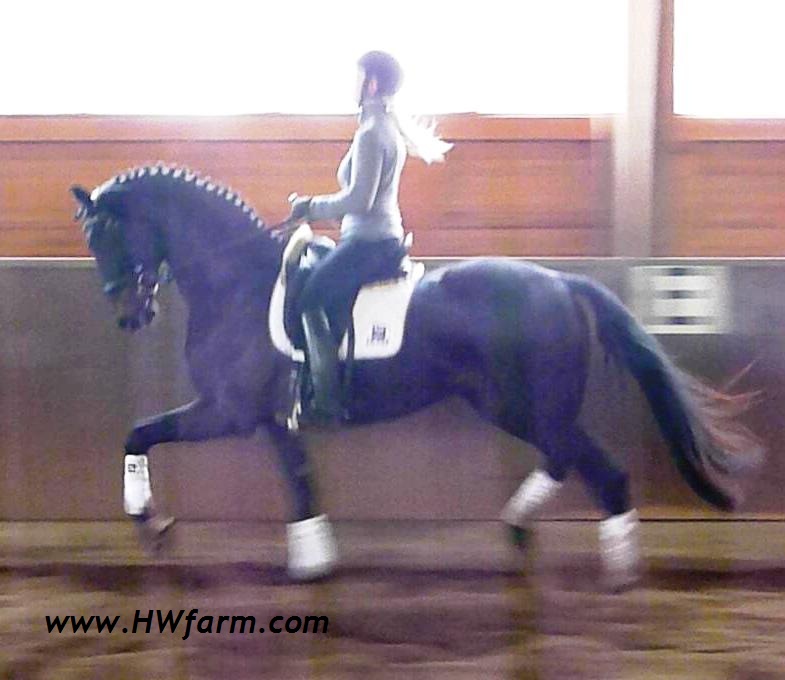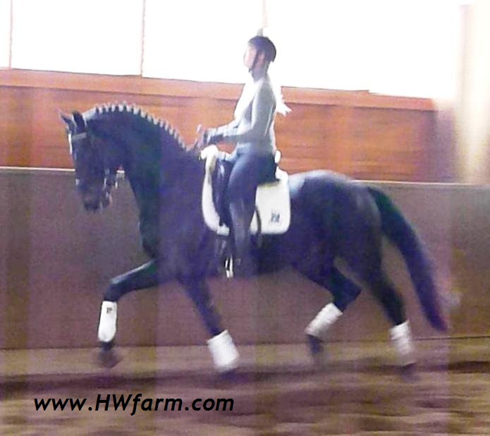 Special K, black/dark bay Oldenburg stallion by Sir Rubin (Sir Donnerhall/Rubinstein I) / Ronaldo, born in 2009, standing approximately 16.2 hands. Special K, is a high quality youngster and future FEI horse, by Sir Rubin. He was the impressive reserve champion of the Oldenburg stallion licensing with fascinating looks! Stunning son of Sir Donnerhall with the utmost elastic and rhythmical gaits. Extremely modern in type and oozing presence - he is revealing himself to be a first class dressage-prospect. With inspiring impulsion from the hind-quarters and impressive freedom of the shoulder - Sir Rubin possesses excellent traits for sophisticated dressage horse breeding. He belongs to the first crop of the reserve world champion and national champion Sir Donnerhall, who found his place in the breeding-arena so swiftly. He deserves to be on the breeders' shortlists: several premium stallions, highly priced auction horses - € 150.000 for a Westphalian stallion, € 46.000 for a foal - and numerous triumphant foals. The dam's sire Rubinstein I is regarded as one of the most reliable dressage producers worldwide, siring top-class horses such as world championship team-gold horse Renoir Unicef, Europeans participant Rioletto/Princess Nathalie zu Sayn-Wittgenstein and an almost countless number of licensing champions as well as national champions. Their combined winnings amount to almost two million Euros. Weltmeister and Furioso II top off the pedigree as proven performance sires. Dam Ratine produced the advanced dressage horses Rafalca and Don Rubino. Descending from the sucessful dam line of the Salome, Sir Rubin will convert the chances he has been given into great success. Special K is one of a kind. He is a horse of unbelievable quality and super fancy mover. He has the elasticity everybody is looking for. He has a free shoulder, a huge grundschwung and swings nicely through his back. This extremely talented stallion has international potential. He is dark bay and beautiful. He is a very sweet gentleman that has a quiet nature and the talent to do it all. He is very rideable and trustworthy. The girl in the video loves to ride him and can't wait to get on his back as often as possible. He is easy to handle and loves his personal grooming time and puts his head right in your lap, striving for attention. This boy will go far in the dressage ring, he is your ticket to the top! Buy him now and show him yourself in the 4 year old Young Horse Championships in 2013 and in addition you could breed with him if you wish and produce your own quality offspring! X-rays on file. Please contact Irene: Irene@HWfarm.com 239-772-7722 (ask for Irene, managing member of Horse Sales LLC) We take pride in answering every e-mail right away (at least at the same day) and to return each call. If you don't get a reply - please try again, our spam filter might have gotten in the way?!