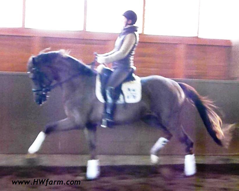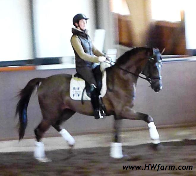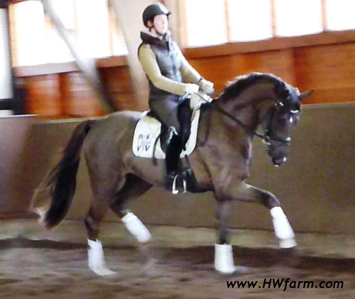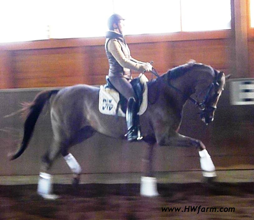 Spirit, liver chestnut Oldenburg stallion by Sir Donnerhall/Fürst Heinrich, born in 2009, standing approximately 16.1 hands. Spirit, super fancy and beautiful stallion by Sir Donnerhall. Sir Donnerhall is the exclusive Young Horse National Champion and Reserve World Champion Producer of the Reserve Approval Champion and premium stallions as well as highly demanded foals. Wherever he goes, Sir Donnerhall casts a spell. His young but already exciting career marked by numerous highlights was crowned in 2007 when seven young stallions out of his first crop were approved. The highly acclaimed Sir Rubin was rewarded the title "Reserve Champion" of the approvals in Vechta. At the Westphalian approvals a handsome Sir-Donnerhall was sold for € 150,000, at the Oldenburg approvals another one achieved a bid of € 100,000. His foals are highly sought after: Feuertaufe sold for € 31,000 in Vechta, Ruhm und Ehre for € 30,000 and another colt sold for € 20,000. Sir Donnerhall produced the reserve Champion colt at the 2007 German Foal Championships and another filly, who achieved an outstanding 3rd place. In 2006 he celebrated a superior victory in the five-year-old division at the national young horse championships. In 2003 he was honoured with a 1c premium and won his 30 day test scoring in all three gaits with top marks between 9.0 and 10.0. The test riders awarded him with a 9.5 for rideability. In his 70 test he did even better and scored a dressage index of 163 points - a score never achieved by a stallion before. After winning the qualifier for the finals of the world championships at the age of five with a score of 9.2, he came second overall. A masterpiece has been created with Sir Donnerhall by joining together the two exceptional producers Sandro Hit and Donnerhall. Sir Donnerhall's dam Contenance D excelled at the Oldenburg mare show and is a descendant of an exquisite mare line. The coveted blood line of the thoroughbred Grundymann xx can be found in the fourth generation. Sir Donnerhall - stallions like him are hard to find. Spirit is a dream to come true. He is ridden by the young lady in the video and shows himself reliable and very well behaved, she truly loves him and can't wait to get on his back every day. He is easy to manage on the ground as well as under saddle and comes with great rideability, willingness to please and he is light in the hand. His trot work, especially his extended trot is phenomenal, his gaits are truly breathtaking and he is surely one of a kind. He has a great motor, free shoulder and much airtime and is fun to ride every time out. He will draw the attention to himself and his rider at the horse shows and judges and the audience will remember this guy no matter if you are competing or if you'll take him out to clinics and school him for his future carrier. He was started very correctly and early in life and as you can see in the video, he is easy enough for a young woman to ride even at his very young age and is a horse for everybody alike, for sure a great addition to a show barn. He will collect the ribbons for you with his great attitude and judges will remember his fancy expression. He is definitely the quality for a professional but easy enough for an amateur as well. He is ready to go to his new owner and impress with his looks and potential for the upper levels. This boy will go his way up the levels with ease and fun, hopefully you'll be the one guiding him there and getting all the nice compliments you are looking for. He loads, stands for the farrier and he is a gentleman all around. Here is your chance to buy a high quality stallion and bring him along all the way to Grand Prix! Buy him now and show him yourself in the 4 year old Young Horse Championships in 2013 and in addition you could breed with him if you wish and produce your own quality offspring and influence the future riding horse industry! X-rays on file. Please contact Irene: Irene@HWfarm.com 239-772-7722 (ask for Irene, managing member of Horse Sales LLC) We take pride in answering every e-mail right away (at least at the same day) and to return each call. If you don't get a reply - please try again, our spam filter might have gotten in the way?!