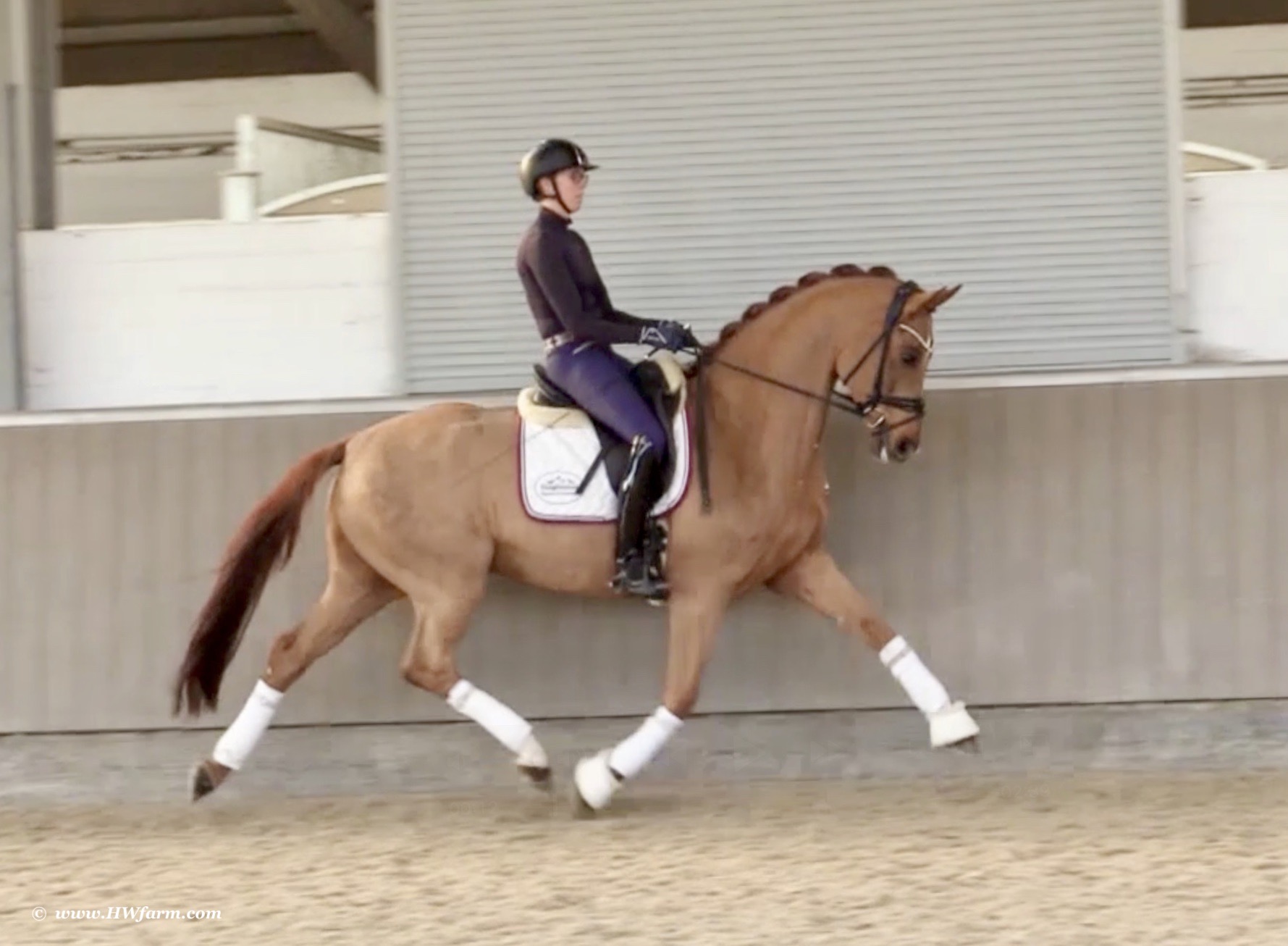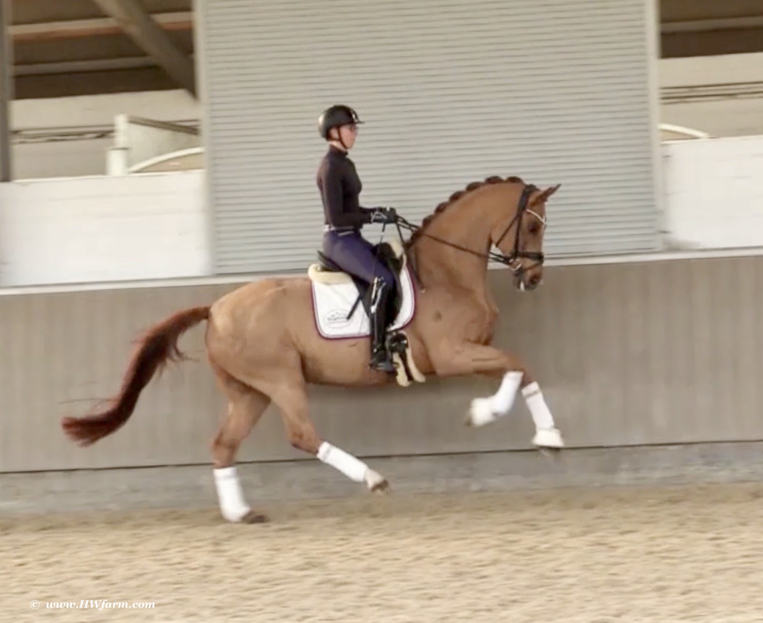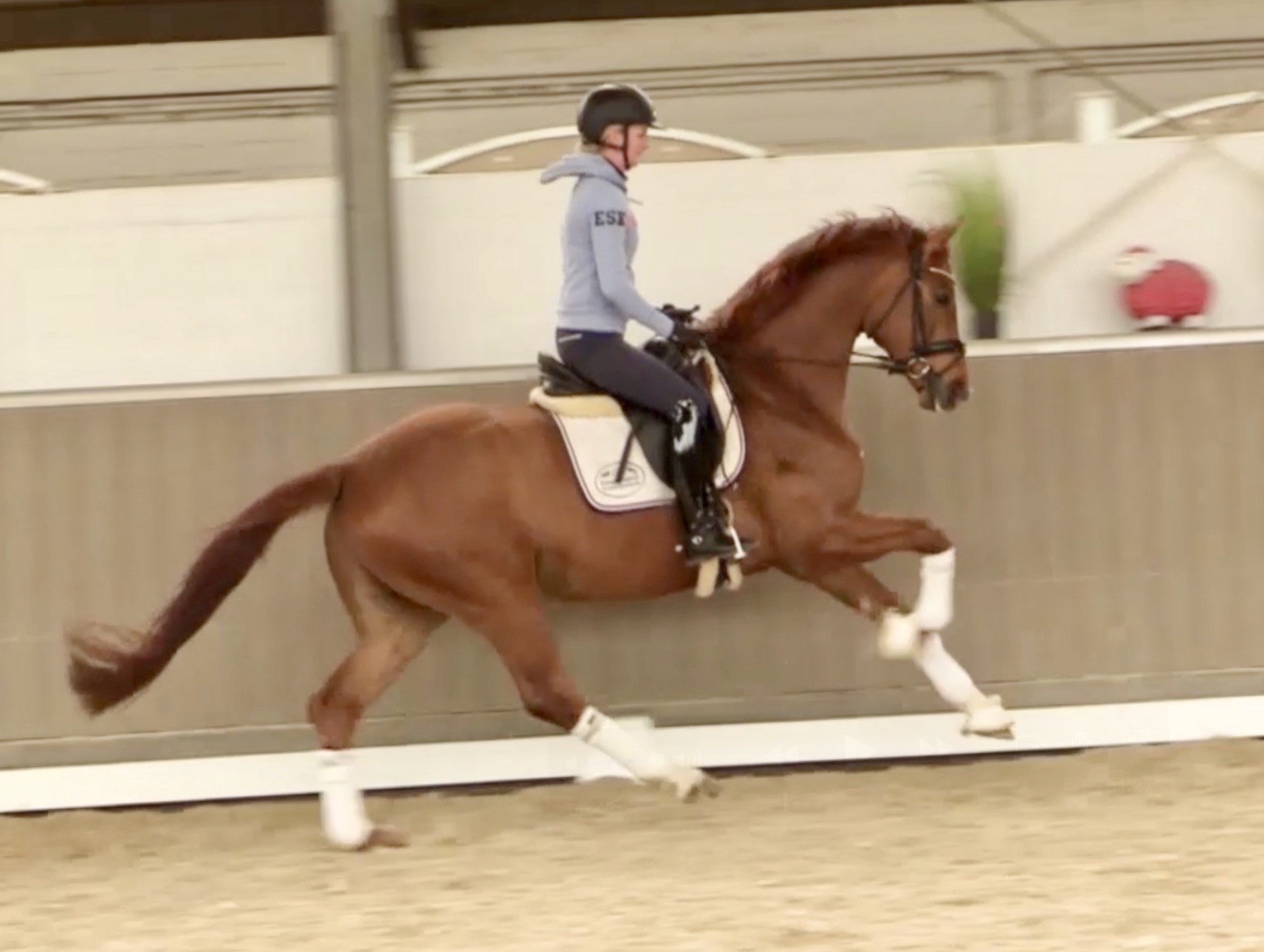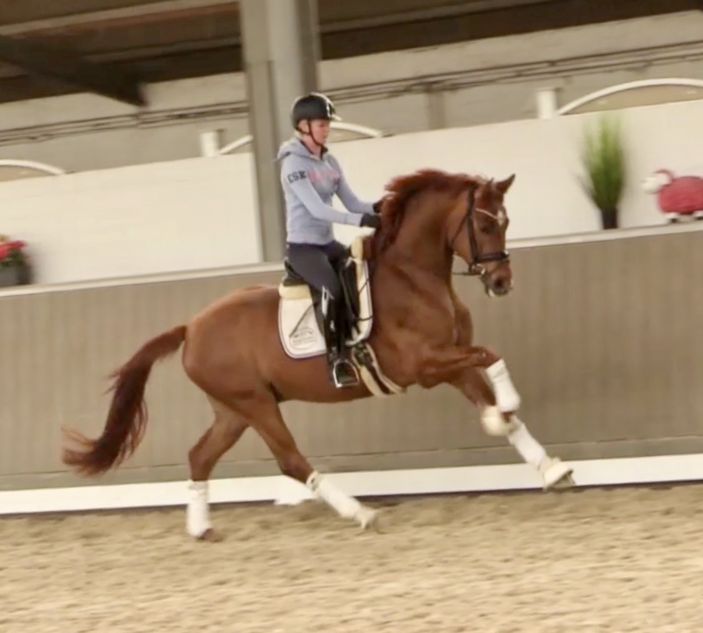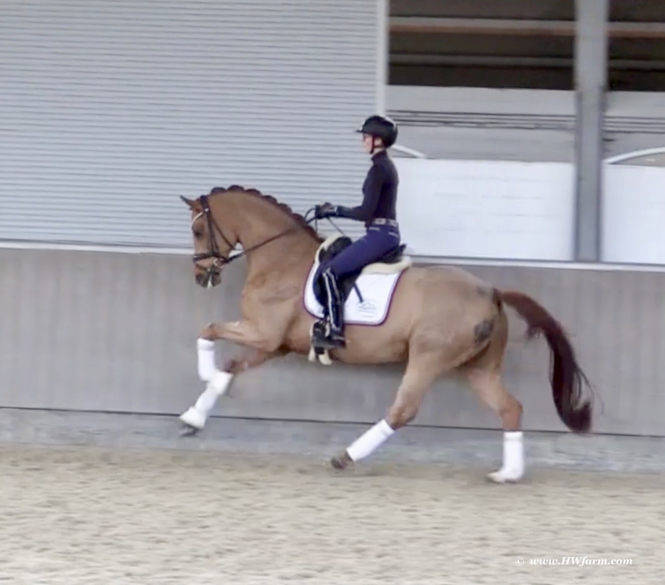 Synergy HW, chestnut Westphalian gelding, by BundesChampion, Vice World Champion Secret/BundesChampion Quaterback, born in 2018, standing approximately 164 cm or 16 and 1/2 hands. Synergy HW, by Secret, the outstanding National German 6yo Champion, plus at the World Championships for young dressage horses Ermelo 2019 - Secret - a truly exceptional horse, became Vice World Champion! Secret and his rider Jessica Lynn Thomas delivered a spectacular first round in the qualification of the five-year-old dressage horses. They received an 8.8 for the permeability, the step 9.5, the gallop 9.7, the per-spective 9.8 and even 9.9 for the trot. All in all, this gave a total result of 9.54 points and the victory was not to be taken from the two. In the final, Secret had to give up just under 0.02 points, despite a further increase. The pair won the silver medal of the five-year-old dressage horses with 9.64 points. The judge's comment: "A fantastic horse! Always in the flow, always easy. It is a pleasure to judge such a horse. " In terms of breeding, the descendants of the Secret also seamlessly linked to his father's success in 2019. Country after country was heard from his descendants. In the far north, in Schleswig-Holstein, Secret set one of the price peaks at the Glanz and Gloria auction in Delingsdorf with € 21,000. In Verden, Status Quo was one of the most sought-after youngsters at € 25,000. With the appropriate name Somebody to Dance, Secret was also among the price peaks in Münster on the occasion of the Westphalia Week. In Vechta, Serge Gainsbourg triumphed as the most expensive foal in 2019 with a hammer price of 150,000 euros. The price structure was followed by Secret Emperor, another son of the Secret. This went to Aus-tria for € 42,000. And also in the south of Germany in Nörtlingen, it was once again a subsidiary of our Secret, which was one of the top prices of the auction with a hammer price of € 25,000. The fact that his offspring are also in demand abroad was demonstrated by a filly from Secret, which took the reserve winner classification of dressage-stressed filly at the Swiss Sport Foal Championships and then found a new owner with a surcharge of 28,000 francs (about 25,000 €). In the Netherlands it was the colt with the appropriate name - One to Re-member- that became the top foal in the auction at € 22,000 The highlight of the day comes from Schwaiger and bears the appropriate name Sensation, from Secret - Fürst Grandios. A colt with a value of 9.67 (type / stature: 10, exterior / correctness: 9, movement: 10) really leaves nothing to be desired and makes words superfluous. "This is how the Austrian Horse Breeding Association described its winning foal 2019. Secret easily met the expectations placed on him. He completed his 14-day test in Schlieckau with a dressage final score of 9.5. He was able to shine again at the Bundeschampionat in Warendorf, where he was only named Vice Bundeschampion due to the rider marks. No more words need be said about father Sezuan, the celebrated triple world champion of young dressage horses. The mother line of the Secret, line 853 of the Sudette, produced numerous internationally represented performance horses. Already 38 other licensed stallions originate from this dam line. As the dam's sire, we find St. Moritz, which has only been well remembered at our station, and which, due to the fact that it was too short to work at Gestüt WM, produced a whole range of interesting, sporty and successful offspring. The maternal pedigree is rounded off by the proven successful combination of the Celler state stud stallions Rotspon, Argentan, Woermann and Lugano. Another flagship of this mother line is the Bundeschampion of five-year-old dressage horses and world champion of six-year-old dres-sage horses Lordwoods Dancing Diamond. Due to the genetic blood combination of the top class in his flagship pedigree, coupled with the high level of commitment of this rough dia-mond, we offer today's savvy dressage horse lovers, something truly special. Synergy HW's dam sire is is the BundesChampion Quaterback, it's the same dam who produced the BundesFoalChampion Ferdinand HW and She's Magic HW. Quaterback is a stallion that seems like he could only come from another planet - with his light-footed, brilliant movement and perfect cadence, all eyes become riveted on Quaterback when he appears. his stallion career by being named Champion of his licensing in Neustadt/Dosse in 2005. In 2006, after the Bundeschampionate, he went on to win his 30 day test at Neustadt/Dosse with outstanding scores: Int. 9.0 Trot 9.25 Canter 9.75 Walk 7.63 Riding qualities 9.75 Jumping 7.75 He was the radiant Bundeschampion of the three year old riding horses in 2006 with the highest scores for his trot and canter. The test riders in Warendorf even gave him this dream score of 10.0. Prior to this test, he had won several tests for young riding horses. He was also the winner of his 30-day test with a final score of 9.14 in dressage, an 8.43 for jumping and an overall score of 8.88. As if it were not enough to have unbelievably dynamic movement, he was also blessed with an outstanding type. Quaterback comes from one of the most successful mare lines of modern day. His dam Passionata is a half-sister of the unforgettable World Champion and double Bundeschampion, Poetin. Her full brothers Samba Hit I , Samba Hit III to V put on convincing presentations at the Bundeschampionate. Samba Hit I was also a finalist in the 2006 Nürnberg Burgpokal and the sire of Samba's Diamond who became the Champion Stallion of the licensing in Berlin-Brandenburg and Sachsen-Anhalt that same year. Quaterback's successful advanced (S) level sire Quaterman also participated in several Bundeschampionats and is deemed one of the best sires for passing on good movements in the new German States. The grandsire Quando-Quando took 15th place at the World Championships in Aachen in 2006 under Kristy Oatle