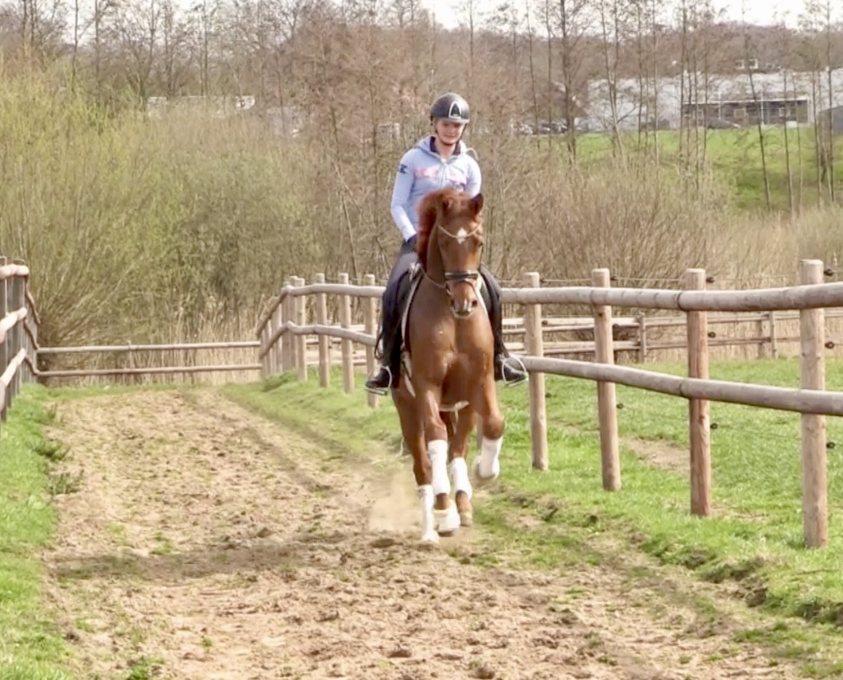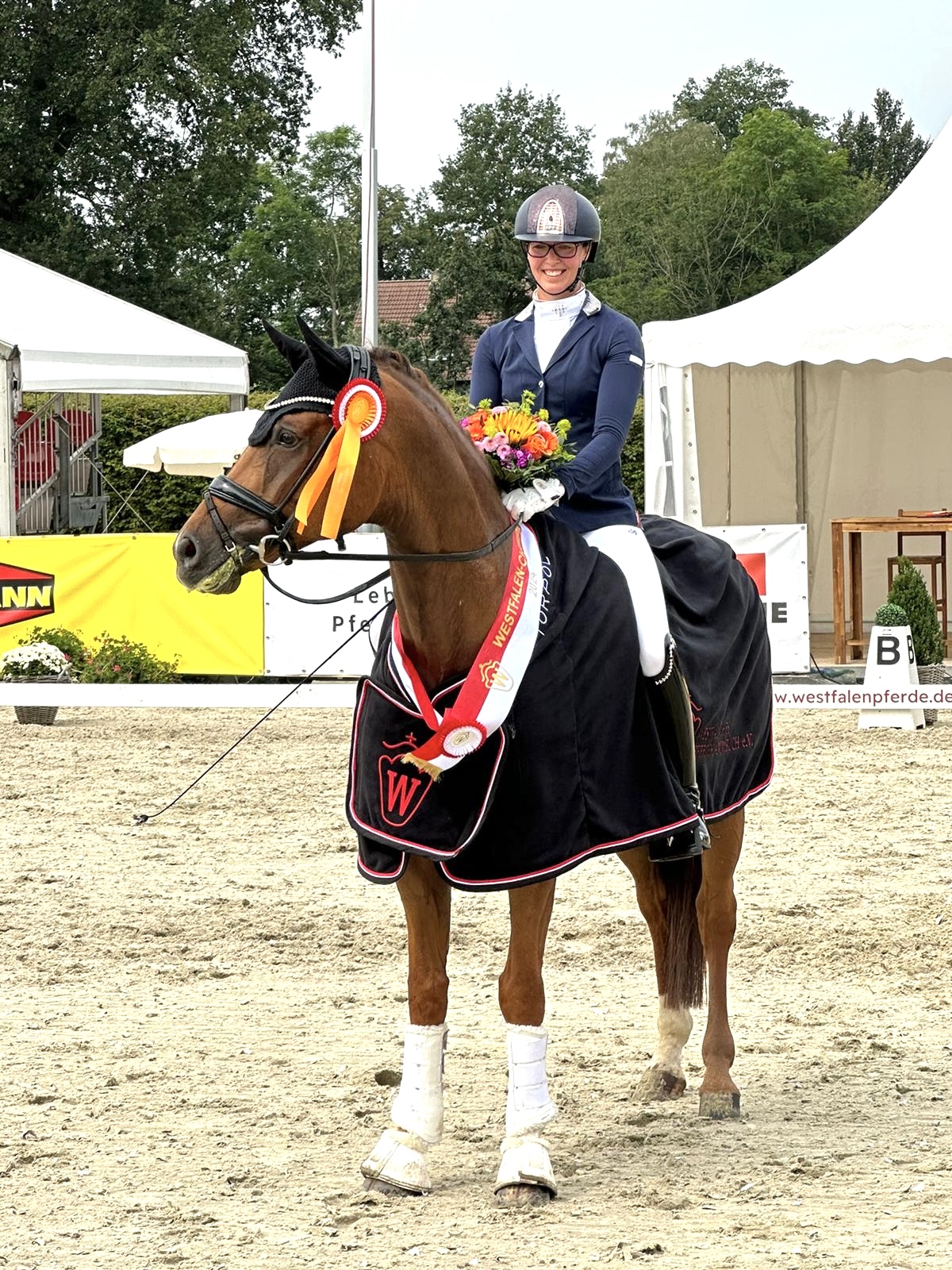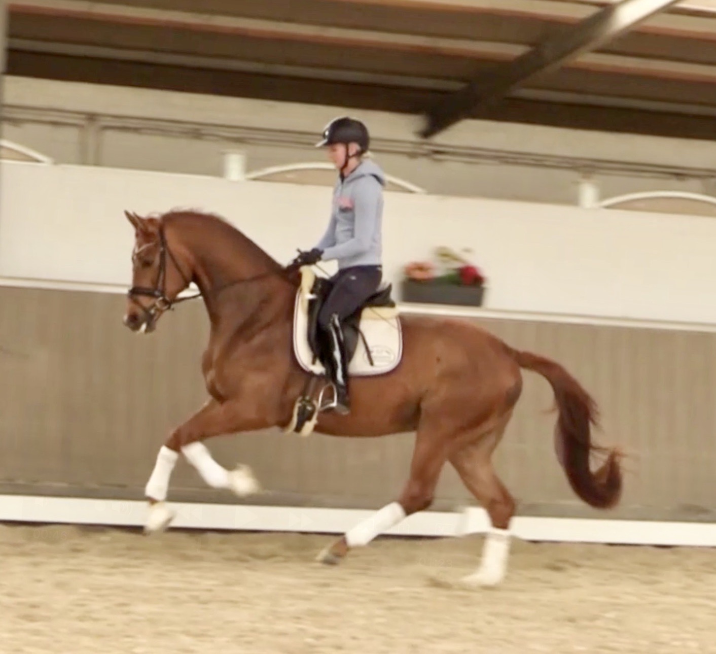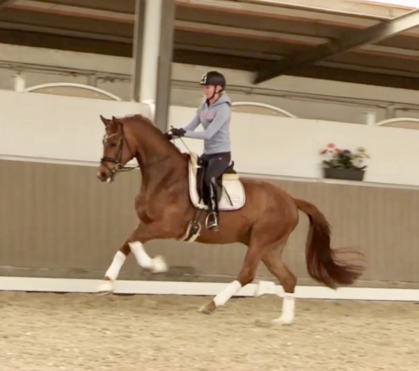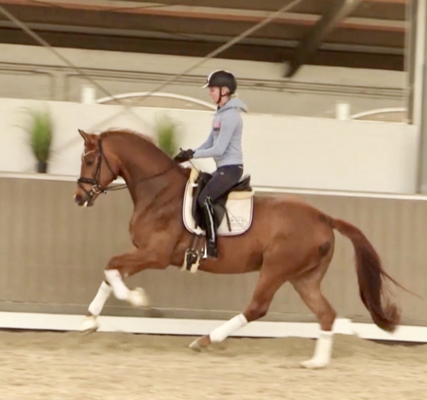Synergy HW, chestnut Westphalian gelding, by BundesChampion, Vice World Champion Secret/BundesChampion Quaterback, born in 2018, standing approximately 164 cm or 16 and 1/2 hands. Synergy HW, by Secret, the outstanding National German 6yo Champion, plus at the World Championships for young dressage horses Ermelo 2019 - Secret - a truly exceptional horse, became Vice World Champion! Secret and his rider Jessica Lynn Thomas delivered a spectacular first round in the qualification of the five-year-old dressage horses. They received an 8.8 for the permeability, the step 9.5, the gallop 9.7, the per-spective 9.8 and even 9.9 for the trot. All in all, this gave a total result of 9.54 points and the victory was not to be taken from the two. In the final, Secret had to give up just under 0.02 points, despite a further increase. The pair won the silver medal of the five-year-old dressage horses with 9.64 points. The judge's comment: "A fantastic horse! Always in the flow, always easy. It is a pleasure to judge such a horse. " In terms of breeding, the descendants of the Secret also seamlessly linked to his father's success in 2019. Country after country was heard from his descendants. In the far north, in Schleswig-Holstein, Secret set one of the price peaks at the Glanz and Gloria auction in Delingsdorf with € 21,000. In Verden, Status Quo was one of the most sought-after youngsters at € 25,000. With the appropriate name Somebody to Dance, Secret was also among the price peaks in Münster on the occasion of the Westphalia Week. In Vechta, Serge Gainsbourg triumphed as the most expensive foal in 2019 with a hammer price of 150,000 euros. The price structure was followed by Secret Emperor, another son of the Secret. This went to Aus-tria for € 42,000. And also in the south of Germany in Nörtlingen, it was once again a subsidiary of our Secret, which was one of the top prices of the auction with a hammer price of € 25,000. The fact that his offspring are also in demand abroad was demonstrated by a filly from Secret, which took the reserve winner classification of dressage-stressed filly at the Swiss Sport Foal Championships and then found a new owner with a surcharge of 28,000 francs (about 25,000 €). In the Netherlands it was the colt with the appropriate name - One to Re-member- that became the top foal in the auction at € 22,000 The highlight of the day comes from Schwaiger and bears the appropriate name Sensation, from Secret - Fürst Grandios. A colt with a value of 9.67 (type / stature: 10, exterior / correctness: 9, movement: 10) really leaves nothing to be desired and makes words superfluous. "This is how the Austrian Horse Breeding Association described its winning foal 2019. Secret easily met the expectations placed on him. He completed his 14-day test in Schlieckau with a dressage final score of 9.5. He was able to shine again at the Bundeschampionat in Warendorf, where he was only named Vice Bundeschampion due to the rider marks. No more words need be said about father Sezuan, the celebrated triple world champion of young dressage horses. The mother line of the Secret, line 853 of the Sudette, produced numerous internationally represented performance horses. Already 38 other licensed stallions originate from this dam line. As the dam's sire, we find St. Moritz, which has only been well remembered at our station, and which, due to the fact that it was too short to work at Gestüt WM, produced a whole range of interesting, sporty and successful offspring. The maternal pedigree is rounded off by the proven successful combination of the Celler state stud stallions Rotspon, Argentan, Woermann and Lugano. Another flagship of this mother line is the Bundeschampion of five-year-old dressage horses and world champion of six-year-old dres-sage horses Lordwoods Dancing Diamond. Due to the genetic blood combination of the top class in his flagship pedigree, coupled with the high level of commitment of this rough dia-mond, we offer today's savvy dressage horse lovers, something truly special. Synergy HW's dam sire is is the BundesChampion Quaterback, it's the same dam who produced the BundesFoalChampion Ferdinand HW and She's Magic HW. Quaterback is a stallion that seems like he could only come from another planet - with his light-footed, brilliant movement and perfect cadence, all eyes become riveted on Quaterback when he appears. his stallion career by being named Champion of his licensing in Neustadt/Dosse in 2005. In 2006, after the Bundeschampionate, he went on to win his 30 day test at Neustadt/Dosse with outstanding scores: Int. 9.0 Trot 9.25 Canter 9.75 Walk 7.63 Riding qualities 9.75 Jumping 7.75 He was the radiant Bundeschampion of the three year old riding horses in 2006 with the highest scores for his trot and canter. The test riders in Warendorf even gave him this dream score of 10.0. Prior to this test, he had won several tests for young riding horses. He was also the winner of his 30-day test with a final score of 9.14 in dressage, an 8.43 for jumping and an overall score of 8.88. As if it were not enough to have unbelievably dynamic movement, he was also blessed with an outstanding type. Quaterback comes from one of the most successful mare lines of modern day. His dam Passionata is a half-sister of the unforgettable World Champion and double Bundeschampion, Poetin. Her full brothers Samba Hit I , Samba Hit III to V put on convincing presentations at the Bundeschampionate. Samba Hit I was also a finalist in the 2006 Nürnberg Burgpokal and the sire of Samba's Diamond who became the Champion Stallion of the licensing in Berlin-Brandenburg and Sachsen-Anhalt that same year. Quaterback's successful advanced (S) level sire Quaterman also participated in several Bundeschampionats and is deemed one of the best sires for passing on good movements in the new German States. The grandsire Quando-Quando took 15th place at the World Championships in Aachen in 2006 under Kristy Oatle