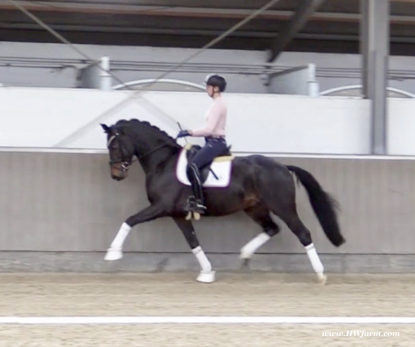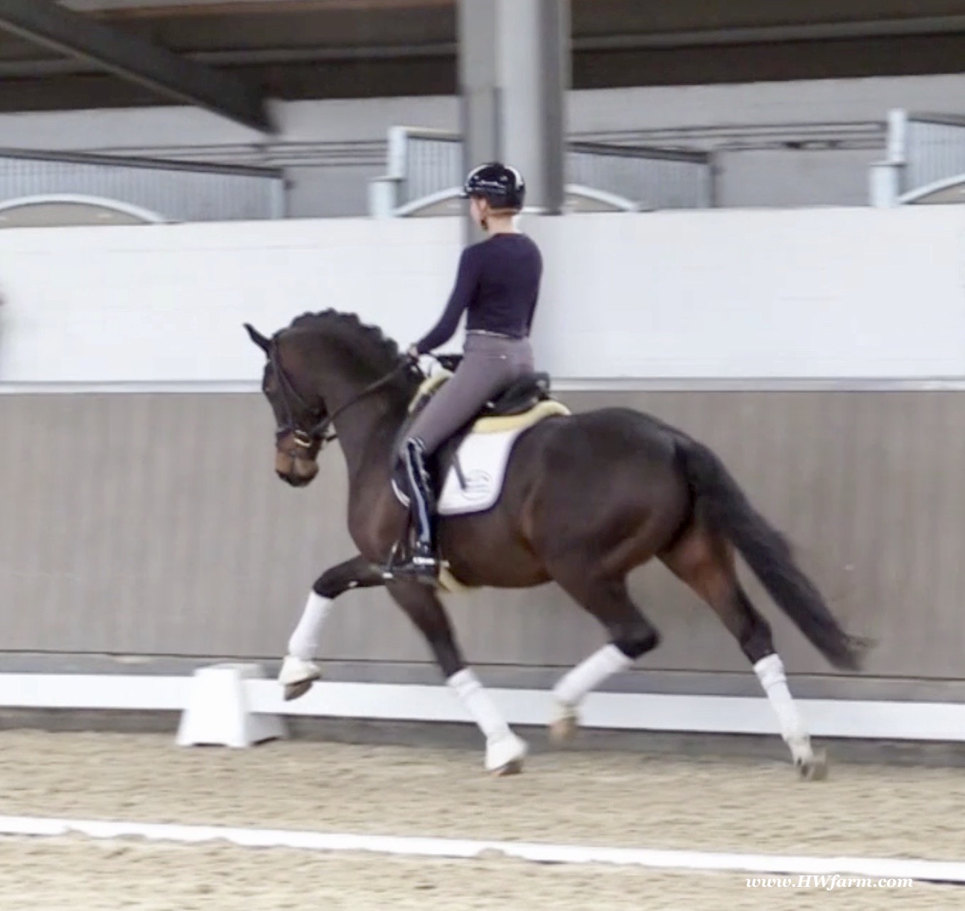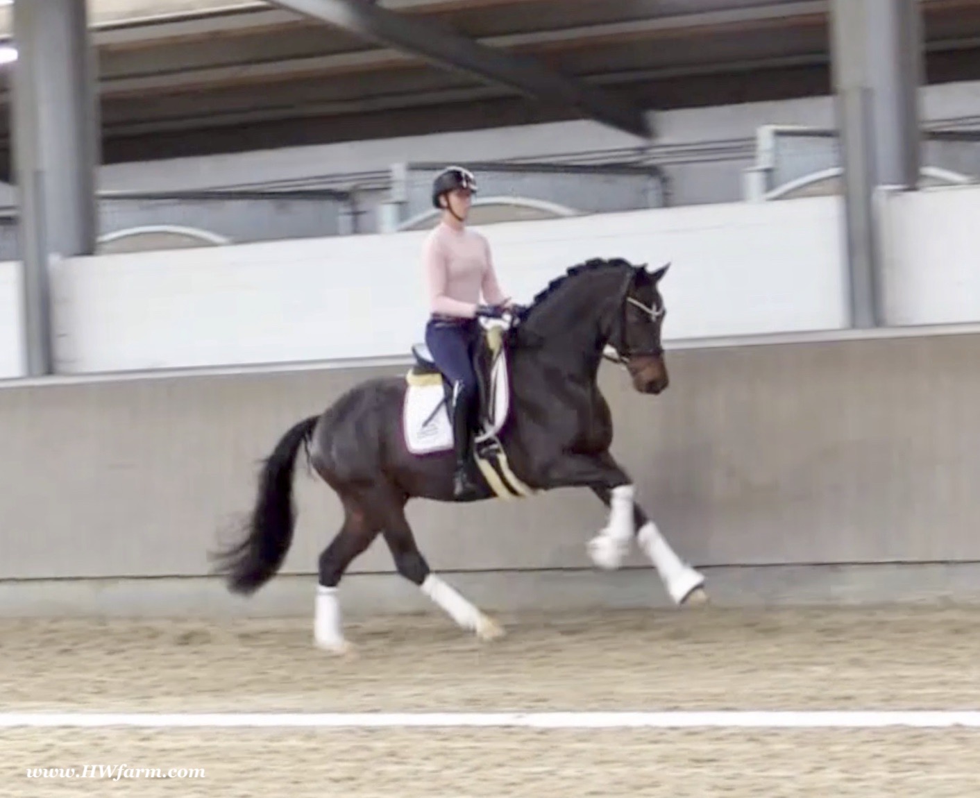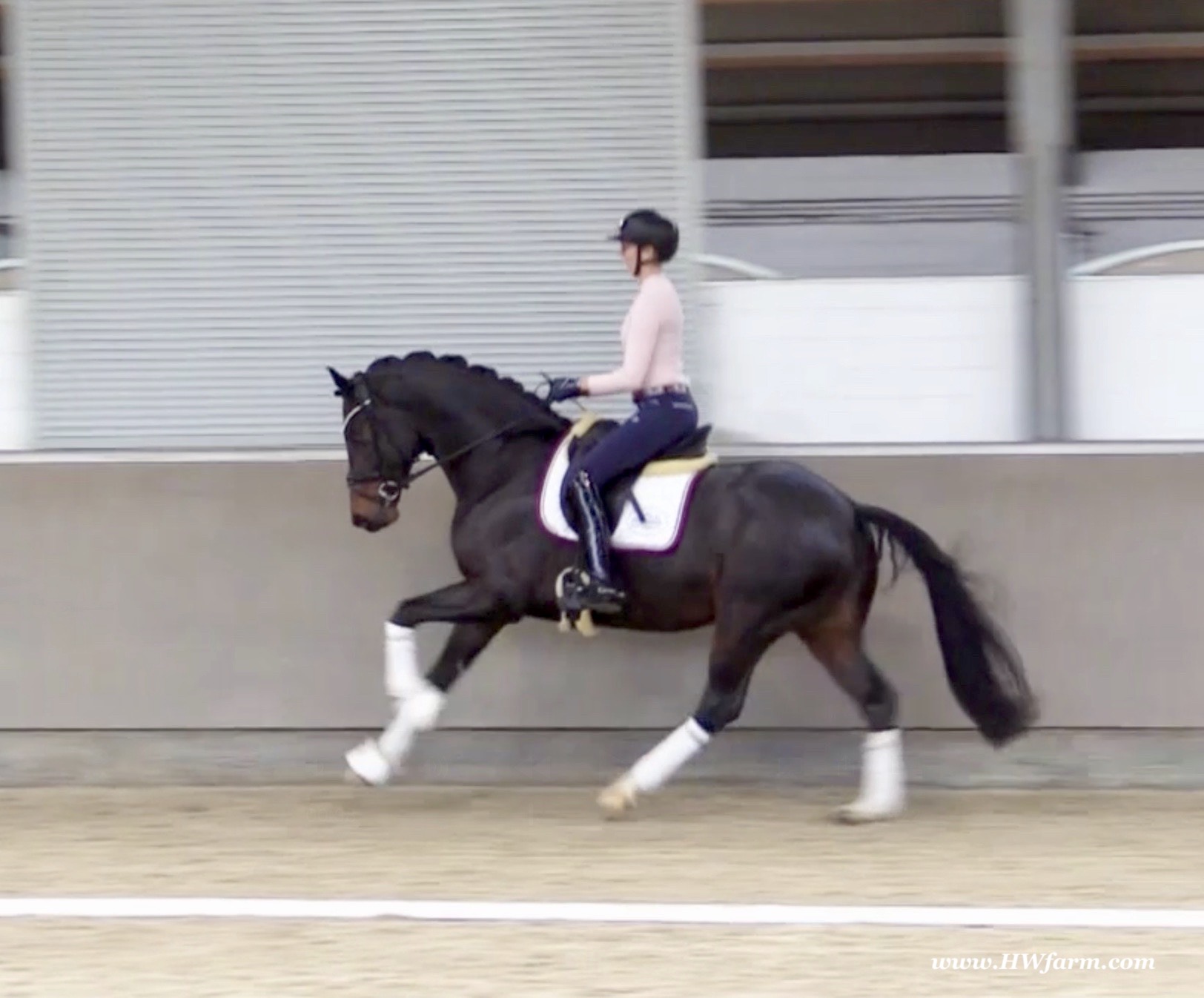 Valentin HW, bay Westphalian gelding, by Valverde/Fürstenball, born in 2019, standing approximately 164 cm or 16 and 3/4 hands. Valentin HW is sired by the famous Valverde: Valverde NRW added to his collection of titles last year with his third triumph at the Westphalian Championships. With his trainer Eva Möller, he received a 9.0 for each of his three gaits and the overall impression! At the German Championships, he convincingly won the qualifier for the final (9.0) and also received high individual scores in the final: for the "super energetic trot, which is incredibly powerful, dynamic and uphill" and for the walk "with fantastic rhythm and stretch" each a 9.0. Commentator Dr. Dietrich Plewa also praised Valverde's "canter with three clear beats and flying changes with a clear jump through the body and a lot of expression" and attested to Valverde's "outstanding talent". He finished fourth with an overall score of 8.5 against very strong competition. He was then selected to represent Germany at the World Championships for young dressage horses, however, this championship could not take place due to the coronavirus pandemic. Valverdestarted his career in 2016 as Westphalian Champion Stallion and the following year completed his stallion performance test in Denmark as the third best dressage stallion with a total score of 9.23 (10 for walk, character and conformation). Valverde then won the gold medal at the Westphalian Championships and the silver medal at the German Championships for four-year-olds. In 2019, he was once again Westphalian Champion (overall 9.22, walk 10), he narrowly missed the medal places and came fourth at the World Championships for young dressage horses and won the German Championships with an overall score of 9.3. Valverde produced numerous show winners and coveted auction foals from his first crops of foals. Victor Hugo was auctioned for 36,500 Euros in Vechta. Valuable became top price of the 3rd Helgstrand-Schockemöhle Online Auction, selling for 79,000 Euros. His sire Vitalis was Champion Foal in the Netherlands in 2007, Reserve Champion of the NRW licensing in 2009, winner of the dressage index of his stallion performance test in 2010, placed at the World Championships and Pavo Cup final in 2012, Champion in the USA and again qualified for the World Championships with a record number of points in 2013 and victorious in the International Small Tour at only seven years old in 2014. He came back to Germany and, in 2016, ridden by Isabel Freese, he won the Burg Cup Final in Frankfurt and the "Stallion of the year" competition at Inter I level at the World Championships in Ermelo/NED. His dam St.Pr.St. Amicella was successful up to Inter I. His dam's sire Ampère, KWPN Champion Stallion and champion of his stallion performance test, has produced over 60 stallions approved for breeding in the Netherlands and in Germany, including the Grand Prix winner Abegglen FH NRW/Victoria Max-Theurer/AUT, the Louisdor Prize finalist Aperol/Emma Kanerva/FIN, First Ampère, who came sixth at the World Championships for young dressage horses and our KWPN Champion Stallion, Franklin. He has produced over 50 state premium mares, including the Westphalian Champion Mare Anky. Numerous auction top prices have also been recorded. His grand-dam St.Pr.St. First Fina is the half-sister of Enrico (by Ehrentusch), who was successful in Grand Prix, and of further successful dressage horses. She produced the licensed stallion Mister Diamond (by Sir Donnerhall I). First Final, Reserve Champion of the Oldenburg licensing in 2005, who appears in the third generation, combines the dressage World Champion Fürst Heinrich and the legendary stallion Argentinus in his pedigree. He was successful up to advanced (S) level. The half-blood stallion Laomedon, Delphi, who was successful in Grand Prix, and Der Clou, who won his stallion performance test, complete his pedigree in the most excellent way. Valentin HW's dam sire is the stunning Fürstenball, who produces world-class horses, from foal shows to the Olympic arena. Fürstenball's offspring are always among the best. Hardly any stallion can offer such continuity in hereditary performance. He has produced 90 licensed stallions, around 170 premium mares and over 80 horses successful at advanced (S) level, led by Heiline's Danciera/Carina Cassøe Krüth/DEN, placed fourth by team and seventh individually at the Olympics, as well as five German Champions, amongst them Feine Bella, who was also unbeatable in the Westphalian Championships and at her mare show, and numerous fantastic auction horses, such as Fürst Bayram OLD/Frederic Wandres, 1.7 million Euro price sensation of the P.S.I. Auction 2021, reigning Oldenburg Regional Champion and eleventh at the German Championships for young dressage horses. Torveslettens Fifty-Fifty/Ekaterina Podlytkina/RUS, Friesen Ball/Andrea Timpe/GER, Filigrano Marone/Thomas Wagner/GER, placed eleventh in the Louisdor Prize final, Four Seasons FRH/Alexa Westendarp/GER, double European Young Riders Championship gold medallist, and First Class/Maike Mende/GER, winner of the Oldenburg Derby Dressage Cup, have already established themselves at Grand Prix level. Frau Holle was silver medallist at the German Young Riders Championship with Jana Schrödter and competed in the Burg Cup final. ZINQ Farlana FH won the bronze medal at the German Junior Championships with Lucie-Anouk Baumgürtel and won the International Tour in Le Mans/FRA. Fürst Sinclair/Elke Philipp/GER was placed fourth at the para-equestrian dressage World Championships in Tryon/USA and at the European Championships in Rotterdam/NED. Fürstenball has produced 90 licensed stallions, including Fürsten-Look/Isabel Freese/NOR: our Champion Stallion and German Champion, who came third in the Burg Cup, Fürst Zonik PS: our Champion Stallion, Fürst Fabrice: Champion Stallion placed third at the Regional Championships, Follow Me OLD: Oldenburg Champion Stallion, 