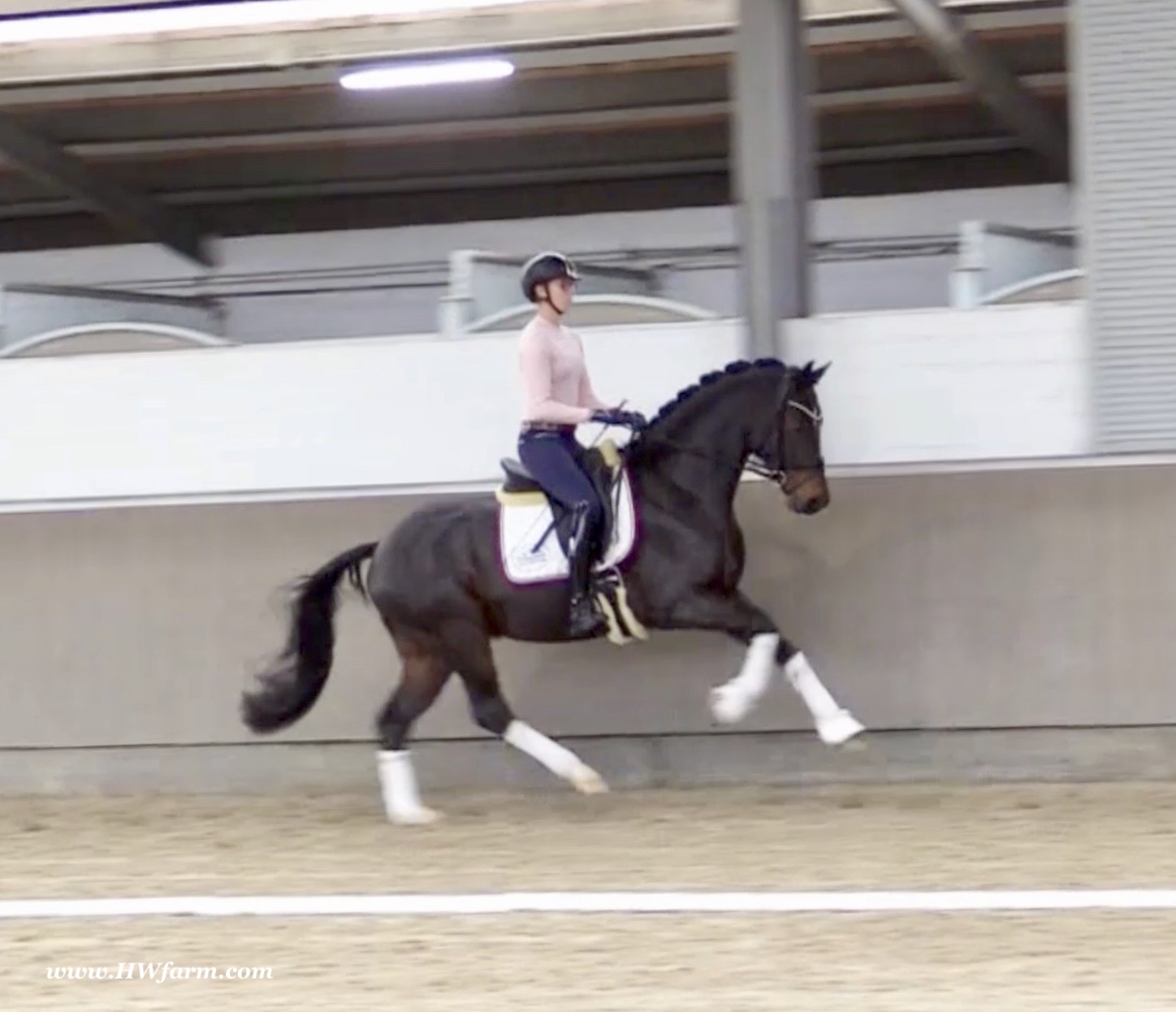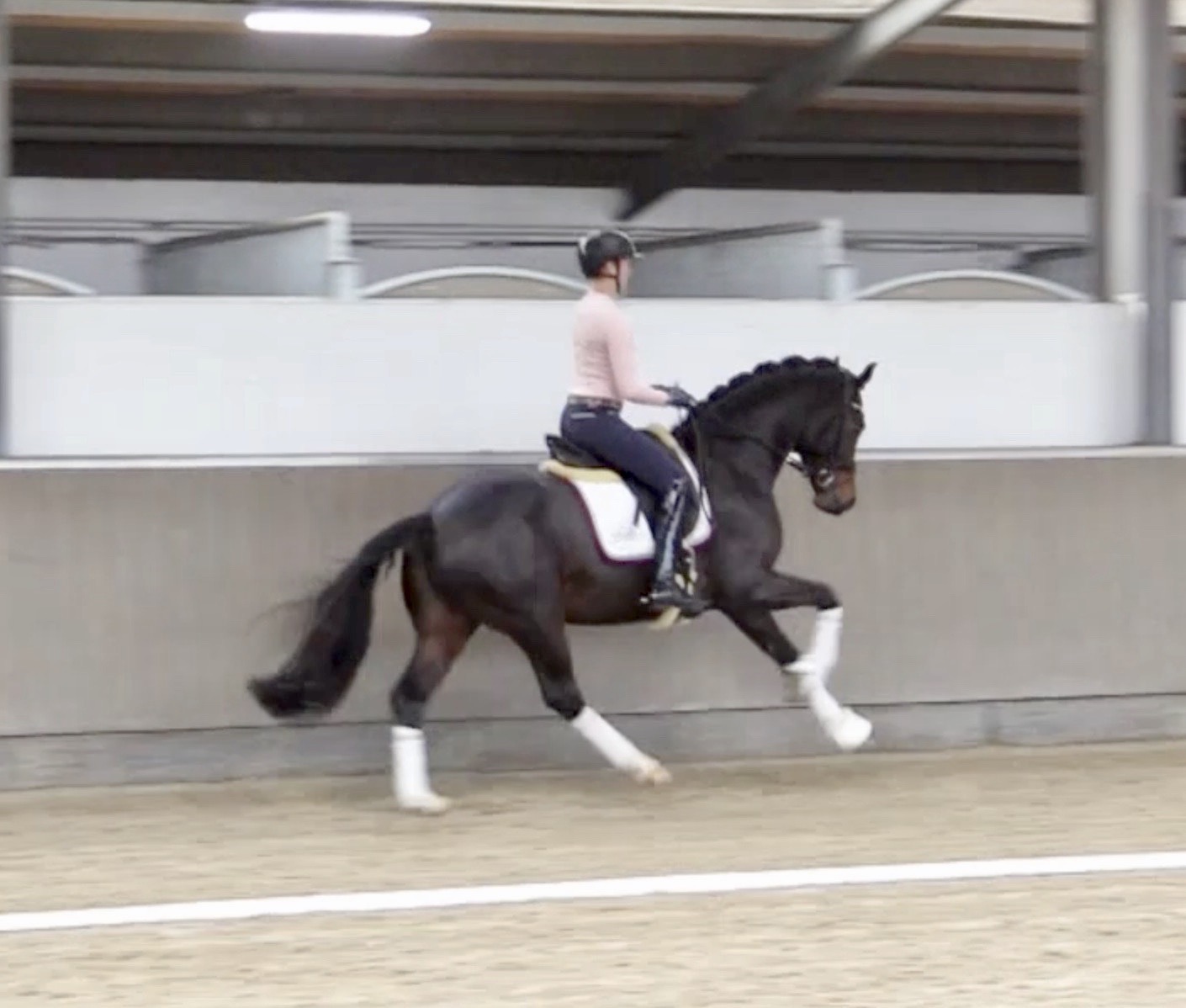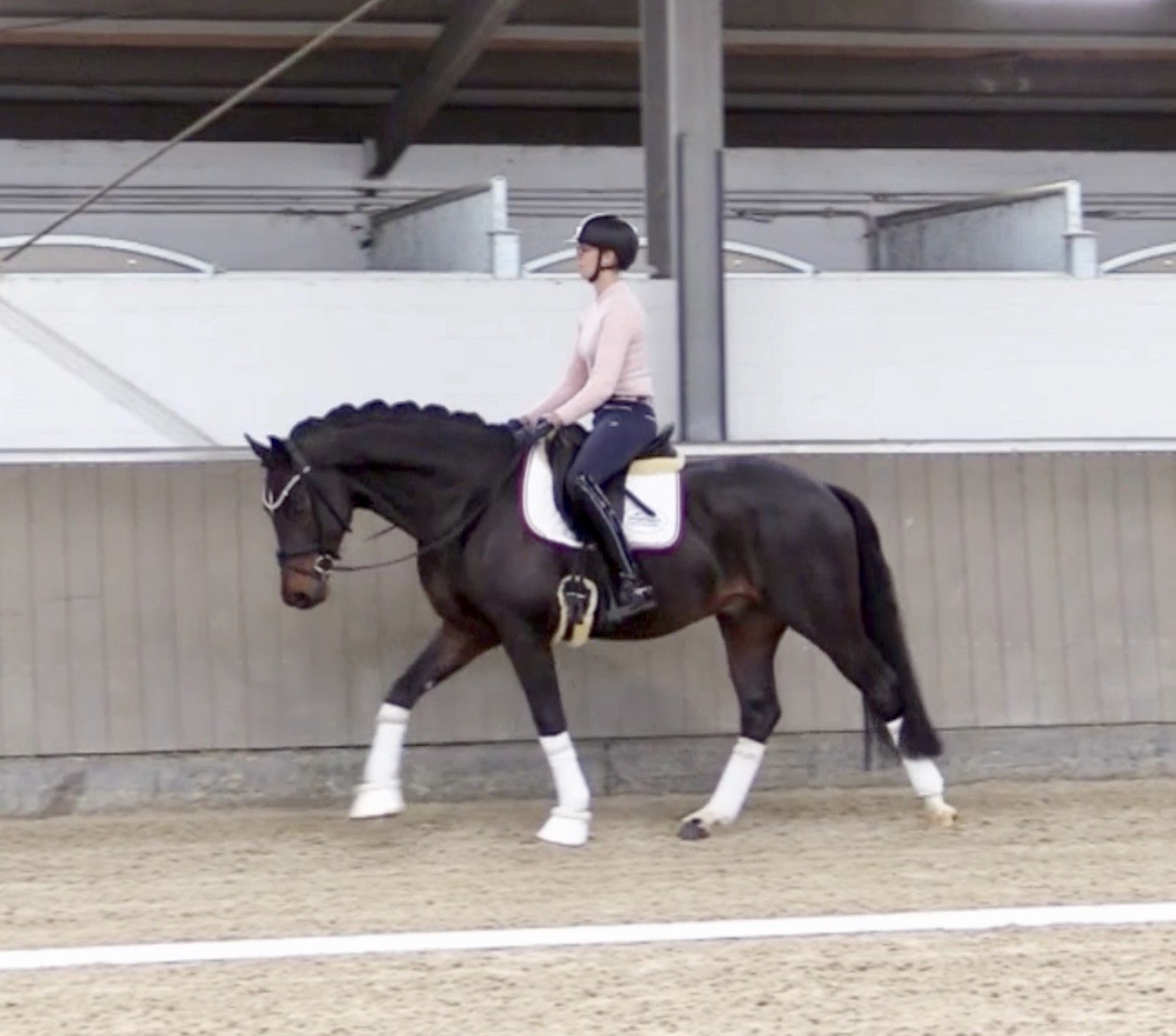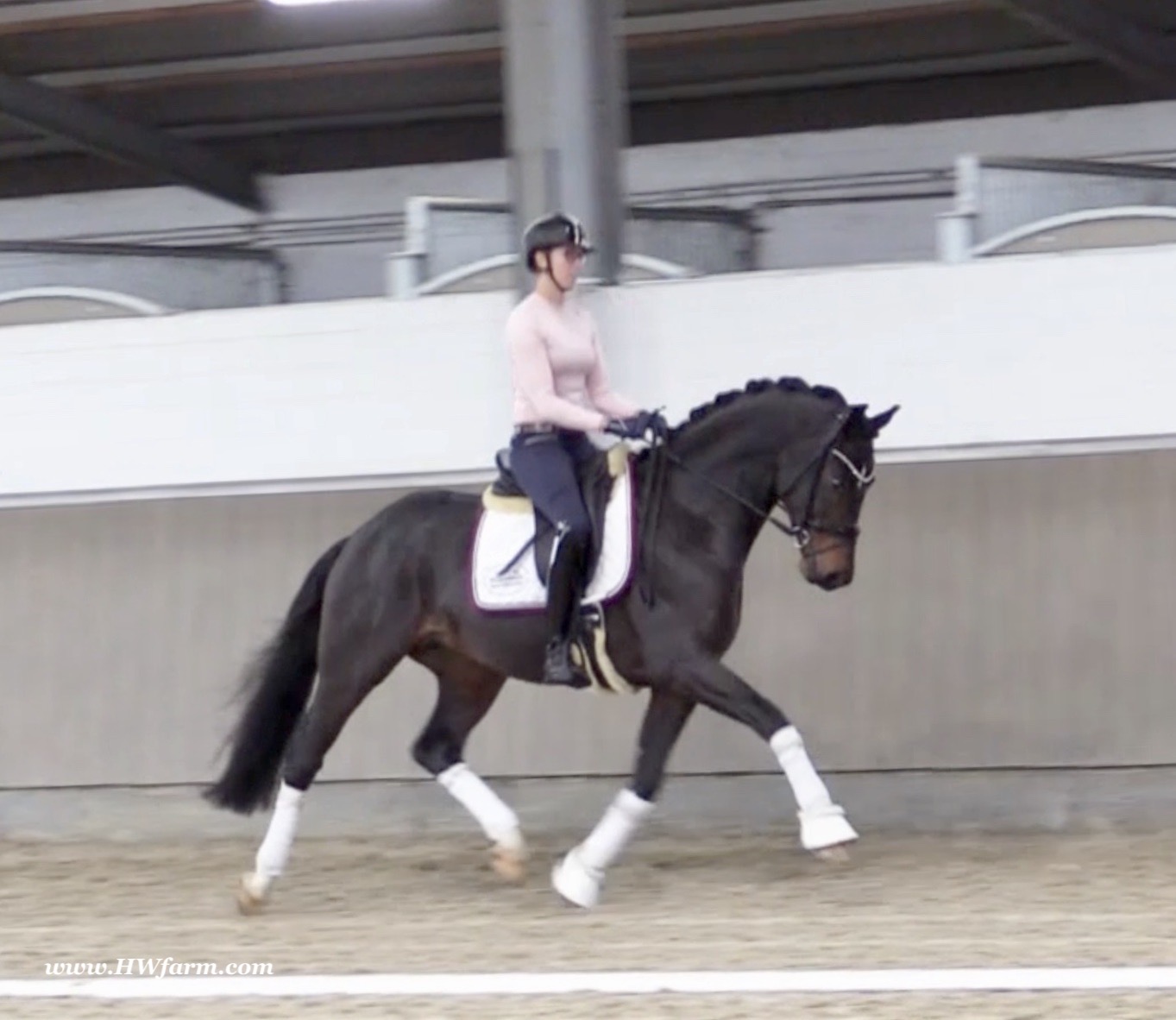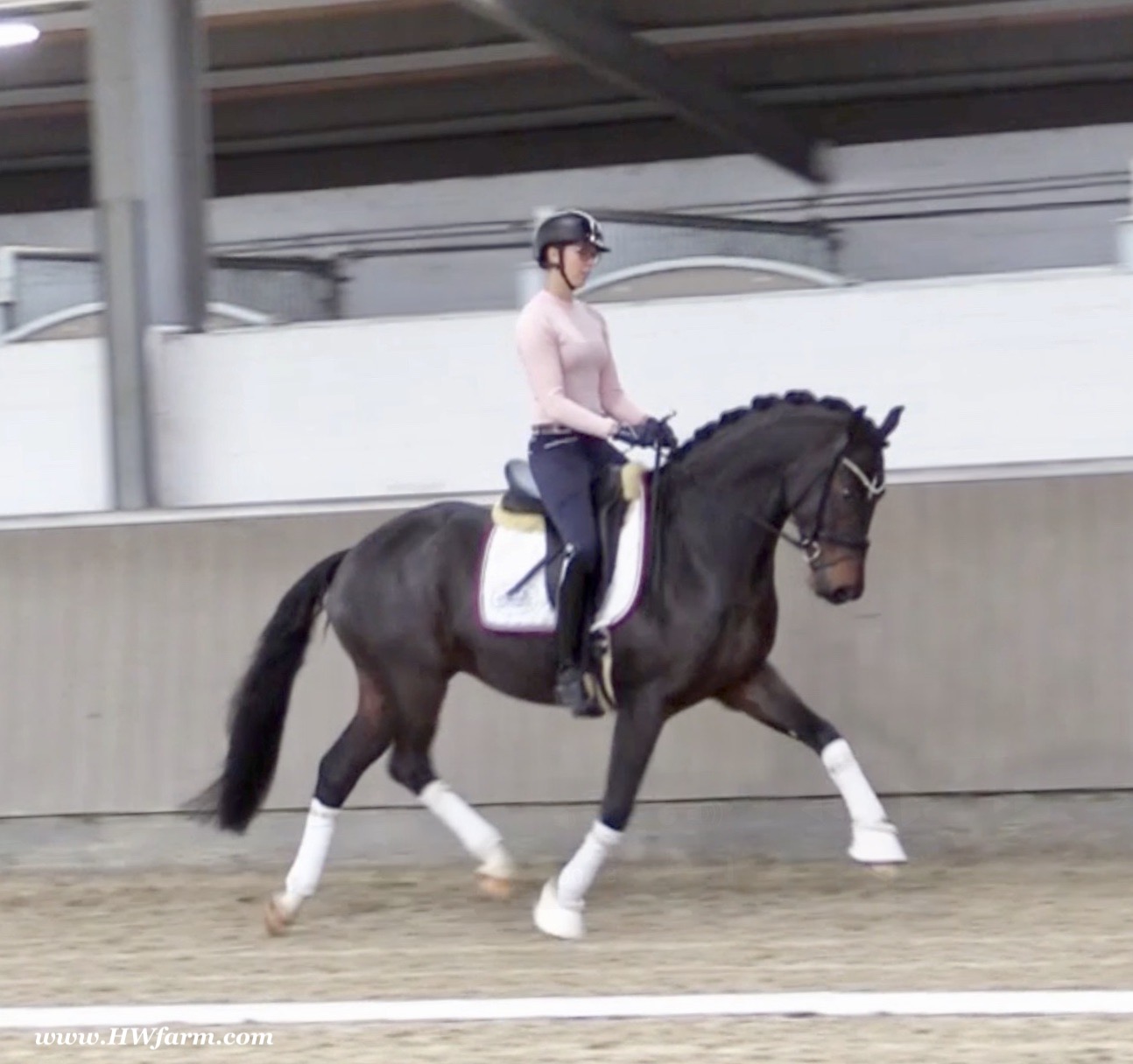 Valentin HW, bay Westphalian gelding, by Valverde/Fürstenball, born in 2019, standing approximately 164 cm or 16 and 3/4 hands. Valentin HW is sired by the famous Valverde: Valverde NRW added to his collection of titles last year with his third triumph at the Westphalian Championships. With his trainer Eva Möller, he received a 9.0 for each of his three gaits and the overall impression! At the German Championships, he convincingly won the qualifier for the final (9.0) and also received high individual scores in the final: for the "super energetic trot, which is incredibly powerful, dynamic and uphill" and for the walk "with fantastic rhythm and stretch" each a 9.0. Commentator Dr. Dietrich Plewa also praised Valverde's "canter with three clear beats and flying changes with a clear jump through the body and a lot of expression" and attested to Valverde's "outstanding talent". He finished fourth with an overall score of 8.5 against very strong competition. He was then selected to represent Germany at the World Championships for young dressage horses, however, this championship could not take place due to the coronavirus pandemic. Valverdestarted his career in 2016 as Westphalian Champion Stallion and the following year completed his stallion performance test in Denmark as the third best dressage stallion with a total score of 9.23 (10 for walk, character and conformation). Valverde then won the gold medal at the Westphalian Championships and the silver medal at the German Championships for four-year-olds. In 2019, he was once again Westphalian Champion (overall 9.22, walk 10), he narrowly missed the medal places and came fourth at the World Championships for young dressage horses and won the German Championships with an overall score of 9.3. Valverde produced numerous show winners and coveted auction foals from his first crops of foals. Victor Hugo was auctioned for 36,500 Euros in Vechta. Valuable became top price of the 3rd Helgstrand-Schockemöhle Online Auction, selling for 79,000 Euros. His sire Vitalis was Champion Foal in the Netherlands in 2007, Reserve Champion of the NRW licensing in 2009, winner of the dressage index of his stallion performance test in 2010, placed at the World Championships and Pavo Cup final in 2012, Champion in the USA and again qualified for the World Championships with a record number of points in 2013 and victorious in the International Small Tour at only seven years old in 2014. He came back to Germany and, in 2016, ridden by Isabel Freese, he won the Burg Cup Final in Frankfurt and the "Stallion of the year" competition at Inter I level at the World Championships in Ermelo/NED. His dam St.Pr.St. Amicella was successful up to Inter I. His dam's sire Ampère, KWPN Champion Stallion and champion of his stallion performance test, has produced over 60 stallions approved for breeding in the Netherlands and in Germany, including the Grand Prix winner Abegglen FH NRW/Victoria Max-Theurer/AUT, the Louisdor Prize finalist Aperol/Emma Kanerva/FIN, First Ampère, who came sixth at the World Championships for young dressage horses and our KWPN Champion Stallion, Franklin. He has produced over 50 state premium mares, including the Westphalian Champion Mare Anky. Numerous auction top prices have also been recorded. His grand-dam St.Pr.St. First Fina is the half-sister of Enrico (by Ehrentusch), who was successful in Grand Prix, and of further successful dressage horses. She produced the licensed stallion Mister Diamond (by Sir Donnerhall I). First Final, Reserve Champion of the Oldenburg licensing in 2005, who appears in the third generation, combines the dressage World Champion Fürst Heinrich and the legendary stallion Argentinus in his pedigree. He was successful up to advanced (S) level. The half-blood stallion Laomedon, Delphi, who was successful in Grand Prix, and Der Clou, who won his stallion performance test, complete his pedigree in the most excellent way. Valentin HW's dam sire is the stunning Fürstenball, who produces world-class horses, from foal shows to the Olympic arena. Fürstenball's offspring are always among the best. Hardly any stallion can offer such continuity in hereditary performance. He has produced 90 licensed stallions, around 170 premium mares and over 80 horses successful at advanced (S) level, led by Heiline's Danciera/Carina Cassøe Krüth/DEN, placed fourth by team and seventh individually at the Olympics, as well as five German Champions, amongst them Feine Bella, who was also unbeatable in the Westphalian Championships and at her mare show, and numerous fantastic auction horses, such as Fürst Bayram OLD/Frederic Wandres, 1.7 million Euro price sensation of the P.S.I. Auction 2021, reigning Oldenburg Regional Champion and eleventh at the German Championships for young dressage horses. Torveslettens Fifty-Fifty/Ekaterina Podlytkina/RUS, Friesen Ball/Andrea Timpe/GER, Filigrano Marone/Thomas Wagner/GER, placed eleventh in the Louisdor Prize final, Four Seasons FRH/Alexa Westendarp/GER, double European Young Riders Championship gold medallist, and First Class/Maike Mende/GER, winner of the Oldenburg Derby Dressage Cup, have already established themselves at Grand Prix level. Frau Holle was silver medallist at the German Young Riders Championship with Jana Schrödter and competed in the Burg Cup final. ZINQ Farlana FH won the bronze medal at the German Junior Championships with Lucie-Anouk Baumgürtel and won the International Tour in Le Mans/FRA. Fürst Sinclair/Elke Philipp/GER was placed fourth at the para-equestrian dressage World Championships in Tryon/USA and at the European Championships in Rotterdam/NED. Fürstenball has produced 90 licensed stallions, including Fürsten-Look/Isabel Freese/NOR: our Champion Stallion and German Champion, who came third in the Burg Cup, Fürst Zonik PS: our Champion Stallion, Fürst Fabrice: Champion Stallion placed third at the Regional Championships, Follow Me OLD: Oldenburg Champion Stallion, 
