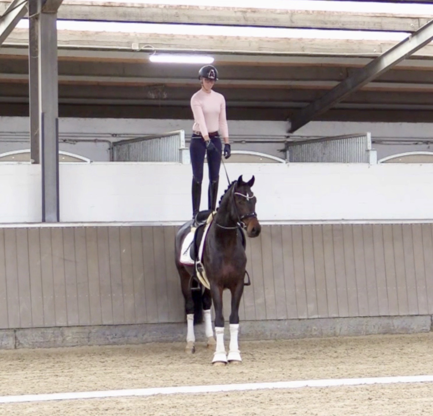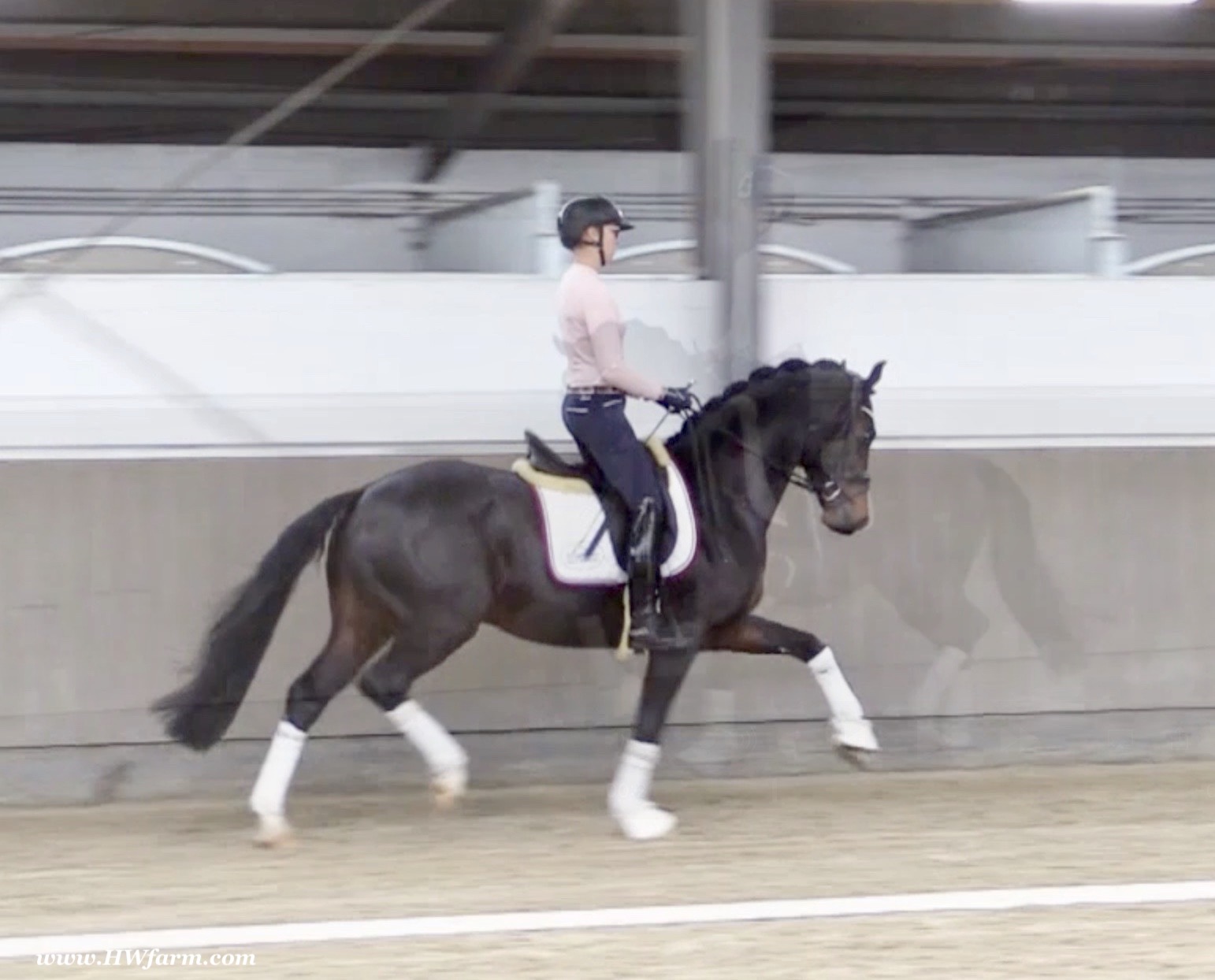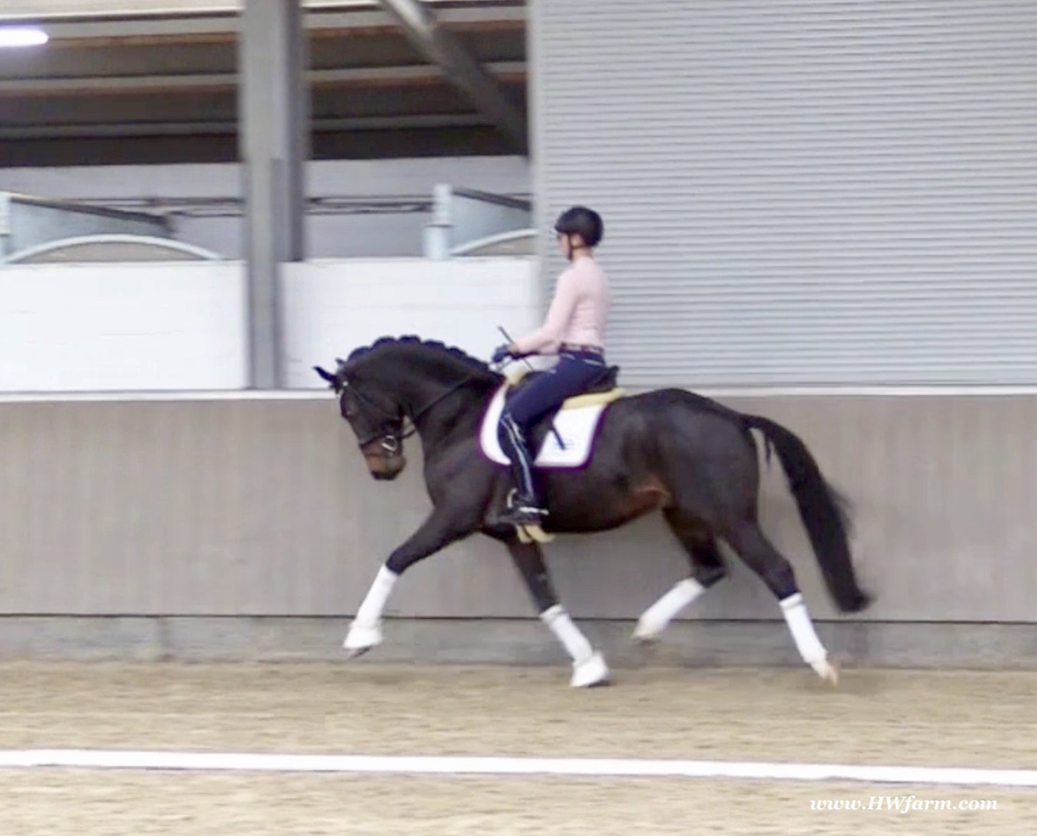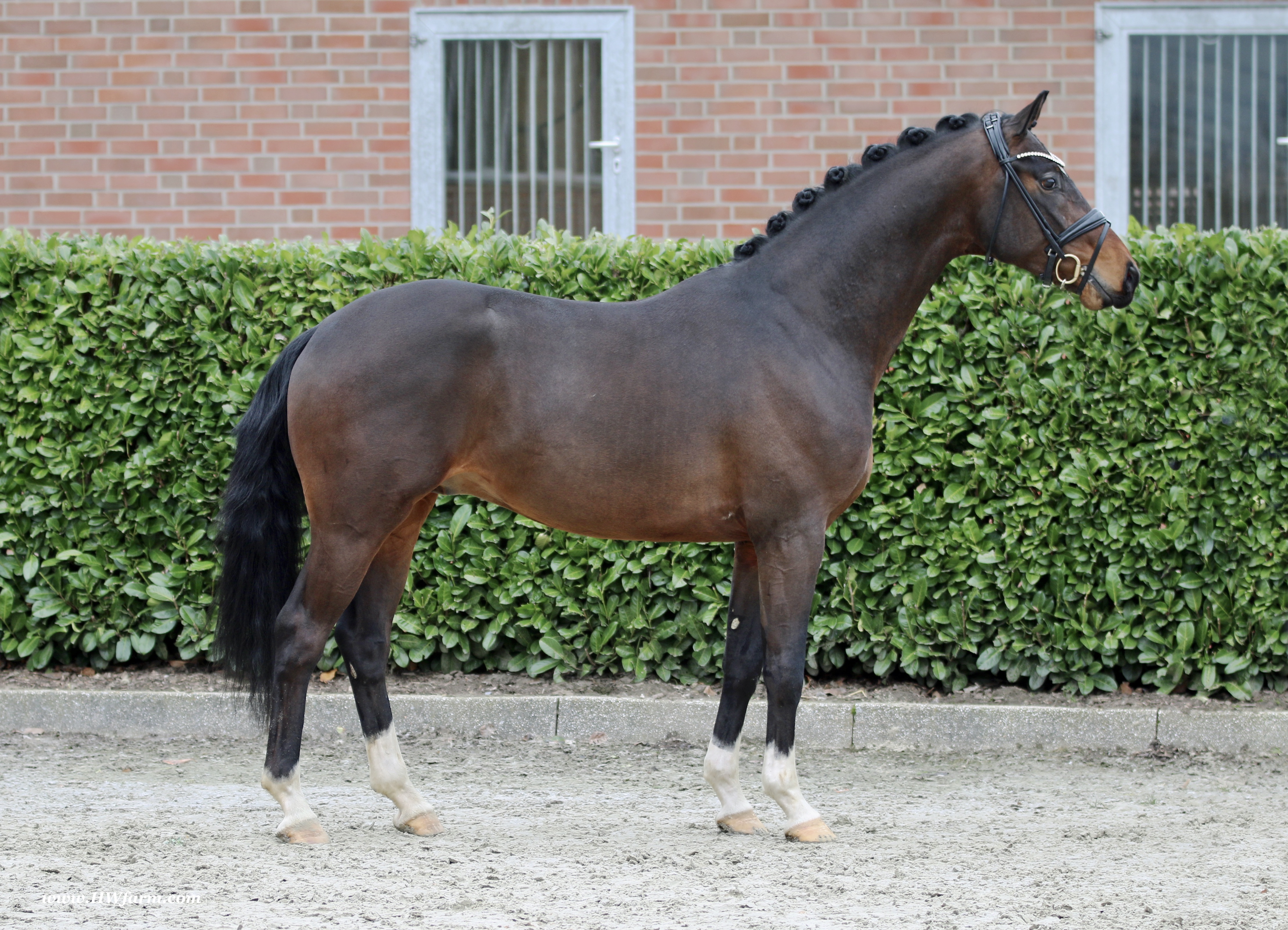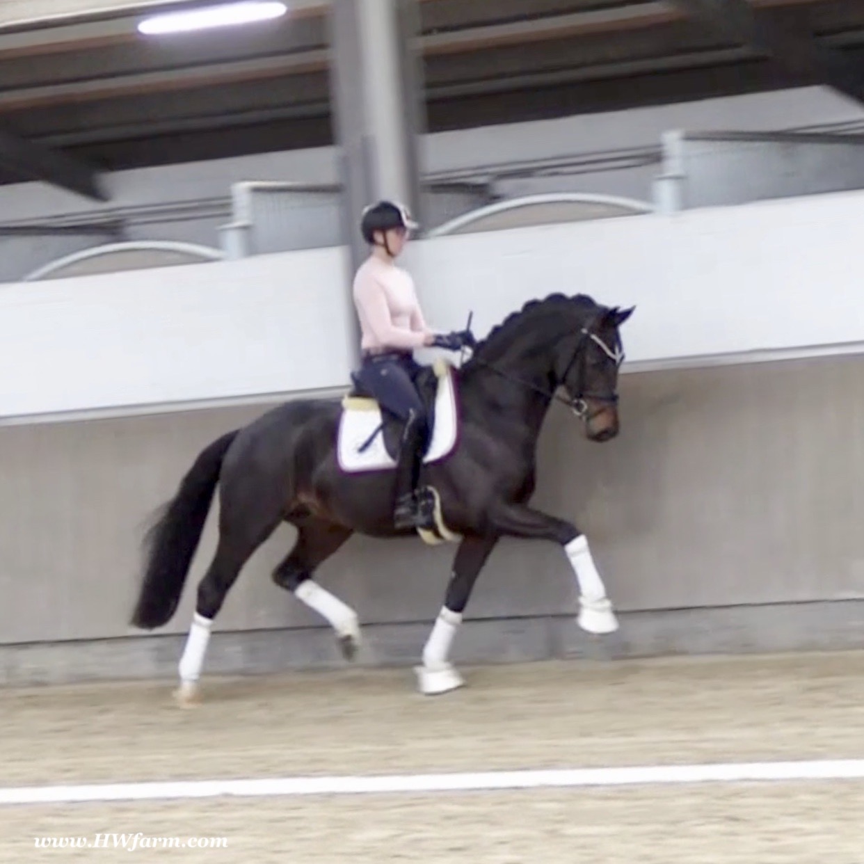 Valentin HW, bay Westphalian gelding, by Valverde/Fürstenball, born in 2019, standing approximately 164 cm or 16 and 3/4 hands. Valentin HW is sired by the famous Valverde: Valverde NRW added to his collection of titles last year with his third triumph at the Westphalian Championships. With his trainer Eva Möller, he received a 9.0 for each of his three gaits and the overall impression! At the German Championships, he convincingly won the qualifier for the final (9.0) and also received high individual scores in the final: for the "super energetic trot, which is incredibly powerful, dynamic and uphill" and for the walk "with fantastic rhythm and stretch" each a 9.0. Commentator Dr. Dietrich Plewa also praised Valverde's "canter with three clear beats and flying changes with a clear jump through the body and a lot of expression" and attested to Valverde's "outstanding talent". He finished fourth with an overall score of 8.5 against very strong competition. He was then selected to represent Germany at the World Championships for young dressage horses, however, this championship could not take place due to the coronavirus pandemic. Valverdestarted his career in 2016 as Westphalian Champion Stallion and the following year completed his stallion performance test in Denmark as the third best dressage stallion with a total score of 9.23 (10 for walk, character and conformation). Valverde then won the gold medal at the Westphalian Championships and the silver medal at the German Championships for four-year-olds. In 2019, he was once again Westphalian Champion (overall 9.22, walk 10), he narrowly missed the medal places and came fourth at the World Championships for young dressage horses and won the German Championships with an overall score of 9.3. Valverde produced numerous show winners and coveted auction foals from his first crops of foals. Victor Hugo was auctioned for 36,500 Euros in Vechta. Valuable became top price of the 3rd Helgstrand-Schockemöhle Online Auction, selling for 79,000 Euros. His sire Vitalis was Champion Foal in the Netherlands in 2007, Reserve Champion of the NRW licensing in 2009, winner of the dressage index of his stallion performance test in 2010, placed at the World Championships and Pavo Cup final in 2012, Champion in the USA and again qualified for the World Championships with a record number of points in 2013 and victorious in the International Small Tour at only seven years old in 2014. He came back to Germany and, in 2016, ridden by Isabel Freese, he won the Burg Cup Final in Frankfurt and the "Stallion of the year" competition at Inter I level at the World Championships in Ermelo/NED. His dam St.Pr.St. Amicella was successful up to Inter I. His dam's sire Ampère, KWPN Champion Stallion and champion of his stallion performance test, has produced over 60 stallions approved for breeding in the Netherlands and in Germany, including the Grand Prix winner Abegglen FH NRW/Victoria Max-Theurer/AUT, the Louisdor Prize finalist Aperol/Emma Kanerva/FIN, First Ampère, who came sixth at the World Championships for young dressage horses and our KWPN Champion Stallion, Franklin. He has produced over 50 state premium mares, including the Westphalian Champion Mare Anky. Numerous auction top prices have also been recorded. His grand-dam St.Pr.St. First Fina is the half-sister of Enrico (by Ehrentusch), who was successful in Grand Prix, and of further successful dressage horses. She produced the licensed stallion Mister Diamond (by Sir Donnerhall I). First Final, Reserve Champion of the Oldenburg licensing in 2005, who appears in the third generation, combines the dressage World Champion Fürst Heinrich and the legendary stallion Argentinus in his pedigree. He was successful up to advanced (S) level. The half-blood stallion Laomedon, Delphi, who was successful in Grand Prix, and Der Clou, who won his stallion performance test, complete his pedigree in the most excellent way. Valentin HW's dam sire is the stunning Fürstenball, who produces world-class horses, from foal shows to the Olympic arena. Fürstenball's offspring are always among the best. Hardly any stallion can offer such continuity in hereditary performance. He has produced 90 licensed stallions, around 170 premium mares and over 80 horses successful at advanced (S) level, led by Heiline's Danciera/Carina Cassøe Krüth/DEN, placed fourth by team and seventh individually at the Olympics, as well as five German Champions, amongst them Feine Bella, who was also unbeatable in the Westphalian Championships and at her mare show, and numerous fantastic auction horses, such as Fürst Bayram OLD/Frederic Wandres, 1.7 million Euro price sensation of the P.S.I. Auction 2021, reigning Oldenburg Regional Champion and eleventh at the German Championships for young dressage horses. Torveslettens Fifty-Fifty/Ekaterina Podlytkina/RUS, Friesen Ball/Andrea Timpe/GER, Filigrano Marone/Thomas Wagner/GER, placed eleventh in the Louisdor Prize final, Four Seasons FRH/Alexa Westendarp/GER, double European Young Riders Championship gold medallist, and First Class/Maike Mende/GER, winner of the Oldenburg Derby Dressage Cup, have already established themselves at Grand Prix level. Frau Holle was silver medallist at the German Young Riders Championship with Jana Schrödter and competed in the Burg Cup final. ZINQ Farlana FH won the bronze medal at the German Junior Championships with Lucie-Anouk Baumgürtel and won the International Tour in Le Mans/FRA. Fürst Sinclair/Elke Philipp/GER was placed fourth at the para-equestrian dressage World Championships in Tryon/USA and at the European Championships in Rotterdam/NED. Fürstenball has produced 90 licensed stallions, including Fürsten-Look/Isabel Freese/NOR: our Champion Stallion and German Champion, who came third in the Burg Cup, Fürst Zonik PS: our Champion Stallion, Fürst Fabrice: Champion Stallion placed third at the Regional Championships, Follow Me OLD: Oldenburg Champion Stallion, 
