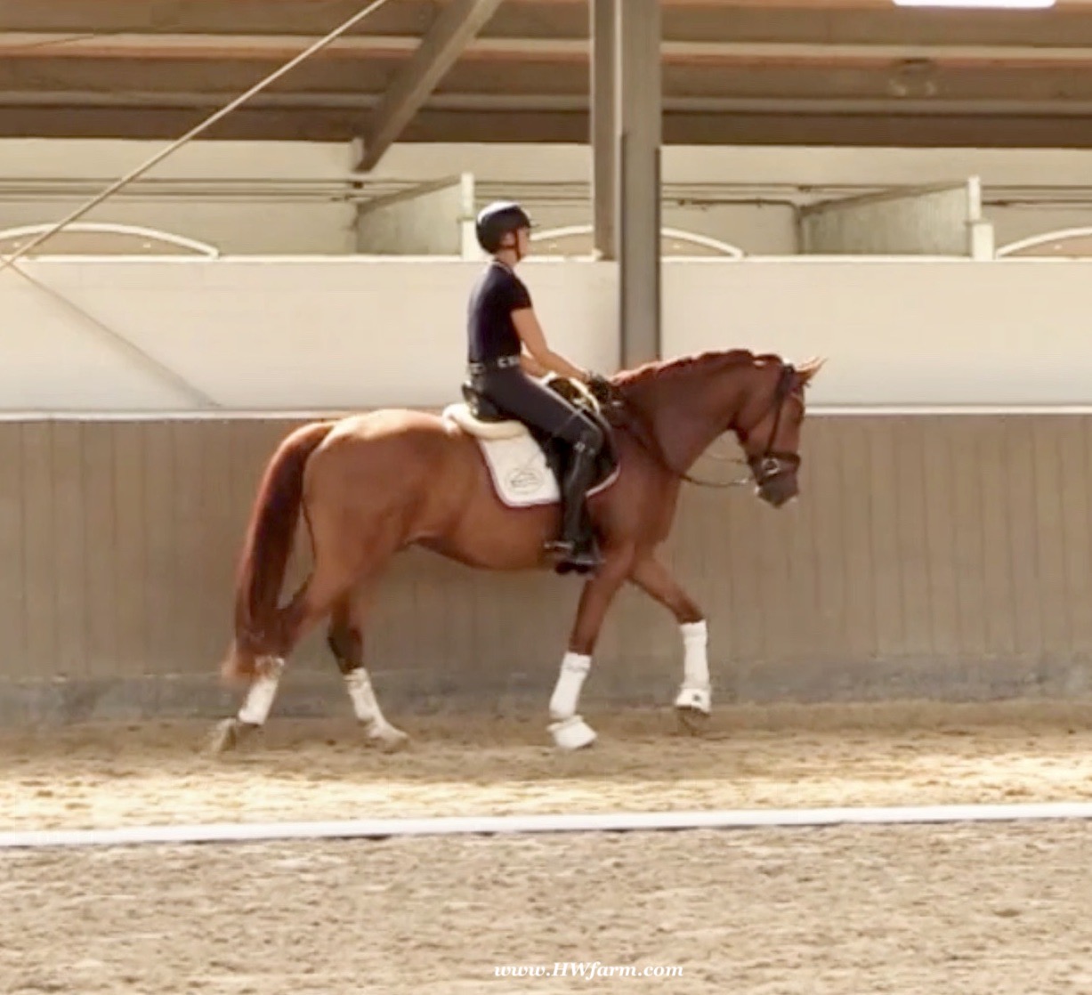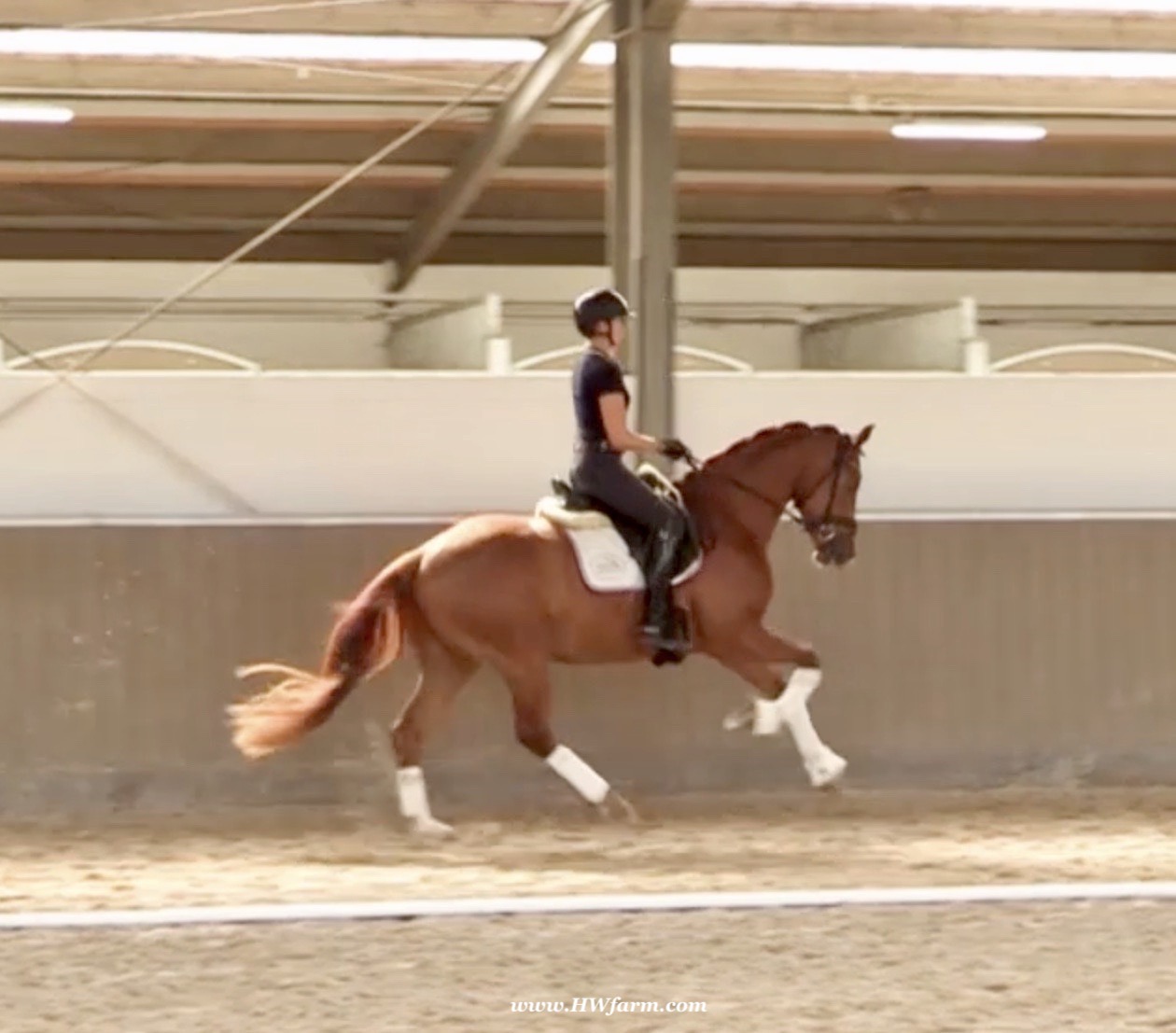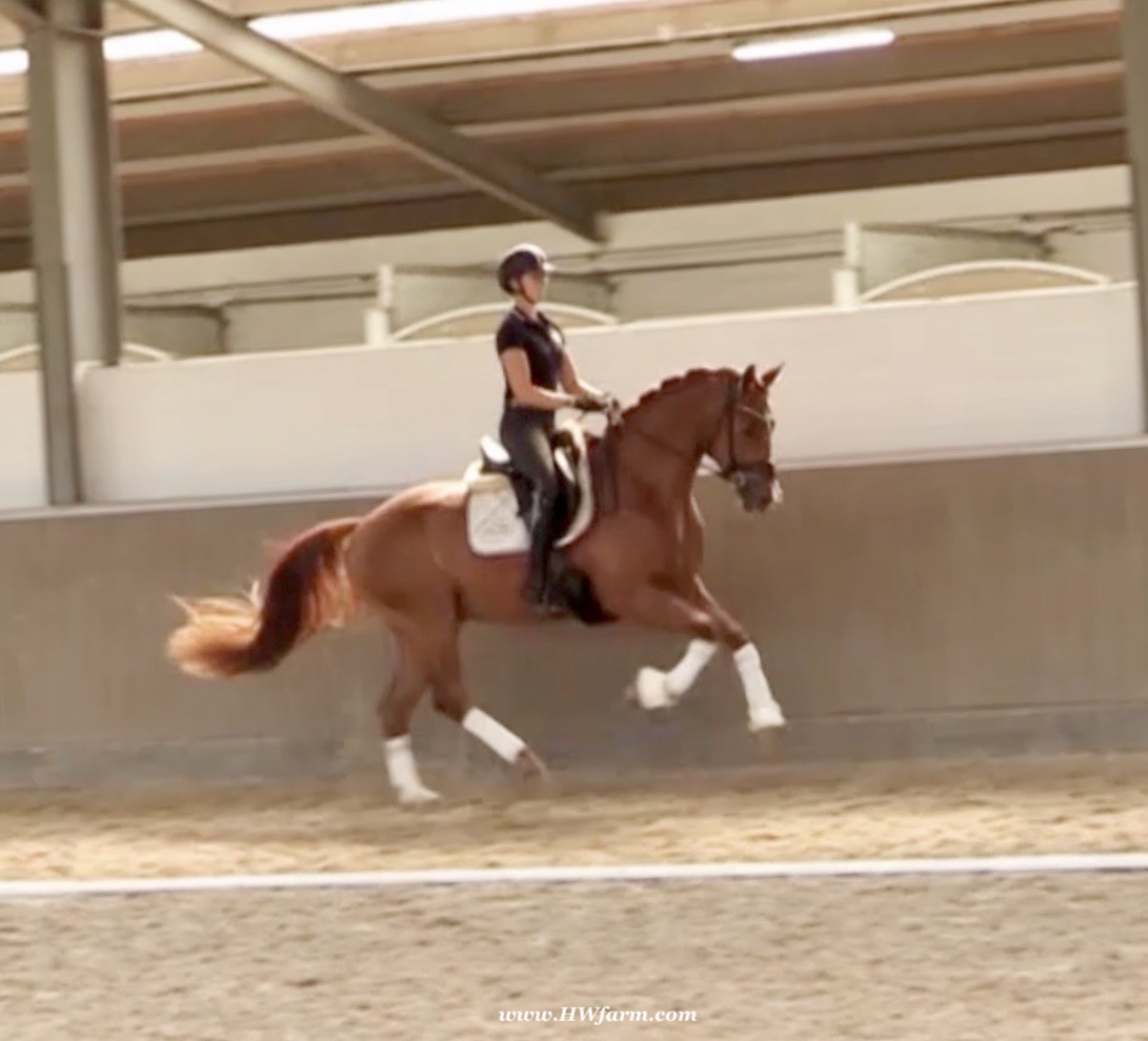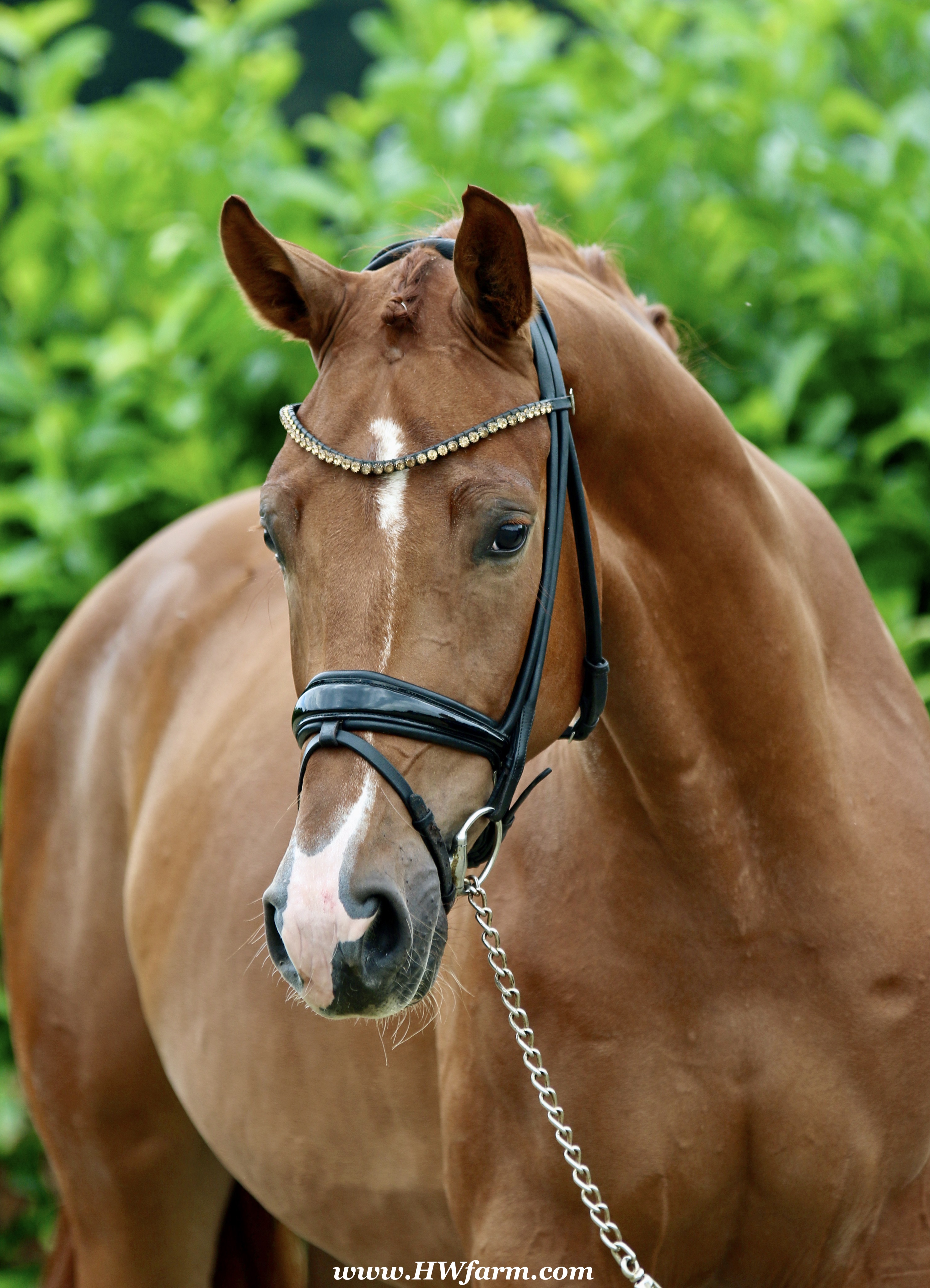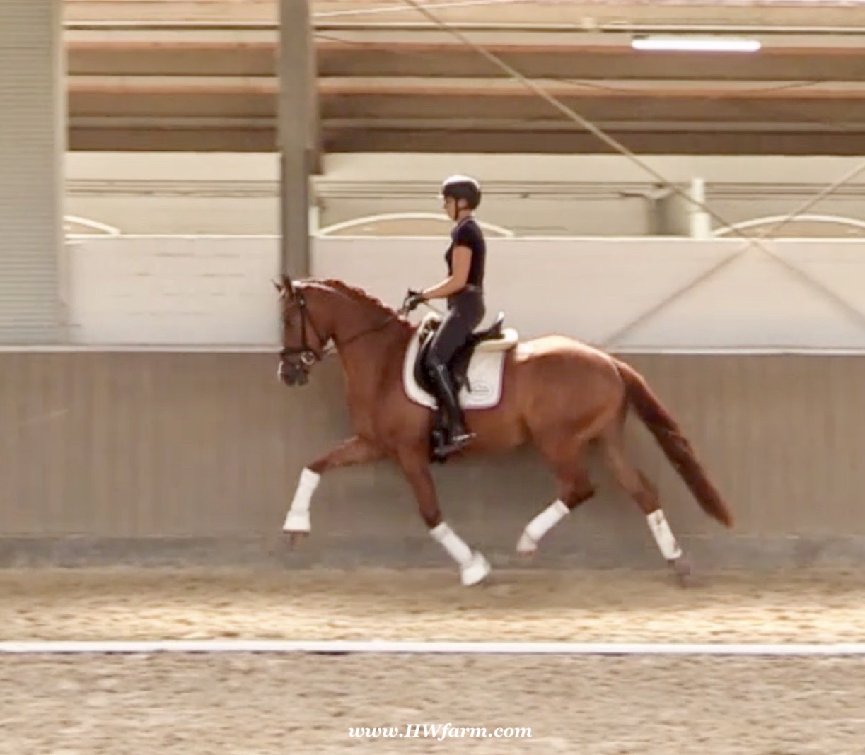 Vivat Gold HW, chestnut Westphalian gelding by Vivat Rex/Riccio, born in 2020, standing approximately 165 cm or 16.1 hands. Like father, like son, Vivat Gold HW seems to be a near clone to his famous sire Vivat Rex. Vivat Rex is definitely a king, uniquely modeled, he dances into the hearts of the observers. Top quality with great potential. His quality of movement is inspiring and admirable. Father Vivaldi was reserve champion at the performance test in the Netherlands and won the Pavo Cup for five-year-olds in 2007. He was ridden by Hans Peter Minderhoud/NED to victory in the KNHS/KWPN stallion series in 2008 and 2009, receiving a 10.0 for his trot. The sire Krack C is considered a foundation stallion in the Netherlands. The two-time Pavo Cup winner from 1996 and 1997 took eighth place in the individual classification at the 2002 World Equestrian Games in Jerez/ESP under Anky van Grunsven/NED. Vivaldi comes from the Utopia line, the most successful Dutch mare family. Elite mare Symphonie, mother of Vivat Rex, descends from Samarant, one of Sandro Hit x Brentano II, was Hanoverian Vice State Champion and finalist at the Bundeschampionat riding horses. In 2006 he qualified for the Bundeschampionat for 5-year-old dressage horses. In 2008 he was sold to Denmark and presented internationally by Andreas Helgstrand-DEN, among others. Granddam Sandy, also an elite mare, descends from the great Rubinstein. Rubinstein is a son of the Westphalian Romadour II son Rosenkavalier, who himself was a stallion performance test winner and is now one of the most important Westphalian sires. He was bred from what is probably the most important dressage dynasty in the world. The mother Antine is full sister of the international top dressage horses Ahlerich 2/Dr. Reiner Klimke and Amon/Annemarie Sanders-Keyzer (NL Her full sister Adone gave the multi-Olymionist Rembrandt 24/Nicole Uphoff. Rubinstein can now look back on a tailor-made career. Winner in the "Optimum" of material horses in Münster 1990, I a- Winner of the main premium in Oldenburg, Vice Bundeschampion of the German dressage horse in Verden in 1992, multiple Oldenburg dressage champion, serial winner in dressage classes at S level and multiple Grand Prix winners. In the meantime, Rubinstein I and Nicole Uphoff can look back to international victories in the dressage arena. Vivat Rex comes from the dam line of Große Liebe: Grand Prix successful horses Pikko del Cerro with Lisa Wilcox and licensing champion Boreas by Bordeaux is with Christina Vinios USA. Vivat Gold HW's dam is by the impressive stallion RICCIO, whom was the premium stallion at the NRW main licensing in Münster-Handorf in 2003. He completed his 30-day assessment test with grades well above the average. Scores of 9.0 and better were given for temperament, willingness to perform and constitution. The sporting career of RICCIO, who has meanwhile been successful in difficult dressage tests, went extremely well. In 2004, the RICCIONE son was Vice Bundeschampion of three-year-old riding horse stallions. In 2006 he represented the German colors in the final of the World Championships for five-year-old dressage horses in Verden. He qualified twice for the Bundeschampionat for five- and six-year-old dressage horses. Due to its successes, RICCIO carries the suffix "NRW" in tournament sports. He produced 19 state premium mares and five licensed sons. Among other things, RICOHELLO, licensed in 2011, descends from him. He presented numerous award-winning foals. His offspring also enrich auction and show venues and the field of participants in the German Foal Championships. His daughters shine with top results in mare tests. In 2011 a daughter was among the top ten at the German Mare Championships. In 2008 a daughter marched in the final ring of the elite show in the Rhineland. One of his sons was licensed for Oldenburg in 2008. In 2007 a RICCIO daughter was the first reserve champion in Bern, and another daughter won the Eastern Switzerland Foal Championships. 355 offspring are registered as tournament horses and are highly successful up to advanced level, in which two of them have already been victorious. RICCIO's breeding value for dressage is 129, according to the FN he is one of the top 5% dressage sires in Germany. RICCIO's father is RICCIONE, who himself was highly successful in sport up to advanced level. He is also the father of numerous successful dressage horses, as well as the father of the premium stallion RICCINOS, who also works at the state stud, 22 other licensed sons and 32 state premium mares. Mother is the state premium mare Fidelia As. In addition to RICCIO, she produced ten other successful sport horses with total lifetime winnings of more than 4,800 euros. Among them the mare Grande Coeur As by GRANDILOT, who was successful up to medium level in the course. She herself can refer to a highly successful offspring that has earned more than 8,000 euros in sport. Among other things, her daughter L`Amour As is victorious up to advanced level show jumping. Another daughter who is successful up to medium level jumping is Damira As, who also has Samara As, who placed highly in advanced level dressage, as a daughter. Fidelia As can be traced back to the legendary Warendorfer FLORESTAN I. 92 licensed sons, 237 state premium mares, 2,136 offspring registered in the sport, of which 191 reached the advanced level in the arena with lifetime winnings of more than 2.1 million euros and a dressage breeding value of 140 are just a few of the important cornerstones of this exceptional stallion, the was third in the WBFSH ranking of the best dressage horse sires in the world in 2014. Granddam Desi AS was successful in medium level jumpers herself. She can be traced back to the versatile sire Democraat. Numerous other horses that are successful in sport emerge from the dam line. Vivat Gold HW is of true International quality, his super ride ability and talent, combined with his excellent tr