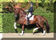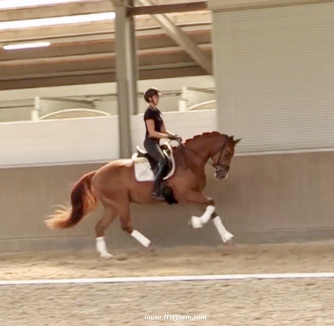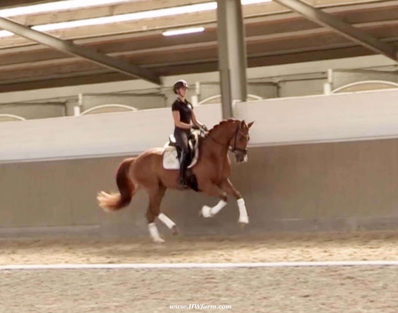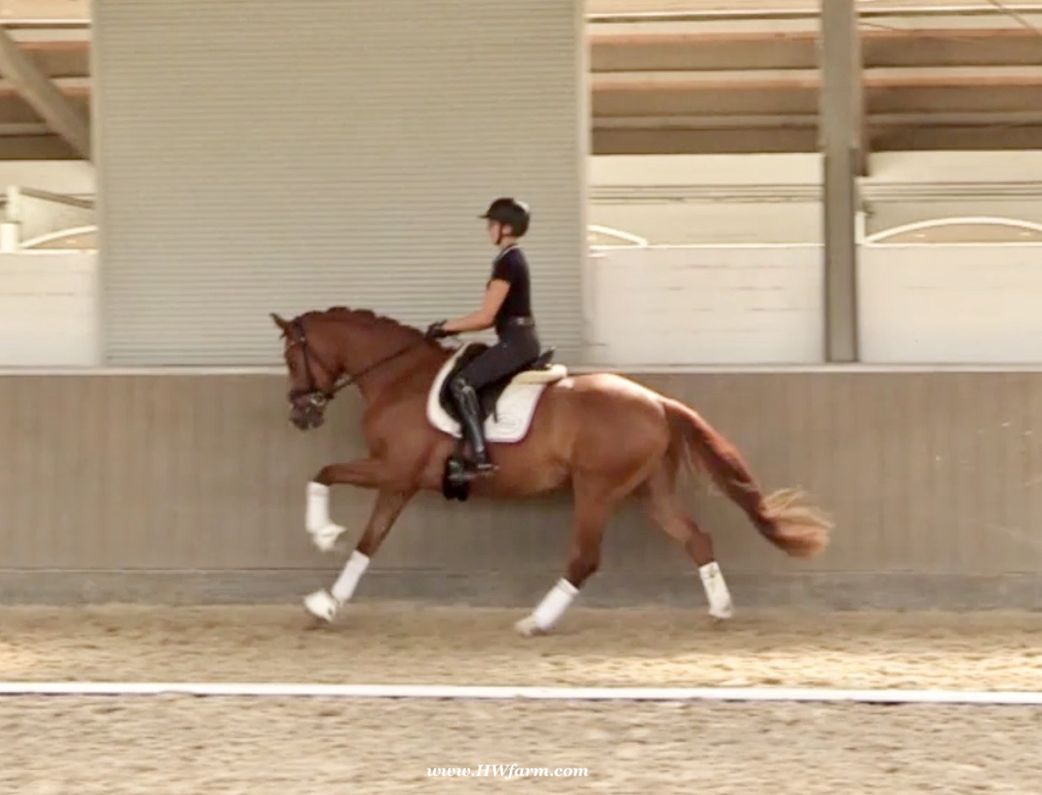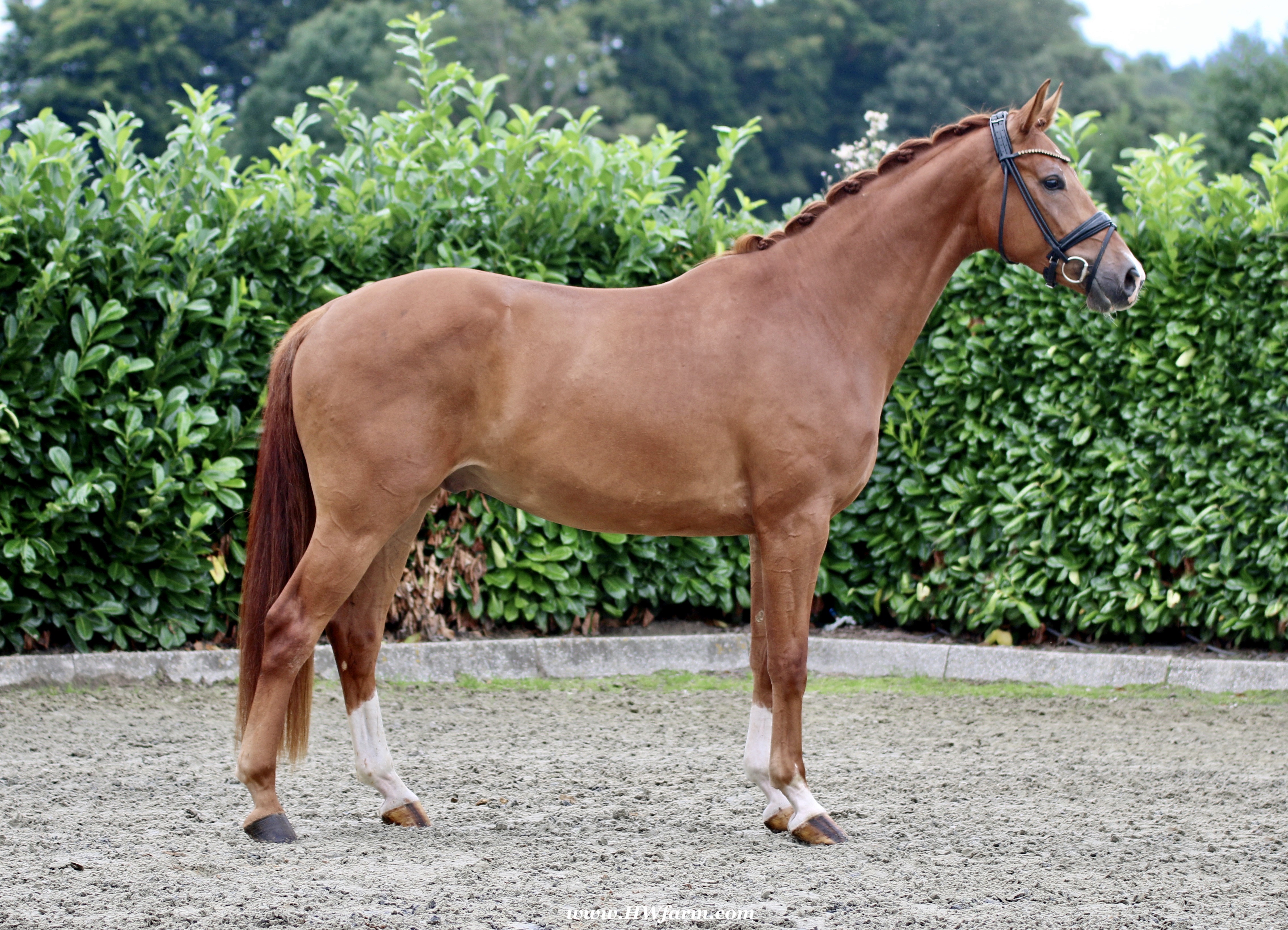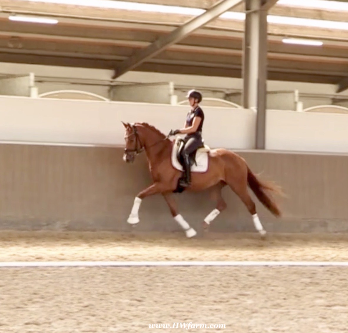 Vivat Gold HW, chestnut Westphalian gelding by Vivat Rex/Riccio, born in 2020, standing approximately 165 cm or 16.1 hands. Like father, like son, Vivat Gold HW seems to be a near clone to his famous sire Vivat Rex. Vivat Rex is definitely a king, uniquely modeled, he dances into the hearts of the observers. Top quality with great potential. His quality of movement is inspiring and admirable. Father Vivaldi was reserve champion at the performance test in the Netherlands and won the Pavo Cup for five-year-olds in 2007. He was ridden by Hans Peter Minderhoud/NED to victory in the KNHS/KWPN stallion series in 2008 and 2009, receiving a 10.0 for his trot. The sire Krack C is considered a foundation stallion in the Netherlands. The two-time Pavo Cup winner from 1996 and 1997 took eighth place in the individual classification at the 2002 World Equestrian Games in Jerez/ESP under Anky van Grunsven/NED. Vivaldi comes from the Utopia line, the most successful Dutch mare family. Elite mare Symphonie, mother of Vivat Rex, descends from Samarant, one of Sandro Hit x Brentano II, was Hanoverian Vice State Champion and finalist at the Bundeschampionat riding horses. In 2006 he qualified for the Bundeschampionat for 5-year-old dressage horses. In 2008 he was sold to Denmark and presented internationally by Andreas Helgstrand-DEN, among others. Granddam Sandy, also an elite mare, descends from the great Rubinstein. Rubinstein is a son of the Westphalian Romadour II son Rosenkavalier, who himself was a stallion performance test winner and is now one of the most important Westphalian sires. He was bred from what is probably the most important dressage dynasty in the world. The mother Antine is full sister of the international top dressage horses Ahlerich 2/Dr. Reiner Klimke and Amon/Annemarie Sanders-Keyzer (NL Her full sister Adone gave the multi-Olymionist Rembrandt 24/Nicole Uphoff. Rubinstein can now look back on a tailor-made career. Winner in the "Optimum" of material horses in Münster 1990, I a- Winner of the main premium in Oldenburg, Vice Bundeschampion of the German dressage horse in Verden in 1992, multiple Oldenburg dressage champion, serial winner in dressage classes at S level and multiple Grand Prix winners. In the meantime, Rubinstein I and Nicole Uphoff can look back to international victories in the dressage arena. Vivat Rex comes from the dam line of Große Liebe: Grand Prix successful horses Pikko del Cerro with Lisa Wilcox and licensing champion Boreas by Bordeaux is with Christina Vinios USA. Vivat Gold HW's dam is by the impressive stallion RICCIO, whom was the premium stallion at the NRW main licensing in Münster-Handorf in 2003. He completed his 30-day assessment test with grades well above the average. Scores of 9.0 and better were given for temperament, willingness to perform and constitution. The sporting career of RICCIO, who has meanwhile been successful in difficult dressage tests, went extremely well. In 2004, the RICCIONE son was Vice Bundeschampion of three-year-old riding horse stallions. In 2006 he represented the German colors in the final of the World Championships for five-year-old dressage horses in Verden. He qualified twice for the Bundeschampionat for five- and six-year-old dressage horses. Due to its successes, RICCIO carries the suffix "NRW" in tournament sports. He produced 19 state premium mares and five licensed sons. Among other things, RICOHELLO, licensed in 2011, descends from him. He presented numerous award-winning foals. His offspring also enrich auction and show venues and the field of participants in the German Foal Championships. His daughters shine with top results in mare tests. In 2011 a daughter was among the top ten at the German Mare Championships. In 2008 a daughter marched in the final ring of the elite show in the Rhineland. One of his sons was licensed for Oldenburg in 2008. In 2007 a RICCIO daughter was the first reserve champion in Bern, and another daughter won the Eastern Switzerland Foal Championships. 355 offspring are registered as tournament horses and are highly successful up to advanced level, in which two of them have already been victorious. RICCIO's breeding value for dressage is 129, according to the FN he is one of the top 5% dressage sires in Germany. RICCIO's father is RICCIONE, who himself was highly successful in sport up to advanced level. He is also the father of numerous successful dressage horses, as well as the father of the premium stallion RICCINOS, who also works at the state stud, 22 other licensed sons and 32 state premium mares. Mother is the state premium mare Fidelia As. In addition to RICCIO, she produced ten other successful sport horses with total lifetime winnings of more than 4,800 euros. Among them the mare Grande Coeur As by GRANDILOT, who was successful up to medium level in the course. She herself can refer to a highly successful offspring that has earned more than 8,000 euros in sport. Among other things, her daughter L`Amour As is victorious up to advanced level show jumping. Another daughter who is successful up to medium level jumping is Damira As, who also has Samara As, who placed highly in advanced level dressage, as a daughter. Fidelia As can be traced back to the legendary Warendorfer FLORESTAN I. 92 licensed sons, 237 state premium mares, 2,136 offspring registered in the sport, of which 191 reached the advanced level in the arena with lifetime winnings of more than 2.1 million euros and a dressage breeding value of 140 are just a few of the important cornerstones of this exceptional stallion, the was third in the WBFSH ranking of the best dressage horse sires in the world in 2014. Granddam Desi AS was successful in medium level jumpers herself. She can be traced back to the versatile sire Democraat. Numerous other horses that are successful in sport emerge from the dam line. Vivat Gold HW is of true International quality, his super ride ability and talent, combined with his excellent tr