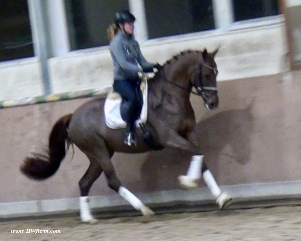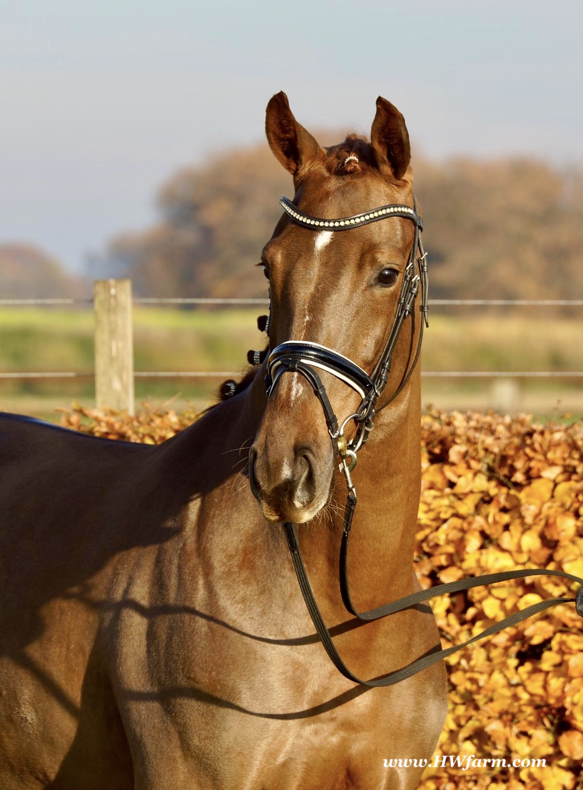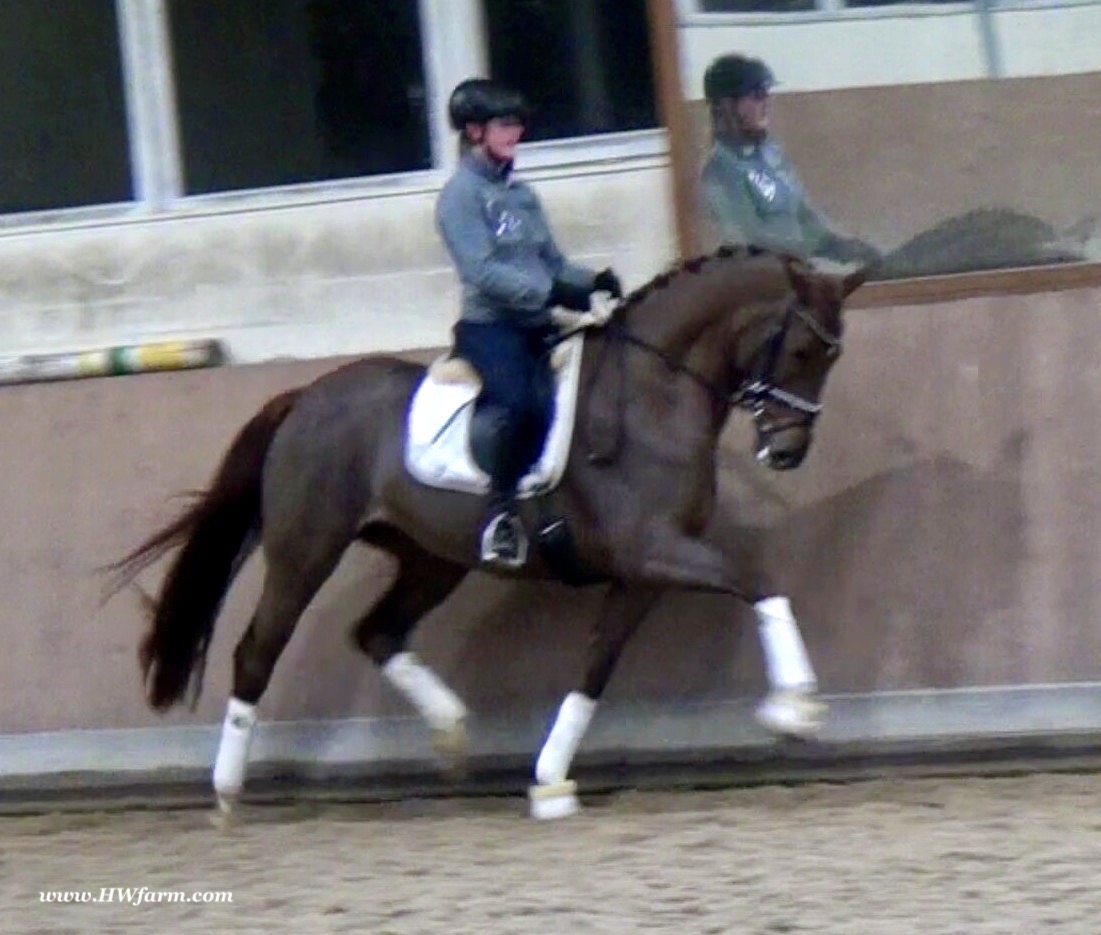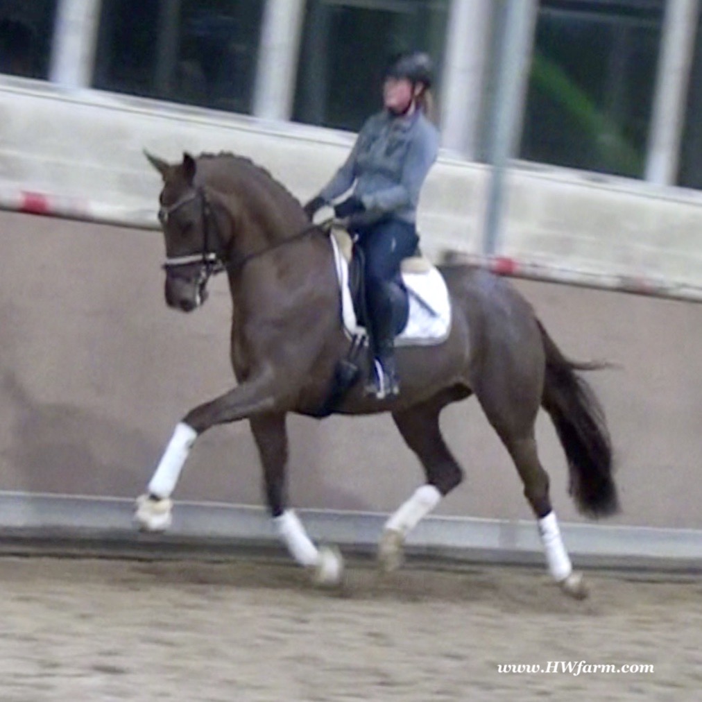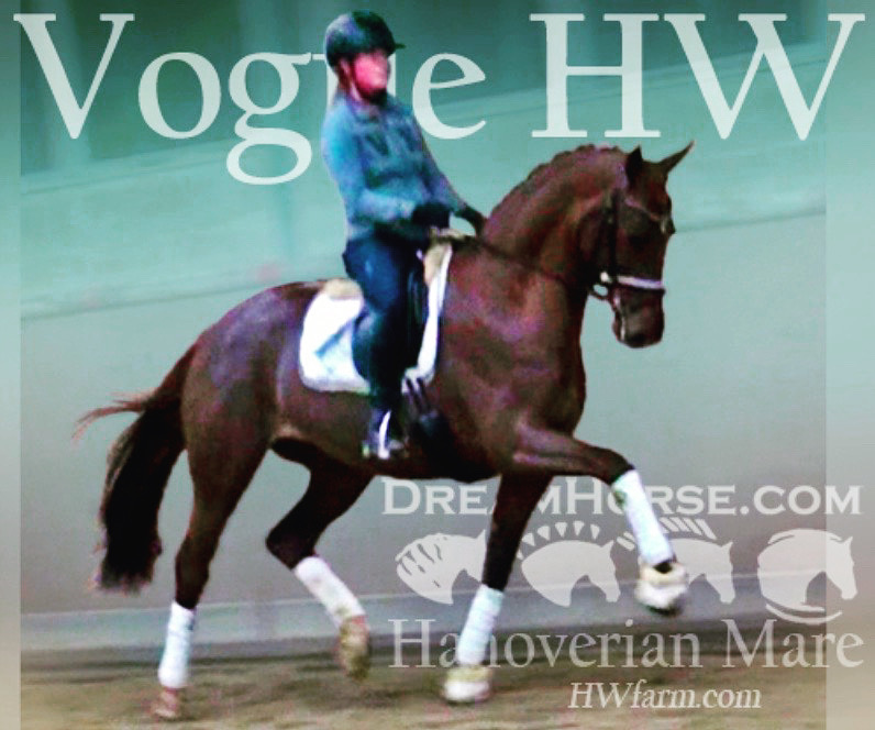 Vogue HW, liver chestnut Hanoverian mare, by Veneno/Feedback, born in 2016, standing approximately 167 cm or 16.2 hands. Vogue HW is a clone to her sire Veneno. His sire Vitalis was the 2009 reserve champion at his licensing in Münster-Handorf, then went to the State Stud Warendorf and enjoyed great popularity among breeders. Already with his first first crop of foals made the KWPN stallion clear that he is a sire of special quality. 2012 Vitalis was sold in the US and moved "across the pond". 2013 took the Vivaldi-son under the saddle of Charlotte Jorst (USA) at the World Championships for six year old dressage horses in Verden in part and reached the final. Vitalis' sons are especially attractive. Veneno has what it takes to also be an important sire, because even on the maternal side his pedigree has much to offer. Among the successful dressage horses of the parent strain in the S class includes Adrian v. Akzent II (until Interm. under Vanessa Stehl), Bergerac v. Bergamon (up Interm. I under Ursula Kufner), Bosun v. Bergamon (under Yvonne Tilke), effect v. Ecuador xx (under Reinhard Schönert), Joy of Jazz v. Jazz (under Christine Kühn), Pandora v. Rivero II (under Jessica Schneeberger) and Rubina v. Rubirando (up Interm. I under Frank Friend). Numerous licensed stallions out of this dam line produced:.. Copperfield v Classiker, Richard the Lionheart by Rubinstein I (up to Grand Prix de Dressage successful and team silver at the European Championships for young dressage riders 2009, Friederike Hahn), Radclife v Rivero II (successful up. S-dressage with Goetz Brinkmann), Sir Caramello v. Sir Donnerhall I, Spirit of the Age OLD v. Stony (international Grand Prix victory by Bernadette Brune). His mother, St.Pr.St. Diamond Lady (Diamond Hit - gentry - Argentinus - Furioso), previously brought forth seven children and all of them are very successful and promising. Her first offspring was awarded the title of state premium mare and was sold to South Germany. Diamond Ladie's second successor, a black stallion from Dresden Mann, is a highly successful dressage horse in England. Vogue HW's dam sire is Feedback. Starting with his outstanding performance at the 2009 NRW licensing where he was crowned reserve champion, Feedback has called a great deal of attention to his qualities as a sire and sport horse. In 2012, he sired champion and gold medal foals at foal shows in Rhineland and Westphalia. At auctions, his offspring were sought after as well. Out of a Grafenstolz mare, he produced the top priced horse (20,000 Euros) in Rhineland-Palatinate-Saar. In 2012, with his rider Mathias Bouten he won novice and elementary dressage tests with scores up to 9.2 points. Feedback also qualified for the German Young Horse Championships and was nominated for the World Championships of the five year old dressage horses in Verden. In 2013, he was placed and victorious in elementary and medium young horse dressage tests. In 2014, Feedback placed for the first time in advanced level dressage tests. His sire, Fidertanz, has presented many top foals, more than 45 licensed sons, and two German Young Horse Champions. He is also the sire of the German Young Horse Champion, Fürst Fohlenhof. Feedback's dam, premium mare Scarlett, was first runner-up in her ring. She is the dam of the premium stallion Fiderhit, St.Pr.St. Fleet Street (who is the dam of Quotenkönig, second runner-up of the NRW-licensing in 2011) and of more champion foals. Feedback's dam sire, Sandro Hit, is the sire of the record-breaking mare Poetin and of champion stallion Stedinger, not to mention numerous well-known top stallions and dressage horses worldwide. The Holstein C- and L-lines perfect the pedigree in the third and fourth generations. The successful dam line produced "Dahlhoff" (by De Niro) as well who was a premium stallion of the NRW-licensing in 2012 and half brother of Quotenkönig. Vogue HW herself, is an extremely fancy lady. Beauty, elasticity, and suspension outline this stunning creature. Three rhythmic, big, expressive gaits - that will blow any and all competition out of the park. She is fabulous and easy to ride, super nice to sit and light in the bridle. Ideal for a AA, young rider, or professional alike, everybody wants fun! Vogue HW, equipped with phenomenal competition genes, is a horse of amazing quality and super fancy mover who knows to impress due to her type and work ethic. This stunning horse has it all, big stallion neck (even as a girl!), a total dream come true. Her hooves barley touch the ground. She loves to please her handler and rider and is a fast learner. This lady eagerly works under saddle and does an excellent job, with her free shoulder and huge suspension, she swings nicely through her back. She is breathtaking to watch in the dressage arena and with her quick, far reaching hind leg, passage and piaffe will come naturally to her. Vogue HW is supple and has a ton of air time. This extremely talented mare has true FEI potential, 2nd level work comes super easy to her. With her great ride ability, she makes a lasting impression on whom ever sees her. She loves her personal grooming time and puts her head right in your lap, striving for attention and searching for treats. With this horse, you will be the star in FEI classes and at clinics, the judges and onlookers will remember her where ever she goes. Her bloodlines are very much sought after, she is your ticket to the top! Vogue HW is used to go in the hot walker, loves her shower and solarium time. Stands for the farrier, loads and appreciates grooming time. She is a superb Young Horse Candidate, just what the judges are looking for and will make her way up the levels. X-rays on file! video clip!!! Please contact Irene: Irene@HWfarm.com 239-772-7722 (ask for Irene, managing member of HorseSales LLC) We take pride in answering every e-mail right away (at least at the same day) and to return each call. If you don't get a reply - please try again, our 
