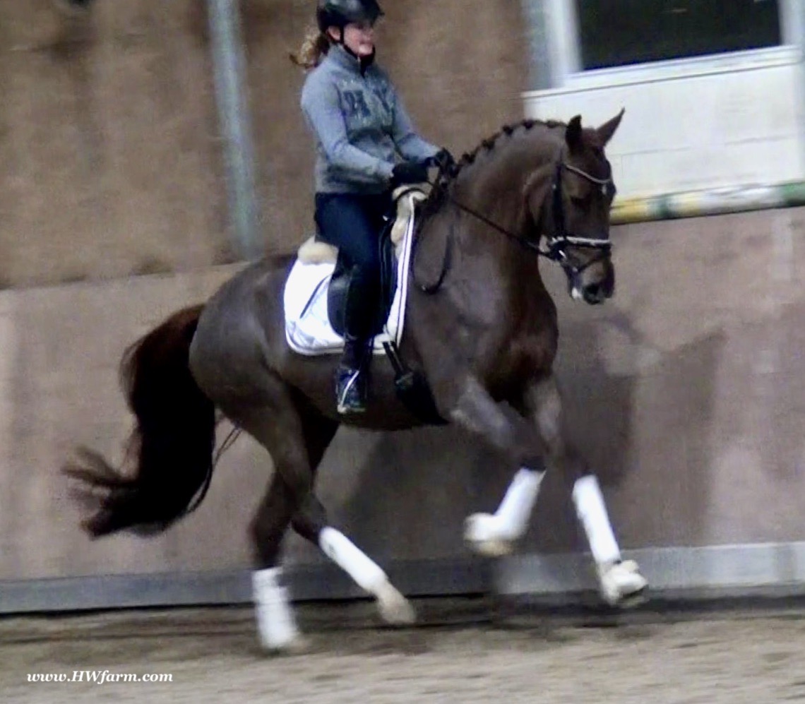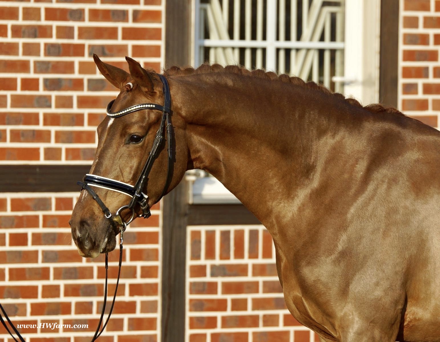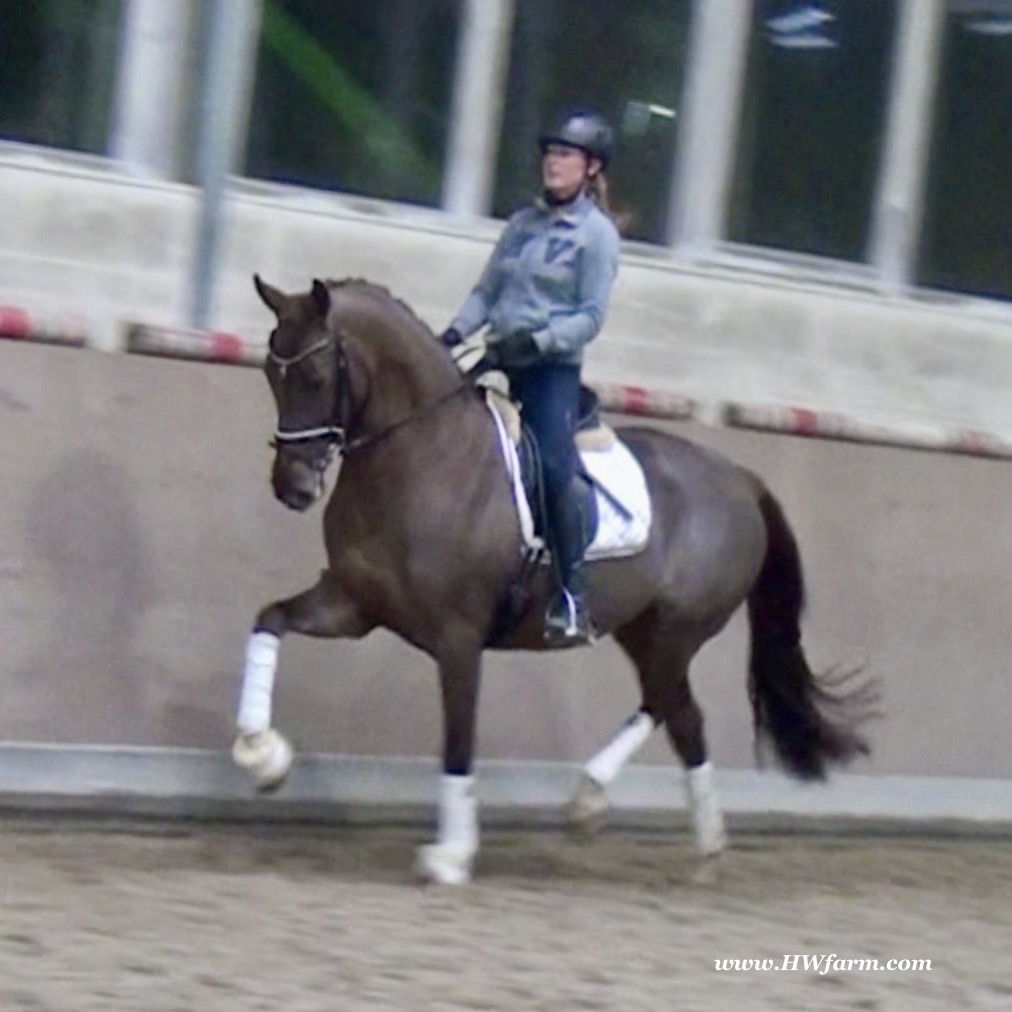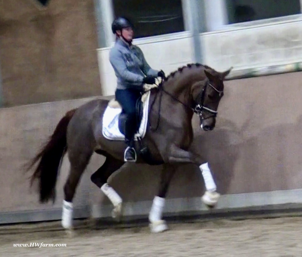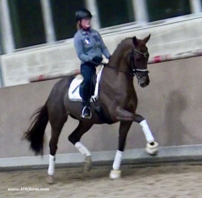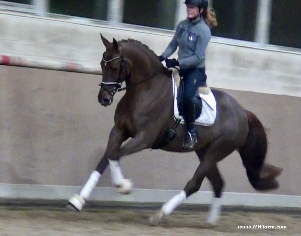 Vogue HW, liver chestnut Hanoverian mare, by Veneno/Feedback, born in 2016, standing approximately 167 cm or 16.2 hands. Vogue HW is a clone to her sire Veneno. His sire Vitalis was the 2009 reserve champion at his licensing in Münster-Handorf, then went to the State Stud Warendorf and enjoyed great popularity among breeders. Already with his first first crop of foals made the KWPN stallion clear that he is a sire of special quality. 2012 Vitalis was sold in the US and moved "across the pond". 2013 took the Vivaldi-son under the saddle of Charlotte Jorst (USA) at the World Championships for six year old dressage horses in Verden in part and reached the final. Vitalis' sons are especially attractive. Veneno has what it takes to also be an important sire, because even on the maternal side his pedigree has much to offer. Among the successful dressage horses of the parent strain in the S class includes Adrian v. Akzent II (until Interm. under Vanessa Stehl), Bergerac v. Bergamon (up Interm. I under Ursula Kufner), Bosun v. Bergamon (under Yvonne Tilke), effect v. Ecuador xx (under Reinhard Schönert), Joy of Jazz v. Jazz (under Christine Kühn), Pandora v. Rivero II (under Jessica Schneeberger) and Rubina v. Rubirando (up Interm. I under Frank Friend). Numerous licensed stallions out of this dam line produced:.. Copperfield v Classiker, Richard the Lionheart by Rubinstein I (up to Grand Prix de Dressage successful and team silver at the European Championships for young dressage riders 2009, Friederike Hahn), Radclife v Rivero II (successful up. S-dressage with Goetz Brinkmann), Sir Caramello v. Sir Donnerhall I, Spirit of the Age OLD v. Stony (international Grand Prix victory by Bernadette Brune). His mother, St.Pr.St. Diamond Lady (Diamond Hit - gentry - Argentinus - Furioso), previously brought forth seven children and all of them are very successful and promising. Her first offspring was awarded the title of state premium mare and was sold to South Germany. Diamond Ladie's second successor, a black stallion from Dresden Mann, is a highly successful dressage horse in England. Vogue HW's dam sire is Feedback. Starting with his outstanding performance at the 2009 NRW licensing where he was crowned reserve champion, Feedback has called a great deal of attention to his qualities as a sire and sport horse. In 2012, he sired champion and gold medal foals at foal shows in Rhineland and Westphalia. At auctions, his offspring were sought after as well. Out of a Grafenstolz mare, he produced the top priced horse (20,000 Euros) in Rhineland-Palatinate-Saar. In 2012, with his rider Mathias Bouten he won novice and elementary dressage tests with scores up to 9.2 points. Feedback also qualified for the German Young Horse Championships and was nominated for the World Championships of the five year old dressage horses in Verden. In 2013, he was placed and victorious in elementary and medium young horse dressage tests. In 2014, Feedback placed for the first time in advanced level dressage tests. His sire, Fidertanz, has presented many top foals, more than 45 licensed sons, and two German Young Horse Champions. He is also the sire of the German Young Horse Champion, Fürst Fohlenhof. Feedback's dam, premium mare Scarlett, was first runner-up in her ring. She is the dam of the premium stallion Fiderhit, St.Pr.St. Fleet Street (who is the dam of Quotenkönig, second runner-up of the NRW-licensing in 2011) and of more champion foals. Feedback's dam sire, Sandro Hit, is the sire of the record-breaking mare Poetin and of champion stallion Stedinger, not to mention numerous well-known top stallions and dressage horses worldwide. The Holstein C- and L-lines perfect the pedigree in the third and fourth generations. The successful dam line produced "Dahlhoff" (by De Niro) as well who was a premium stallion of the NRW-licensing in 2012 and half brother of Quotenkönig. Vogue HW herself, is an extremely fancy lady. Beauty, elasticity, and suspension outline this stunning creature. Three rhythmic, big, expressive gaits - that will blow any and all competition out of the park. She is fabulous and easy to ride, super nice to sit and light in the bridle. Ideal for a AA, young rider, or professional alike, everybody wants fun! Vogue HW, equipped with phenomenal competition genes, is a horse of amazing quality and super fancy mover who knows to impress due to her type and work ethic. This stunning horse has it all, big stallion neck (even as a girl!), a total dream come true. Her hooves barley touch the ground. She loves to please her handler and rider and is a fast learner. This lady eagerly works under saddle and does an excellent job, with her free shoulder and huge suspension, she swings nicely through her back. She is breathtaking to watch in the dressage arena and with her quick, far reaching hind leg, passage and piaffe will come naturally to her. Vogue HW is supple and has a ton of air time. This extremely talented mare has true FEI potential, 2nd level work comes super easy to her. With her great ride ability, she makes a lasting impression on whom ever sees her. She loves her personal grooming time and puts her head right in your lap, striving for attention and searching for treats. With this horse, you will be the star in FEI classes and at clinics, the judges and onlookers will remember her where ever she goes. Her bloodlines are very much sought after, she is your ticket to the top! Vogue HW is used to go in the hot walker, loves her shower and solarium time. Stands for the farrier, loads and appreciates grooming time. She is a superb Young Horse Candidate, just what the judges are looking for and will make her way up the levels. X-rays on file! video clip!!! Please contact Irene: Irene@HWfarm.com 239-772-7722 (ask for Irene, managing member of HorseSales LLC) We take pride in answering every e-mail right away (at least at the same day) and to return each call. If you don't get a reply - please try again, our 