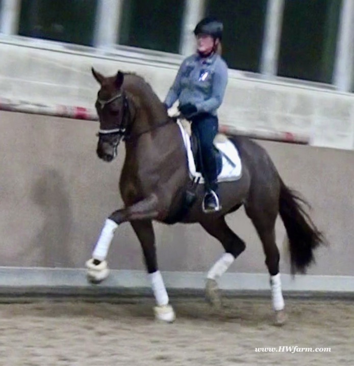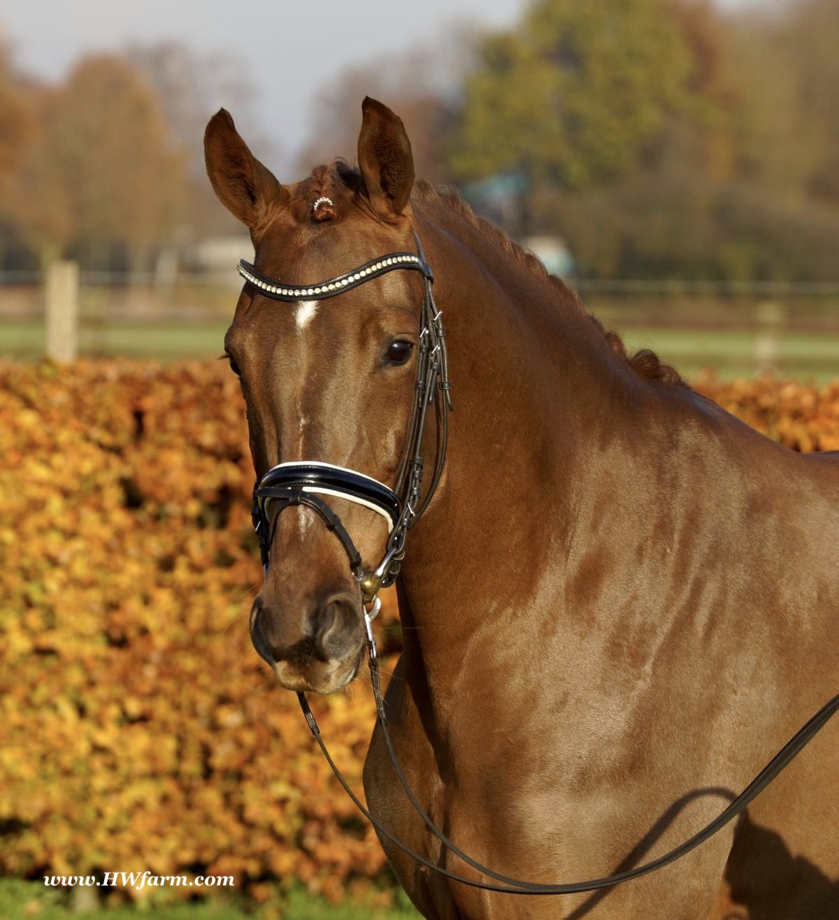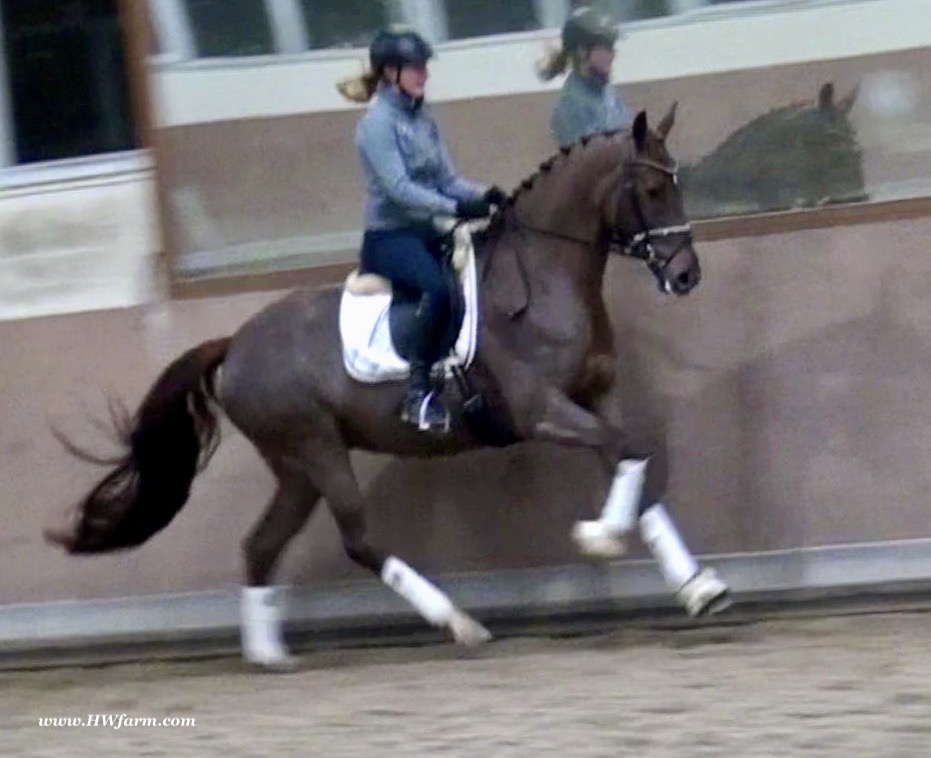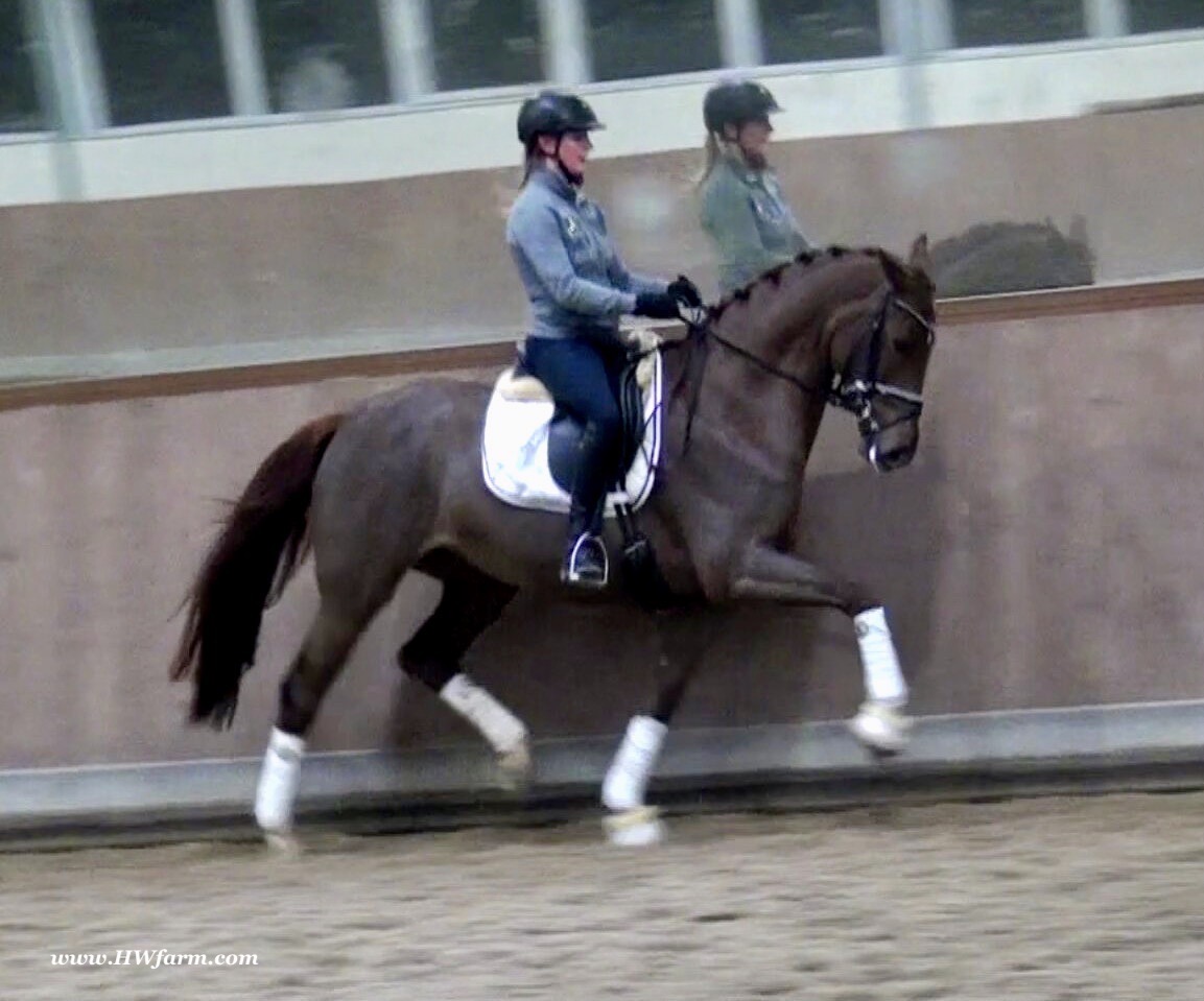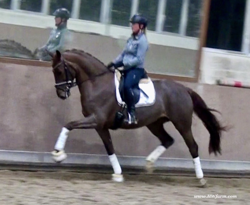 Vogue HW, liver chestnut Hanoverian mare, by Veneno/Feedback, born in 2016, standing approximately 167 cm or 16.2 hands. Vogue HW is a clone to her sire Veneno. His sire Vitalis was the 2009 reserve champion at his licensing in Münster-Handorf, then went to the State Stud Warendorf and enjoyed great popularity among breeders. Already with his first first crop of foals made the KWPN stallion clear that he is a sire of special quality. 2012 Vitalis was sold in the US and moved "across the pond". 2013 took the Vivaldi-son under the saddle of Charlotte Jorst (USA) at the World Championships for six year old dressage horses in Verden in part and reached the final. Vitalis' sons are especially attractive. Veneno has what it takes to also be an important sire, because even on the maternal side his pedigree has much to offer. Among the successful dressage horses of the parent strain in the S class includes Adrian v. Akzent II (until Interm. under Vanessa Stehl), Bergerac v. Bergamon (up Interm. I under Ursula Kufner), Bosun v. Bergamon (under Yvonne Tilke), effect v. Ecuador xx (under Reinhard Schönert), Joy of Jazz v. Jazz (under Christine Kühn), Pandora v. Rivero II (under Jessica Schneeberger) and Rubina v. Rubirando (up Interm. I under Frank Friend). Numerous licensed stallions out of this dam line produced:.. Copperfield v Classiker, Richard the Lionheart by Rubinstein I (up to Grand Prix de Dressage successful and team silver at the European Championships for young dressage riders 2009, Friederike Hahn), Radclife v Rivero II (successful up. S-dressage with Goetz Brinkmann), Sir Caramello v. Sir Donnerhall I, Spirit of the Age OLD v. Stony (international Grand Prix victory by Bernadette Brune). His mother, St.Pr.St. Diamond Lady (Diamond Hit - gentry - Argentinus - Furioso), previously brought forth seven children and all of them are very successful and promising. Her first offspring was awarded the title of state premium mare and was sold to South Germany. Diamond Ladie's second successor, a black stallion from Dresden Mann, is a highly successful dressage horse in England. Vogue HW's dam sire is Feedback. Starting with his outstanding performance at the 2009 NRW licensing where he was crowned reserve champion, Feedback has called a great deal of attention to his qualities as a sire and sport horse. In 2012, he sired champion and gold medal foals at foal shows in Rhineland and Westphalia. At auctions, his offspring were sought after as well. Out of a Grafenstolz mare, he produced the top priced horse (20,000 Euros) in Rhineland-Palatinate-Saar. In 2012, with his rider Mathias Bouten he won novice and elementary dressage tests with scores up to 9.2 points. Feedback also qualified for the German Young Horse Championships and was nominated for the World Championships of the five year old dressage horses in Verden. In 2013, he was placed and victorious in elementary and medium young horse dressage tests. In 2014, Feedback placed for the first time in advanced level dressage tests. His sire, Fidertanz, has presented many top foals, more than 45 licensed sons, and two German Young Horse Champions. He is also the sire of the German Young Horse Champion, Fürst Fohlenhof. Feedback's dam, premium mare Scarlett, was first runner-up in her ring. She is the dam of the premium stallion Fiderhit, St.Pr.St. Fleet Street (who is the dam of Quotenkönig, second runner-up of the NRW-licensing in 2011) and of more champion foals. Feedback's dam sire, Sandro Hit, is the sire of the record-breaking mare Poetin and of champion stallion Stedinger, not to mention numerous well-known top stallions and dressage horses worldwide. The Holstein C- and L-lines perfect the pedigree in the third and fourth generations. The successful dam line produced "Dahlhoff" (by De Niro) as well who was a premium stallion of the NRW-licensing in 2012 and half brother of Quotenkönig. Vogue HW herself, is an extremely fancy lady. Beauty, elasticity, and suspension outline this stunning creature. Three rhythmic, big, expressive gaits - that will blow any and all competition out of the park. She is fabulous and easy to ride, super nice to sit and light in the bridle. Ideal for a AA, young rider, or professional alike, everybody wants fun! Vogue HW, equipped with phenomenal competition genes, is a horse of amazing quality and super fancy mover who knows to impress due to her type and work ethic. This stunning horse has it all, big stallion neck (even as a girl!), a total dream come true. Her hooves barley touch the ground. She loves to please her handler and rider and is a fast learner. This lady eagerly works under saddle and does an excellent job, with her free shoulder and huge suspension, she swings nicely through her back. She is breathtaking to watch in the dressage arena and with her quick, far reaching hind leg, passage and piaffe will come naturally to her. Vogue HW is supple and has a ton of air time. This extremely talented mare has true FEI potential, 2nd level work comes super easy to her. With her great ride ability, she makes a lasting impression on whom ever sees her. She loves her personal grooming time and puts her head right in your lap, striving for attention and searching for treats. With this horse, you will be the star in FEI classes and at clinics, the judges and onlookers will remember her where ever she goes. Her bloodlines are very much sought after, she is your ticket to the top! Vogue HW is used to go in the hot walker, loves her shower and solarium time. Stands for the farrier, loads and appreciates grooming time. She is a superb Young Horse Candidate, just what the judges are looking for and will make her way up the levels. X-rays on file! video clip!!! Please contact Irene: Irene@HWfarm.com 239-772-7722 (ask for Irene, managing member of HorseSales LLC) We take pride in answering every e-mail right away (at least at the same day) and to return each call. If you don't get a reply - please try again, our 